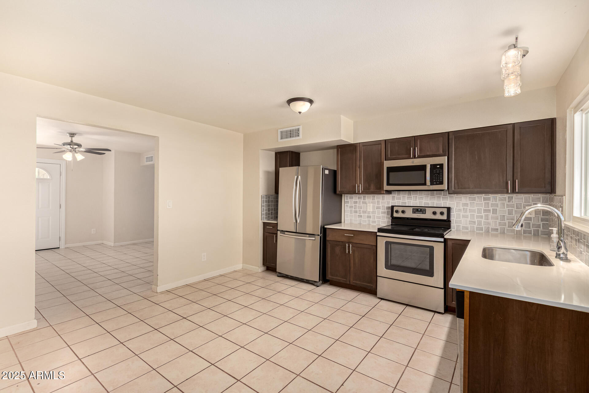 Discover this lovely townhome in Knoell Garden Villas and enjoy the great location with easy freeway access! Nestled in a charming residential street, across from a green park, this home offers a spacious layout designed with comfortable everyday living in mind, featuring tile flooring, neutral tones, and abundant natural light. Whip up your favorite dishes in the well-appointed kitchen, equipped with shaker cabinets, tile backsplash, quartz countertops, and stainless steel appliances. The serene main bedroom boasts a closet, a bathroom, and French doors to the patio. Get ready for weekend grills and cheerful evenings in the nice seating space with pavers in the backyard, and don't forget to visit the community's pool and playground for fun times! Welcome home!