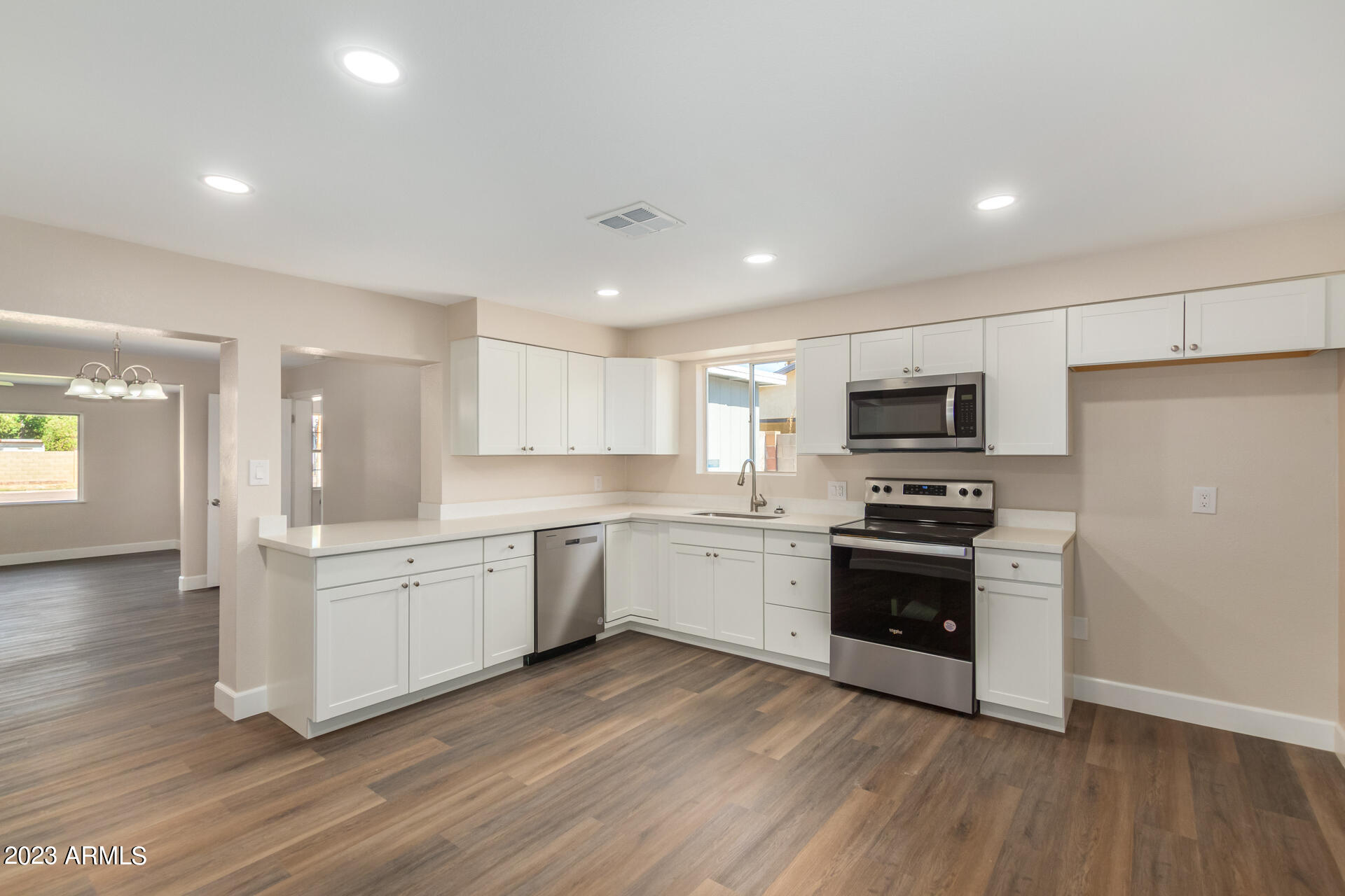 Discover this delightful 4-bedroom residence with no HOA. Exterior features include a practical RV gate and ample parking for all your vehicles. Inside, find attractive wood-look flooring, a harmonious neutral color scheme, and a snug living room - the perfect setting for relaxation. Savor gourmet meals in the formal dining room or enjoy casual breakfasts in the eat-in kitchen, which is equipped with recessed lighting, pristine white cabinets, brand new counters, and state of-the art stainless steel appliances. The main bedroom offers a sanctuary with its private bathroom and spacious walk-in closet. Venture back to a covered patio, presenting a canvas for your customization. Experience it in person! Don't miss out on this one!