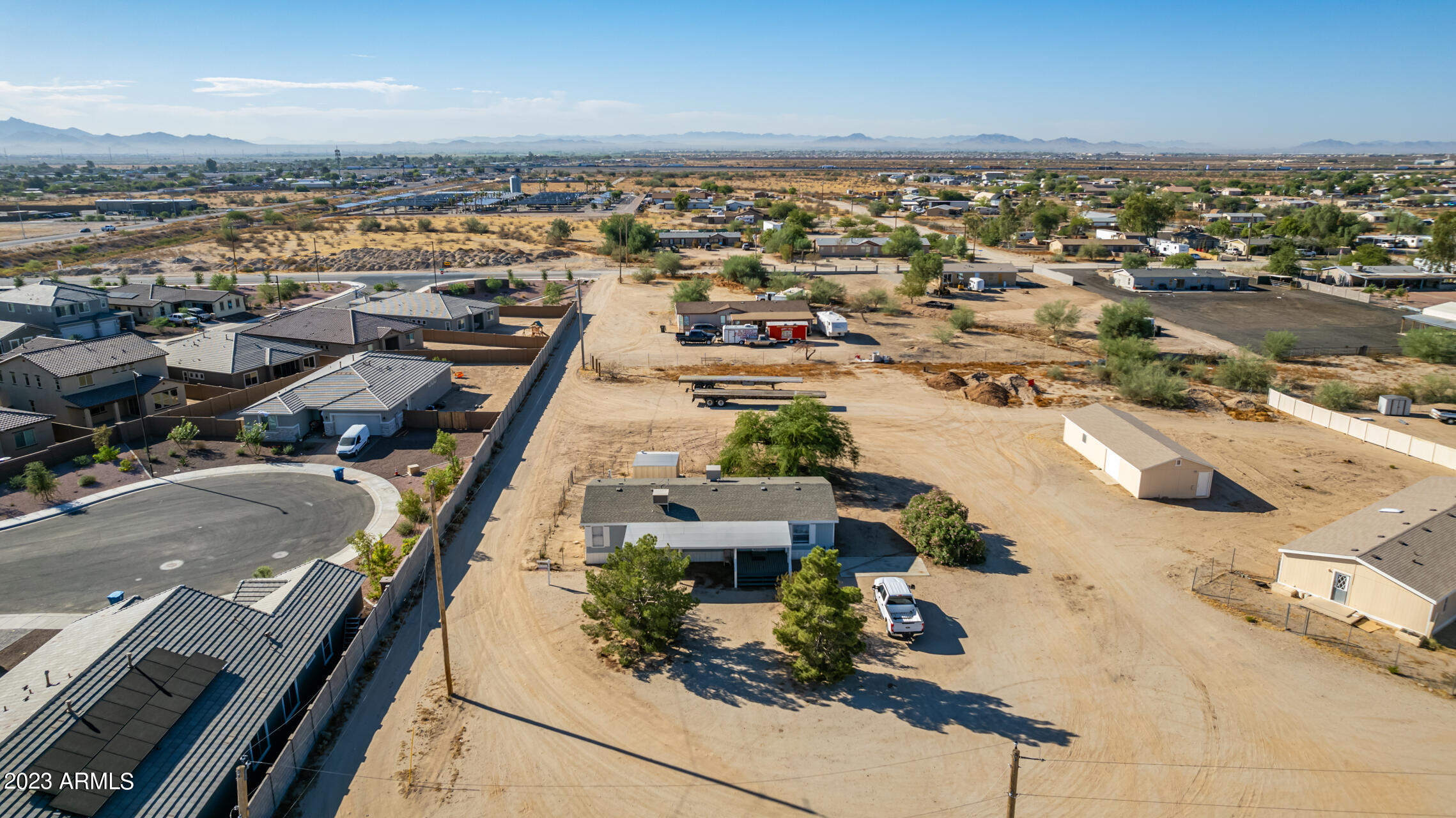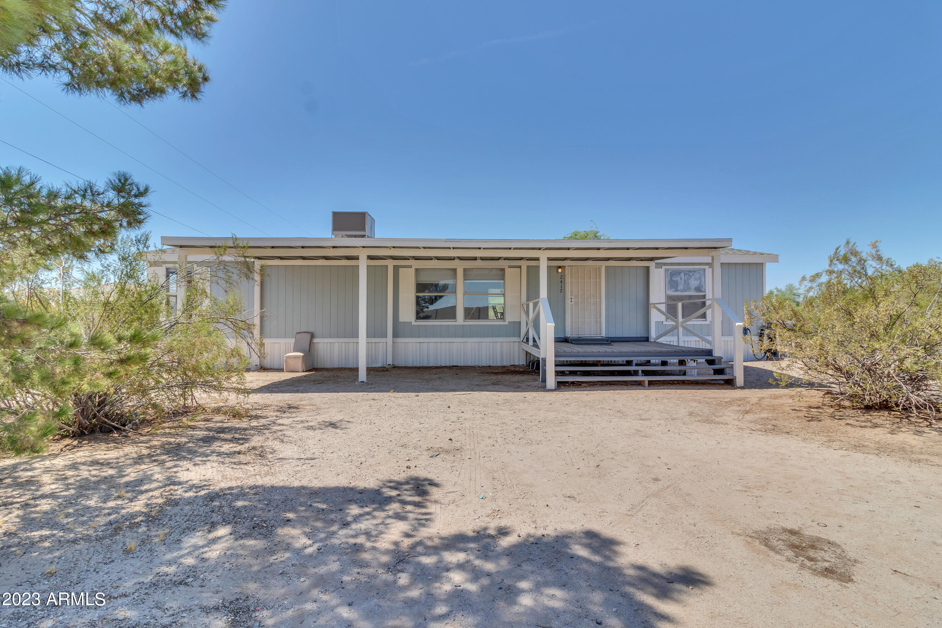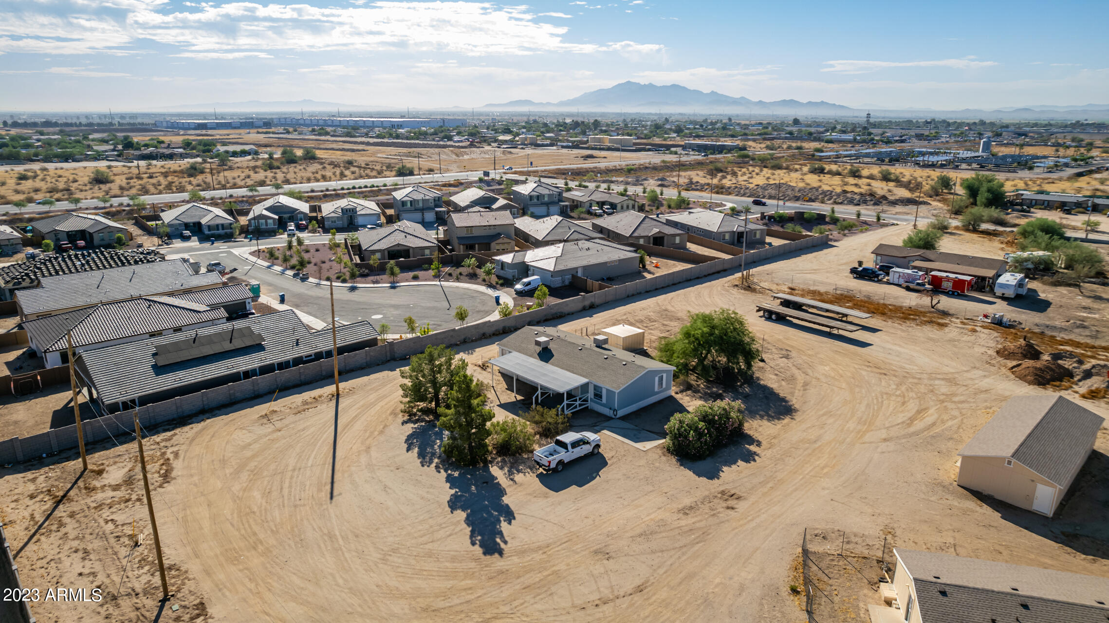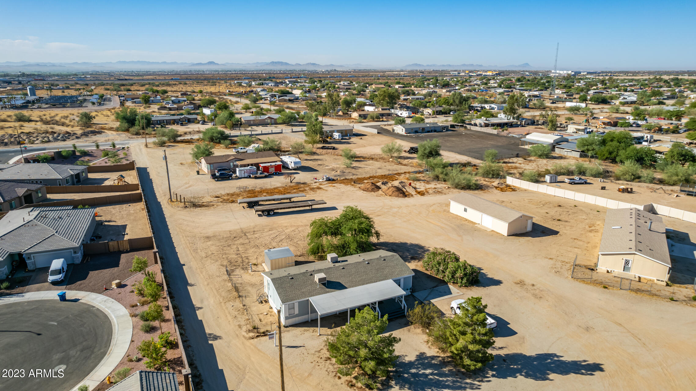 No HOA and over an acre of land for all your toys and tools. It's time to check out this charming 3-bed, 2-bath manufactured home in Buckeye! Enjoy the freedom of no HOA on this expansive acre plus lot, offering breathtaking mountain and desert views. The home boasts a light-filled and open floor plan with vaulted ceilings in the main living areas, providing a spacious and inviting atmosphere. Recent updates include new laminate flooring throughout this year and a new roof installed in 2022. The HVAC system was replaced in 2016 and new swamp cooler in 2022. Plenty of storage space and land for play and work. This property is conveniently located just minutes away from freeways, schools, parks, and all the Verrado amenities. Don't miss the opportunity to make this your new home!
