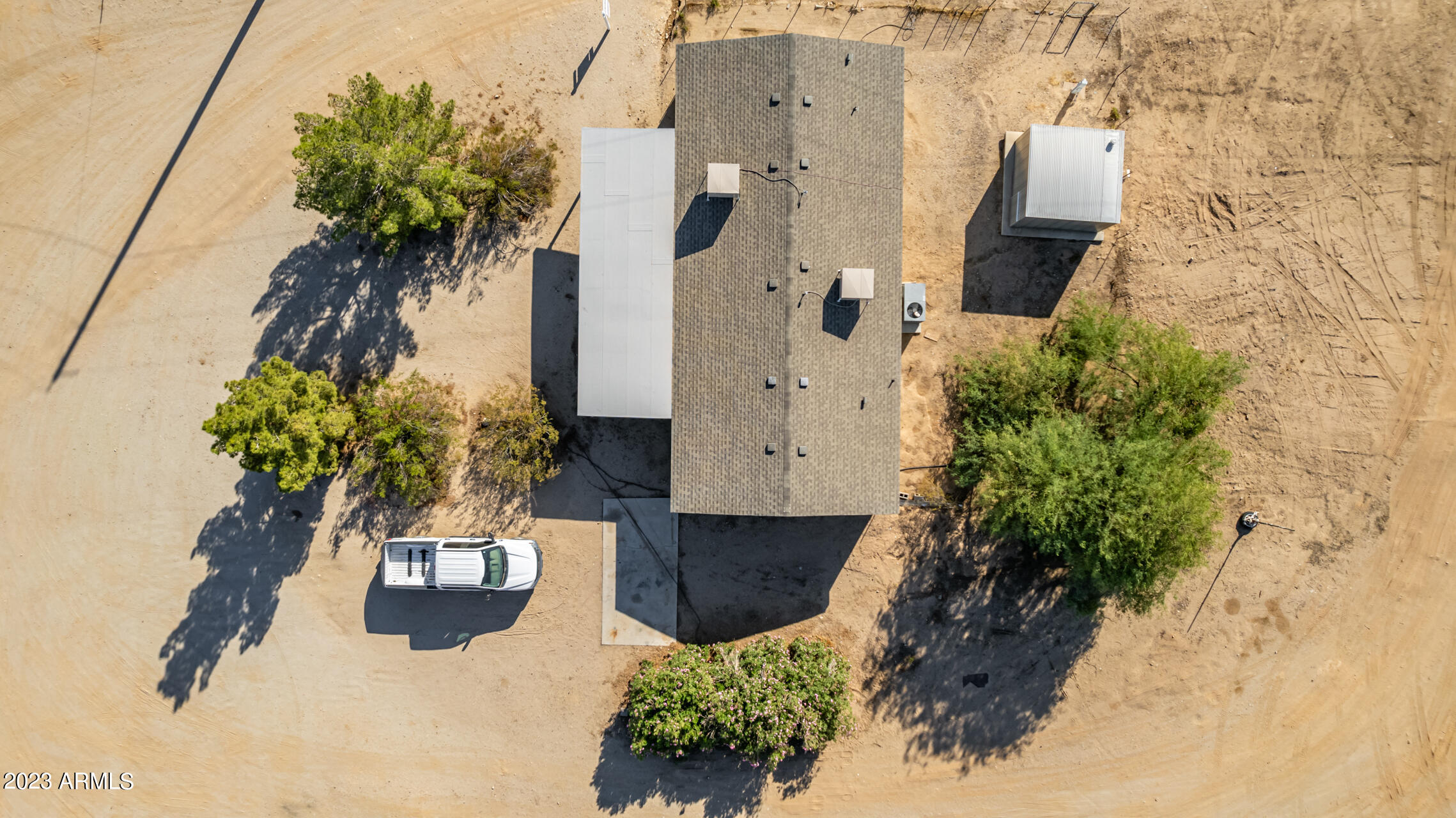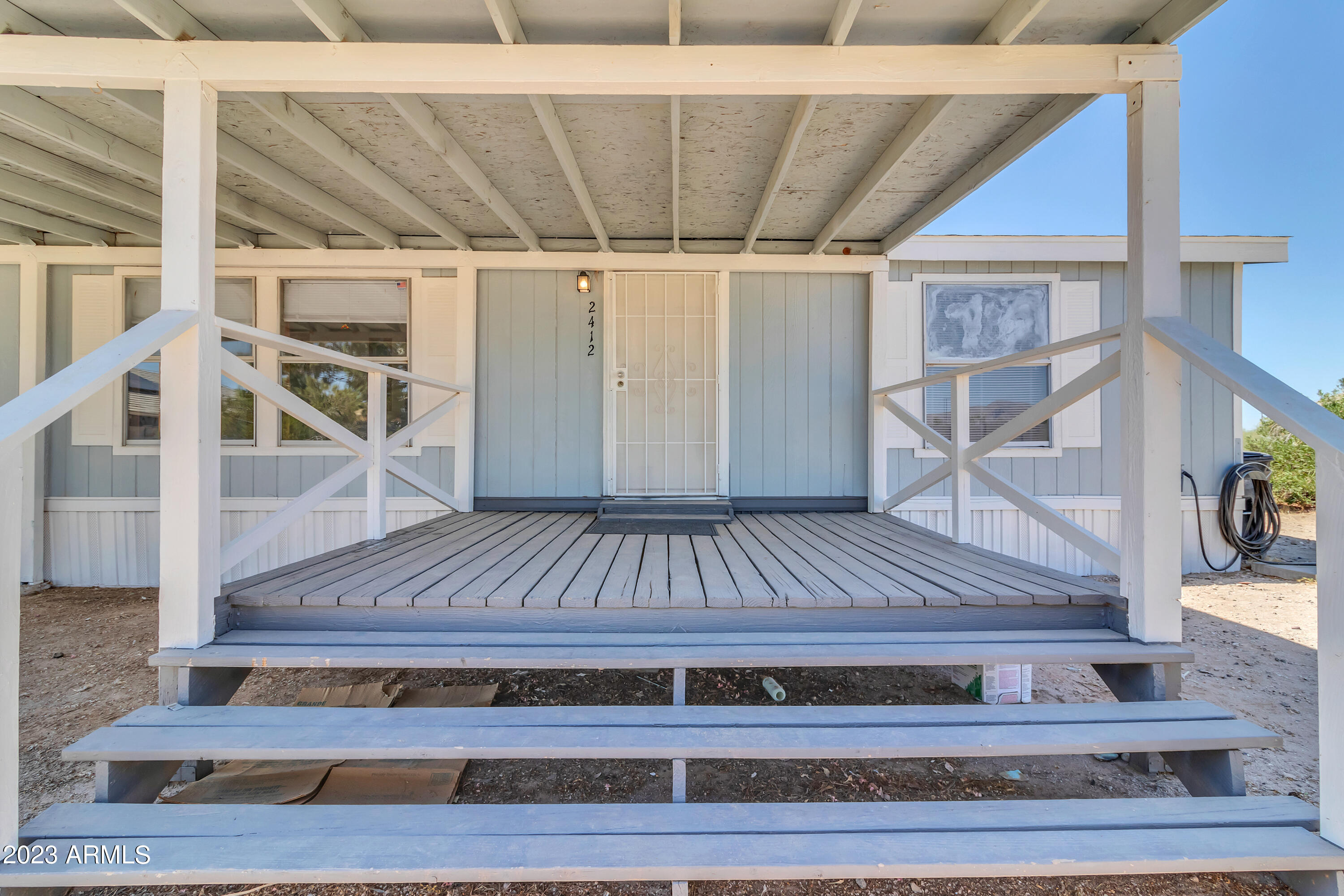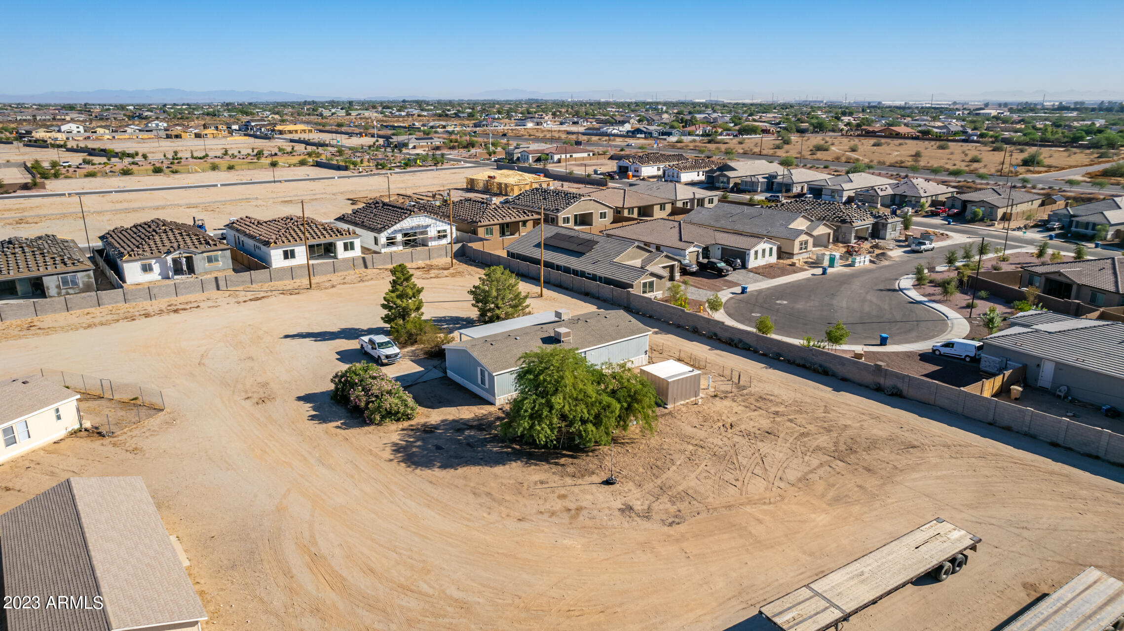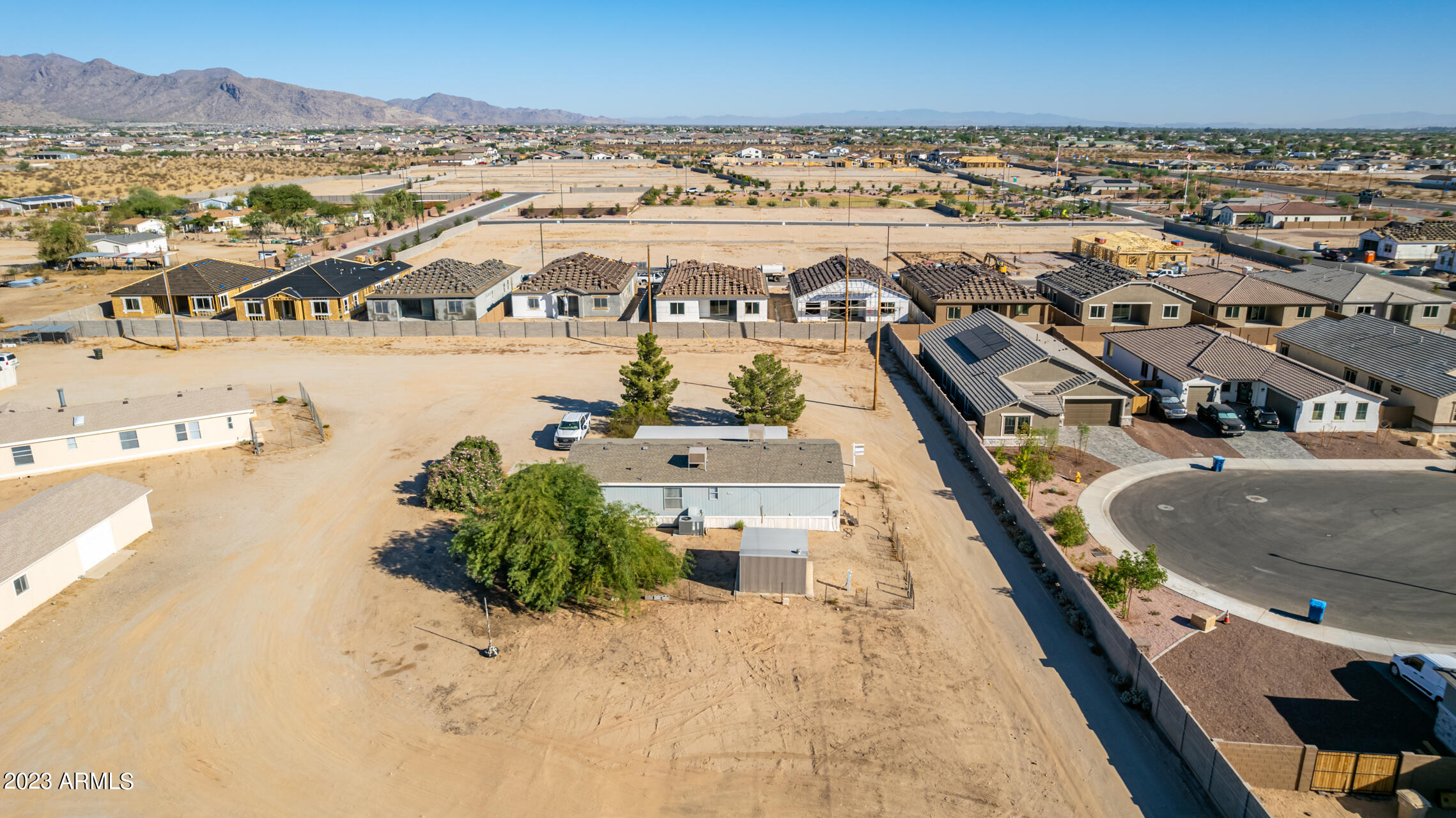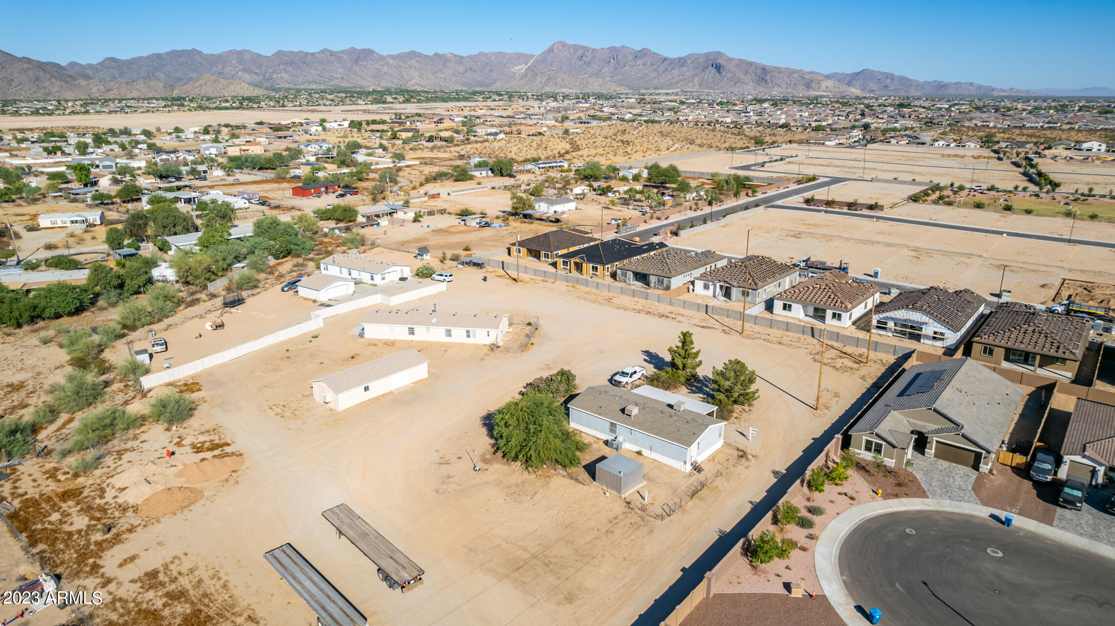 No HOA and over an acre of land for all your toys and tools. It's time to check out this charming 3-bed, 2-bath manufactured home in Buckeye! Enjoy the freedom of no HOA on this expansive acre plus lot, offering breathtaking mountain and desert views. The home boasts a light-filled and open floor plan with vaulted ceilings in the main living areas, providing a spacious and inviting atmosphere. Recent updates include new laminate flooring throughout this year and a new roof installed in 2022. The HVAC system was replaced in 2016 and new swamp cooler in 2022. Plenty of storage space and land for play and work. This property is conveniently located just minutes away from freeways, schools, parks, and all the Verrado amenities. Don't miss the opportunity to make this your new home!