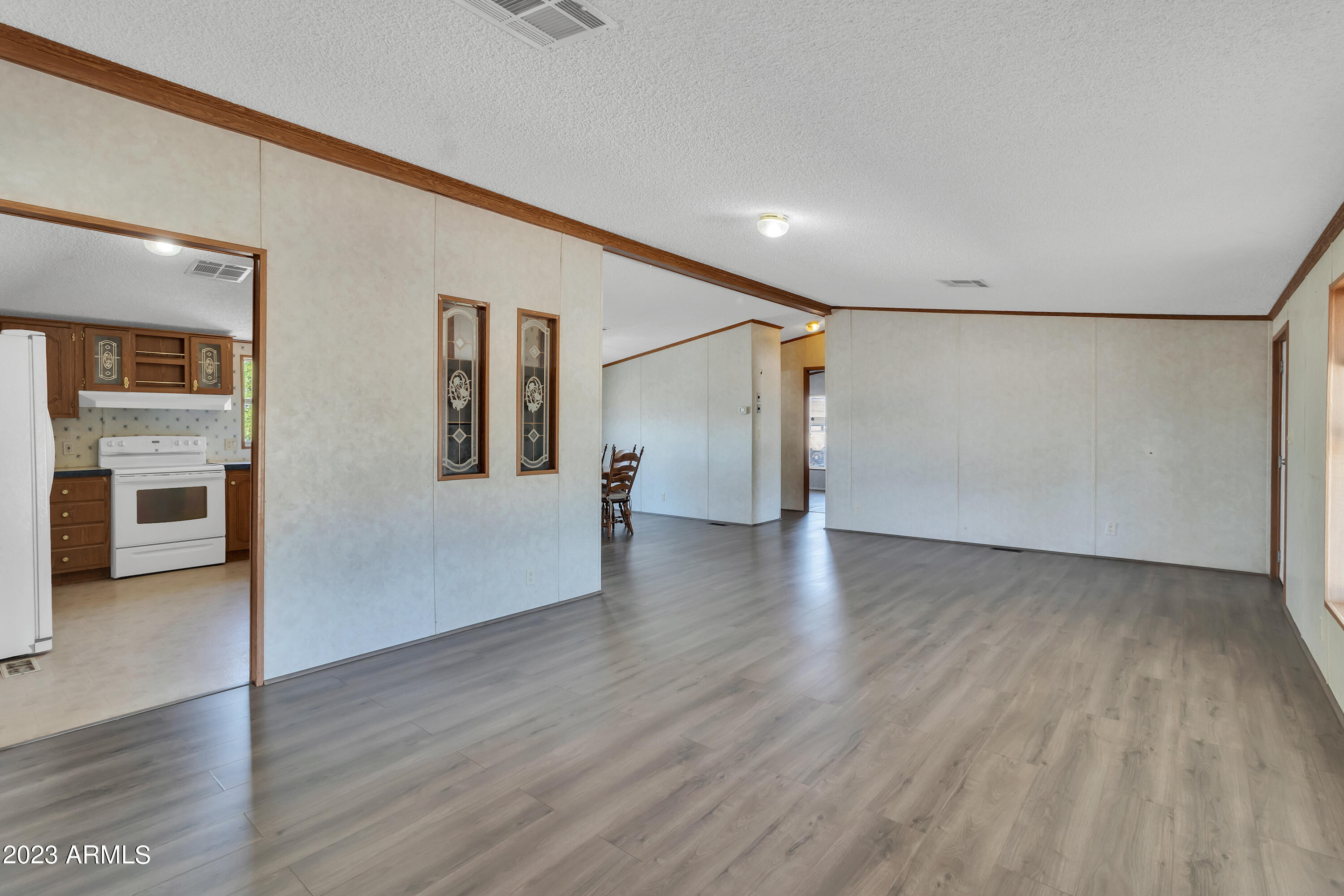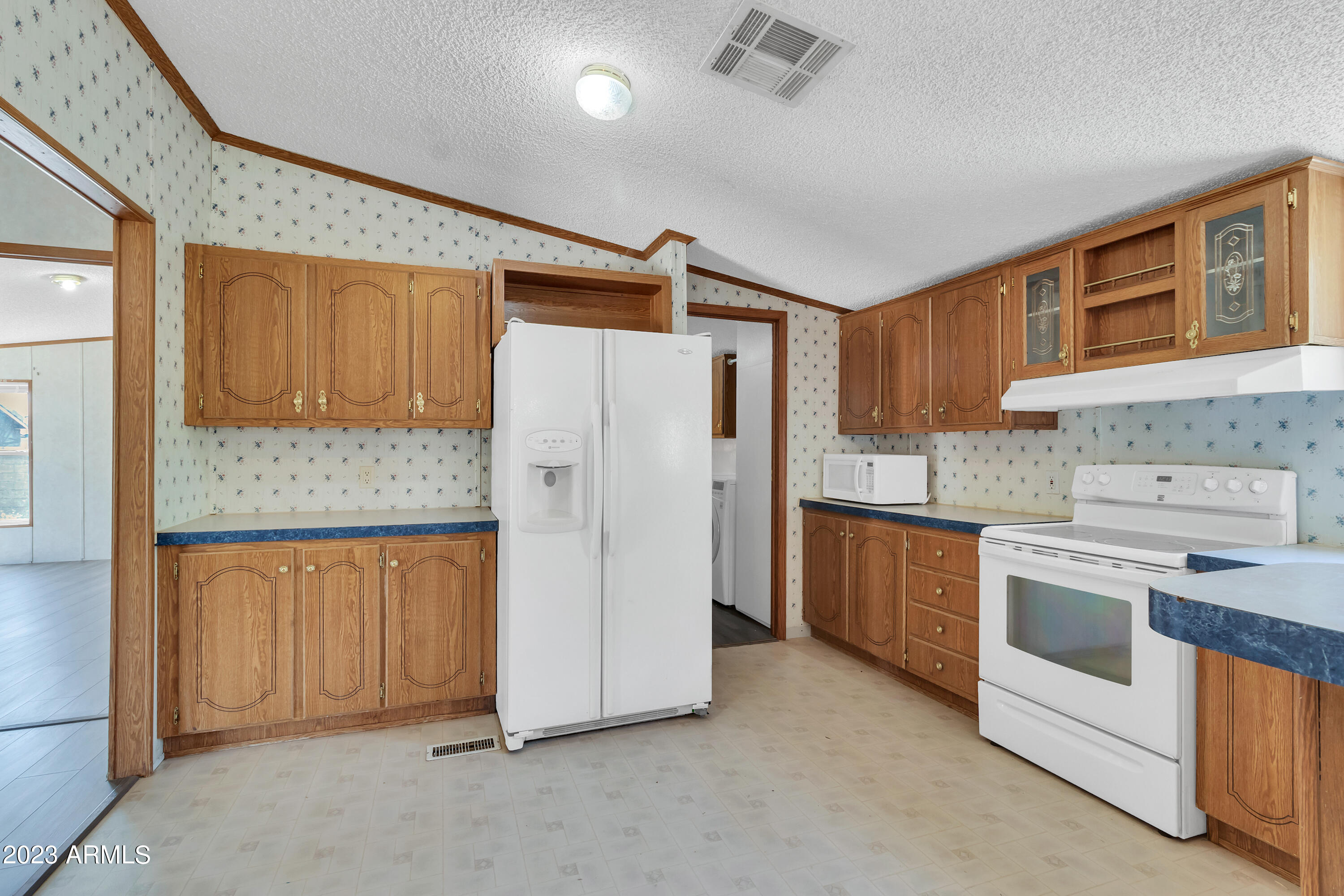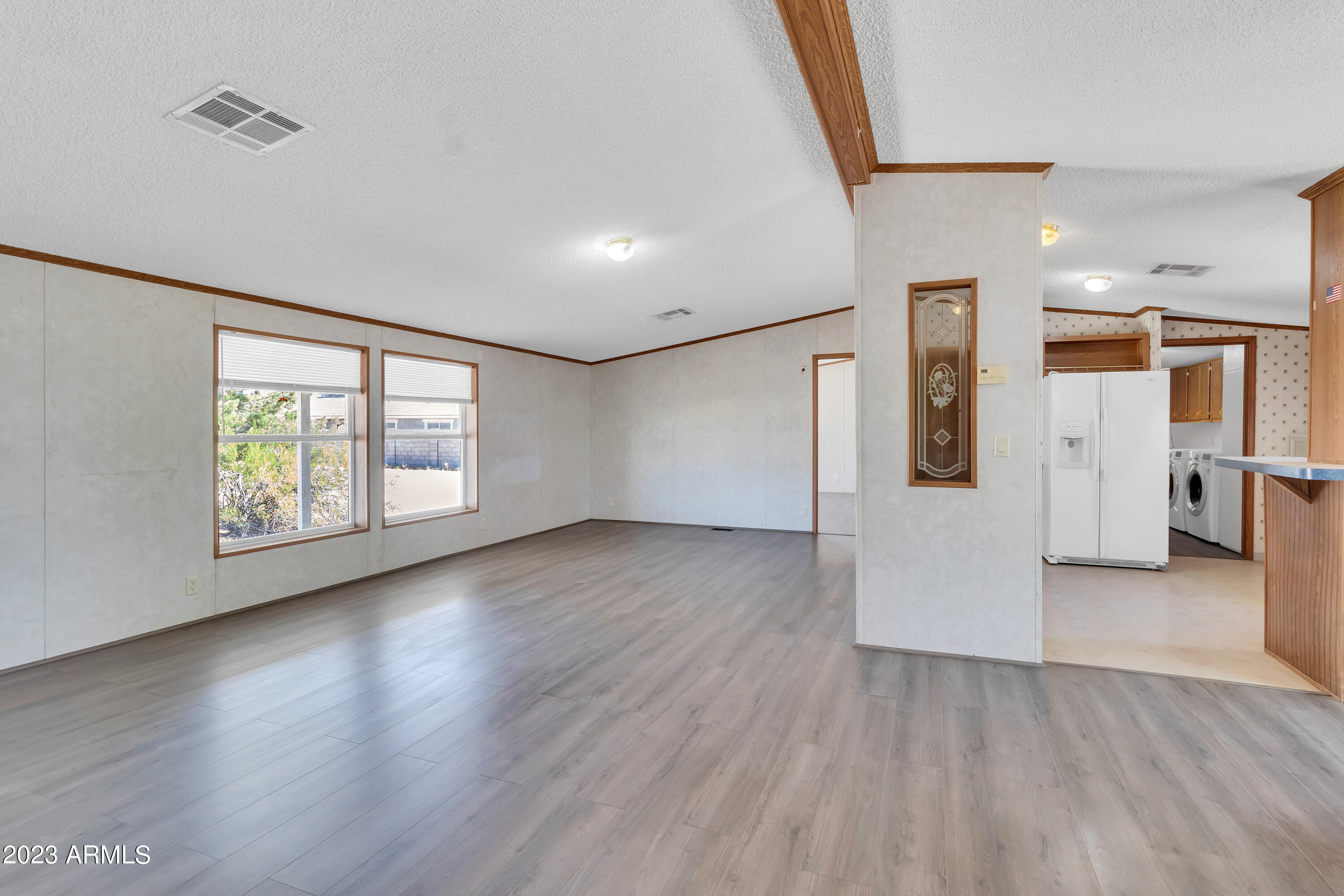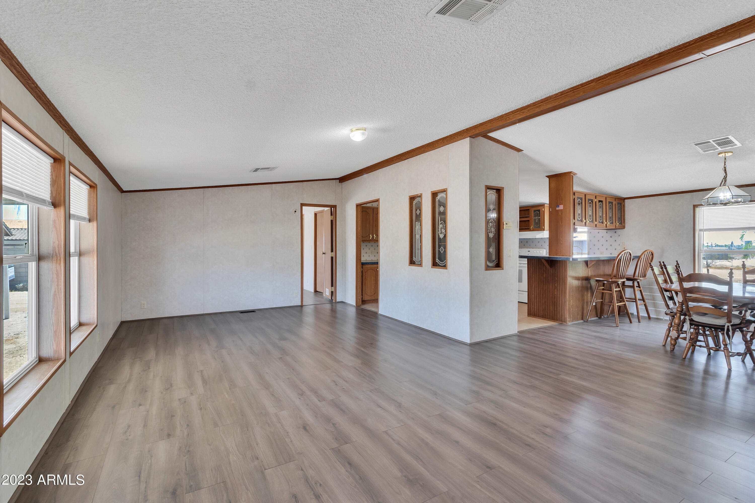 No HOA and over an acre of land for all your toys and tools. It's time to check out this charming 3-bed, 2-bath manufactured home in Buckeye! Enjoy the freedom of no HOA on this expansive acre plus lot, offering breathtaking mountain and desert views. The home boasts a light-filled and open floor plan with vaulted ceilings in the main living areas, providing a spacious and inviting atmosphere. Recent updates include new laminate flooring throughout this year and a new roof installed in 2022. The HVAC system was replaced in 2016 and new swamp cooler in 2022. Plenty of storage space and land for play and work. This property is conveniently located just minutes away from freeways, schools, parks, and all the Verrado amenities. Don't miss the opportunity to make this your new home!