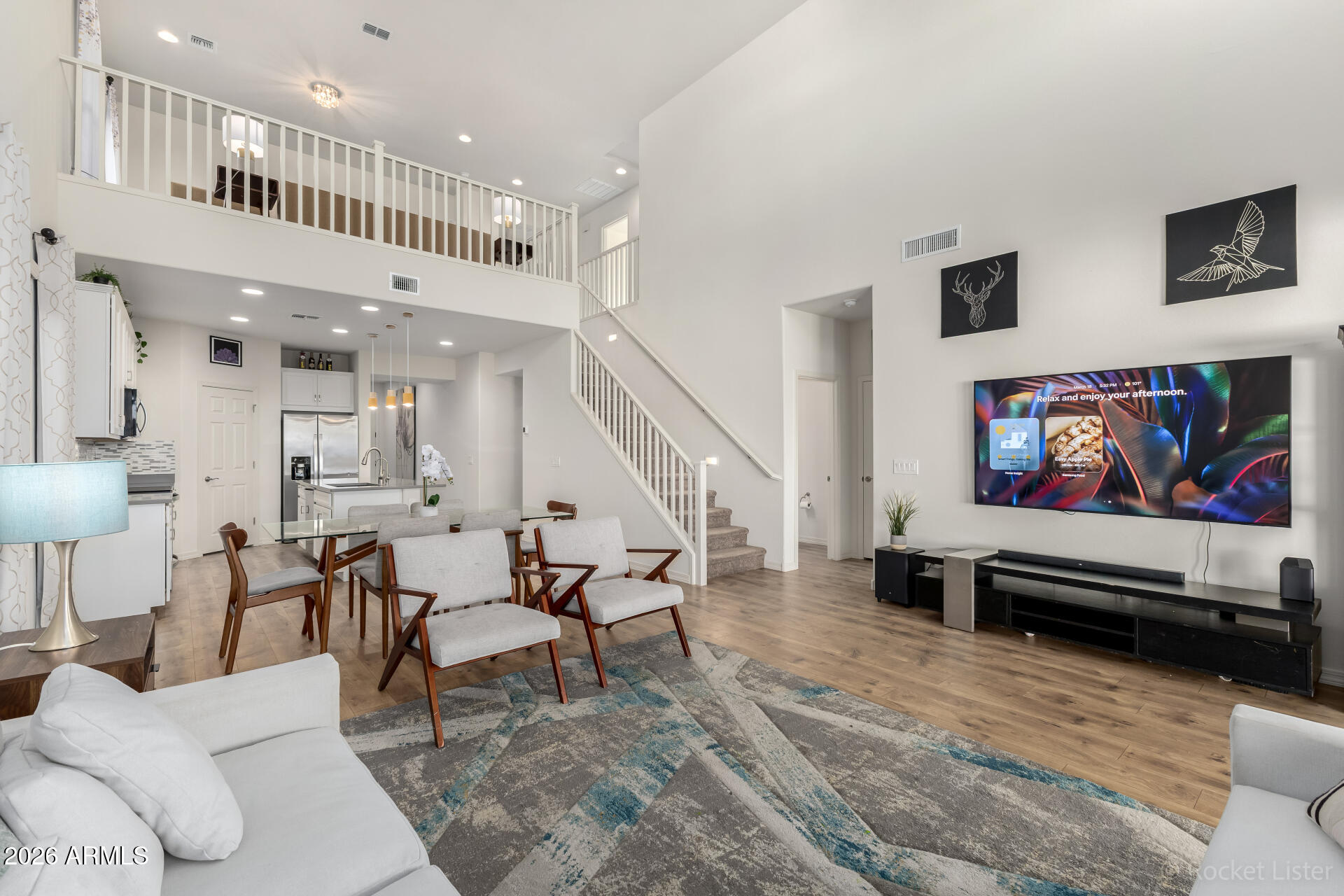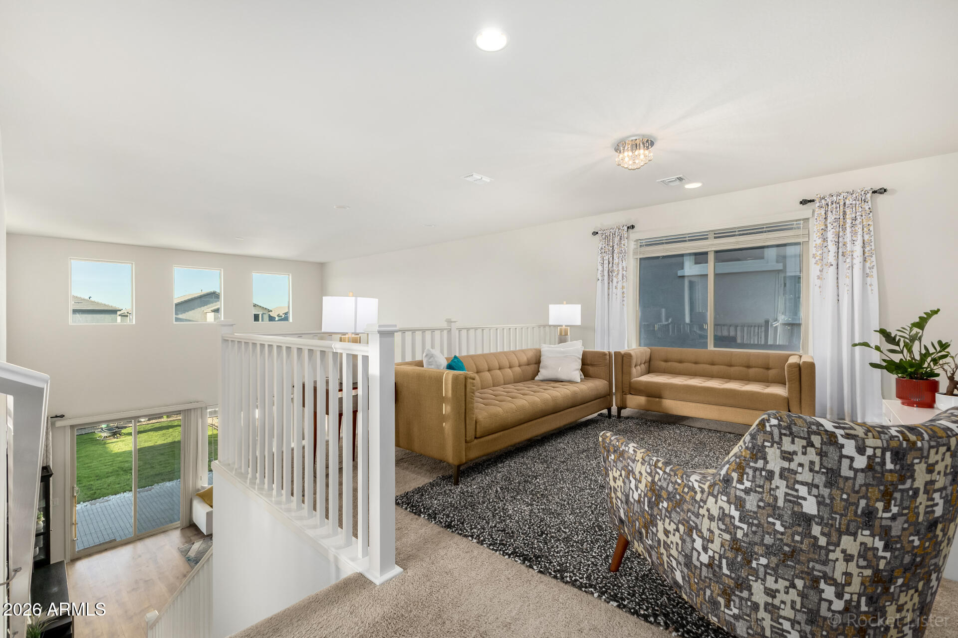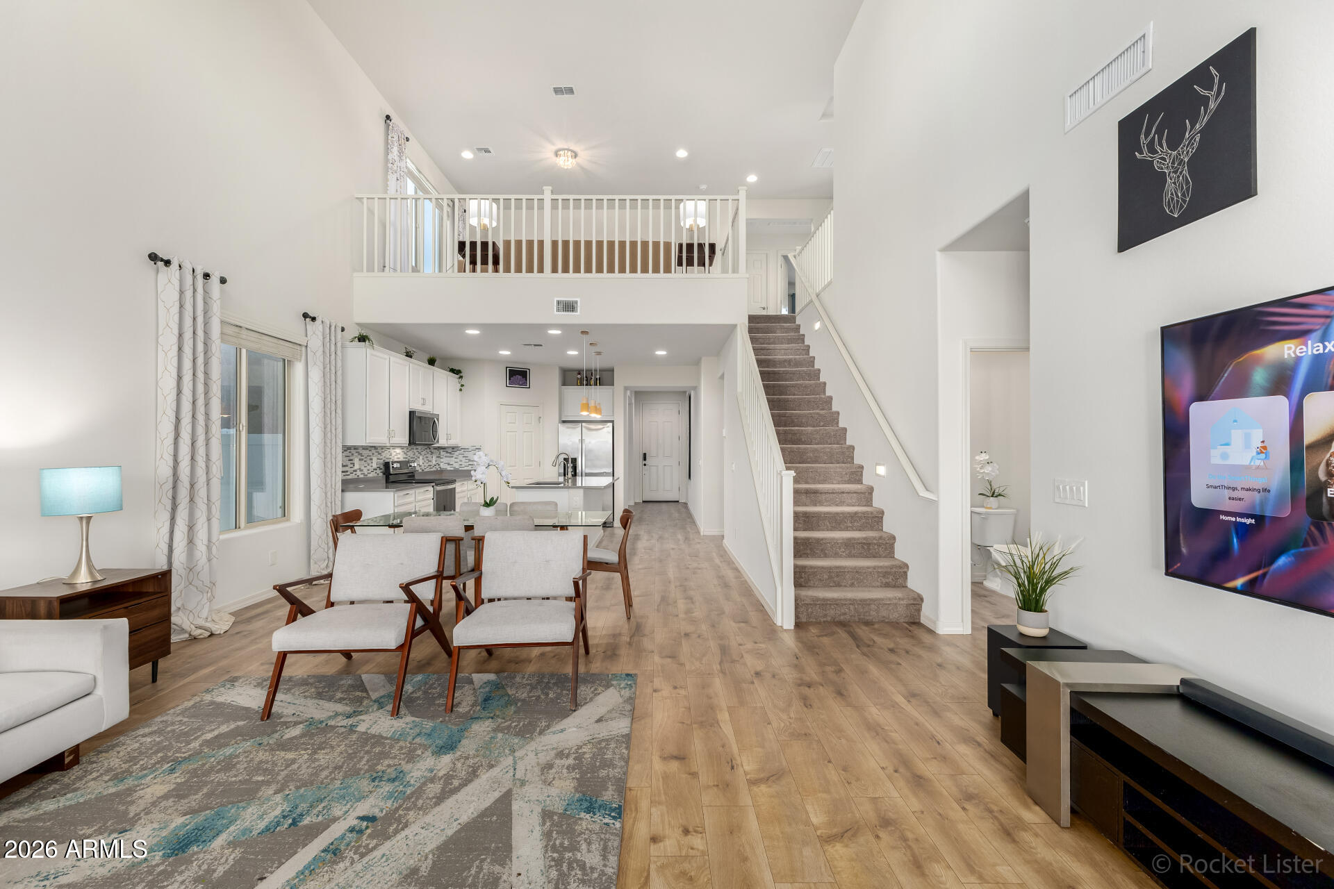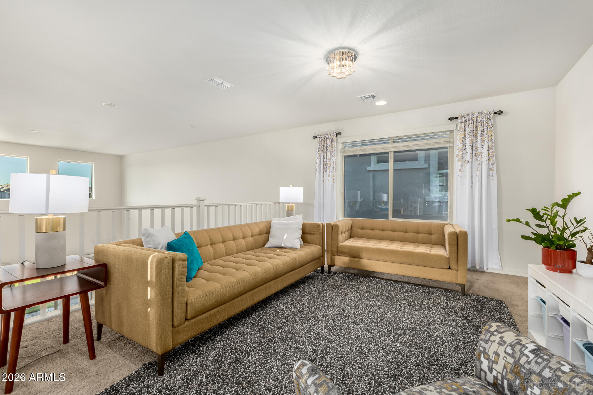 At the center of the home is a stunning chef's kitchen that seamlessly opens to the living room, highlighted by soaring ceilings and an abundance of natural light. This layout was designed for both everyday living and effortless entertaining. Upstairs, you're welcomed by a large loft space, ideal for a second living area, media room, or playroom. Surrounding the loft are three additional bedrooms and two bathrooms, all positioned to capture breathtaking views of South Mountain.