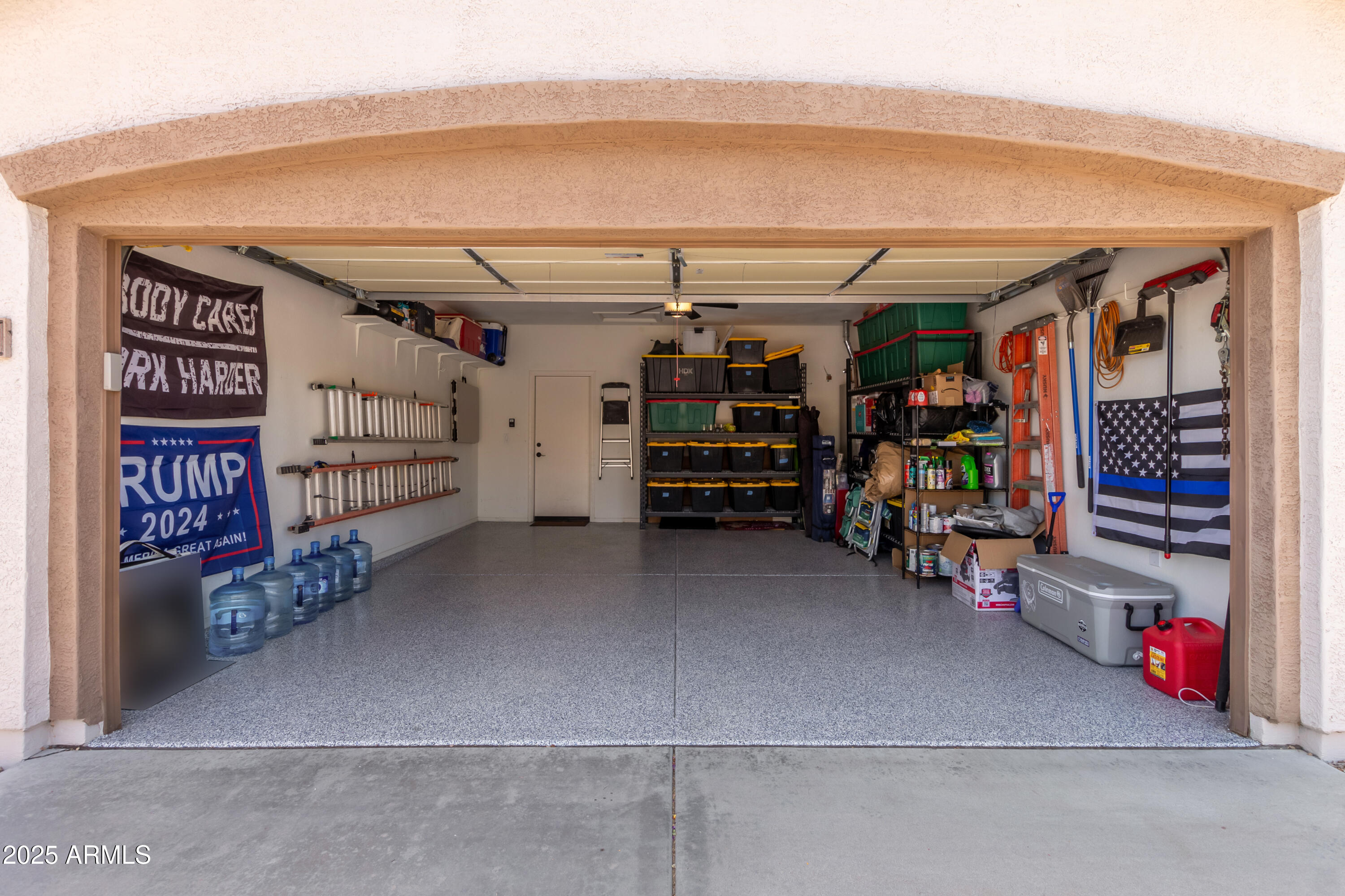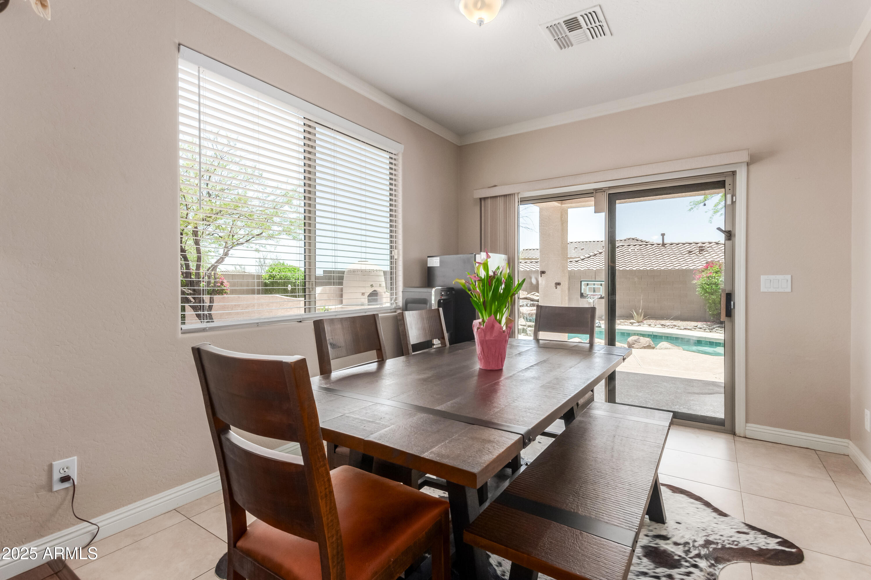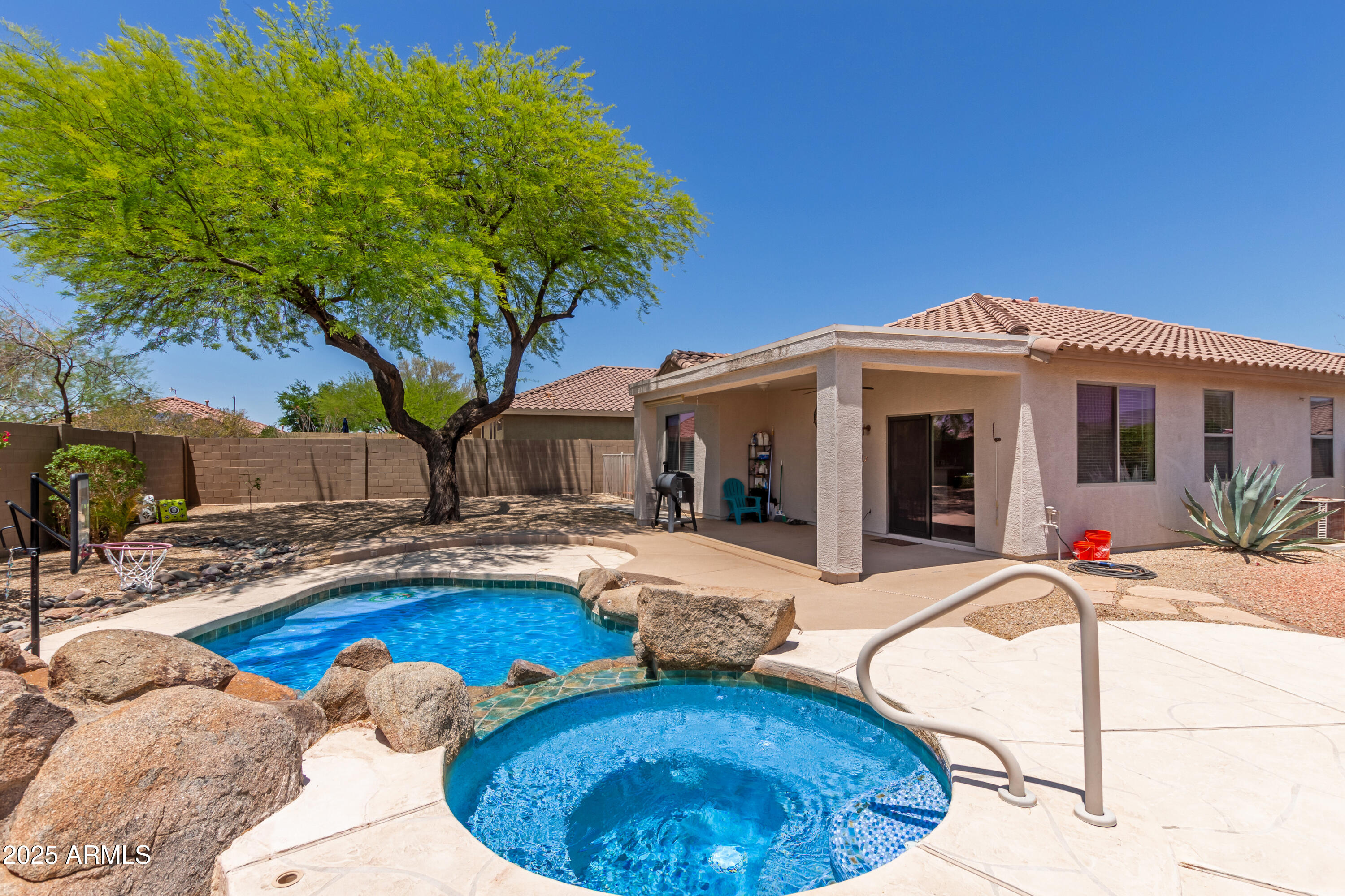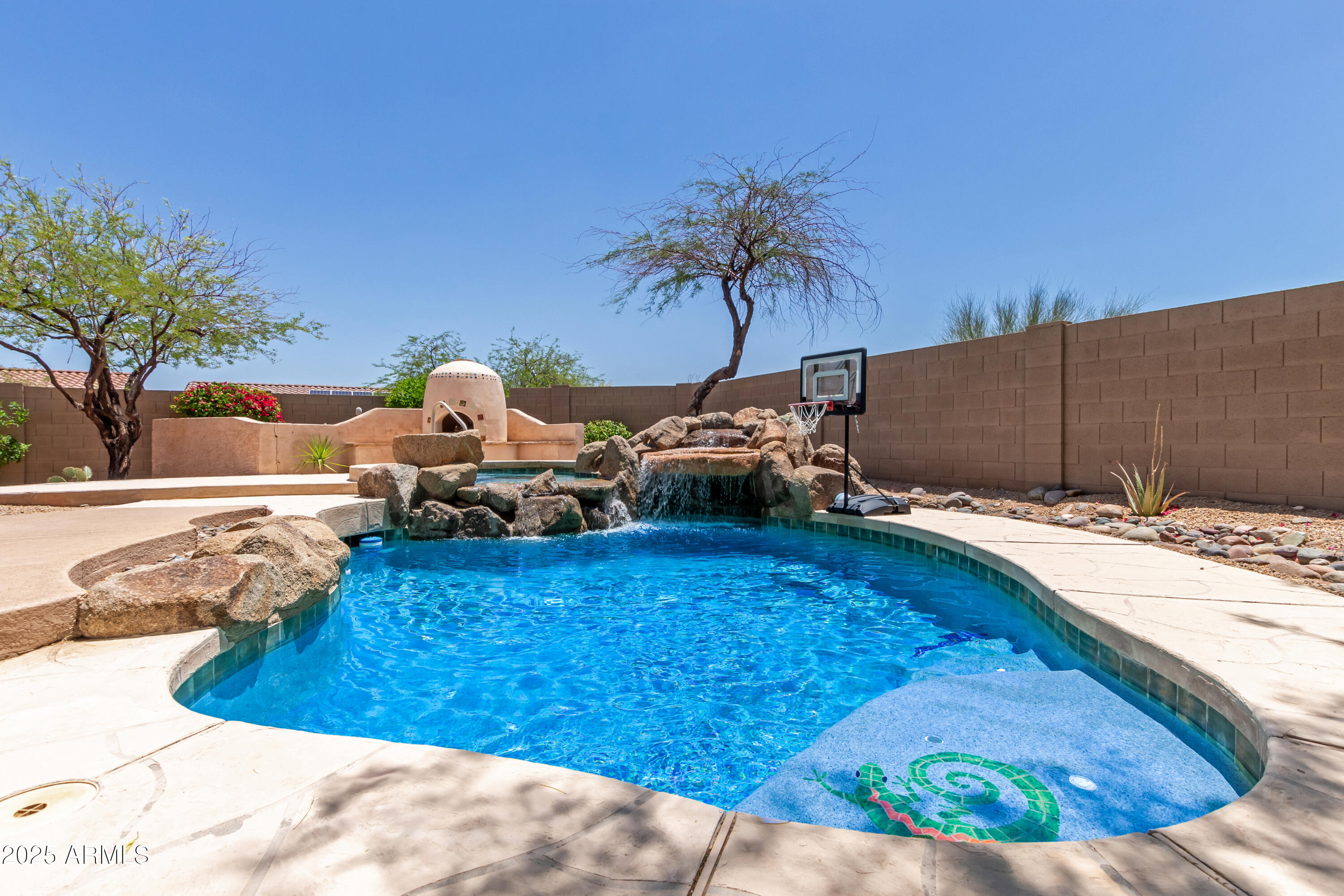 Priced to sell! This stunning 3-bed, 2-bath home in Anthem with 1,431 sq ft and a desirable split floor plan. Step inside to hardwood floors, elegant crown molding, and an updated kitchen with granite countertops, custom backsplash, and stainless-steel appliances. The spacious primary suite boasts dual sinks and a walk-in closet with built-ins. Enjoy a private RV side yard with gate, epoxy flooring garage, and a resort-style backyard with a covered patio, sparkling pool, and spa with waterfall features. New pool pump and automation system. Access to Anthem's top-tier amenities: heated pool, waterpark, fitness center, sports courts, parks, and more. A true must-see!