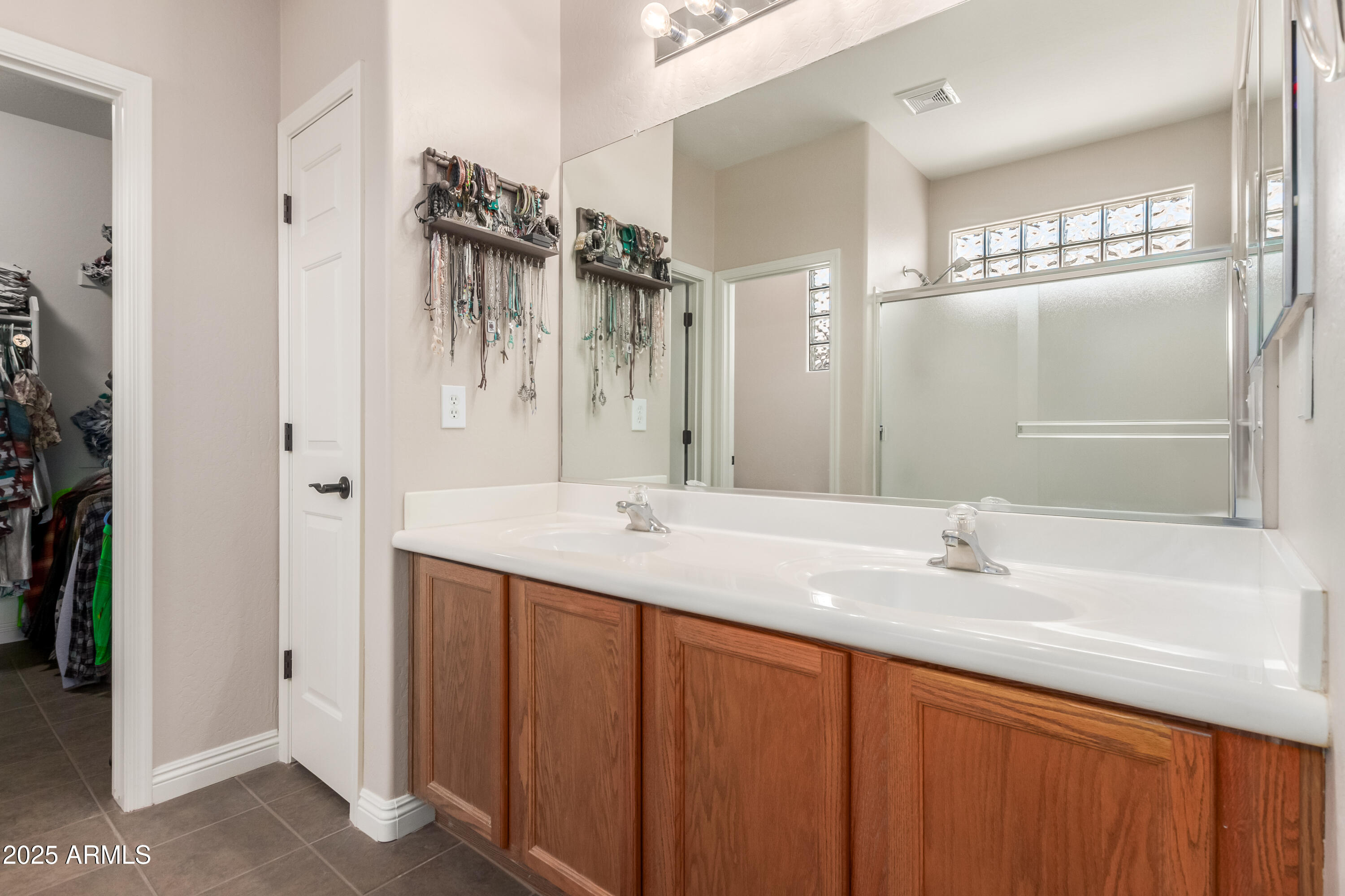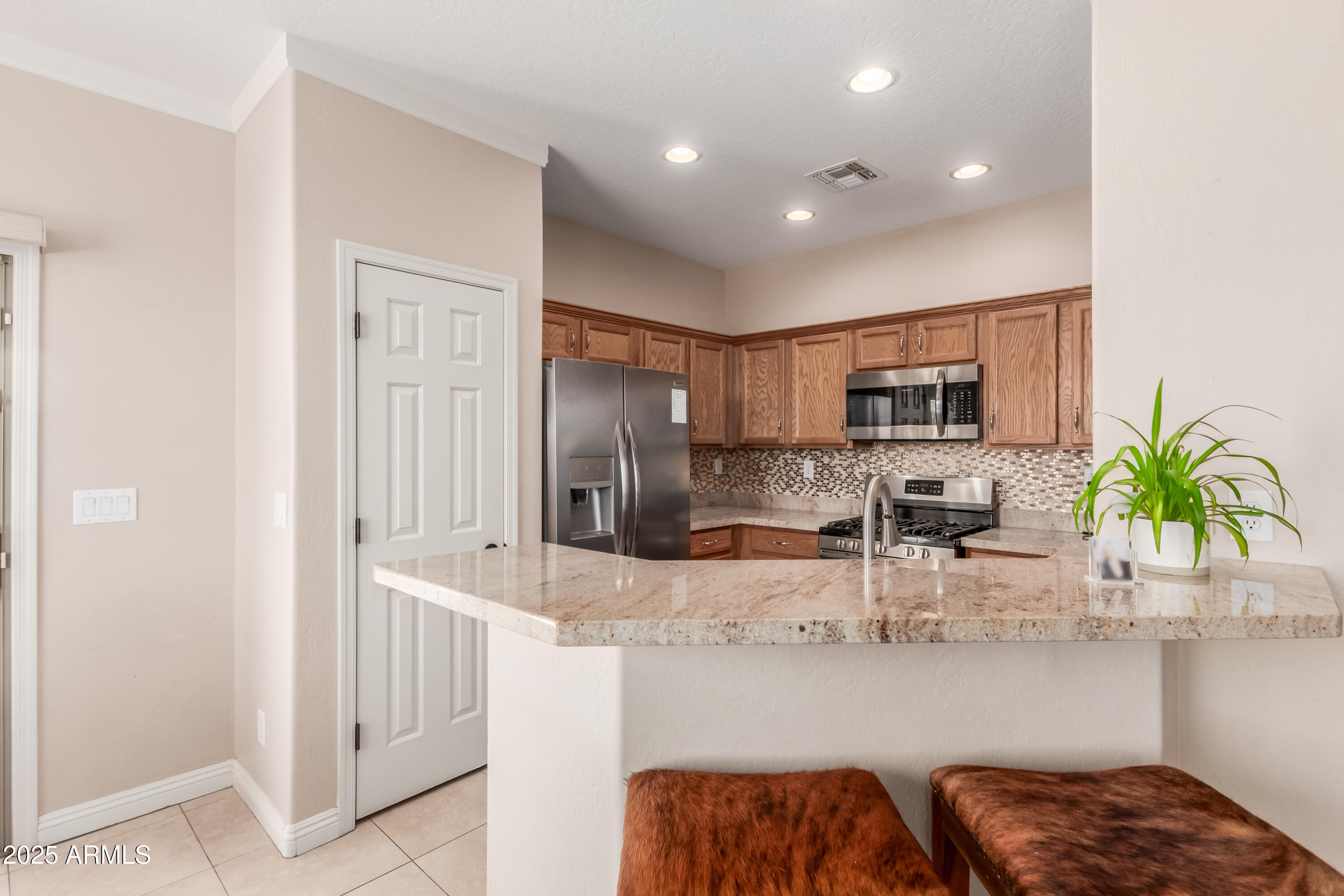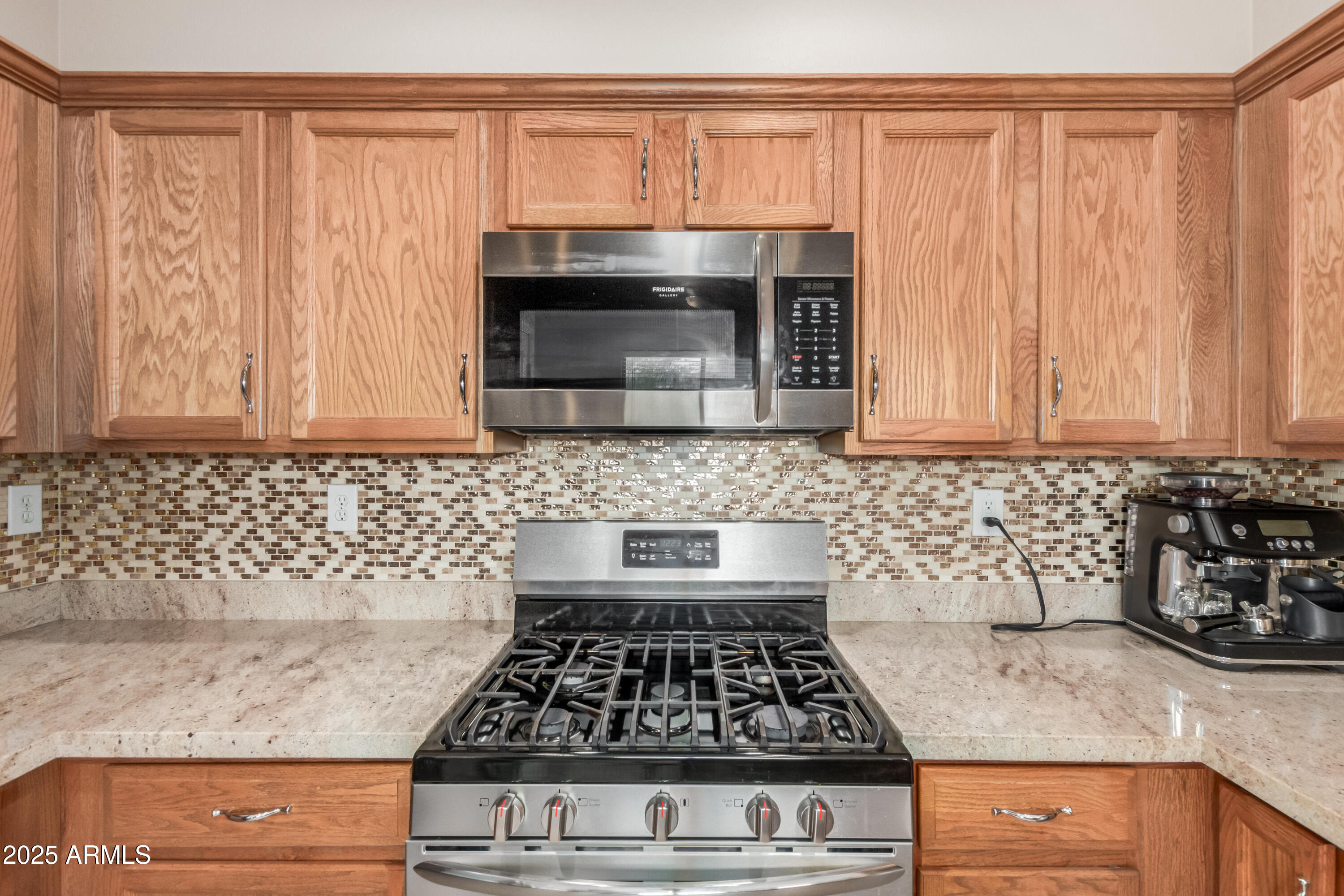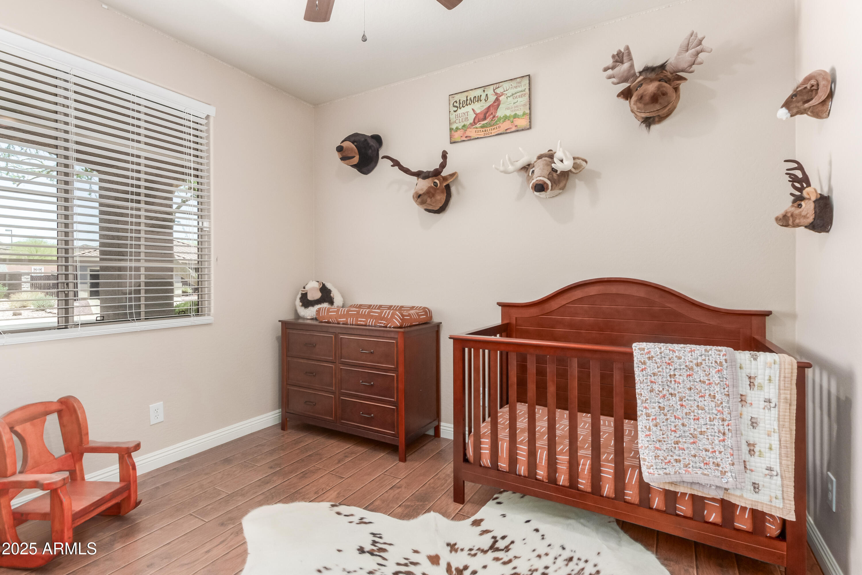 Priced to sell! This stunning 3-bed, 2-bath home in Anthem with 1,431 sq ft and a desirable split floor plan. Step inside to hardwood floors, elegant crown molding, and an updated kitchen with granite countertops, custom backsplash, and stainless-steel appliances. The spacious primary suite boasts dual sinks and a walk-in closet with built-ins. Enjoy a private RV side yard with gate, epoxy flooring garage, and a resort-style backyard with a covered patio, sparkling pool, and spa with waterfall features. New pool pump and automation system. Access to Anthem's top-tier amenities: heated pool, waterpark, fitness center, sports courts, parks, and more. A true must-see!