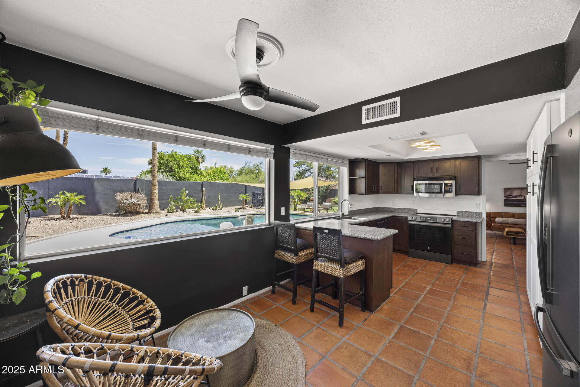LOCATION, location!! Nestled in the highly sought-after Shea Heights community, this updated home blends timeless Southwestern charm w/ modern style. You'll feel the perfect balance of character, comfort & convenience with large living spaces and a cozy fireplace. Inside, Saltillo & wood look tile floors pair beautifully w/ a modern kitchen & remodeled baths featuring tiled showers, new vanities & designer lighting. No Carpet! Big-ticket updates: newer A/C, windows, water heater & appliances. The quaint Arizona room opens to a huge backyard retreat w/ sparkling pool, grass & mountain views! Just steps from Cholla park & Phx Mountain Preserve trails, walk to elementary or bike to middle & high Schools! Minutes to restaurants, shopping and 15 min to Downtown/Sky Harbor Airport! NO HOA!