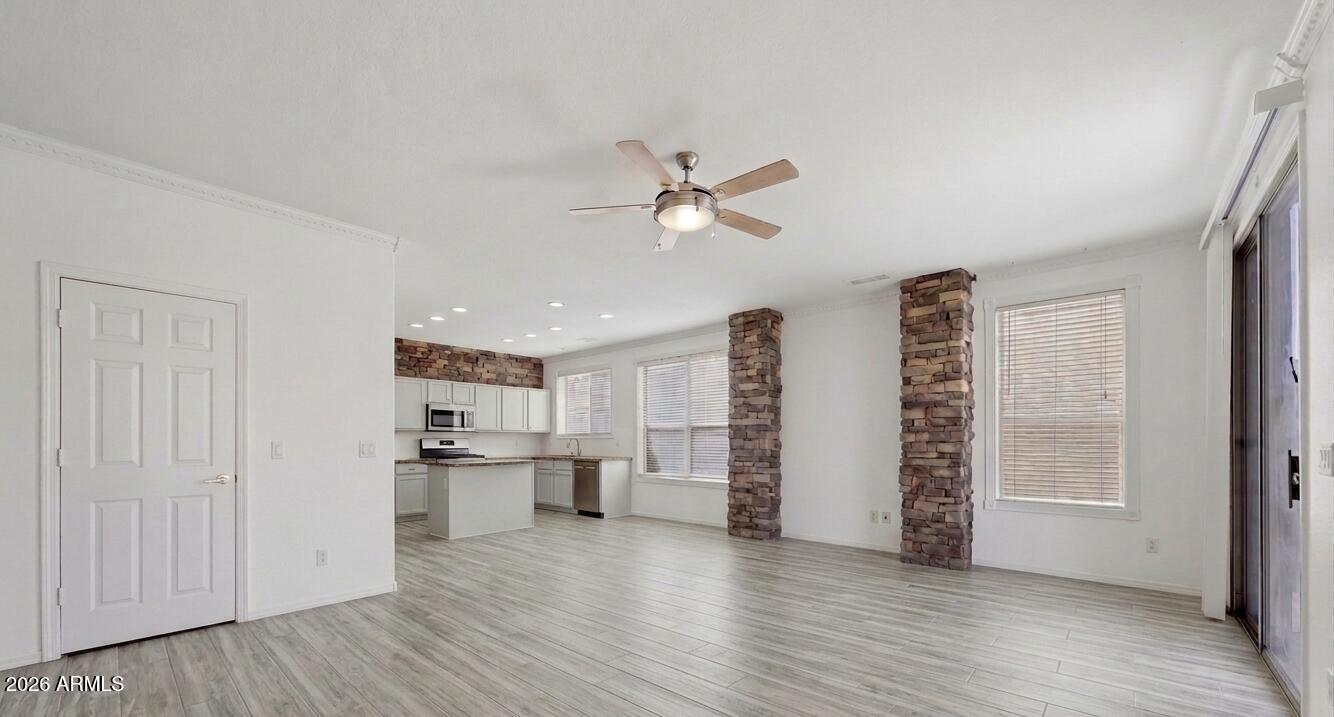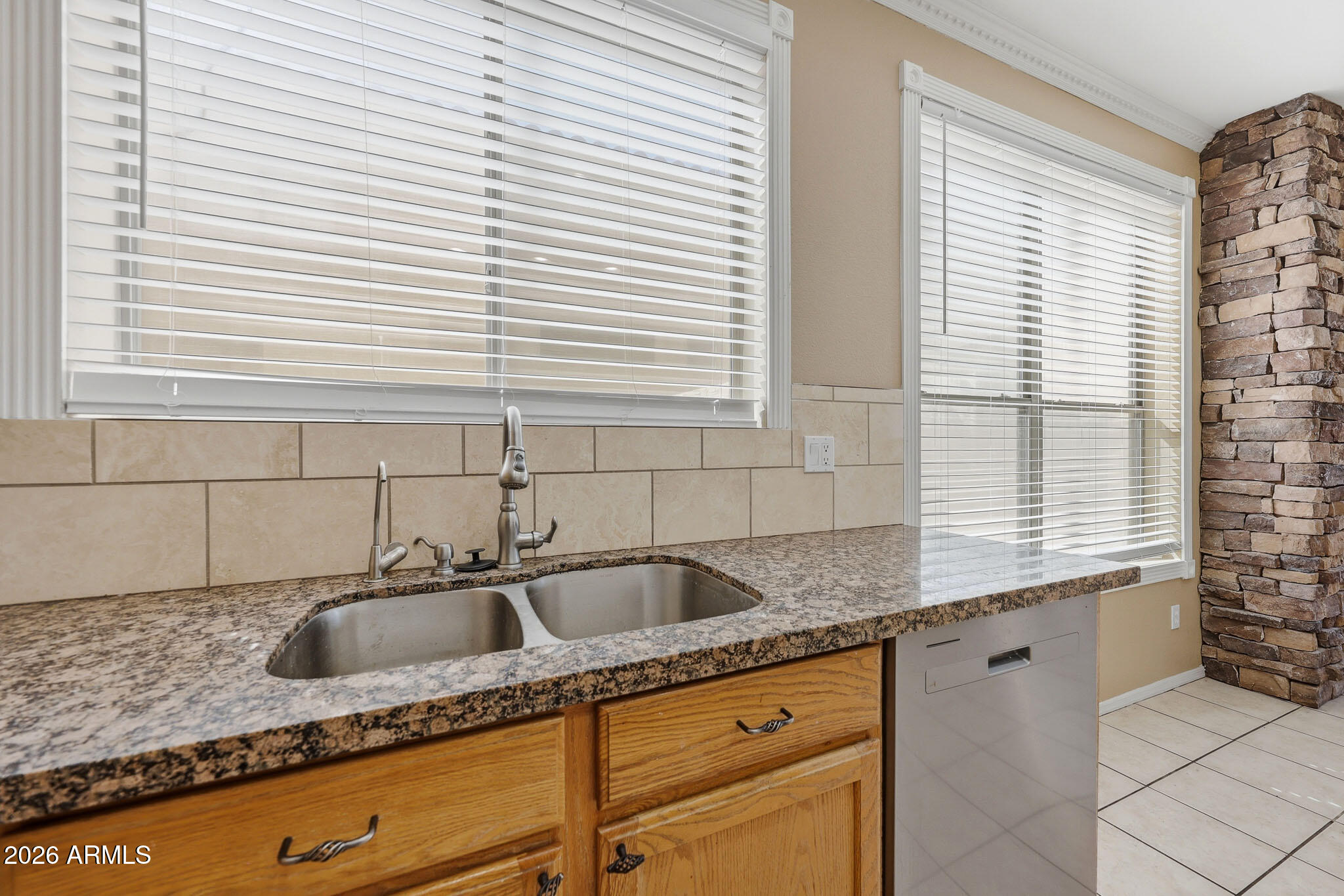 Welcome to this beautiful two-story home in the highly sought-after Terramar community in Peoria, located within the top-rated Deer Valley School District. Offering 4 bedrooms, 3 bathrooms, and nearly 2,800 square feet, this spacious home delivers the perfect blend of comfort, functionality, and Arizona-style outdoor living. This home is being thoughtfully refreshed with all-new interior paint, newly painted kitchen cabinetry, a stylish new backsplash, and brand-new wood-look tile flooring to be installed throughout the downstairs by the end of April. Inside, you'll find an inviting layout filled with natural light, a cozy fireplace, and generous living spaces ideal for both everyday living and entertaining. The kitchen is well-appointed with stainless steel appliances, rich maple cabinetry, a center island, and ample counter space, all opening seamlessly to the dining and living areas. Step outside to your private backyard retreat featuring a built-in outdoor kitchen and bar area, perfect for entertaining or relaxing with family and friends. Located in the desirable Terramar subdivision, close to parks, shopping, dining, and top-rated schools, this home truly offers the best of Peoria living.