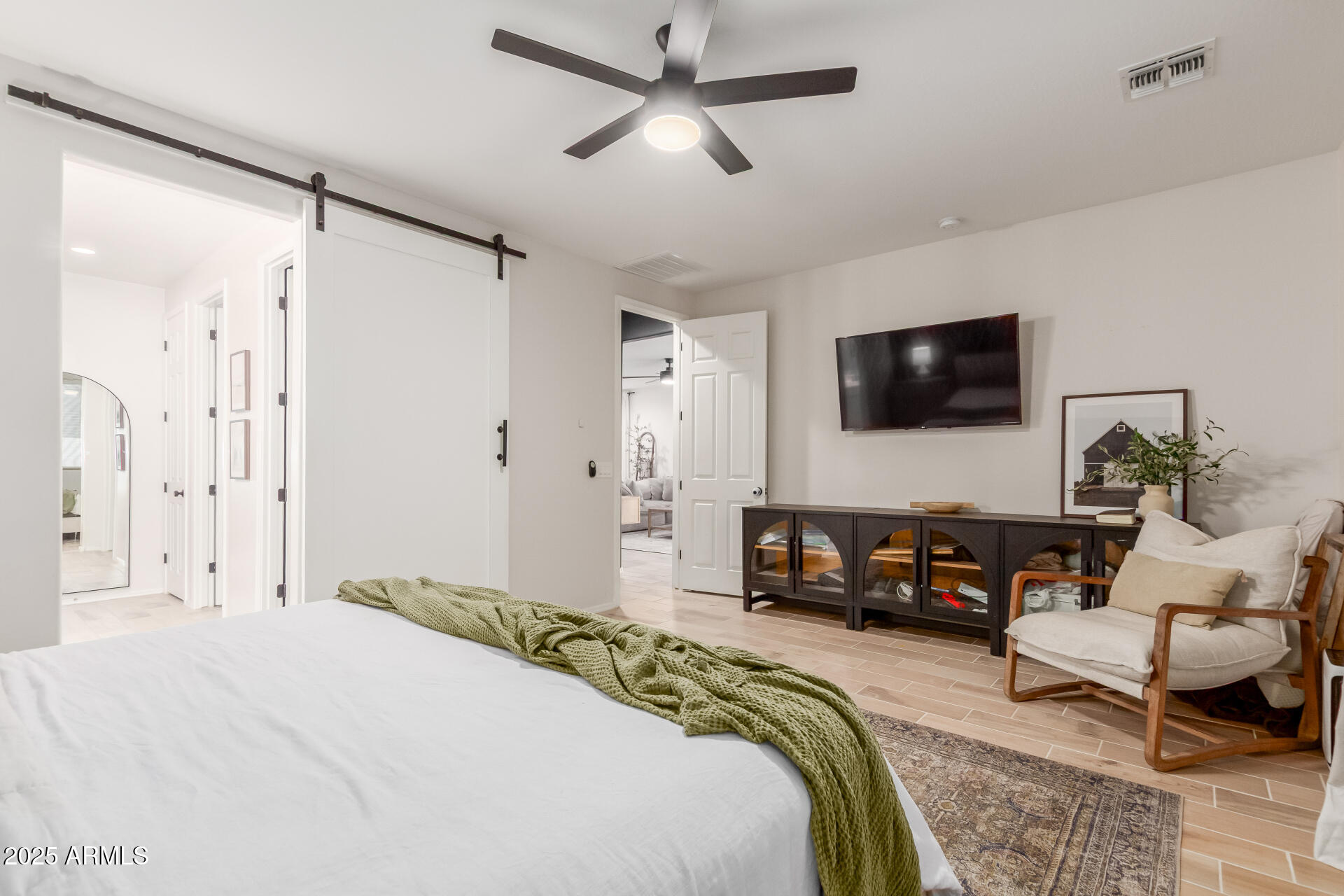 ASSUMABLE VA LOAN 2.2% RATE!! Welcome to this stunning Rancho Cabrillo residence with no neighbors behind--offering privacy, modern style, and effortless living! This beauty captivates from the start with its exquisite curb appeal, low-maintenance landscape, and a 3-car garage. Inside, discover a refined open floor plan crafted with designer touches throughout. Tall ceilings, recessed lighting, and tile flooring enhance the home's airy, contemporary feel. The impeccable kitchen impresses with white shaker cabinetry, a herringbone tile backsplash, quartz countertops, stainless steel appliances, and a spacious center island. The dining area flows effortlessly into the living room, where multi-sliding glass doors extend the living space outdoors for entertaining. MOVE IN READY! The primary suite is a true retreat, featuring a barn-style sliding door that leads into a pristine ensuite with dual vanities & a walk-in closet. All bedrooms feature elegant paneled accent walls, adding a sophisticated & modern touch to each space. The backyard is designed for easy enjoyment, offering a covered patio, a large paver patio, and turf for a low-maintenance yet inviting setting ideal for relaxing or hosting guests. Don't miss this exceptional home!