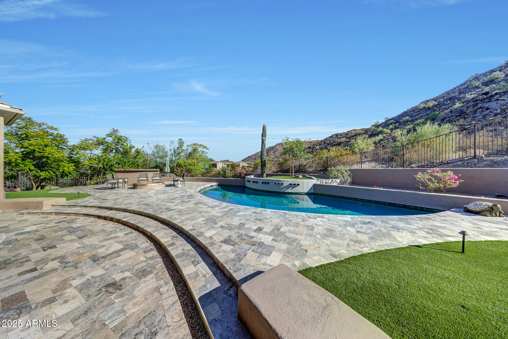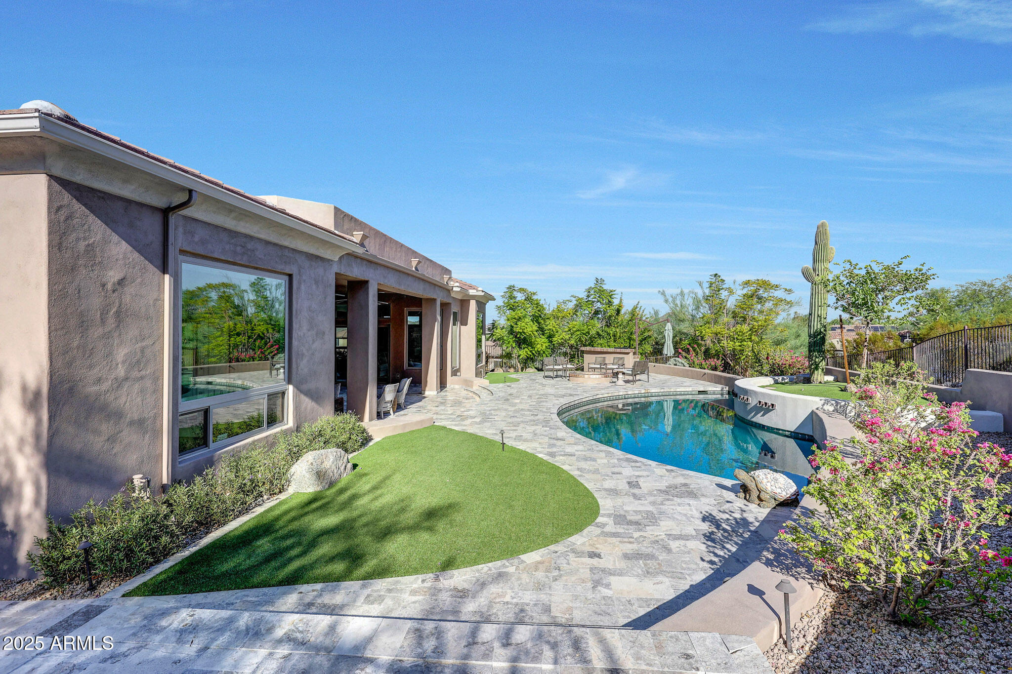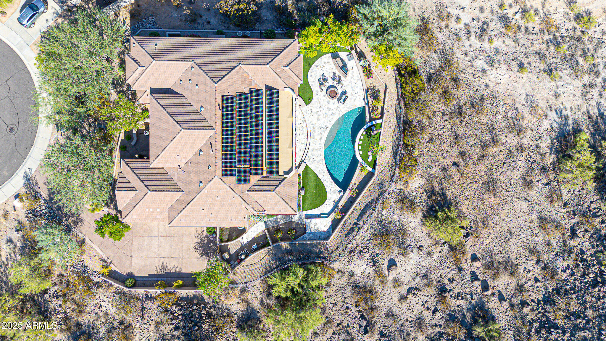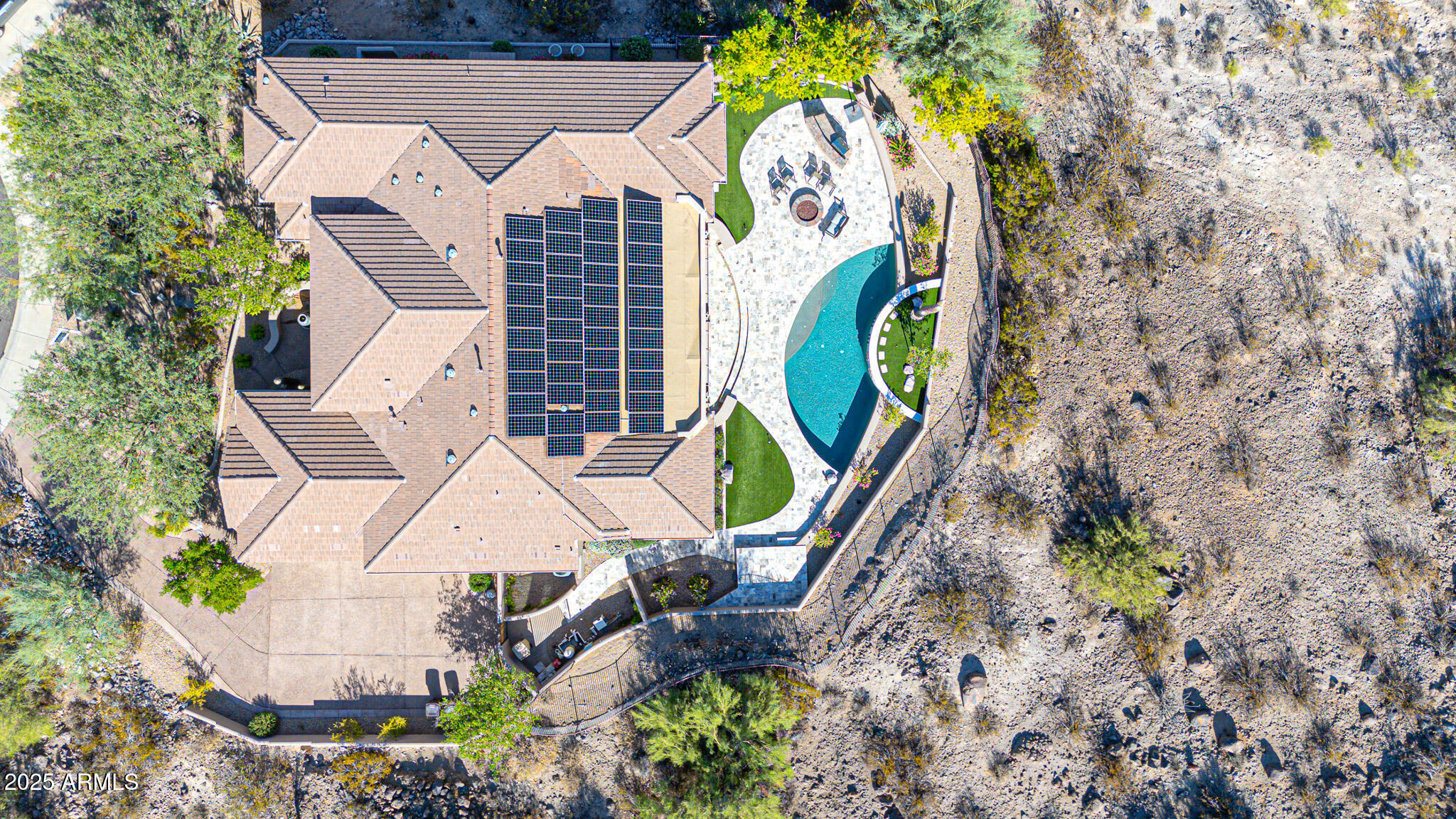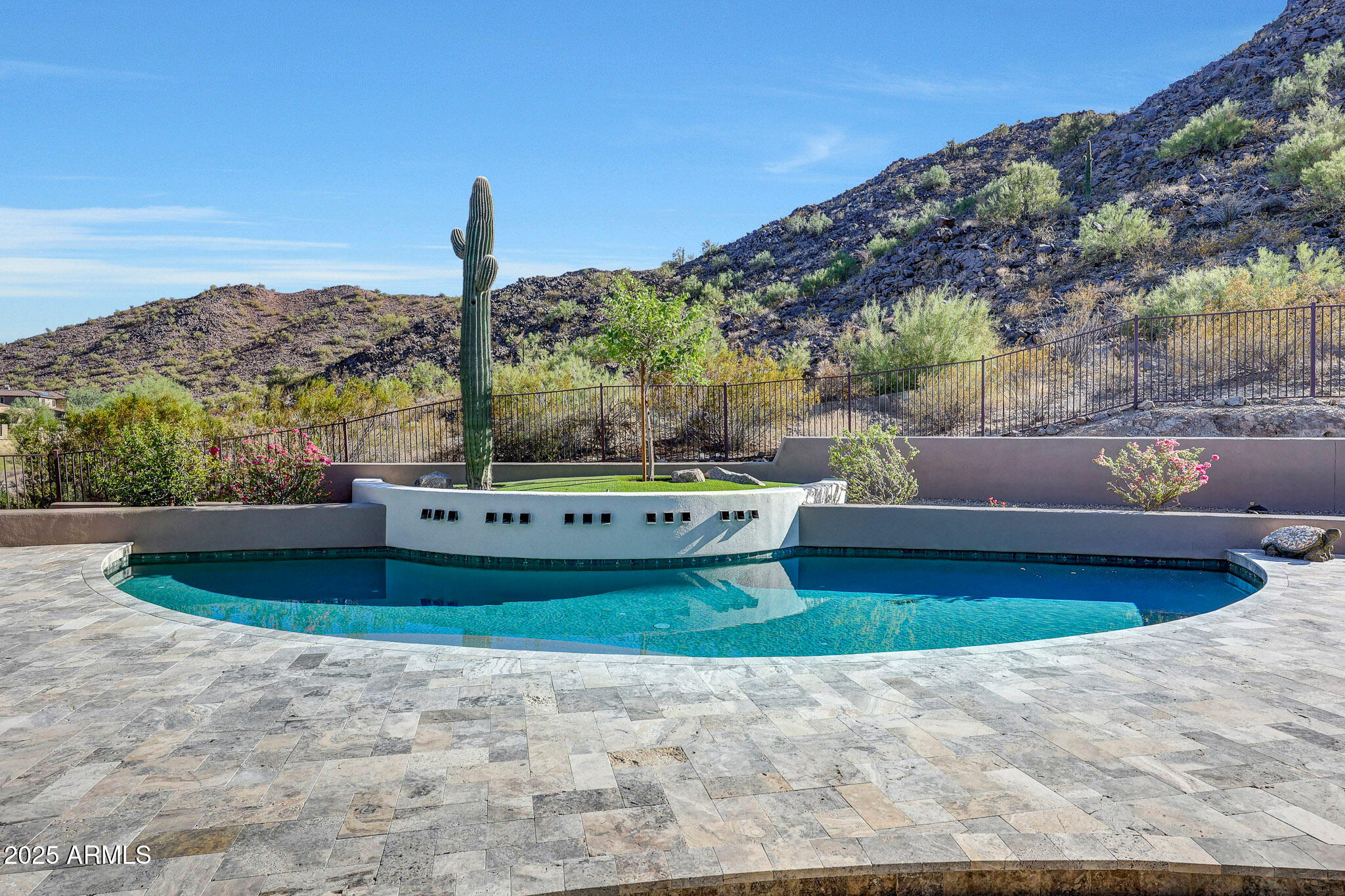 No detail was overlooked in this full-scale remodel. The kitchen has been entirely reimagined with all-new custom cabinetry--crisp white cabinets paired with striking black accent cabinetry for a modern, designer look. Quartz countertops, a marble backsplash, all-new stainless steel appliances, upgraded fixtures, and statement lighting create a true chef's kitchen that seamlessly blends function and style. An oversized island provides the perfect gathering space for family and guests alike. Both bathrooms have undergone a total transformation, featuring brand-new vanities with quartz counters, modern sinks, stylish mirrors, custom lighting, new cabinetry, and stunning marble and tile walk-in showers. Every finish was thoughtfully chosen to reflect a cohesive and luxurious aesthetic. The home also features new flooring throughout, updated lighting in every room, brand-new dual-pane windows, and fresh interior and exterior paint, giving the entire home a bright, clean, and modern feel. Custom remote-controlled shades have been installed throughout the home, allowing for effortless light control and privacy with the touch of a button. The owned solar system keeps energy costs remarkably low, with average utility bills around just $150 per year. The backyard is the true crown jewel of this home, backing directly to the mountain with no neighbors on either sideoffering exceptional privacy and unobstructed desert views. Designed for both relaxation and entertaining, the space includes an architecturally designed pool, expansive travertine paver patio, synthetic grass, built-in BBQ, and custom desert landscaping that blends seamlessly with the natural surroundings. Whether hosting a gathering or enjoying a quiet evening under the stars, this outdoor oasis delivers unmatched ambiance and serenity. This fully modernized home combines thoughtful upgrades, refined finishes, and a premier lot in one of the Valley's most desirable communities. Homes like this are raredon't miss your opportunity to own a truly one-of-a-kind property in Westwing Mountain.