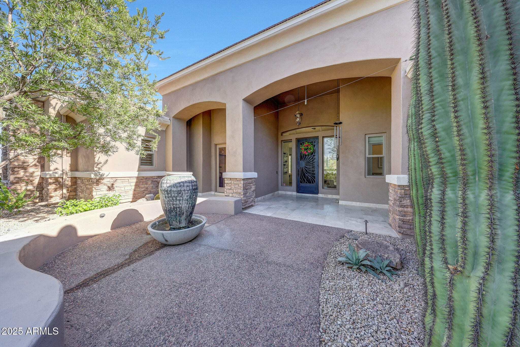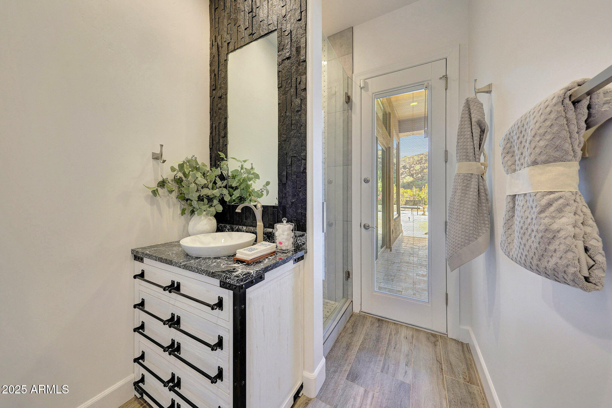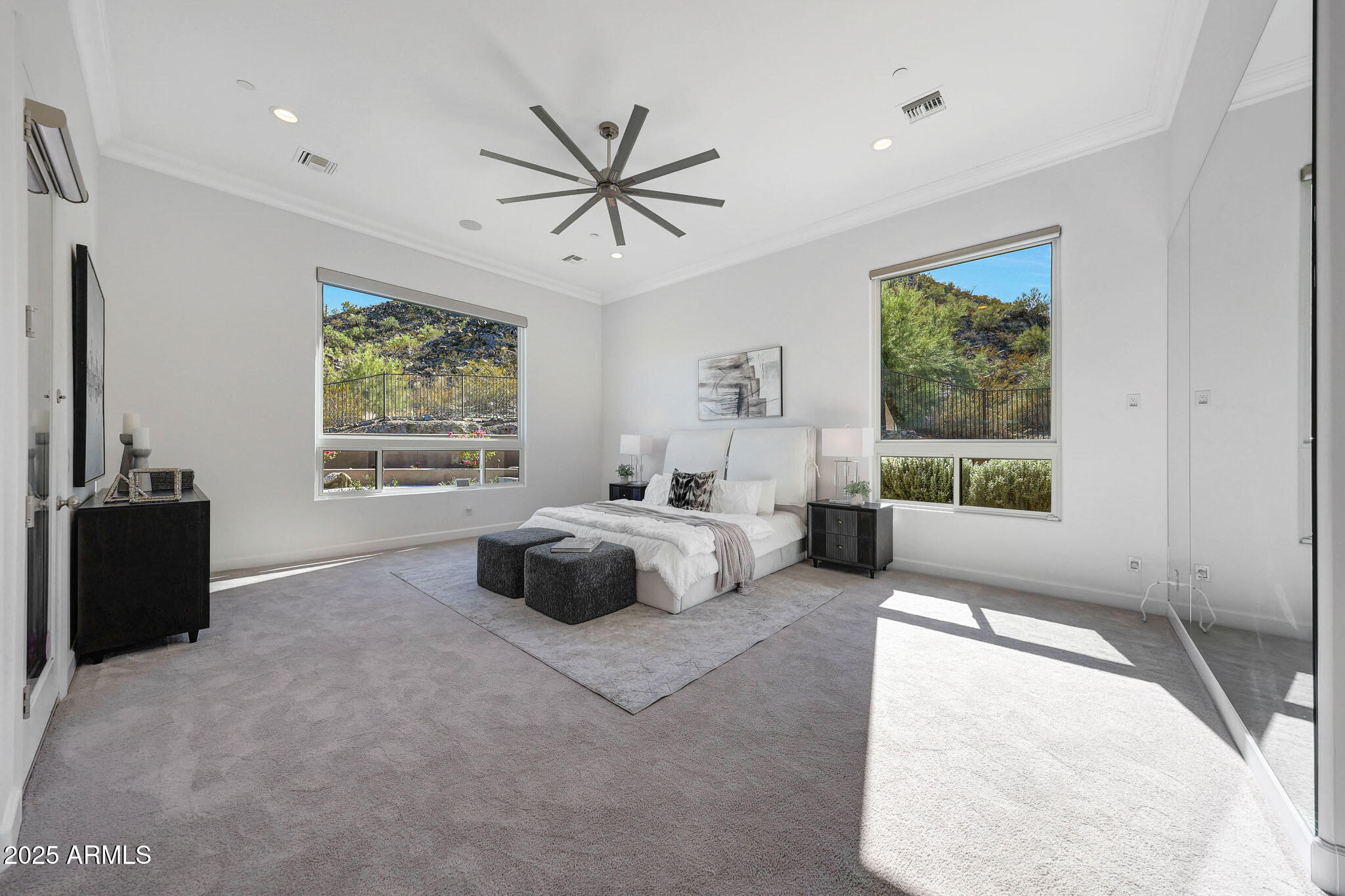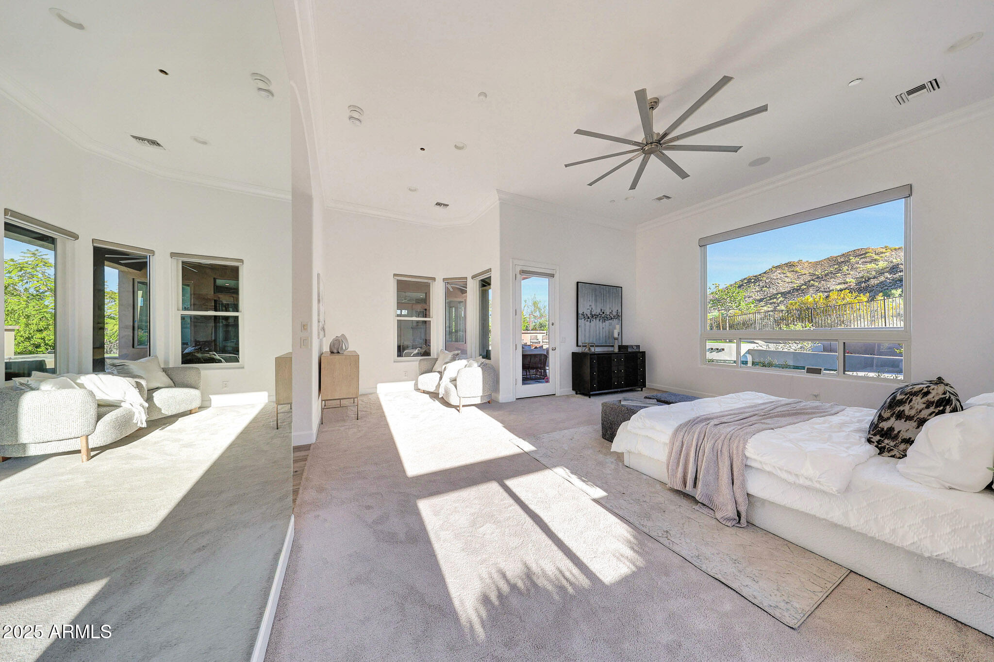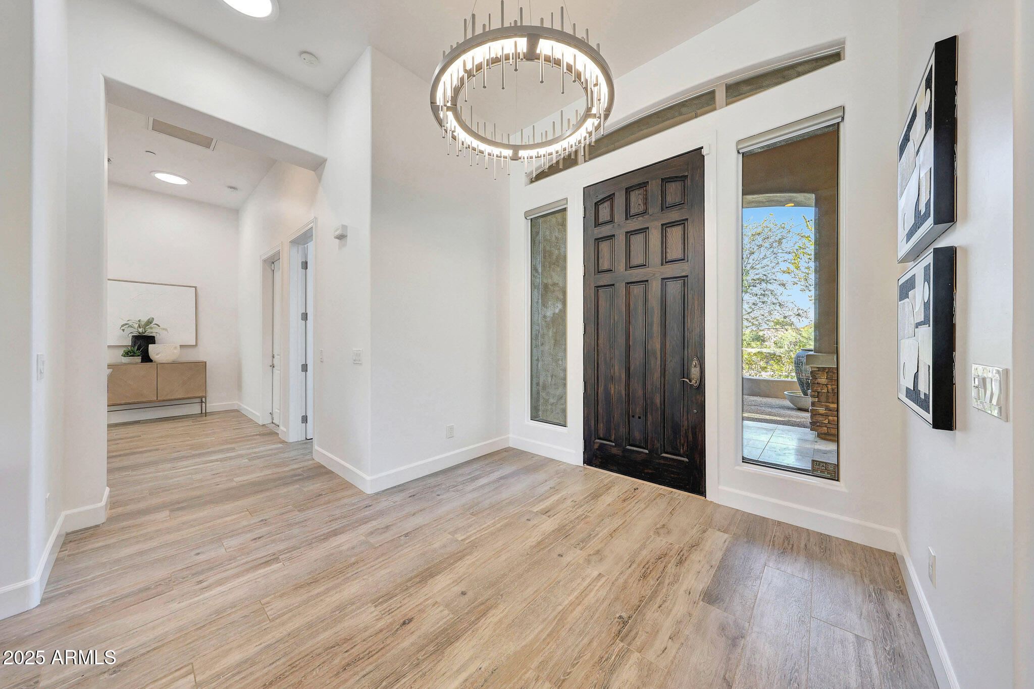 No detail was overlooked in this full-scale remodel. The kitchen has been entirely reimagined with all-new custom cabinetry--crisp white cabinets paired with striking black accent cabinetry for a modern, designer look. Quartz countertops, a marble backsplash, all-new stainless steel appliances, upgraded fixtures, and statement lighting create a true chef's kitchen that seamlessly blends function and style. An oversized island provides the perfect gathering space for family and guests alike. Both bathrooms have undergone a total transformation, featuring brand-new vanities with quartz counters, modern sinks, stylish mirrors, custom lighting, new cabinetry, and stunning marble and tile walk-in showers. Every finish was thoughtfully chosen to reflect a cohesive and luxurious aesthetic. The home also features new flooring throughout, updated lighting in every room, brand-new dual-pane windows, and fresh interior and exterior paint, giving the entire home a bright, clean, and modern feel. Custom remote-controlled shades have been installed throughout the home, allowing for effortless light control and privacy with the touch of a button. The owned solar system keeps energy costs remarkably low, with average utility bills around just $150 per year. The backyard is the true crown jewel of this home, backing directly to the mountain with no neighbors on either sideoffering exceptional privacy and unobstructed desert views. Designed for both relaxation and entertaining, the space includes an architecturally designed pool, expansive travertine paver patio, synthetic grass, built-in BBQ, and custom desert landscaping that blends seamlessly with the natural surroundings. Whether hosting a gathering or enjoying a quiet evening under the stars, this outdoor oasis delivers unmatched ambiance and serenity. This fully modernized home combines thoughtful upgrades, refined finishes, and a premier lot in one of the Valley's most desirable communities. Homes like this are raredon't miss your opportunity to own a truly one-of-a-kind property in Westwing Mountain.
