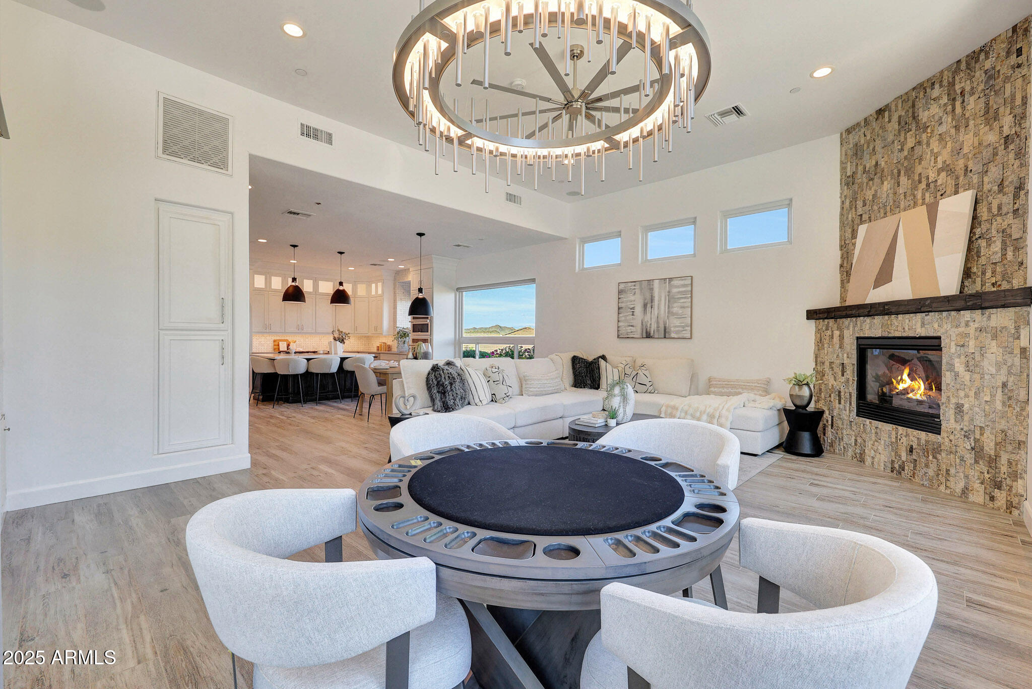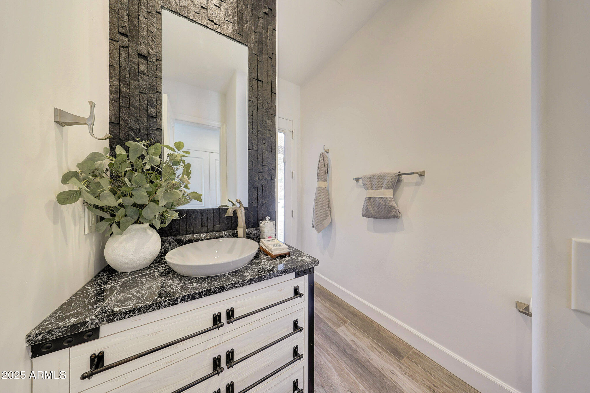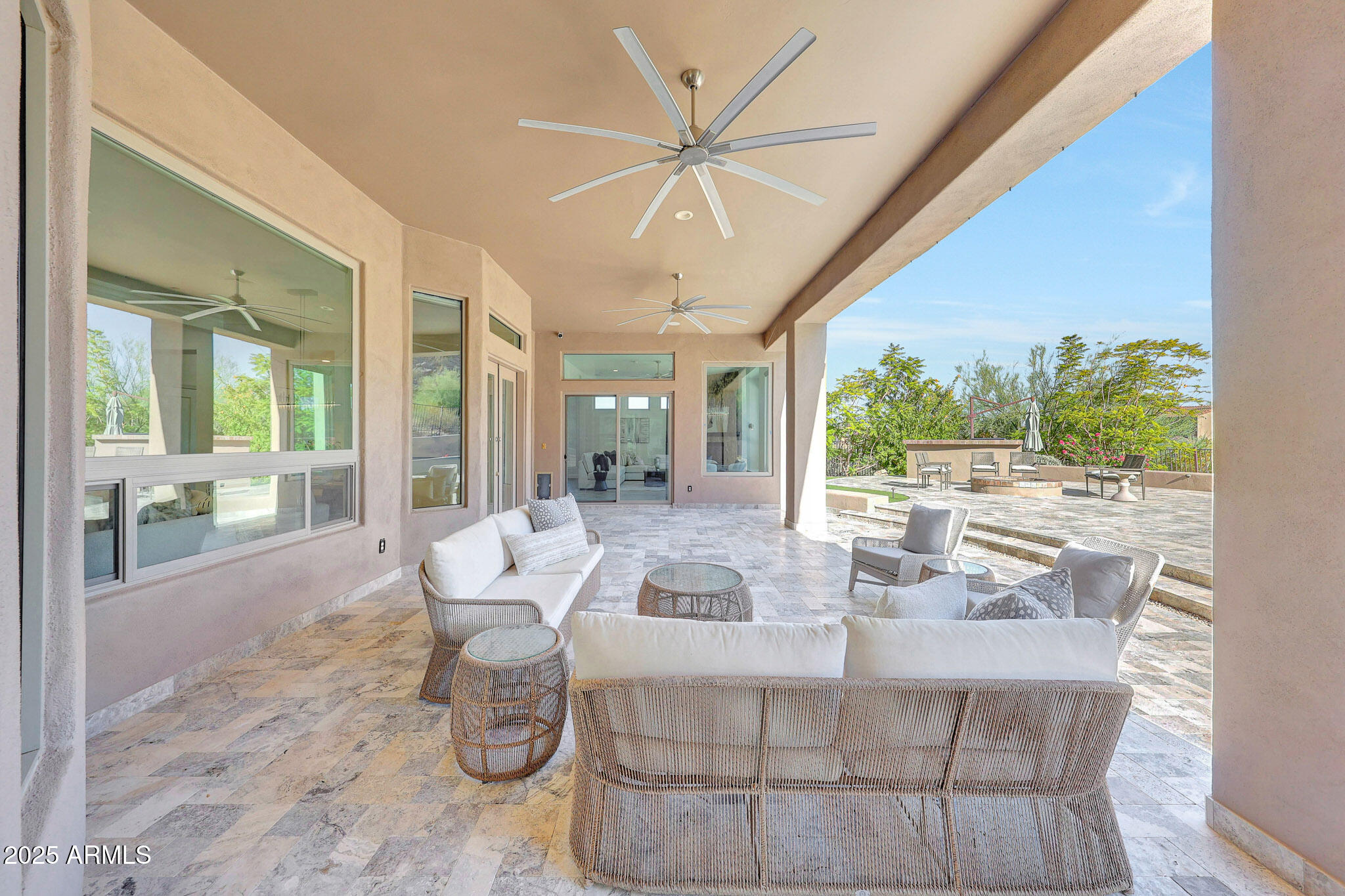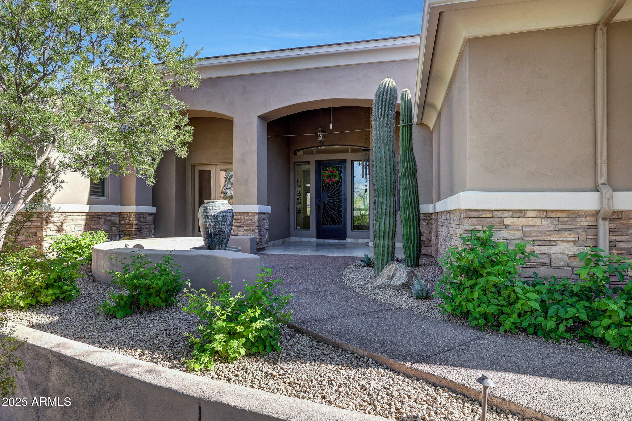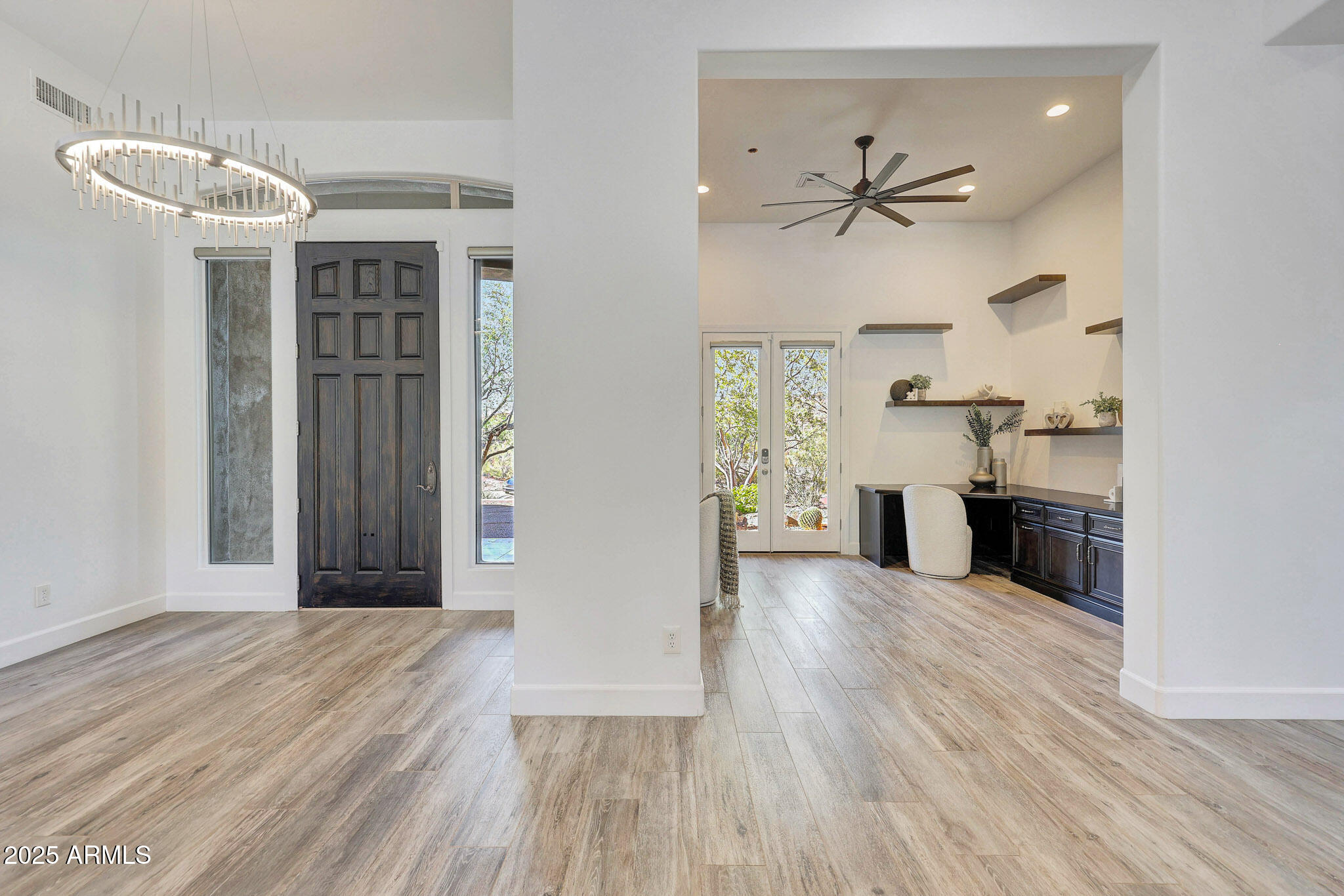 No detail was overlooked in this full-scale remodel. The kitchen has been entirely reimagined with all-new custom cabinetry--crisp white cabinets paired with striking black accent cabinetry for a modern, designer look. Quartz countertops, a marble backsplash, all-new stainless steel appliances, upgraded fixtures, and statement lighting create a true chef's kitchen that seamlessly blends function and style. An oversized island provides the perfect gathering space for family and guests alike. Both bathrooms have undergone a total transformation, featuring brand-new vanities with quartz counters, modern sinks, stylish mirrors, custom lighting, new cabinetry, and stunning marble and tile walk-in showers. Every finish was thoughtfully chosen to reflect a cohesive and luxurious aesthetic. The home also features new flooring throughout, updated lighting in every room, brand-new dual-pane windows, and fresh interior and exterior paint, giving the entire home a bright, clean, and modern feel. Custom remote-controlled shades have been installed throughout the home, allowing for effortless light control and privacy with the touch of a button. The owned solar system keeps energy costs remarkably low, with average utility bills around just $150 per year. The backyard is the true crown jewel of this home, backing directly to the mountain with no neighbors on either sideoffering exceptional privacy and unobstructed desert views. Designed for both relaxation and entertaining, the space includes an architecturally designed pool, expansive travertine paver patio, synthetic grass, built-in BBQ, and custom desert landscaping that blends seamlessly with the natural surroundings. Whether hosting a gathering or enjoying a quiet evening under the stars, this outdoor oasis delivers unmatched ambiance and serenity. This fully modernized home combines thoughtful upgrades, refined finishes, and a premier lot in one of the Valley's most desirable communities. Homes like this are raredon't miss your opportunity to own a truly one-of-a-kind property in Westwing Mountain.