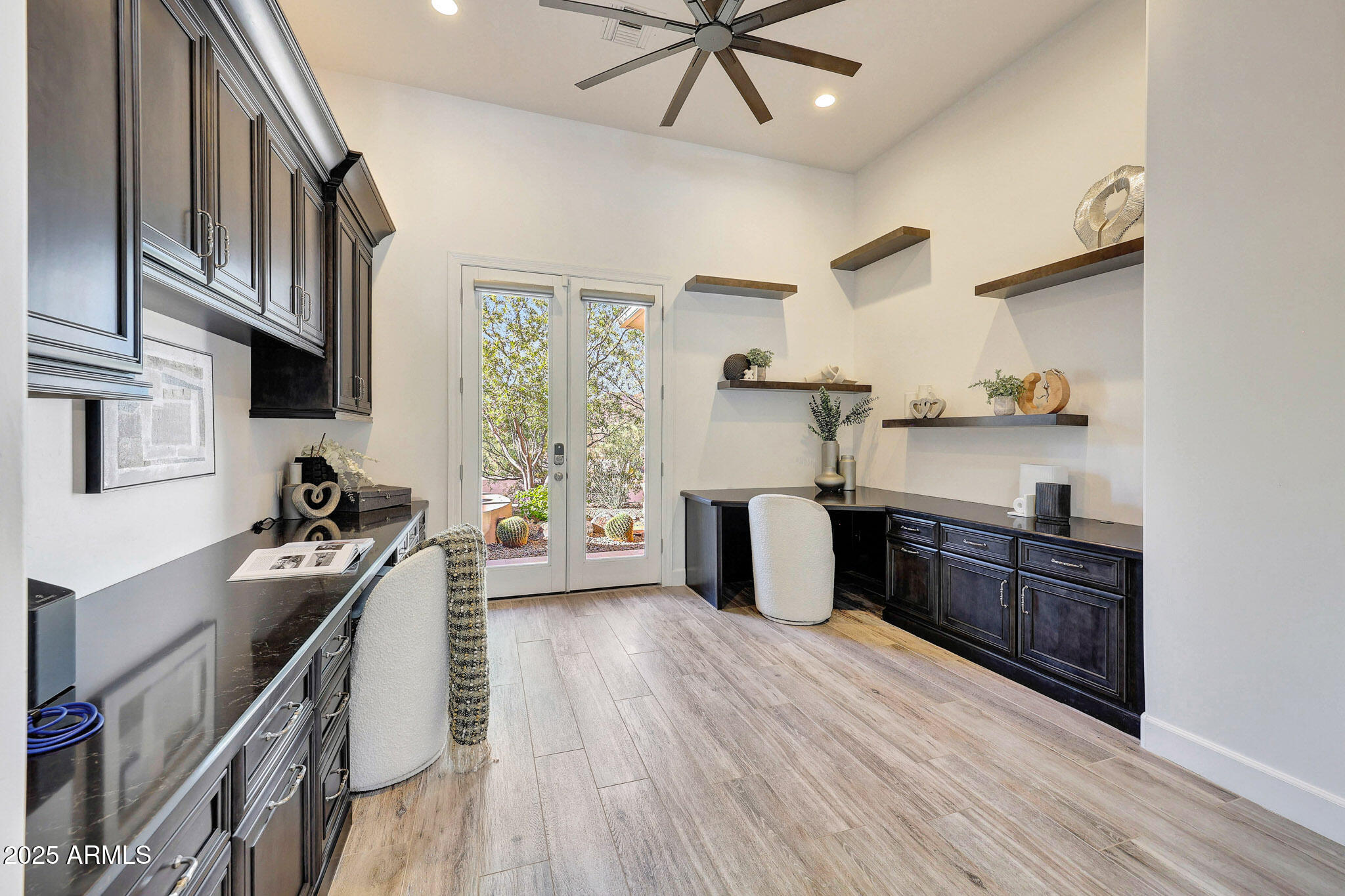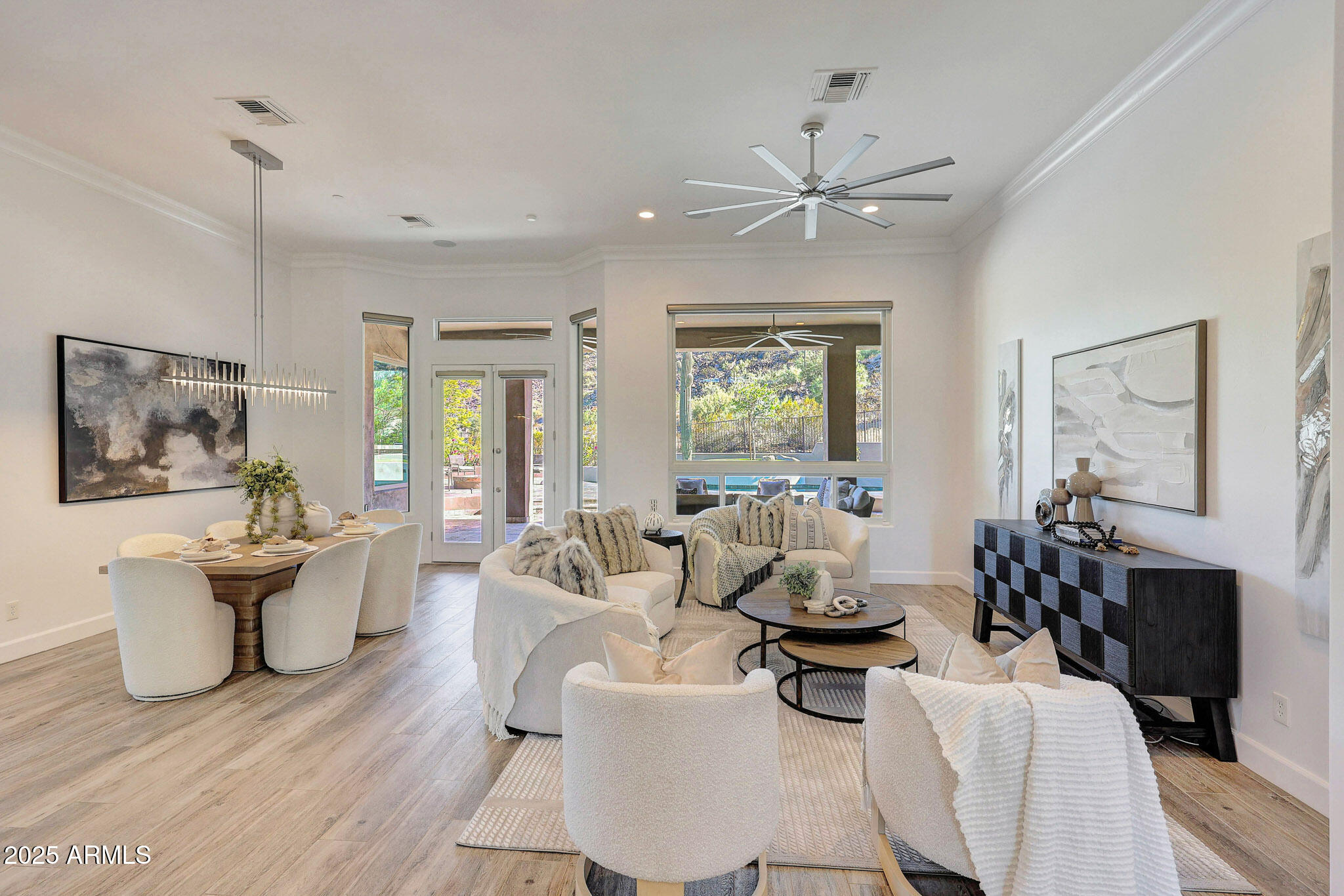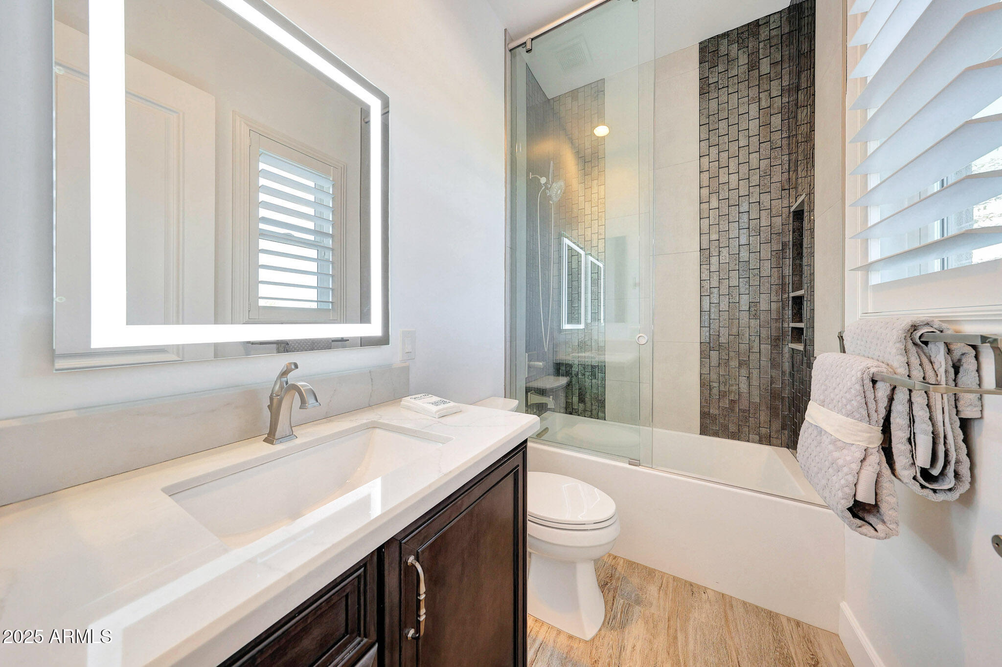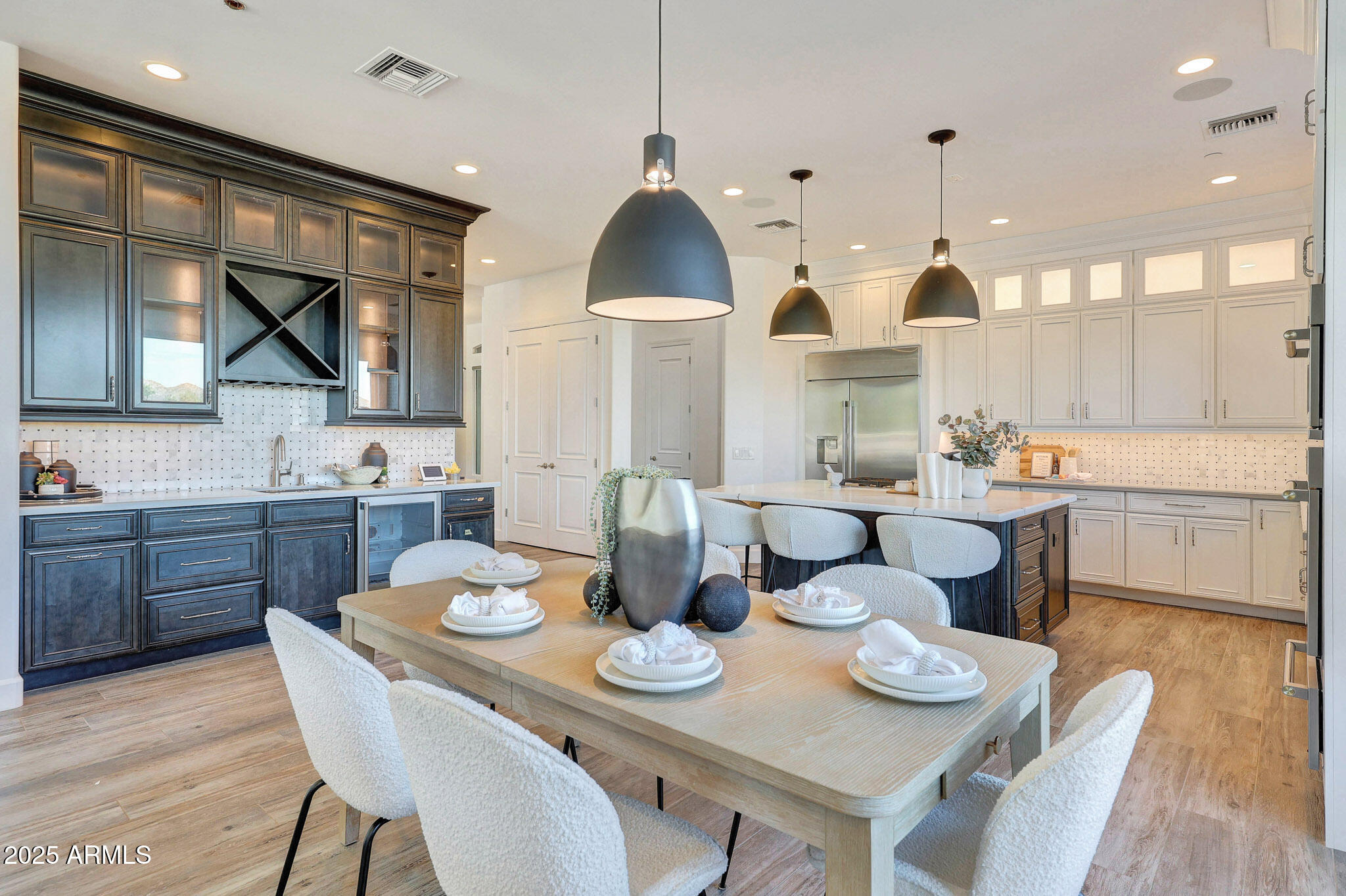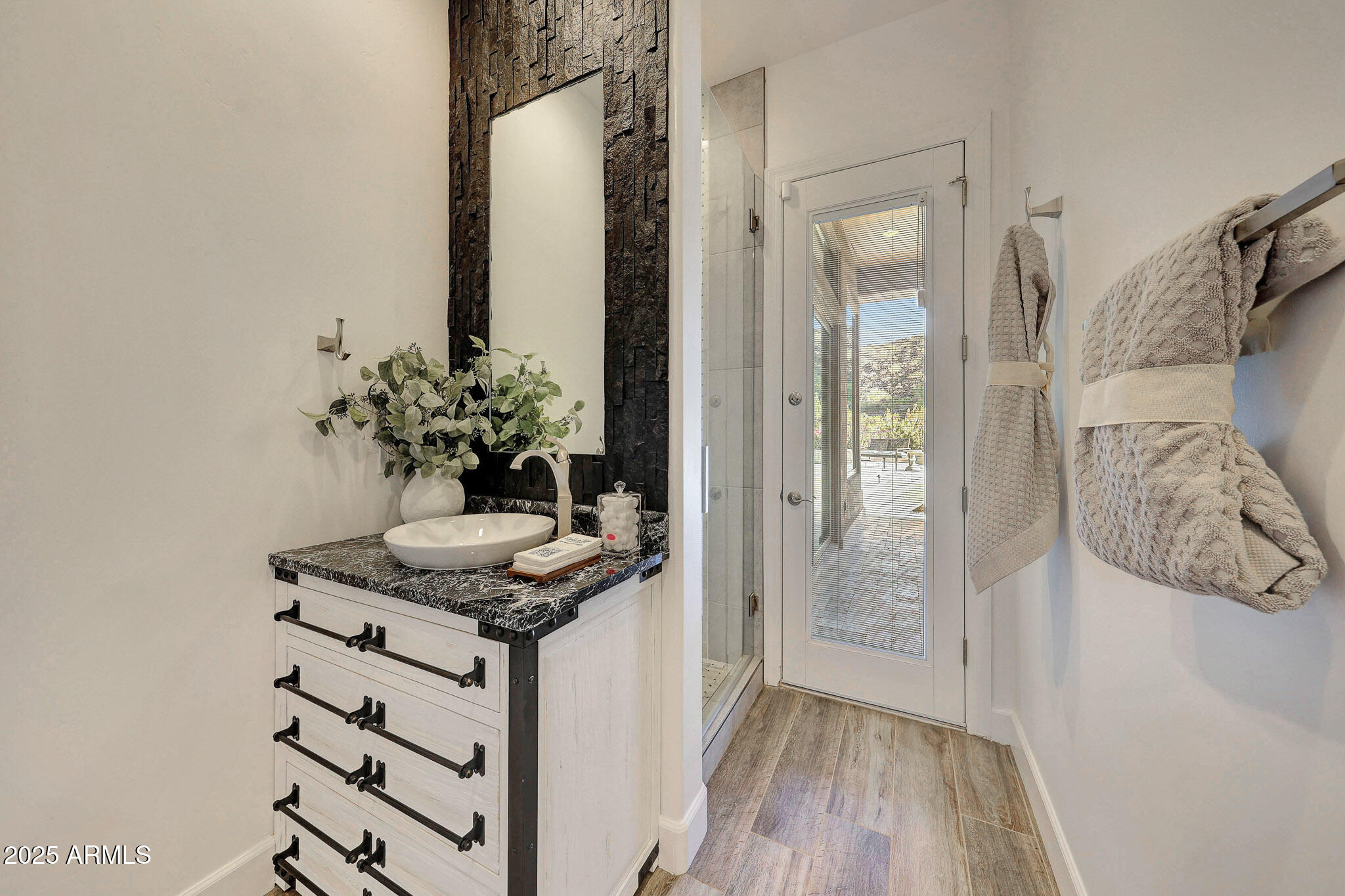 No detail was overlooked in this full-scale remodel. The kitchen has been entirely reimagined with all-new custom cabinetry--crisp white cabinets paired with striking black accent cabinetry for a modern, designer look. Quartz countertops, a marble backsplash, all-new stainless steel appliances, upgraded fixtures, and statement lighting create a true chef's kitchen that seamlessly blends function and style. An oversized island provides the perfect gathering space for family and guests alike. Both bathrooms have undergone a total transformation, featuring brand-new vanities with quartz counters, modern sinks, stylish mirrors, custom lighting, new cabinetry, and stunning marble and tile walk-in showers. Every finish was thoughtfully chosen to reflect a cohesive and luxurious aesthetic. The home also features new flooring throughout, updated lighting in every room, brand-new dual-pane windows, and fresh interior and exterior paint, giving the entire home a bright, clean, and modern feel. Custom remote-controlled shades have been installed throughout the home, allowing for effortless light control and privacy with the touch of a button. The owned solar system keeps energy costs remarkably low, with average utility bills around just $150 per year. The backyard is the true crown jewel of this home, backing directly to the mountain with no neighbors on either sideoffering exceptional privacy and unobstructed desert views. Designed for both relaxation and entertaining, the space includes an architecturally designed pool, expansive travertine paver patio, synthetic grass, built-in BBQ, and custom desert landscaping that blends seamlessly with the natural surroundings. Whether hosting a gathering or enjoying a quiet evening under the stars, this outdoor oasis delivers unmatched ambiance and serenity. This fully modernized home combines thoughtful upgrades, refined finishes, and a premier lot in one of the Valley's most desirable communities. Homes like this are raredon't miss your opportunity to own a truly one-of-a-kind property in Westwing Mountain.