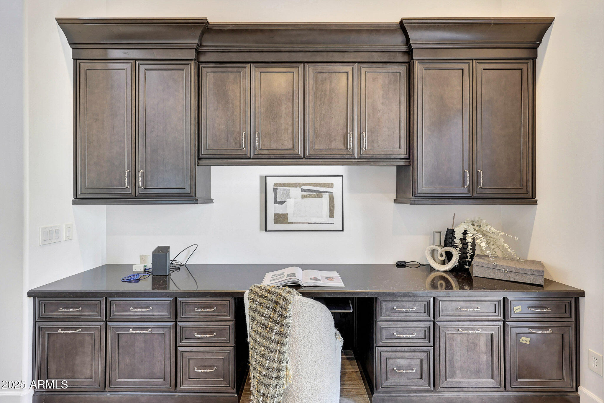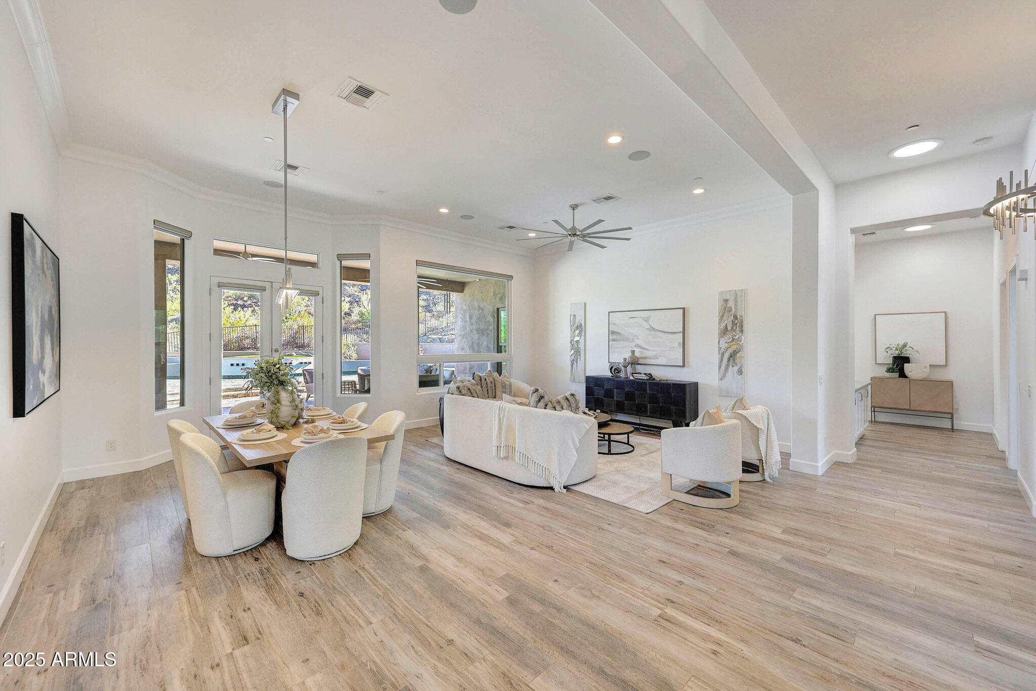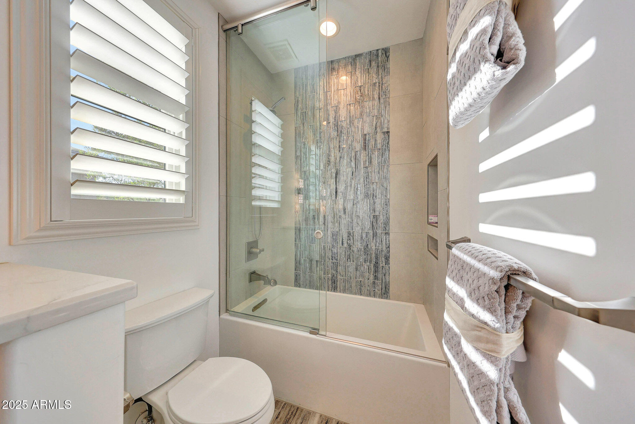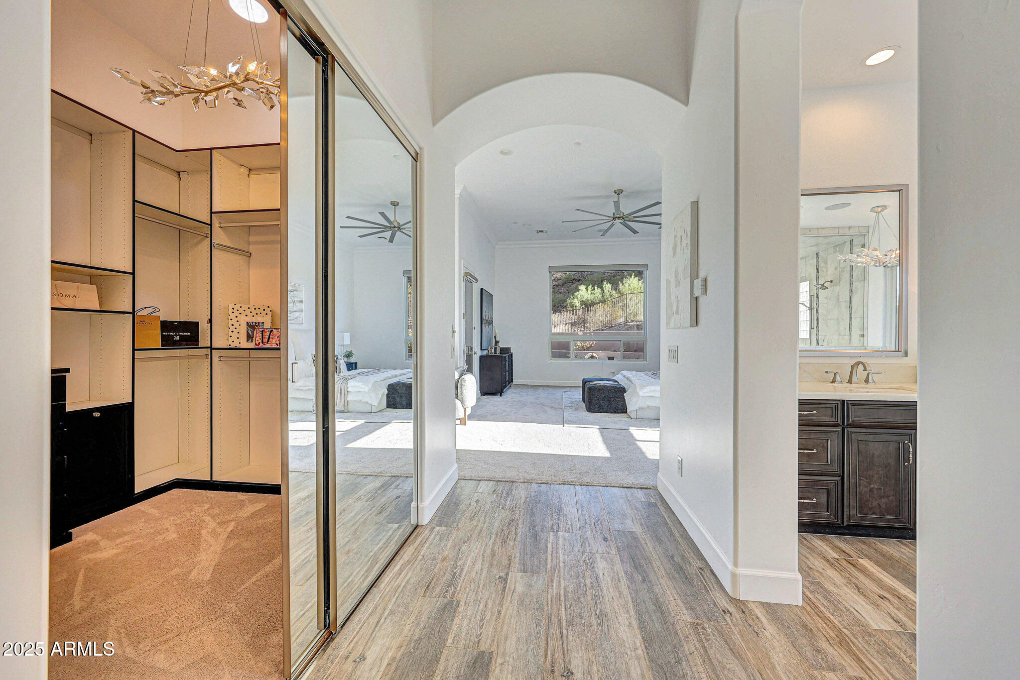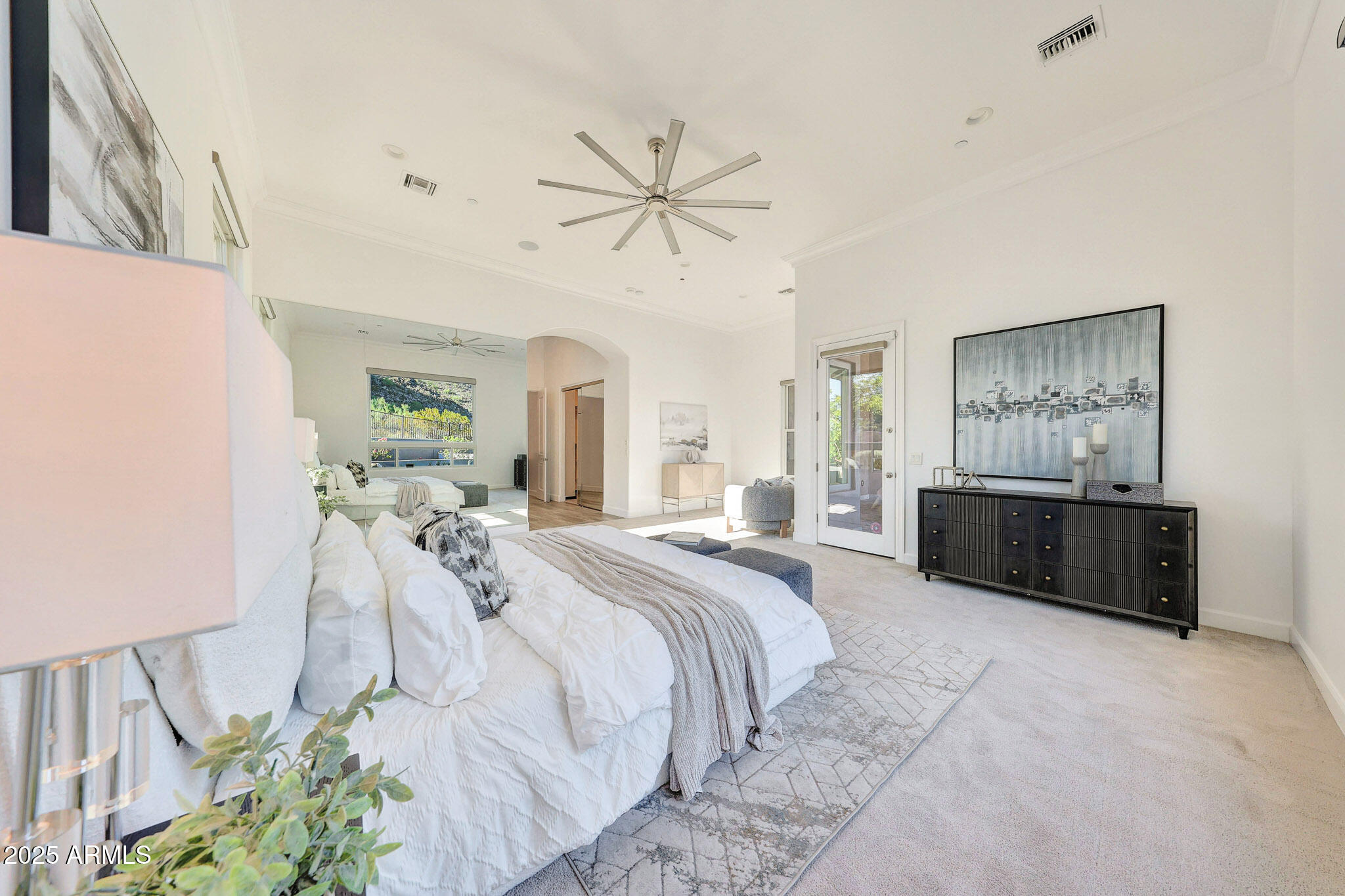 No detail was overlooked in this full-scale remodel. The kitchen has been entirely reimagined with all-new custom cabinetry--crisp white cabinets paired with striking black accent cabinetry for a modern, designer look. Quartz countertops, a marble backsplash, all-new stainless steel appliances, upgraded fixtures, and statement lighting create a true chef's kitchen that seamlessly blends function and style. An oversized island provides the perfect gathering space for family and guests alike. Both bathrooms have undergone a total transformation, featuring brand-new vanities with quartz counters, modern sinks, stylish mirrors, custom lighting, new cabinetry, and stunning marble and tile walk-in showers. Every finish was thoughtfully chosen to reflect a cohesive and luxurious aesthetic. The home also features new flooring throughout, updated lighting in every room, brand-new dual-pane windows, and fresh interior and exterior paint, giving the entire home a bright, clean, and modern feel. Custom remote-controlled shades have been installed throughout the home, allowing for effortless light control and privacy with the touch of a button. The owned solar system keeps energy costs remarkably low, with average utility bills around just $150 per year. The backyard is the true crown jewel of this home, backing directly to the mountain with no neighbors on either sideoffering exceptional privacy and unobstructed desert views. Designed for both relaxation and entertaining, the space includes an architecturally designed pool, expansive travertine paver patio, synthetic grass, built-in BBQ, and custom desert landscaping that blends seamlessly with the natural surroundings. Whether hosting a gathering or enjoying a quiet evening under the stars, this outdoor oasis delivers unmatched ambiance and serenity. This fully modernized home combines thoughtful upgrades, refined finishes, and a premier lot in one of the Valley's most desirable communities. Homes like this are raredon't miss your opportunity to own a truly one-of-a-kind property in Westwing Mountain.