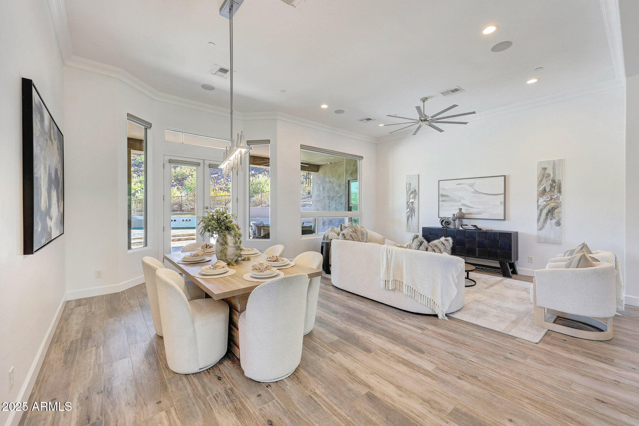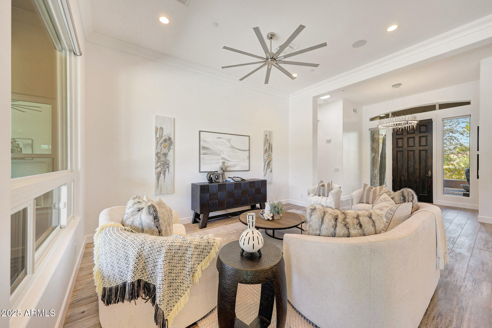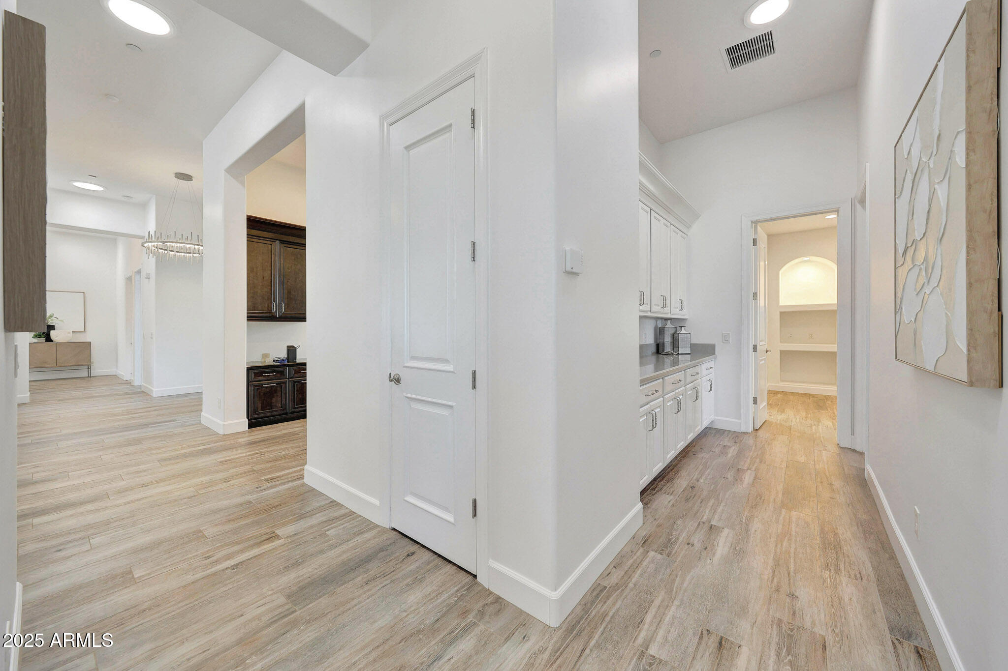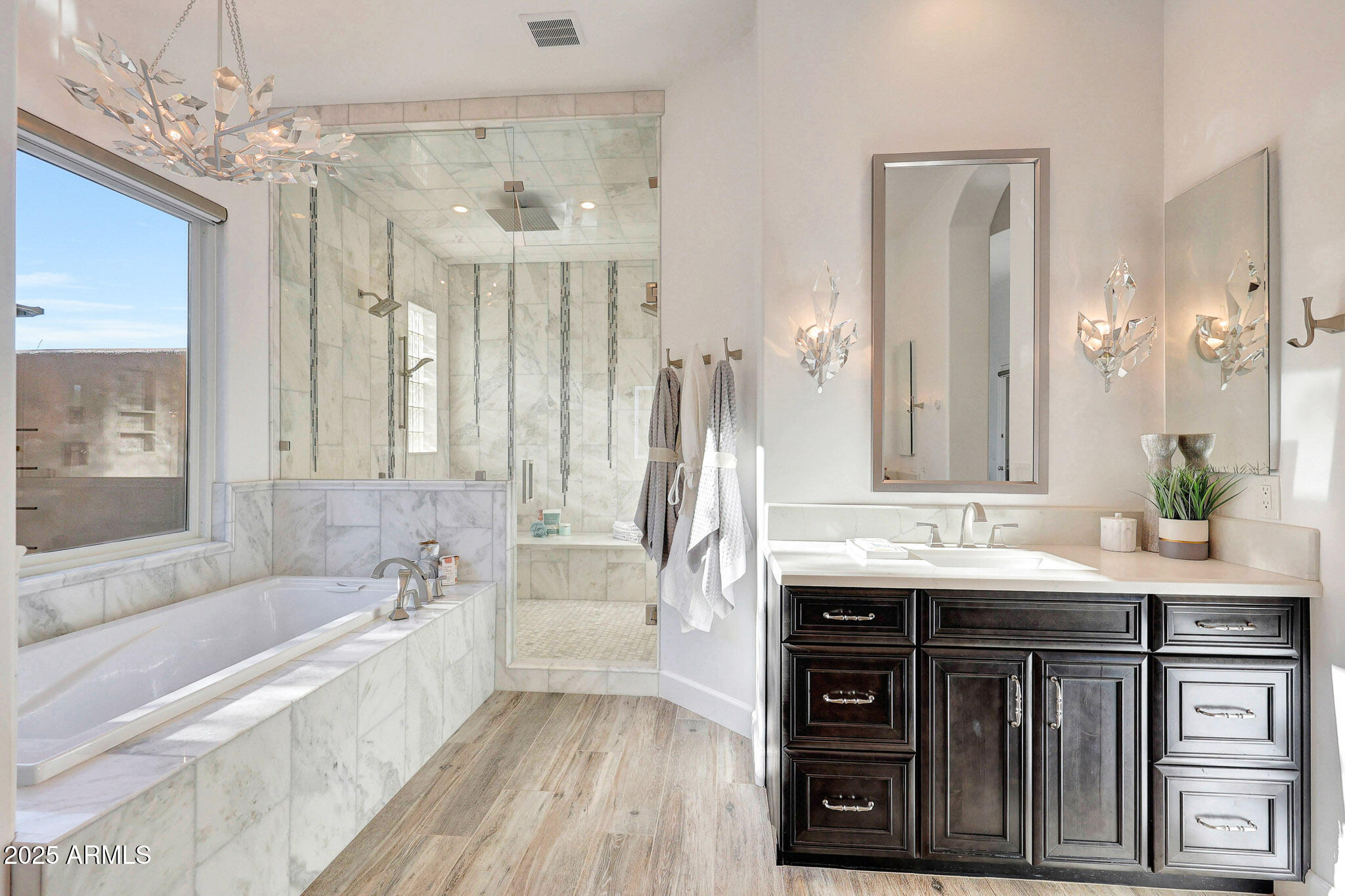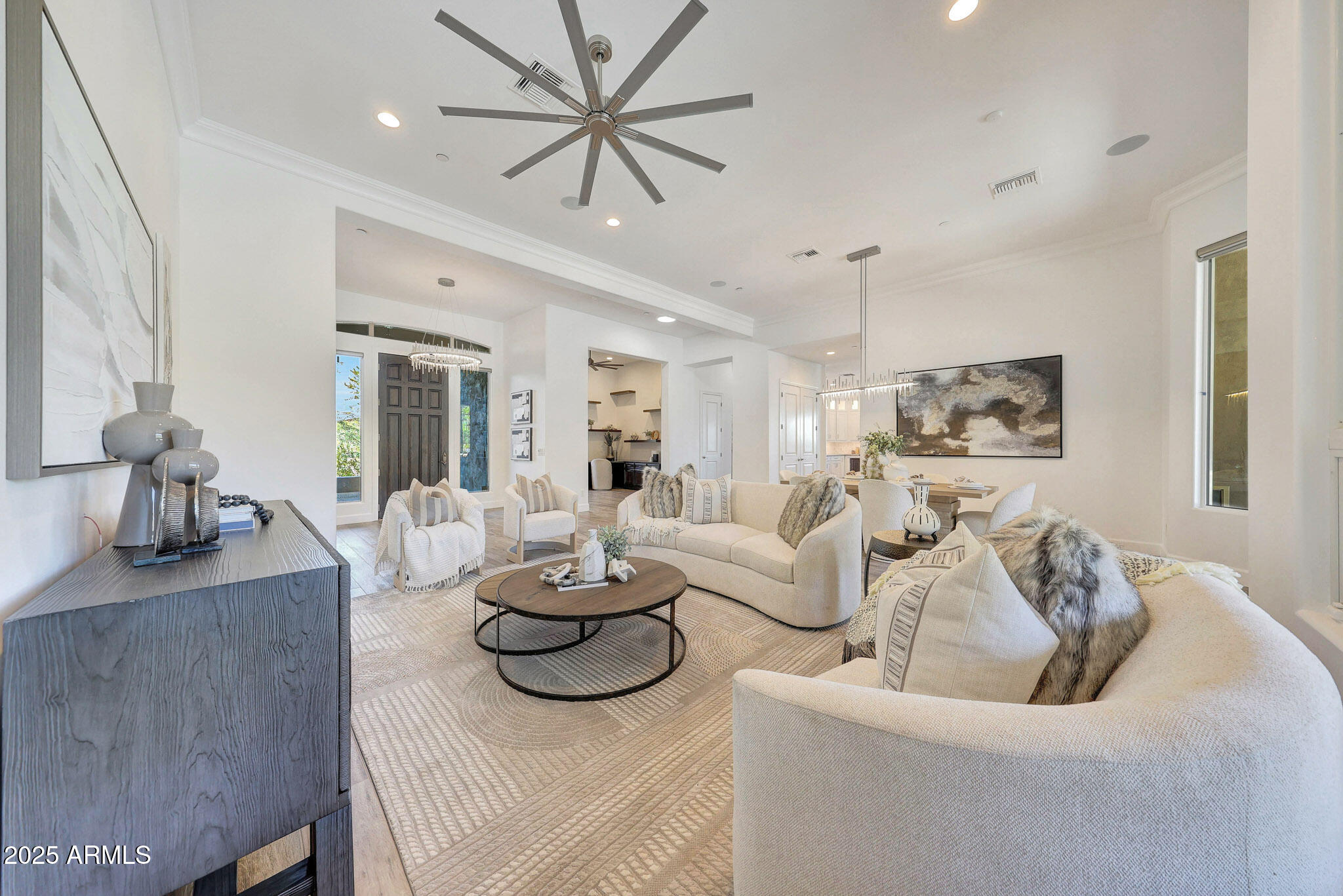 No detail was overlooked in this full-scale remodel. The kitchen has been entirely reimagined with all-new custom cabinetry--crisp white cabinets paired with striking black accent cabinetry for a modern, designer look. Quartz countertops, a marble backsplash, all-new stainless steel appliances, upgraded fixtures, and statement lighting create a true chef's kitchen that seamlessly blends function and style. An oversized island provides the perfect gathering space for family and guests alike. Both bathrooms have undergone a total transformation, featuring brand-new vanities with quartz counters, modern sinks, stylish mirrors, custom lighting, new cabinetry, and stunning marble and tile walk-in showers. Every finish was thoughtfully chosen to reflect a cohesive and luxurious aesthetic. The home also features new flooring throughout, updated lighting in every room, brand-new dual-pane windows, and fresh interior and exterior paint, giving the entire home a bright, clean, and modern feel. Custom remote-controlled shades have been installed throughout the home, allowing for effortless light control and privacy with the touch of a button. The owned solar system keeps energy costs remarkably low, with average utility bills around just $150 per year. The backyard is the true crown jewel of this home, backing directly to the mountain with no neighbors on either sideoffering exceptional privacy and unobstructed desert views. Designed for both relaxation and entertaining, the space includes an architecturally designed pool, expansive travertine paver patio, synthetic grass, built-in BBQ, and custom desert landscaping that blends seamlessly with the natural surroundings. Whether hosting a gathering or enjoying a quiet evening under the stars, this outdoor oasis delivers unmatched ambiance and serenity. This fully modernized home combines thoughtful upgrades, refined finishes, and a premier lot in one of the Valley's most desirable communities. Homes like this are raredon't miss your opportunity to own a truly one-of-a-kind property in Westwing Mountain.