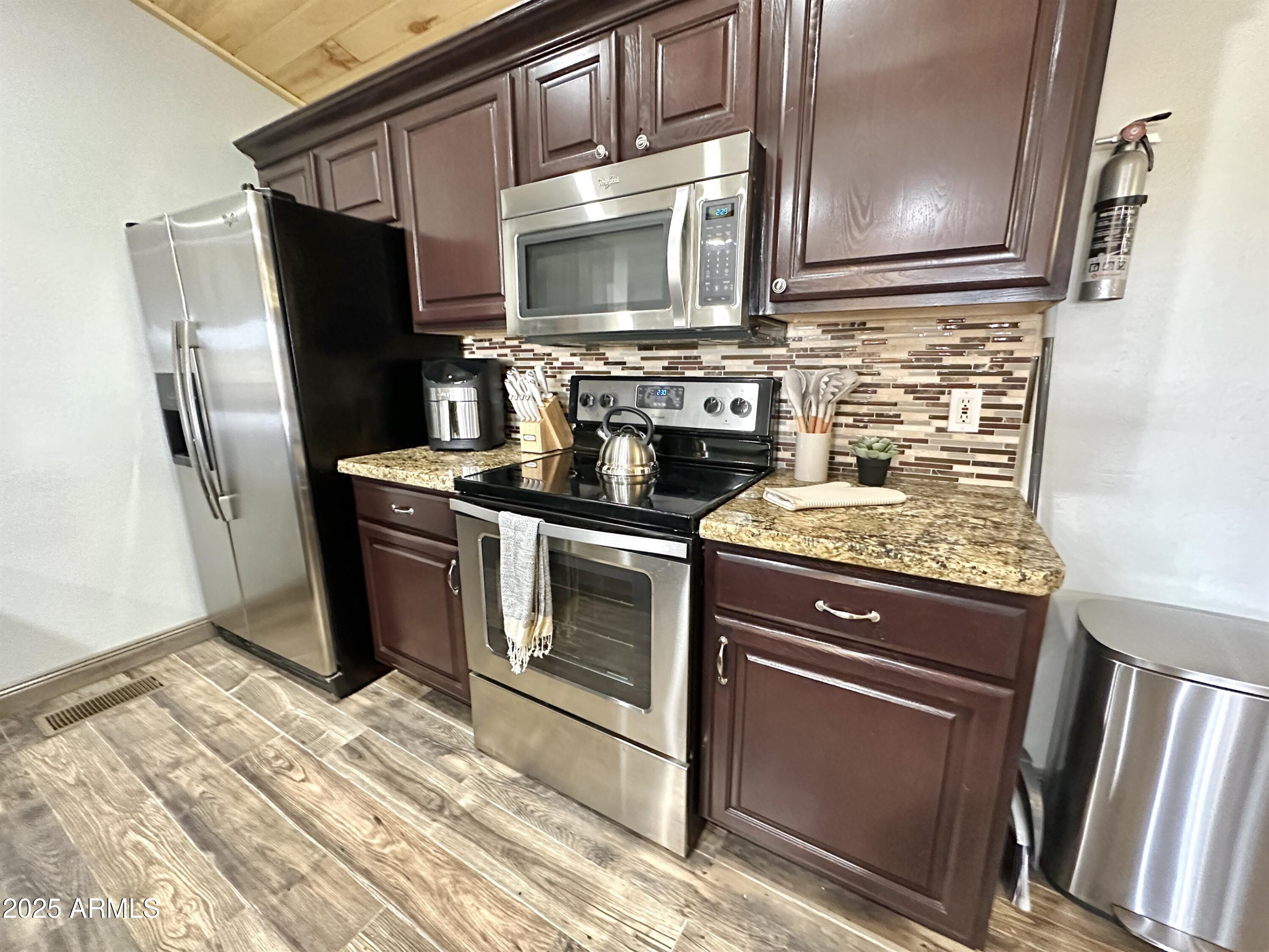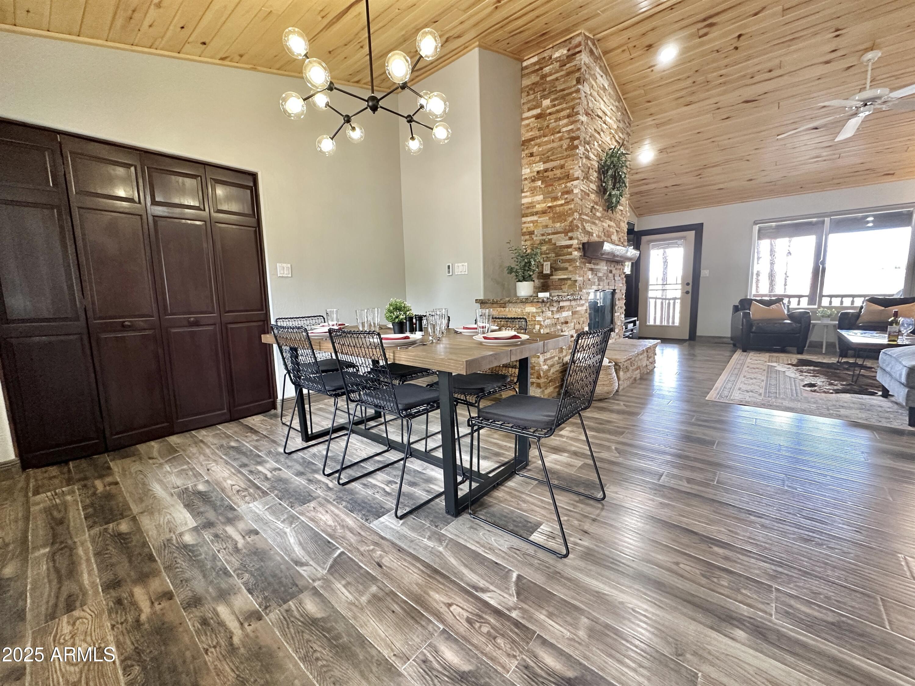 Nestled along the scenic national forest, this fully furnished, 2 bedroom, 2 bathroom cabin offers the absolute best of Bison Ranch living. Thoughtfully updated, this cozy retreat features updated windows that frame daily wildlife views and bring in abundant natural light. Inside, you'll find a fresh and timeless aesthetic with a floor to ceiling stacked stone fireplace, elegant granite counters, and heated floors for that extra touch of luxury. The main living area showcases beautiful tongue and groove vaulted ceilings, modern furnishings and an open-concept layout ideal for everyday living and entertaining. The fenced backyard is well-equipped with a firepit and seating, a large covered deck, and a meticulously maintained hot tub, all overlooking the gorgeous forest meadow - perfect for hosting or just relaxing! Your new home or STR is just steps away from community amenities including catch and release fishing pond, tennis/pickleball court, basketball court, gazebo and playground, as well as Bison Town restaurants, shopping and entertainment.