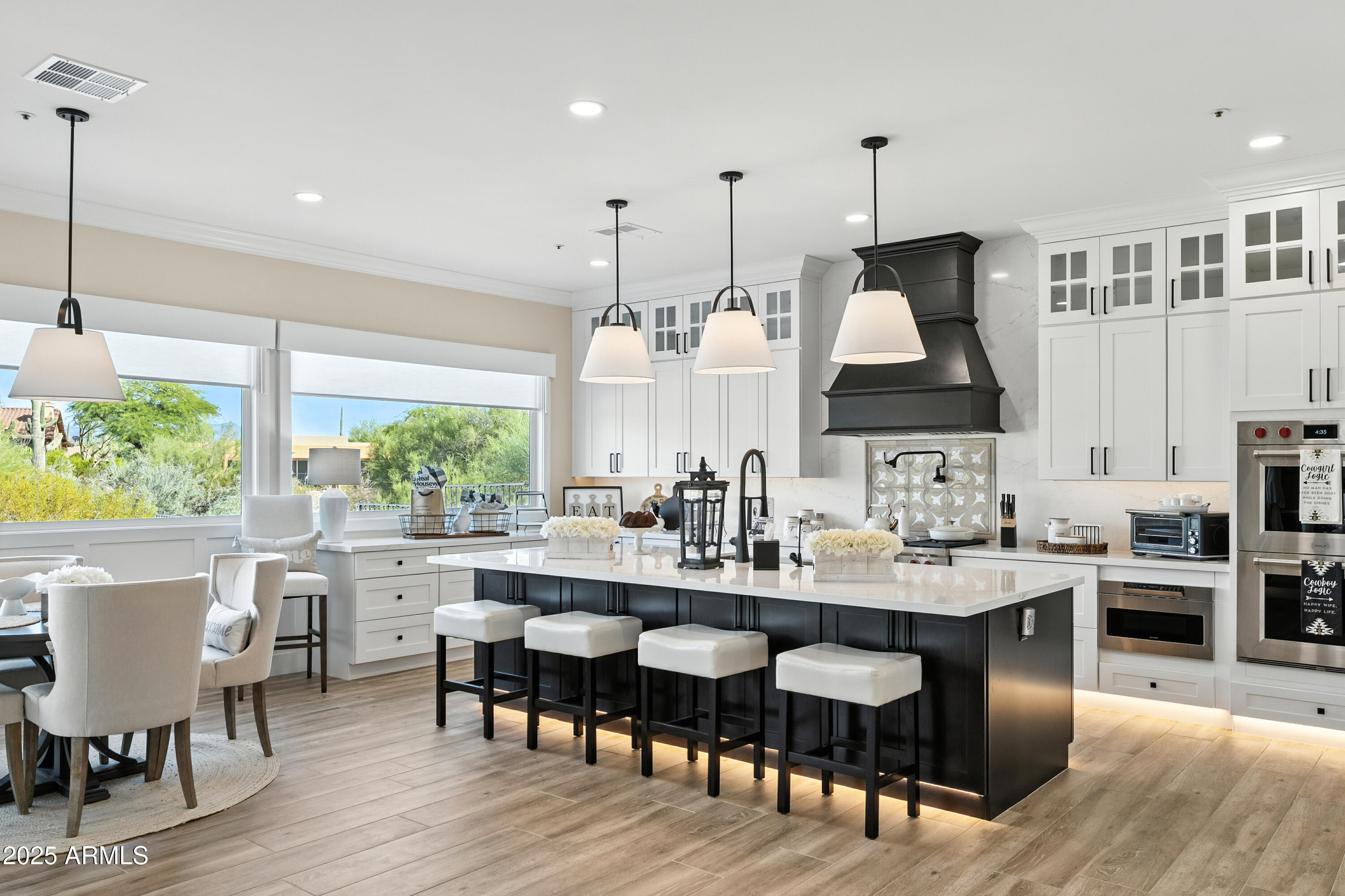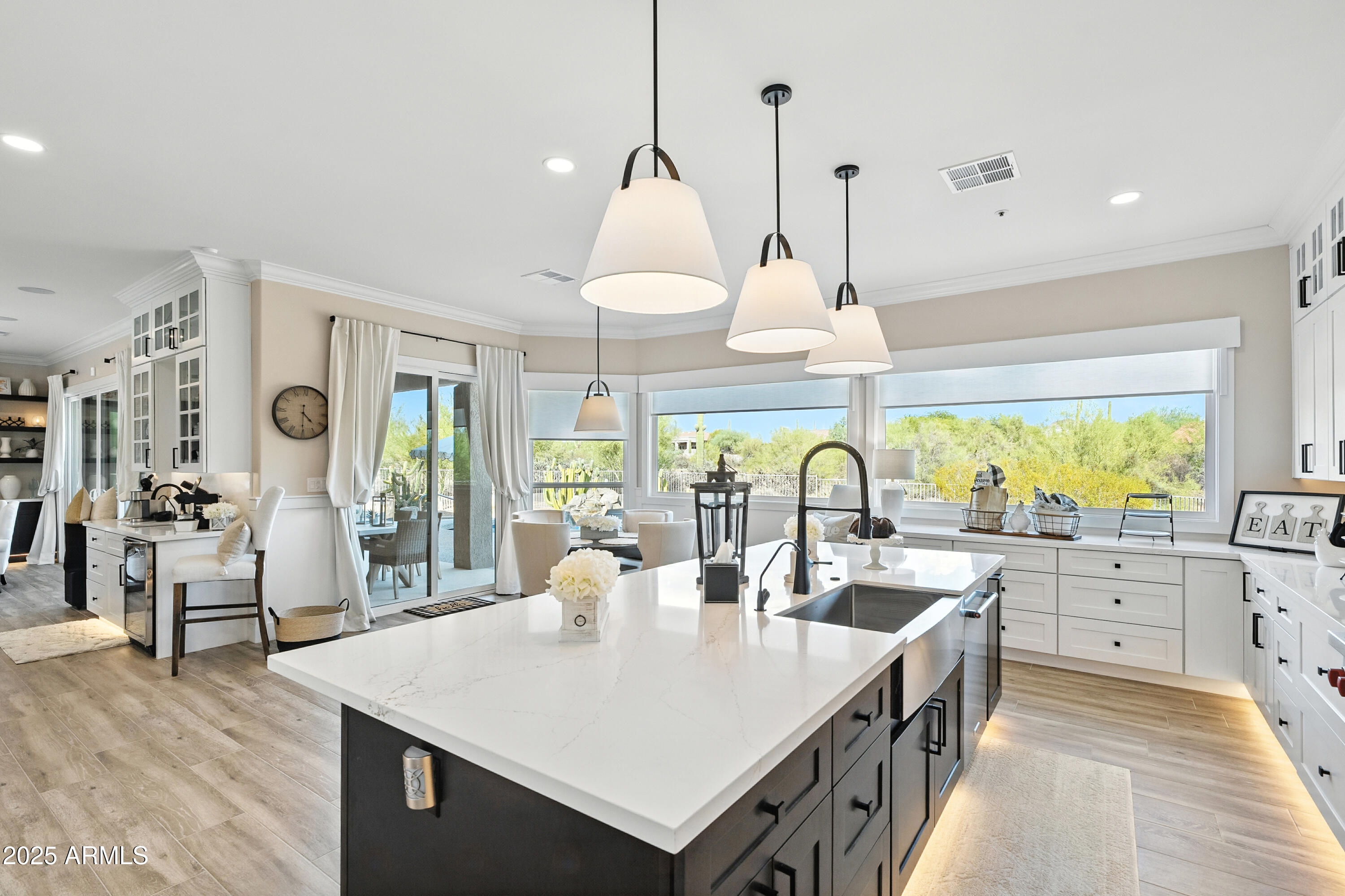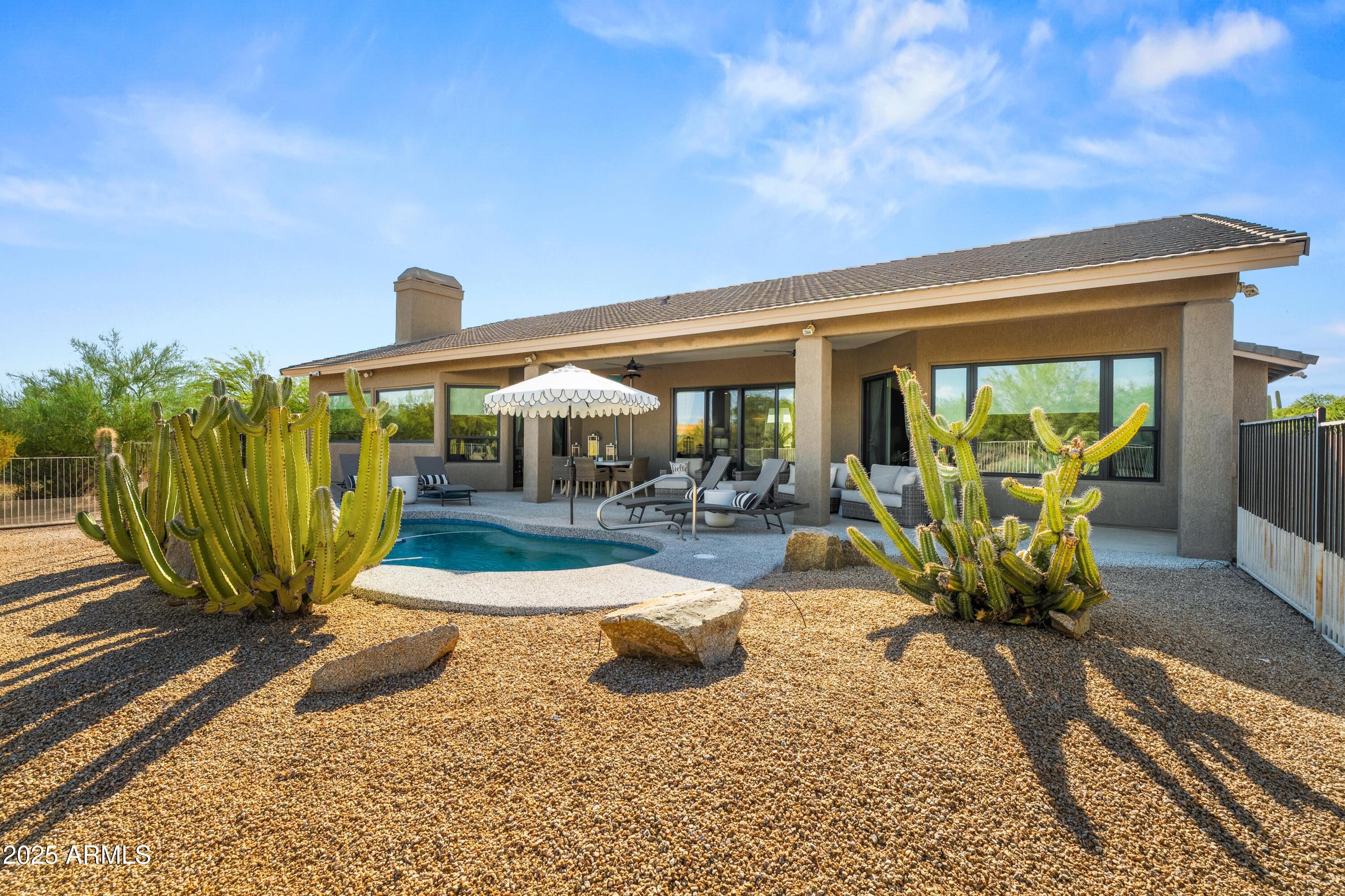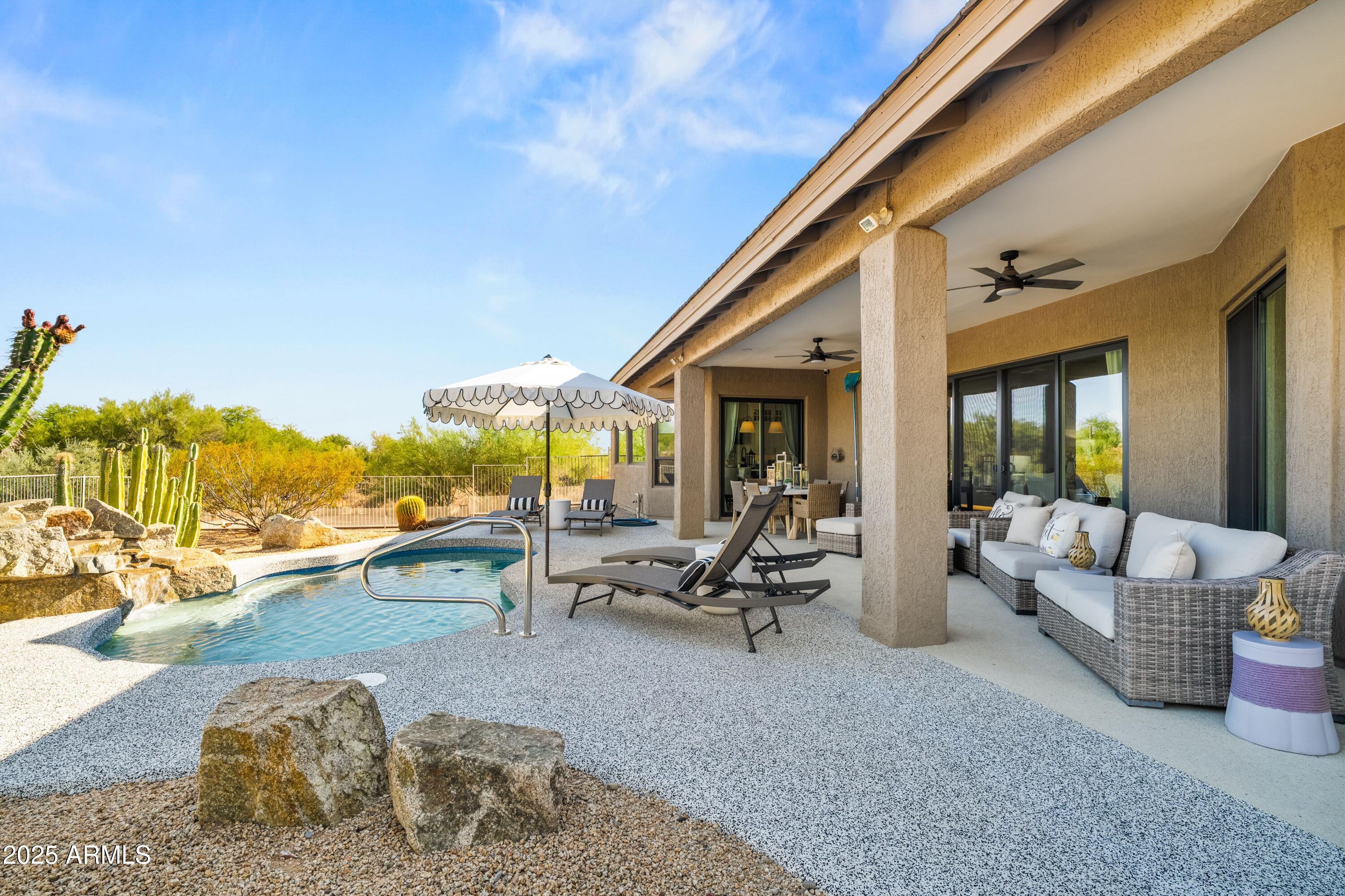 Discover this North Scottsdale luxury home with 4 bedrooms, 2.5 bathrooms, and a 3-car garage on a large cul-de-sac lot. The open-concept design features wood-like tile flooring throughout, a chef's kitchen with Wolf range, Sub-Zero refrigerator, imported Italian tile backsplash, pot filler, walk-in pantry, and under-cabinet lighting. The spa-inspired primary suite offers a relaxing retreat, while the mudroom and coffee nook add modern function. Step outside to a private backyard with a pool and water feature, low-maintenance landscaping, mountain views, and plenty of space to design your dream outdoor living area.