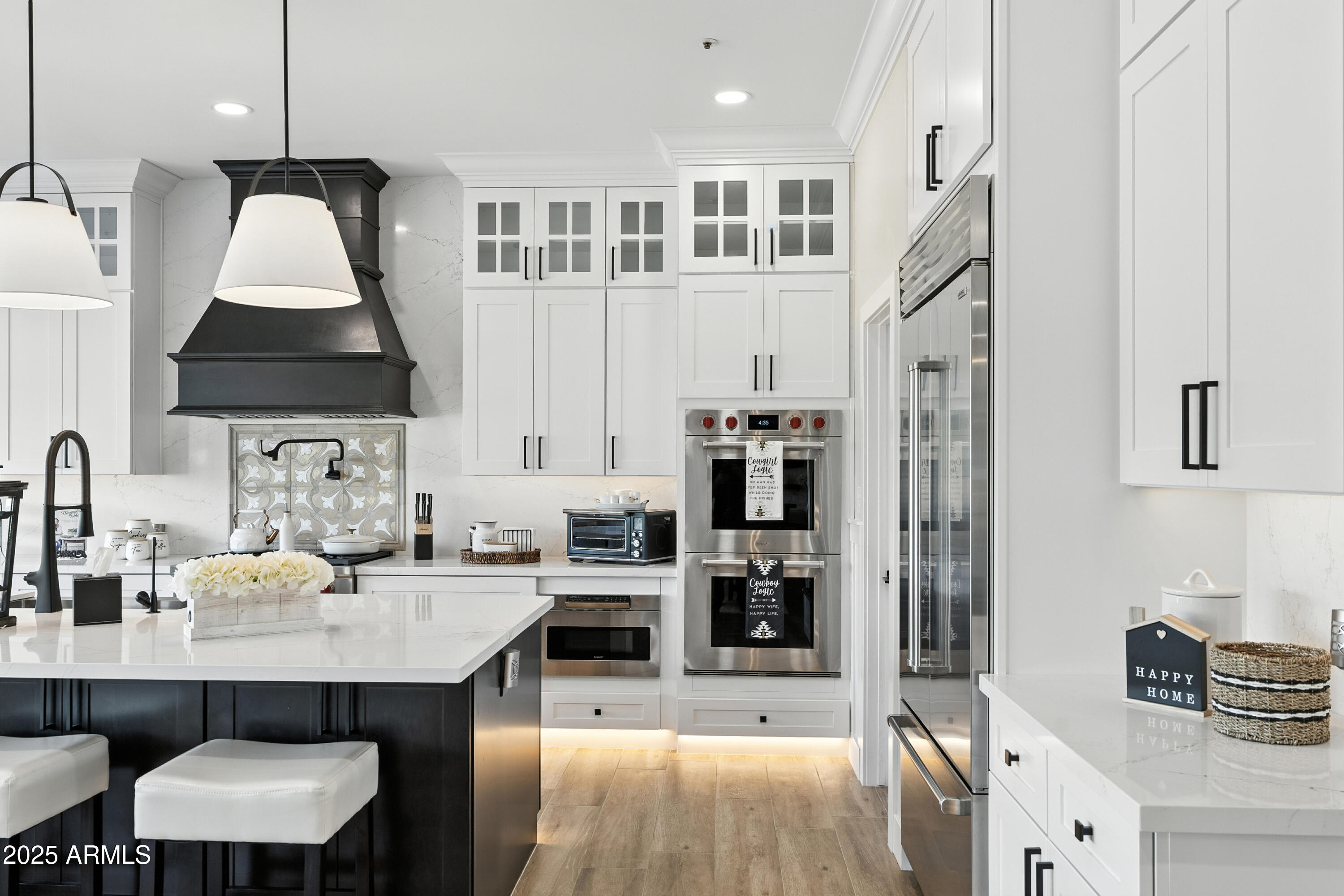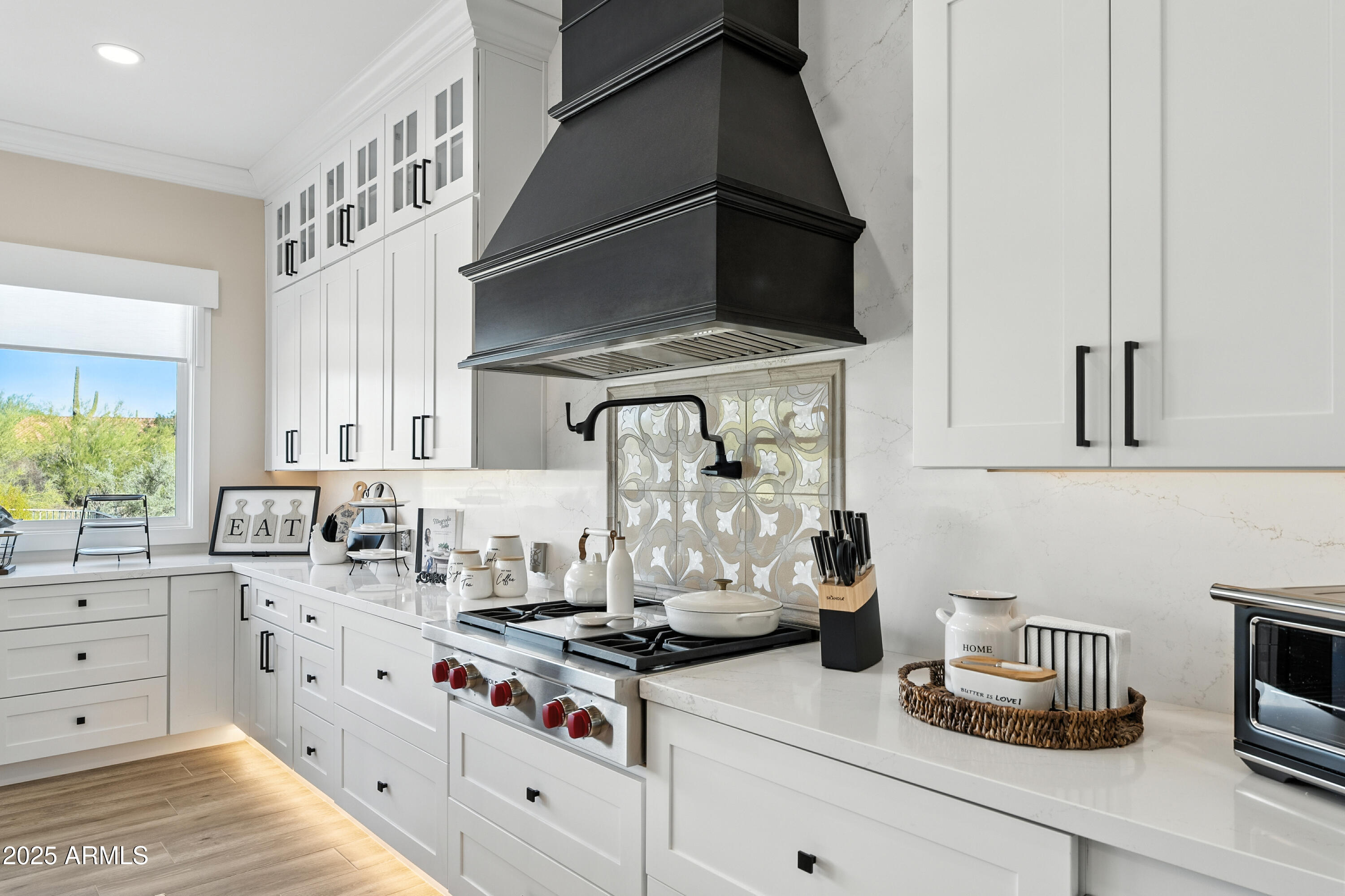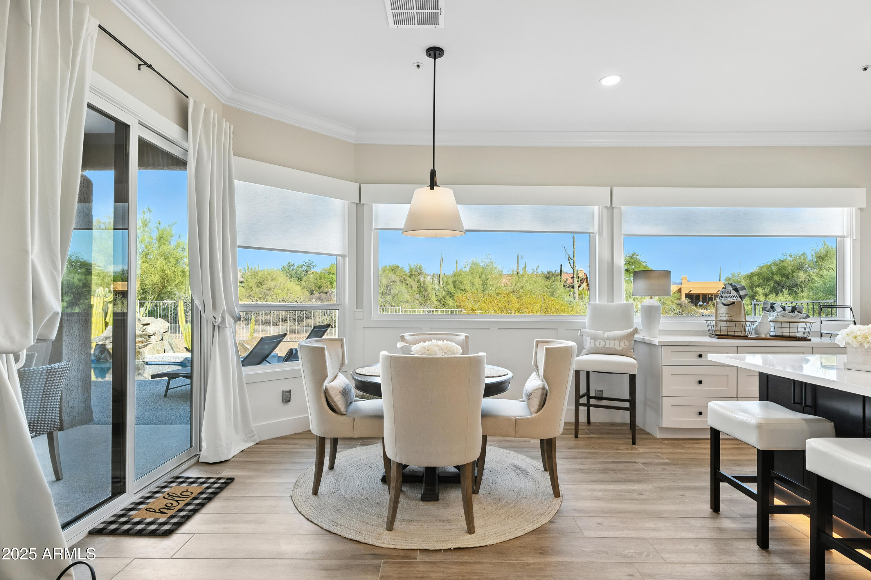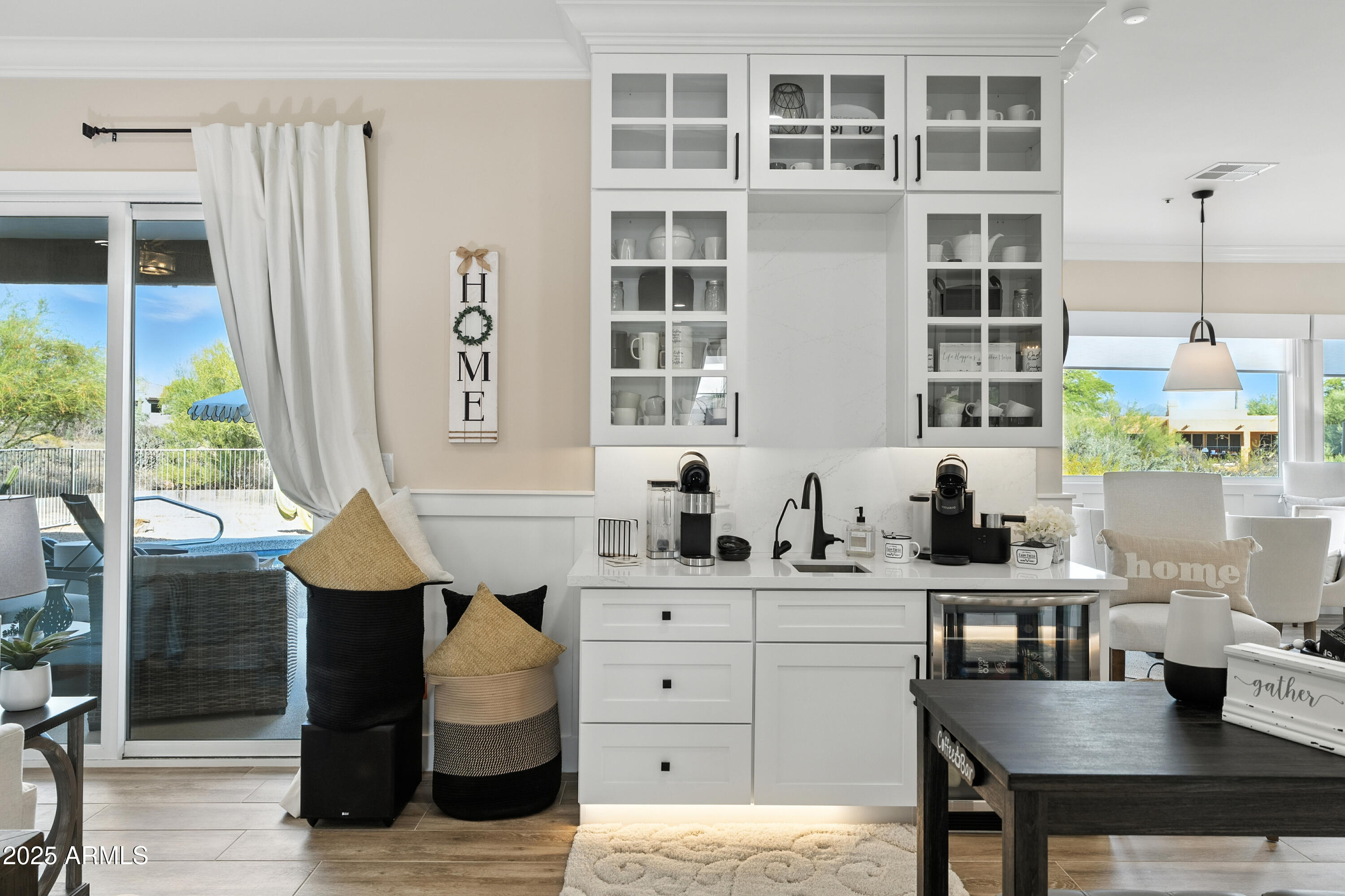 Discover this North Scottsdale luxury home with 4 bedrooms, 2.5 bathrooms, and a 3-car garage on a large cul-de-sac lot. The open-concept design features wood-like tile flooring throughout, a chef's kitchen with Wolf range, Sub-Zero refrigerator, imported Italian tile backsplash, pot filler, walk-in pantry, and under-cabinet lighting. The spa-inspired primary suite offers a relaxing retreat, while the mudroom and coffee nook add modern function. Step outside to a private backyard with a pool and water feature, low-maintenance landscaping, mountain views, and plenty of space to design your dream outdoor living area.