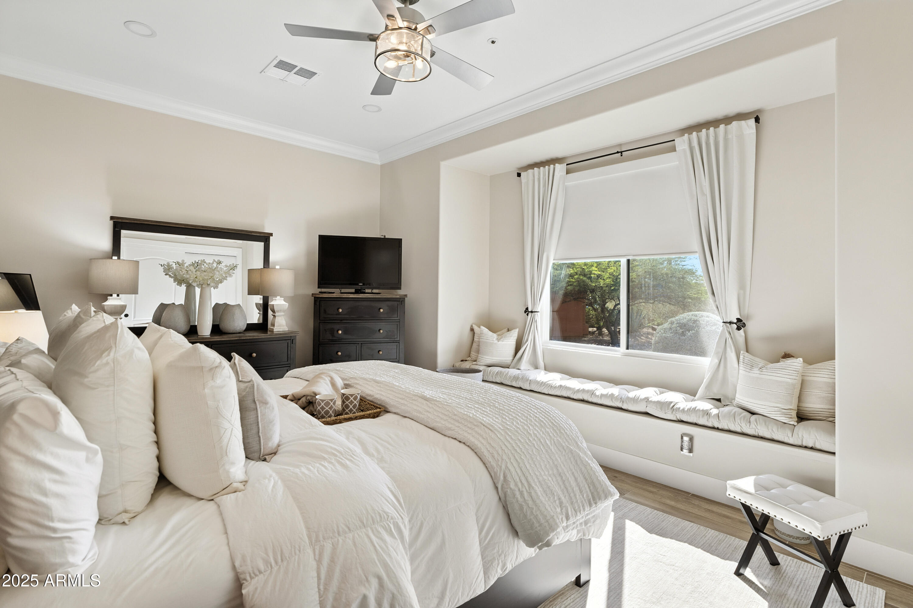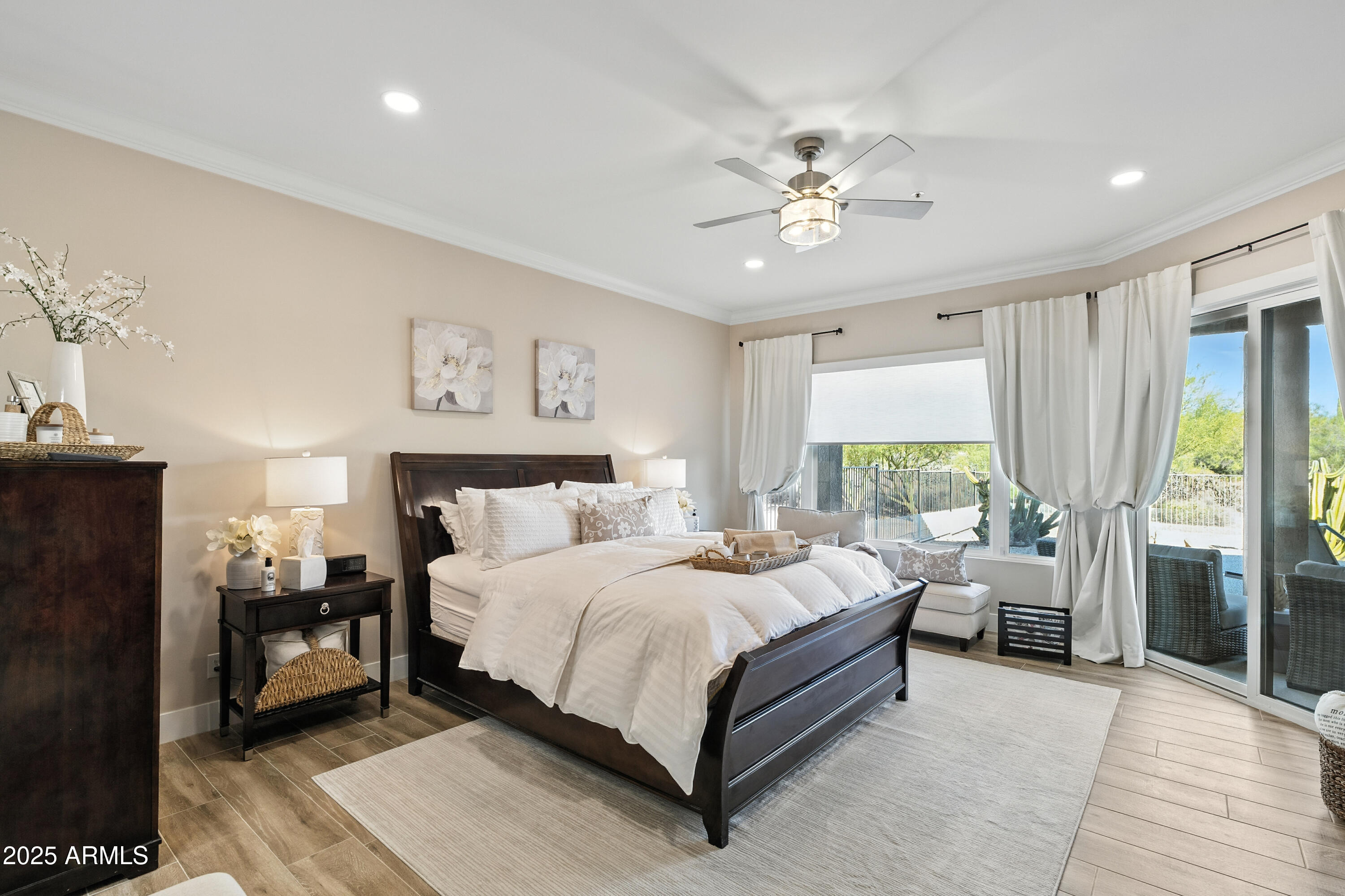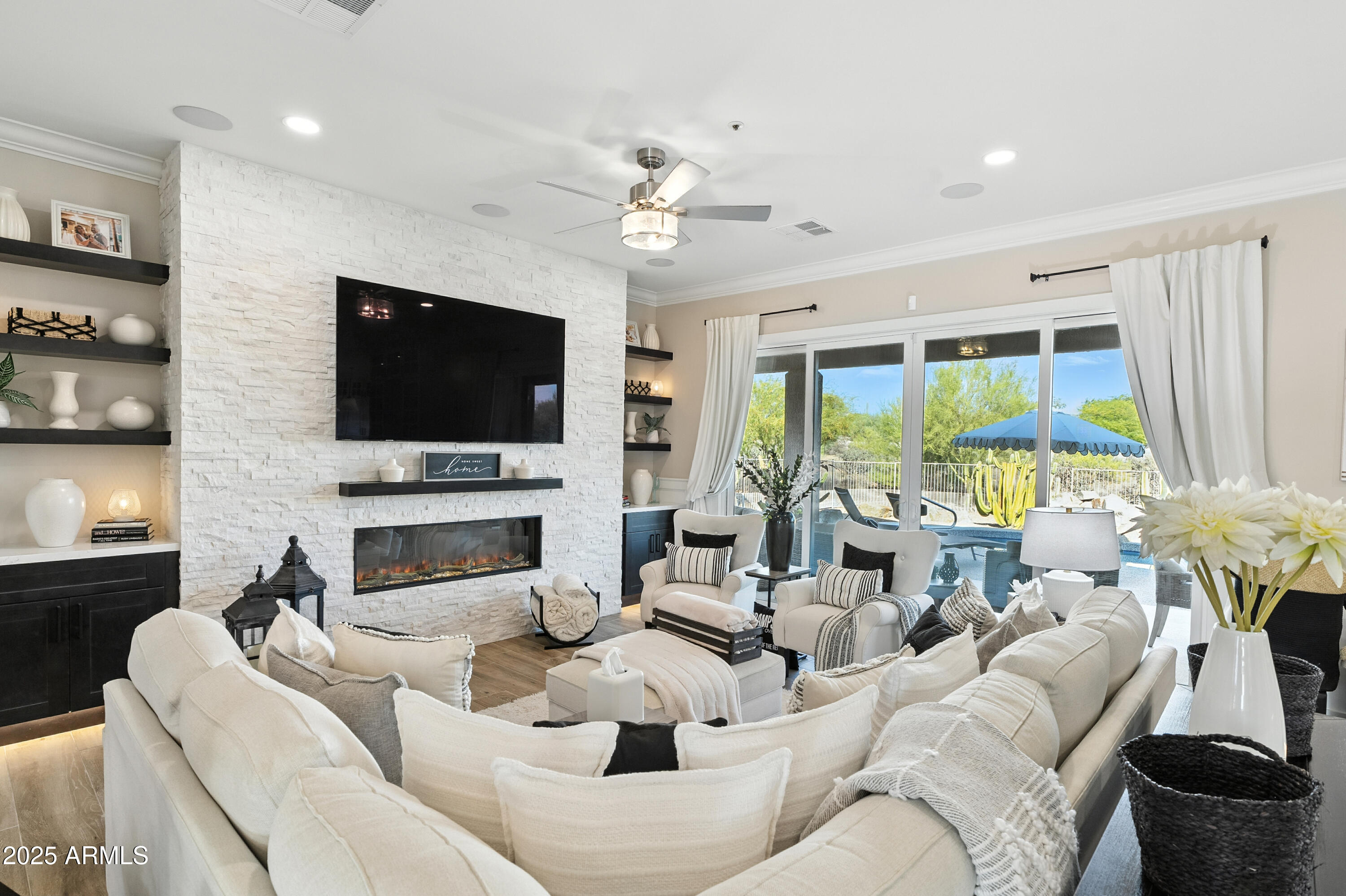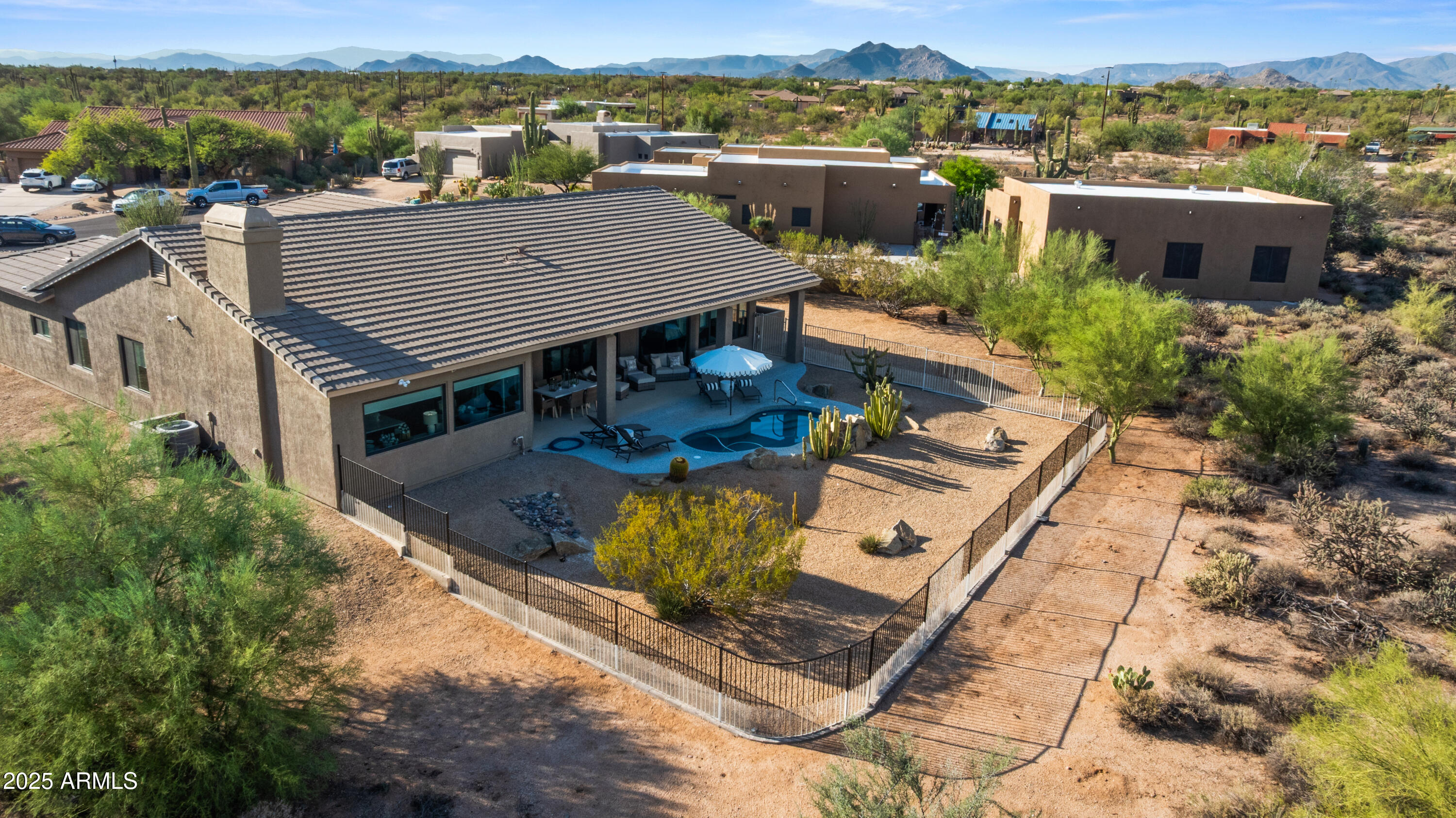 Discover this North Scottsdale luxury home with 4 bedrooms, 2.5 bathrooms, and a 3-car garage on a large cul-de-sac lot. The open-concept design features wood-like tile flooring throughout, a chef's kitchen with Wolf range, Sub-Zero refrigerator, imported Italian tile backsplash, pot filler, walk-in pantry, and under-cabinet lighting. The spa-inspired primary suite offers a relaxing retreat, while the mudroom and coffee nook add modern function. Step outside to a private backyard with a pool and water feature, low-maintenance landscaping, mountain views, and plenty of space to design your dream outdoor living area.