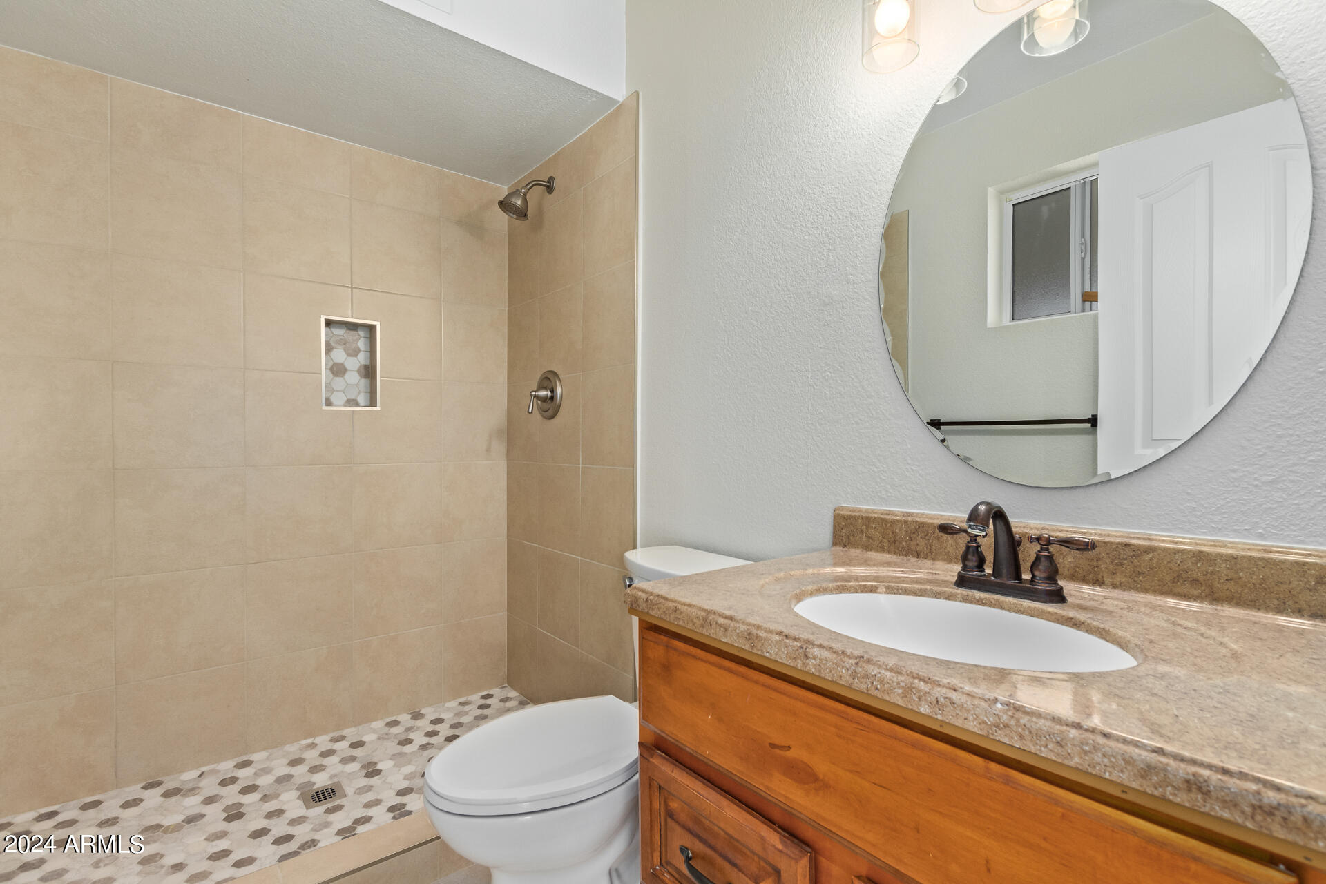 Step inside to discover a thoughtfully updated interior, featuring three cozy bedrooms and two bathrooms. The bathrooms have been tastefully renovated, showcasing modern showers and fixtures, adding a touch of contemporary style to the home.