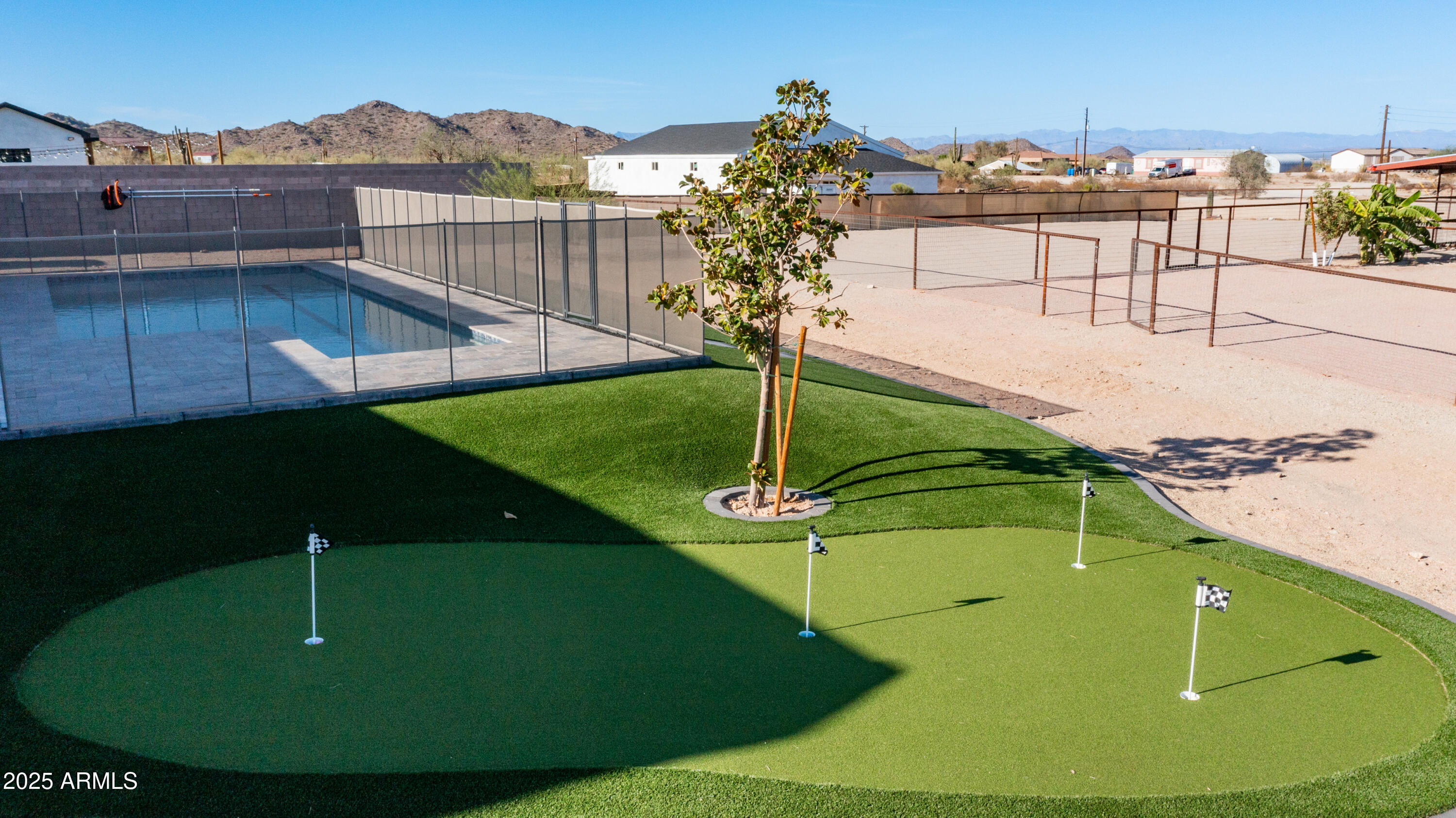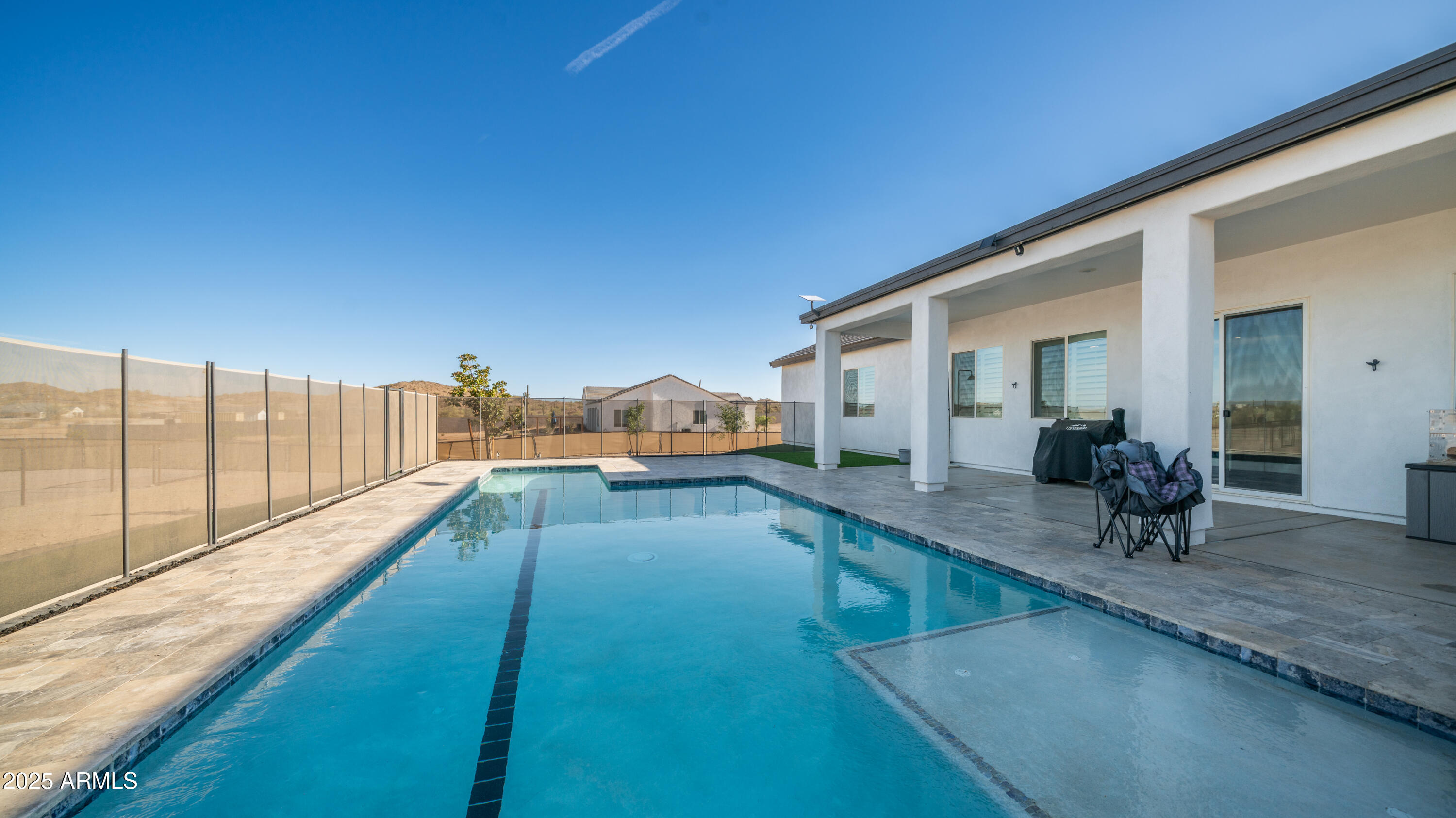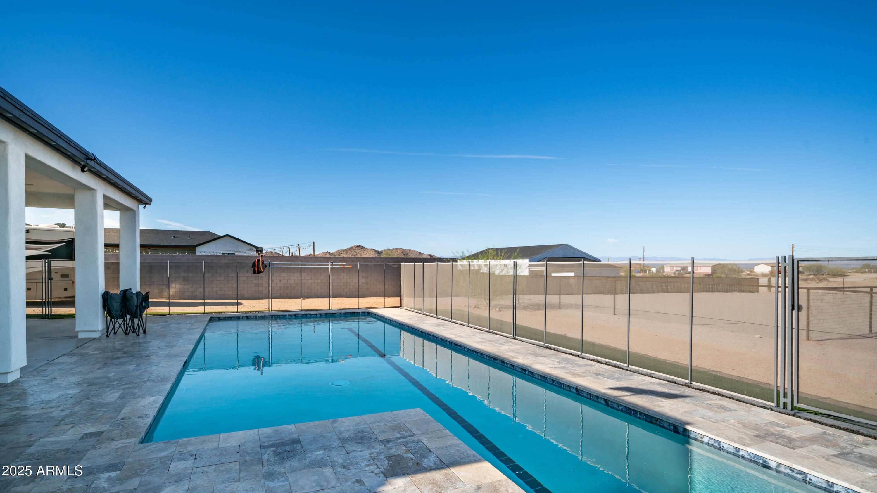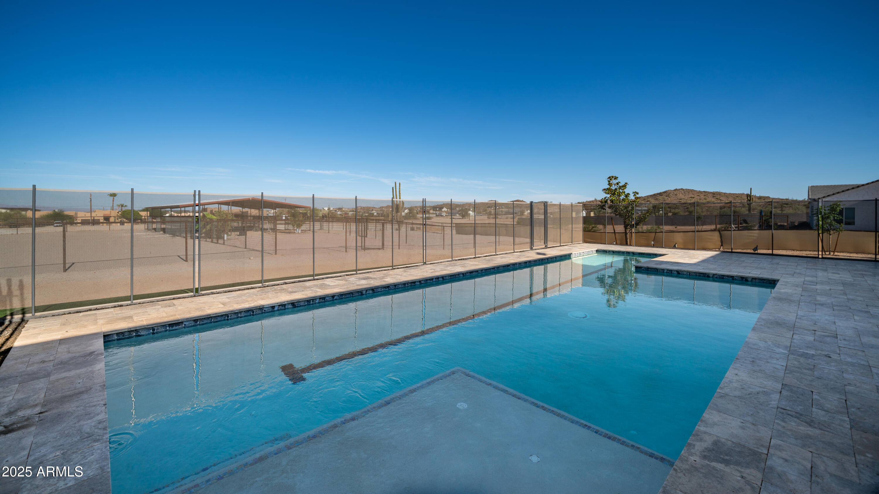 Come see it! Sellers are open to a backup offer. Immaculately cared for home with no HOA. Situated on a gated 1.25 acre lot, this property offers the perfect balance of privacy, space, and modern comforts. Whether you're looking for room to grow, raise animals, or simply enjoy wide open spaces, this home is the ideal backdrop for your country lifestyle. As you enter the foyer, you're immediately greeted by the warmth and comfort of a beautifully inviting living room. Sunlight pours through large plantation shutters, casting a soft glow across the rich flooring and open layout. With 10ft ceilings, this 4 bedroom, 3 bathroom custom home will have all the space you will ever need. Step into a kitchen where beauty meets function in perfect harmony. Thoughtfully designed and bathed in natural light, this stunning space features rich cabinetry, quartz countertops, and modern appliances all tied together with timeless style. Elegant, warm, and truly inviting, this kitchen is more than just a place to cook, it's a place to gather, connect, and create memories. Open to the living and dining areas, it's the heart of the home ideal for everyday living and effortless entertaining. The home also features an oversized three car garage with AC, and 50 amps inside and out. But it's the backyard that steals the show. The sparkling saltwater pool shimmers like a jewel, inviting moonlit swims and sun-kissed afternoons. The beautiful combination of tile and easy maintenance synthetic grass, as well as your personal putting green, this is a place for unforgettable gatherings. And if it gets too cool, don't forget to turn on your new pool heater. The property is sectioned off to accommodate horses, a sand riding arena and usable backyard space. The 36x60 barn has six covered stalls with a turnout and a grooming area. All stalls have power, water, lights and rubber mats. Whether you're sharing stories under the stars, waking up to the hush of a calm morning, or simply enjoying the glow of golden hour, this is more than a home, it's a place where moments become memories. Come fall in love.