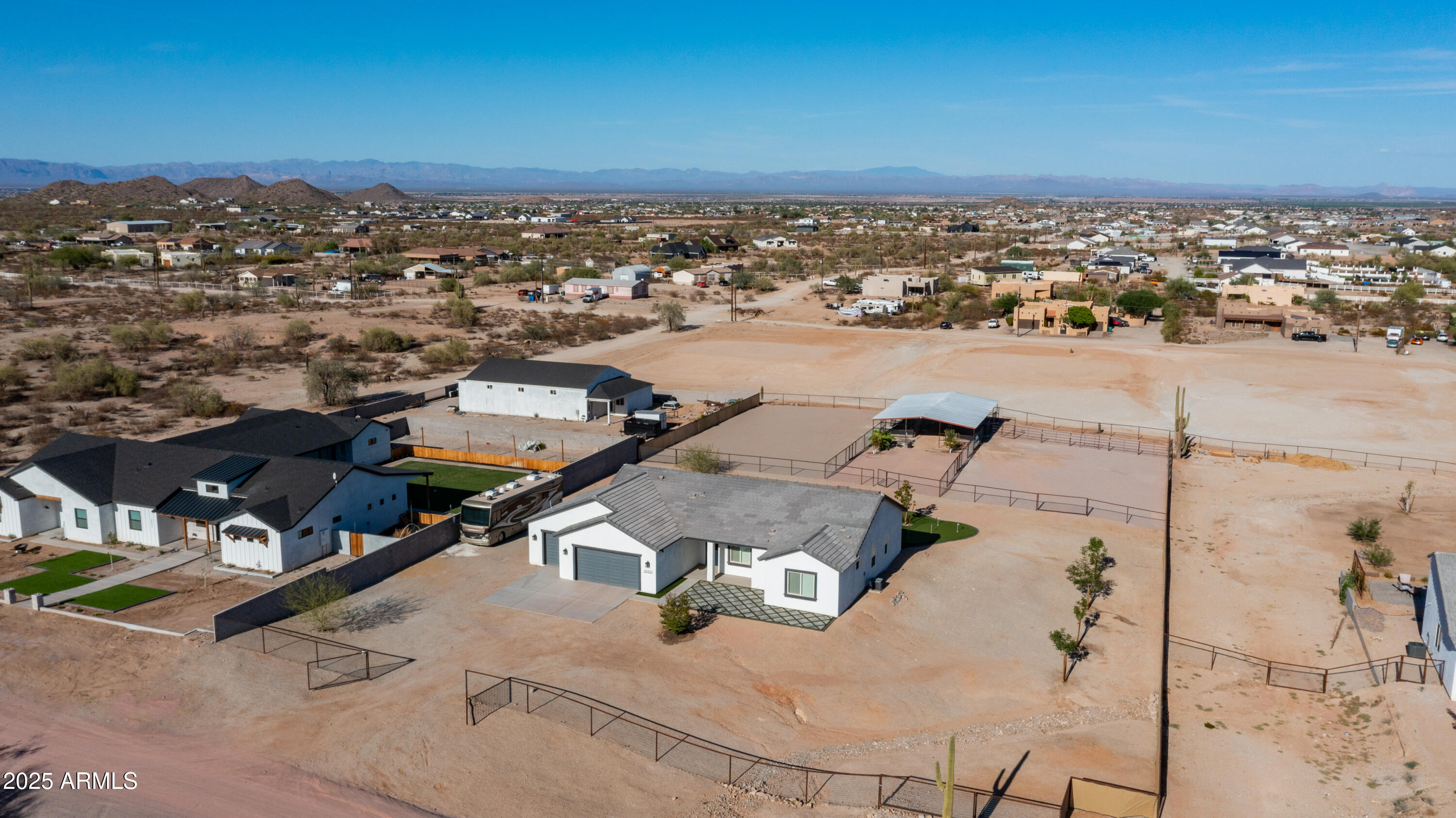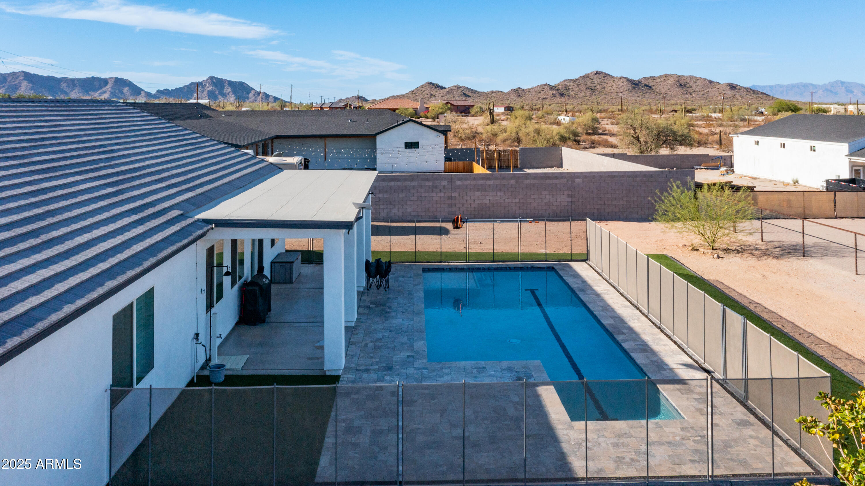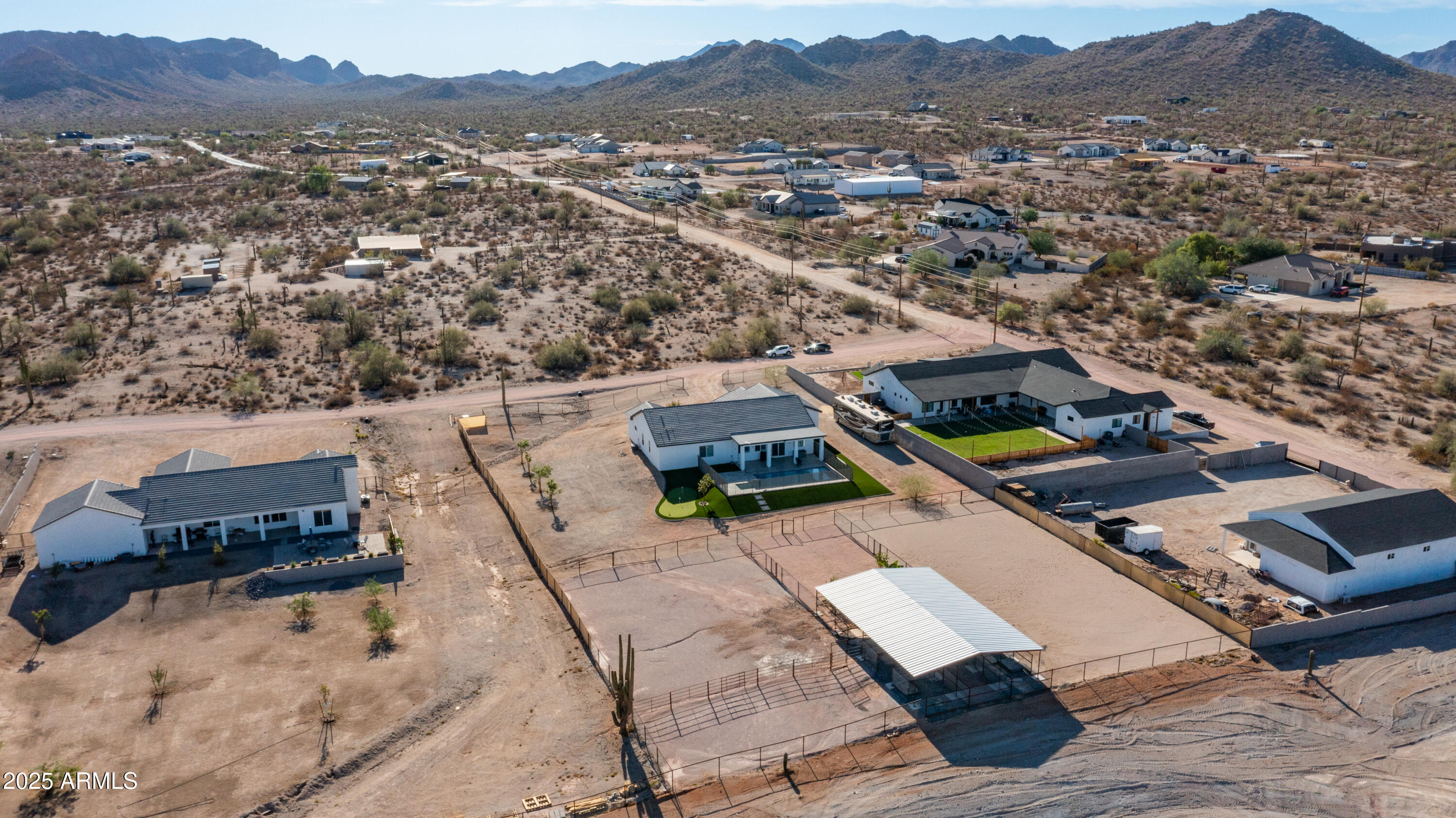 Come see it! Sellers are open to a backup offer. Immaculately cared for home with no HOA. Situated on a gated 1.25 acre lot, this property offers the perfect balance of privacy, space, and modern comforts. Whether you're looking for room to grow, raise animals, or simply enjoy wide open spaces, this home is the ideal backdrop for your country lifestyle. As you enter the foyer, you're immediately greeted by the warmth and comfort of a beautifully inviting living room. Sunlight pours through large plantation shutters, casting a soft glow across the rich flooring and open layout. With 10ft ceilings, this 4 bedroom, 3 bathroom custom home will have all the space you will ever need. Step into a kitchen where beauty meets function in perfect harmony. Thoughtfully designed and bathed in natural light, this stunning space features rich cabinetry, quartz countertops, and modern appliances all tied together with timeless style. Elegant, warm, and truly inviting, this kitchen is more than just a place to cook, it's a place to gather, connect, and create memories. Open to the living and dining areas, it's the heart of the home ideal for everyday living and effortless entertaining. The home also features an oversized three car garage with AC, and 50 amps inside and out. But it's the backyard that steals the show. The sparkling saltwater pool shimmers like a jewel, inviting moonlit swims and sun-kissed afternoons. The beautiful combination of tile and easy maintenance synthetic grass, as well as your personal putting green, this is a place for unforgettable gatherings. And if it gets too cool, don't forget to turn on your new pool heater. The property is sectioned off to accommodate horses, a sand riding arena and usable backyard space. The 36x60 barn has six covered stalls with a turnout and a grooming area. All stalls have power, water, lights and rubber mats. Whether you're sharing stories under the stars, waking up to the hush of a calm morning, or simply enjoying the glow of golden hour, this is more than a home, it's a place where moments become memories. Come fall in love.
