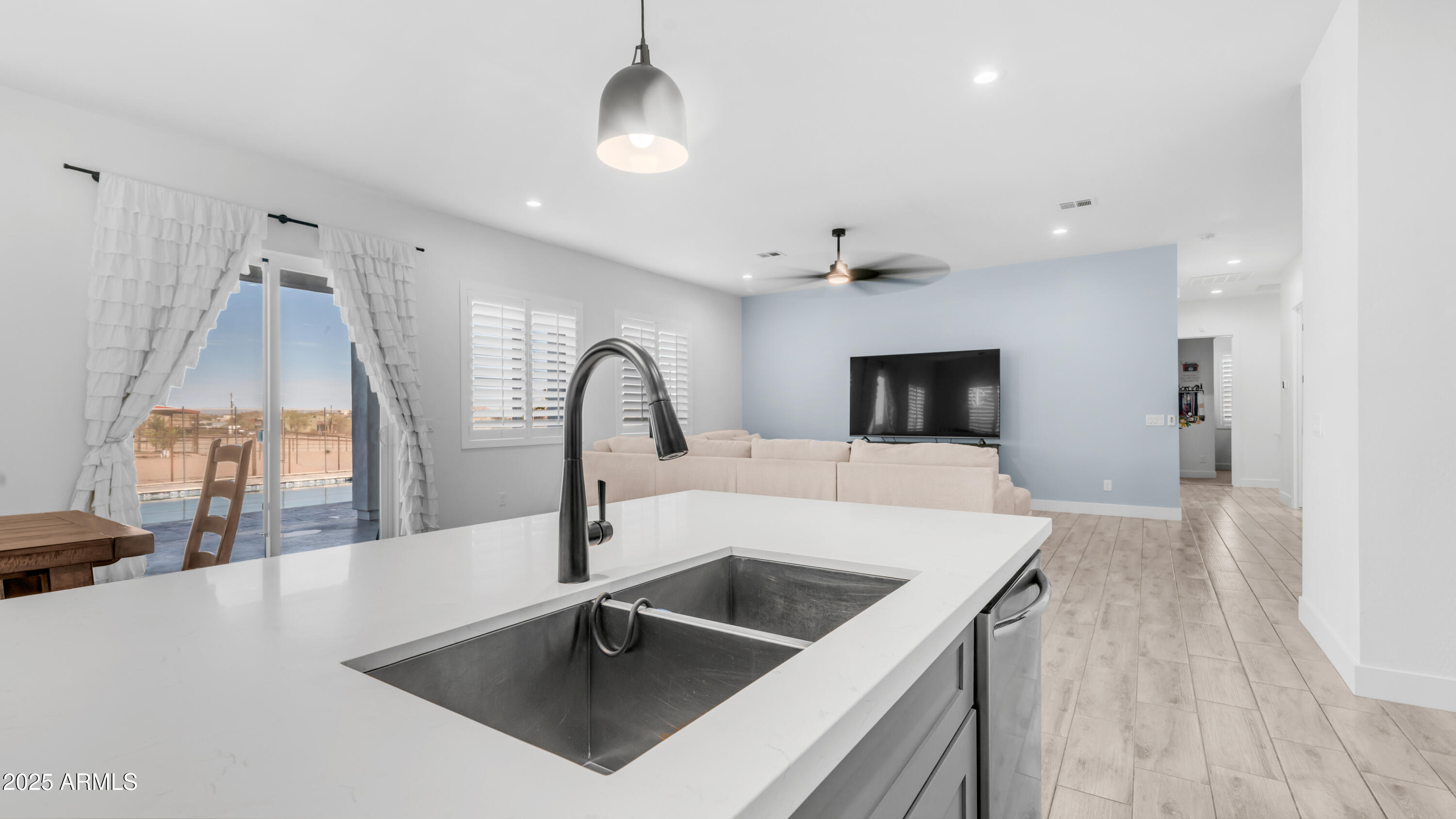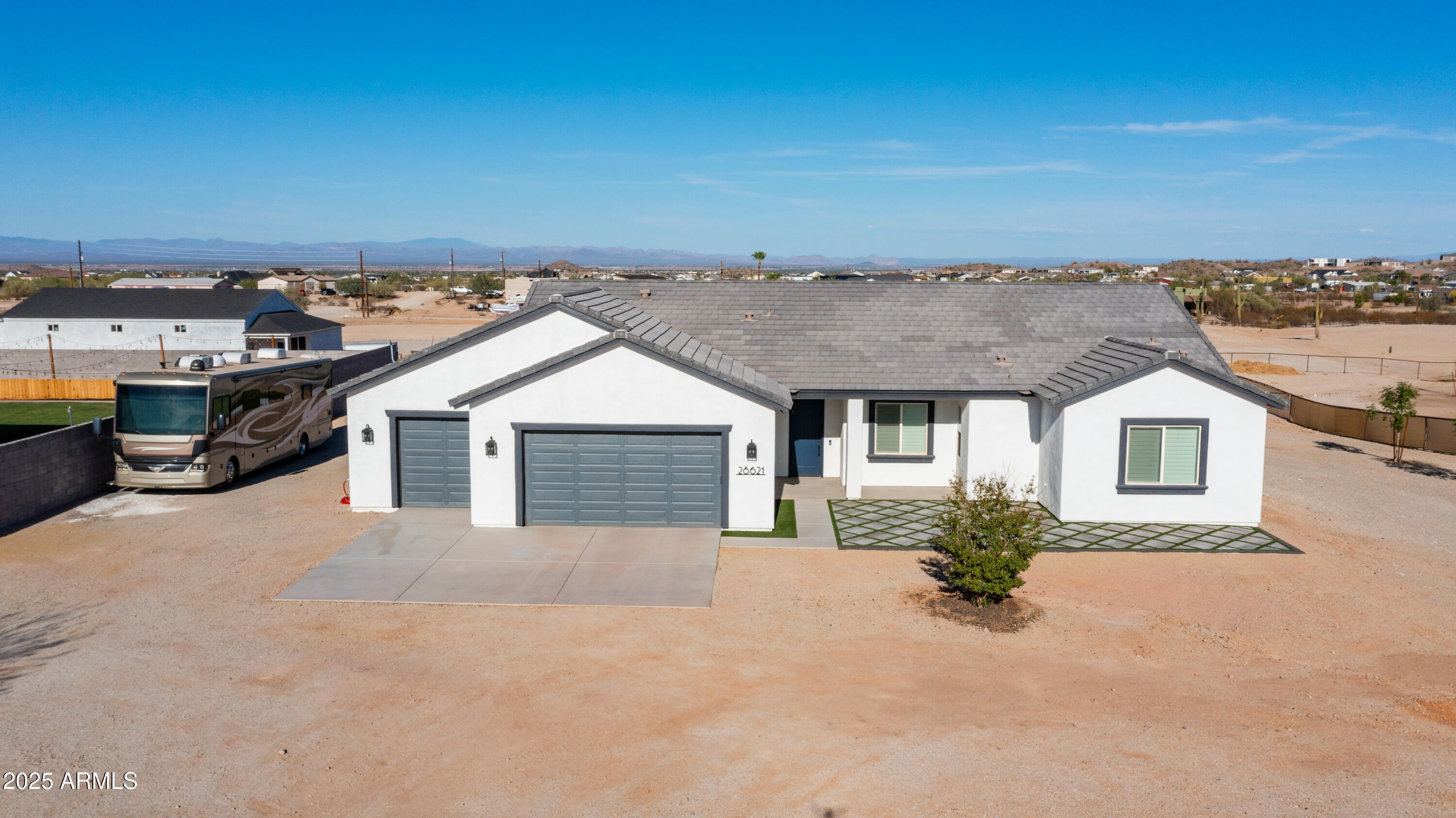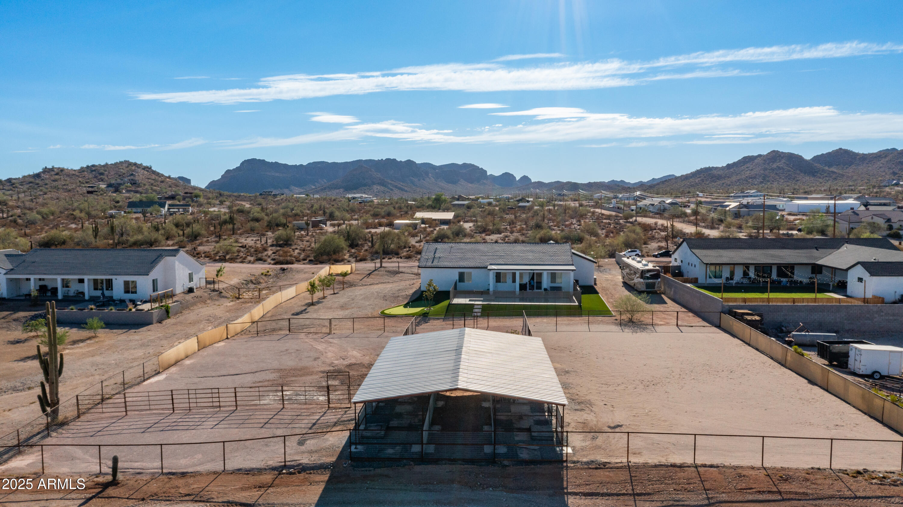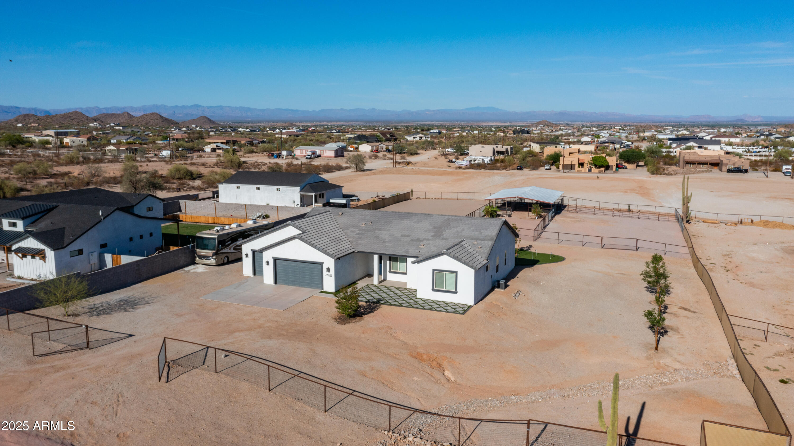 Come see it! Sellers are open to a backup offer. Immaculately cared for home with no HOA. Situated on a gated 1.25 acre lot, this property offers the perfect balance of privacy, space, and modern comforts. Whether you're looking for room to grow, raise animals, or simply enjoy wide open spaces, this home is the ideal backdrop for your country lifestyle. As you enter the foyer, you're immediately greeted by the warmth and comfort of a beautifully inviting living room. Sunlight pours through large plantation shutters, casting a soft glow across the rich flooring and open layout. With 10ft ceilings, this 4 bedroom, 3 bathroom custom home will have all the space you will ever need. Step into a kitchen where beauty meets function in perfect harmony. Thoughtfully designed and bathed in natural light, this stunning space features rich cabinetry, quartz countertops, and modern appliances all tied together with timeless style. Elegant, warm, and truly inviting, this kitchen is more than just a place to cook, it's a place to gather, connect, and create memories. Open to the living and dining areas, it's the heart of the home ideal for everyday living and effortless entertaining. The home also features an oversized three car garage with AC, and 50 amps inside and out. But it's the backyard that steals the show. The sparkling saltwater pool shimmers like a jewel, inviting moonlit swims and sun-kissed afternoons. The beautiful combination of tile and easy maintenance synthetic grass, as well as your personal putting green, this is a place for unforgettable gatherings. And if it gets too cool, don't forget to turn on your new pool heater. The property is sectioned off to accommodate horses, a sand riding arena and usable backyard space. The 36x60 barn has six covered stalls with a turnout and a grooming area. All stalls have power, water, lights and rubber mats. Whether you're sharing stories under the stars, waking up to the hush of a calm morning, or simply enjoying the glow of golden hour, this is more than a home, it's a place where moments become memories. Come fall in love.