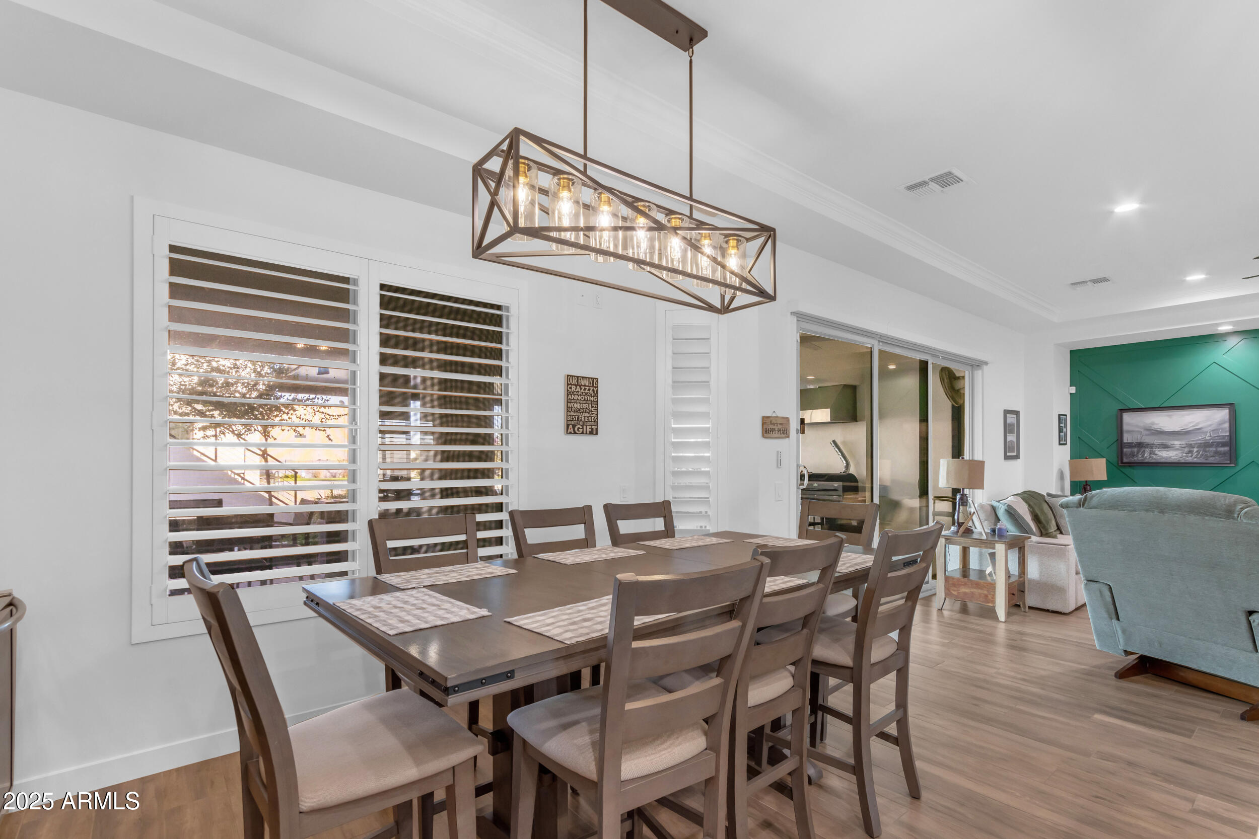 Arrive to a paver driveway and beautifully landscaped front yard that instantly boosts curb appeal. The extended covered front patio welcomes you inside, where a single-level split floor plan opens up to an expansive great room. Natural light pours in, highlighting plantation shutters, wood-look tile, a custom accent wall, and plenty of can lighting create an inviting feel.