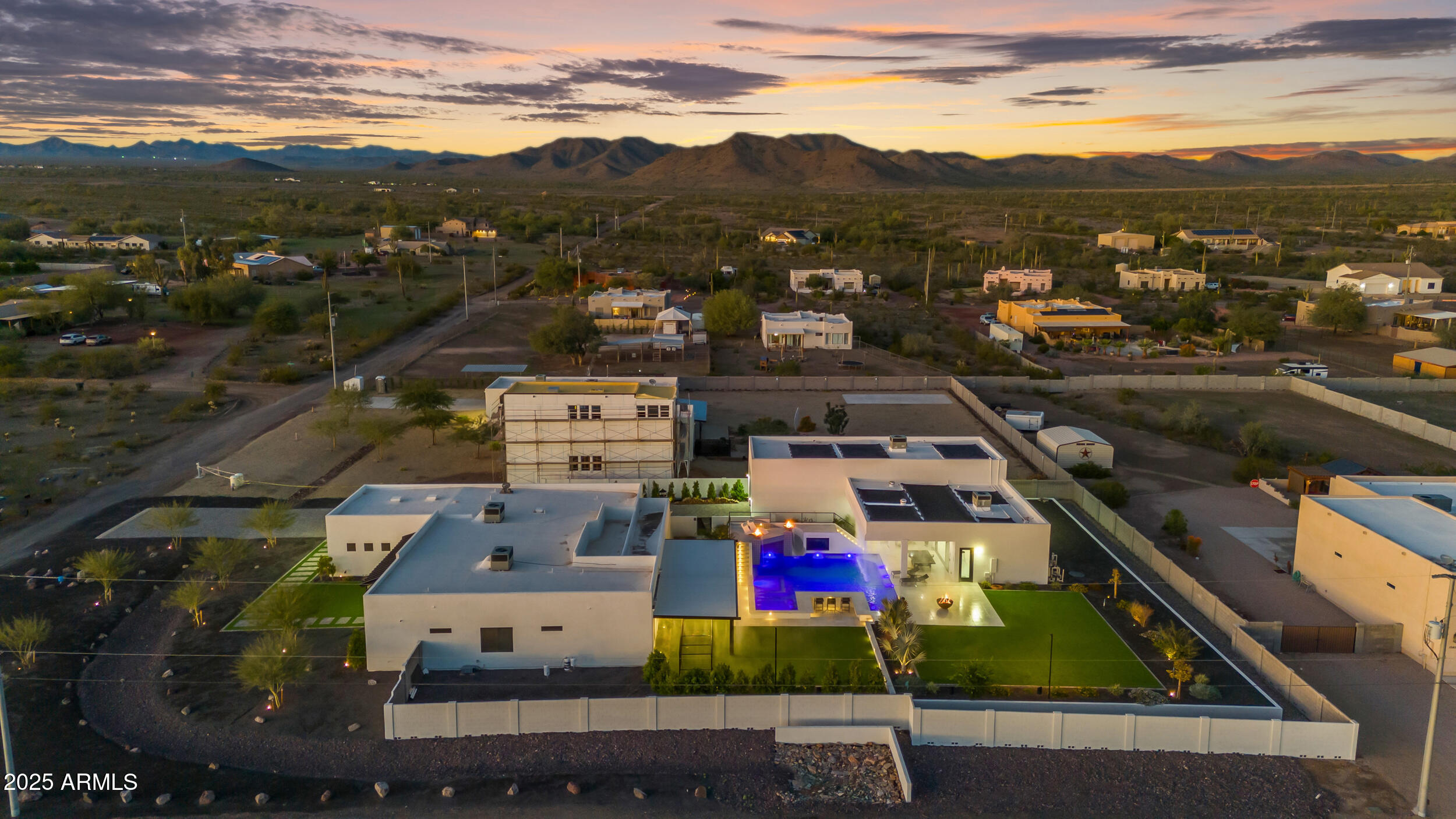This stunning residence is situated in a peaceful custom neighborhood surrounded by the natural beauty of the Arizona desert. The property offers wide-open spaces and stunning mountain views that create a memorable backdrop for everyday living. The area is known for its sense of community, privacy, and easy access to the 303, making commutes and errands simple while still offering a tucked-away feeling. For outdoor lovers, there are endless opportunities for hiking, biking, and riding right outside your door. Be sure to review the documents section for a detailed list of all recent enhancements and improvements.
