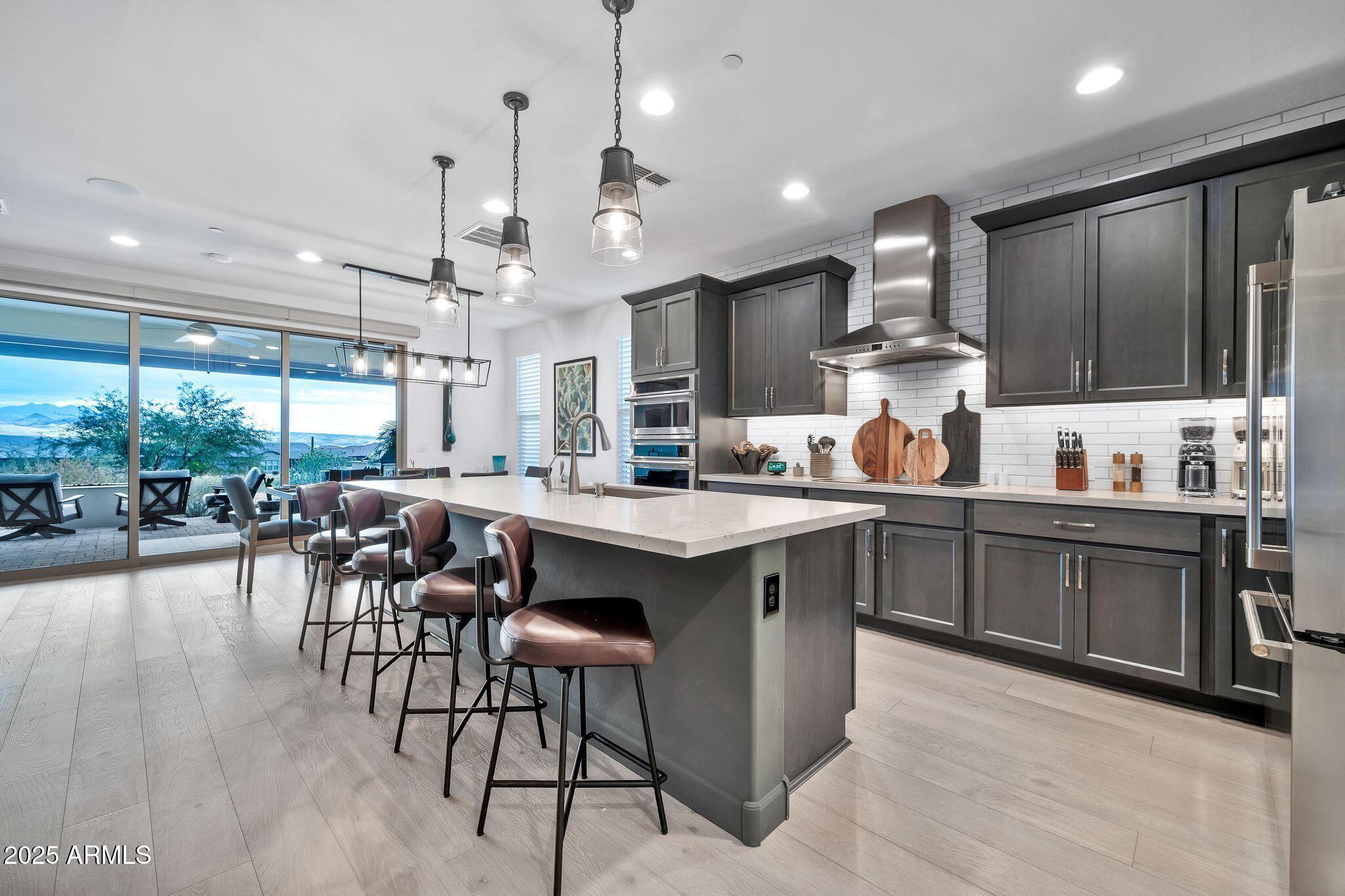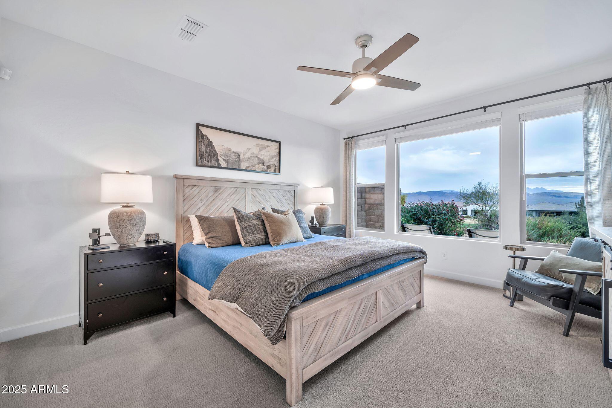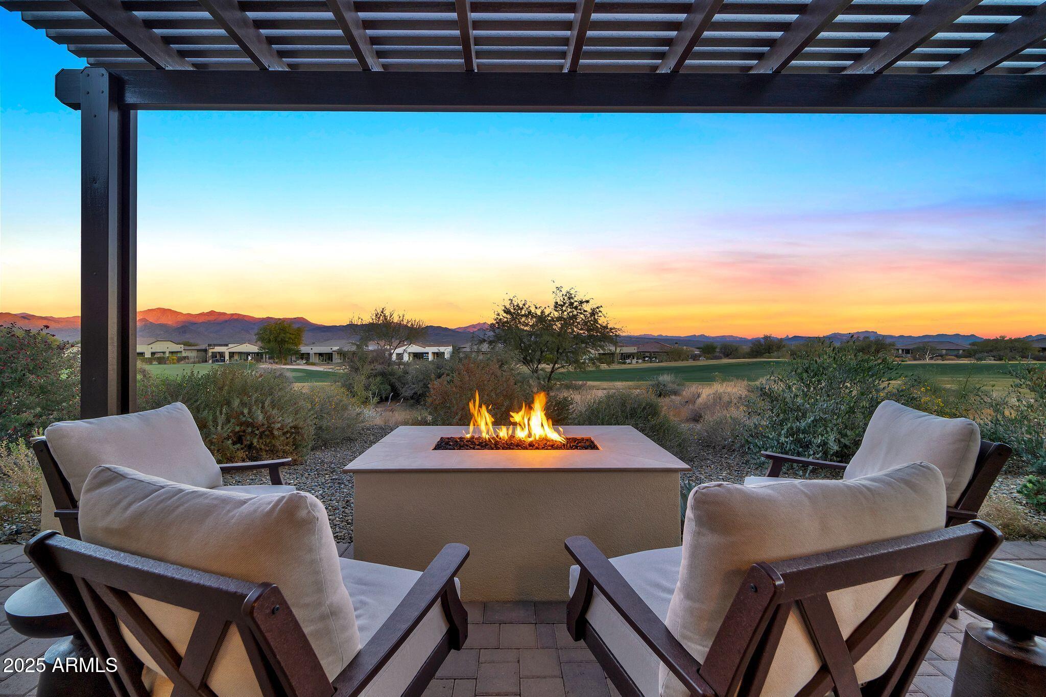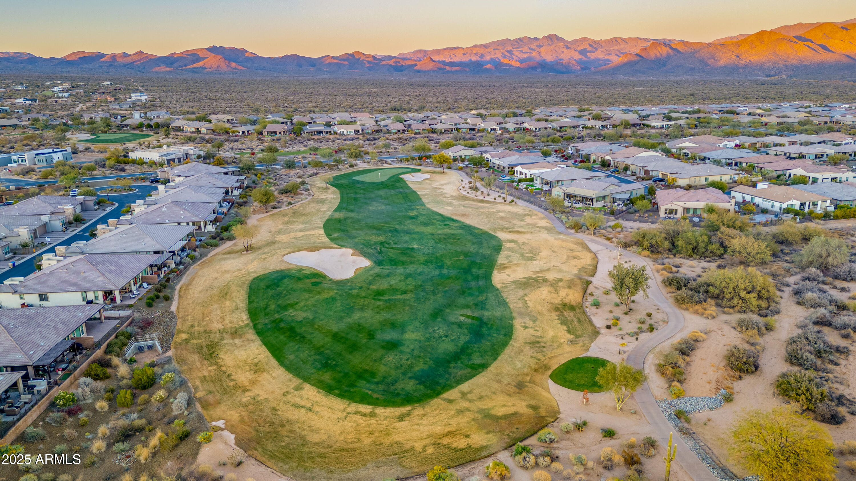 SPECTACULAR ELEVATED MOUNTAIN VIEW HOME ON THE 2ND HOLE OF VERDE RIVER GOLF & SOCIAL CLUB IS HIGHLY UPGRADED AND THE BEST TURNKEY OPTION IN THE WHOLE COMMUNITY. This beautiful Valletta resort home is available fully furnished and has many custom finishes/builder upgrades. Spacious covered patio w/ outdoor audio & TV, built-in grill and firepit, upgraded pergola package gives way to 180-degree mountain & golf course views. Beautiful kitchen w/ upgraded Monogram appliance package and large kitchen island. Custom shiplap Great Room TV wall with surround sound, office outfitted with custom murphy bed, primary bedroom suite w/ amazing views & a luxurious bathroom. Don't miss this incredible opportunity to start living the Arizona lifestyle from the moment you move in stress free on Day 1!