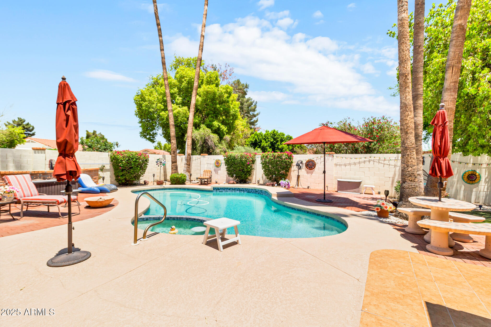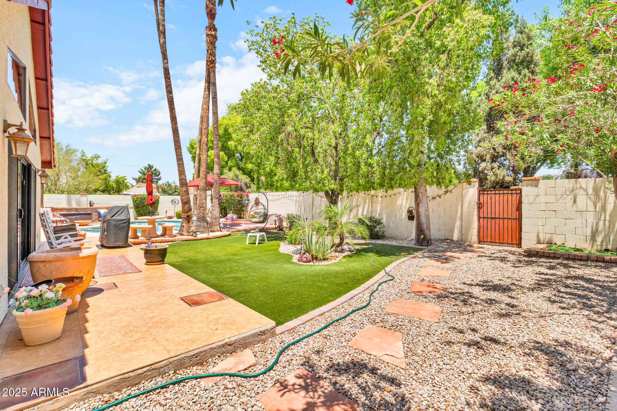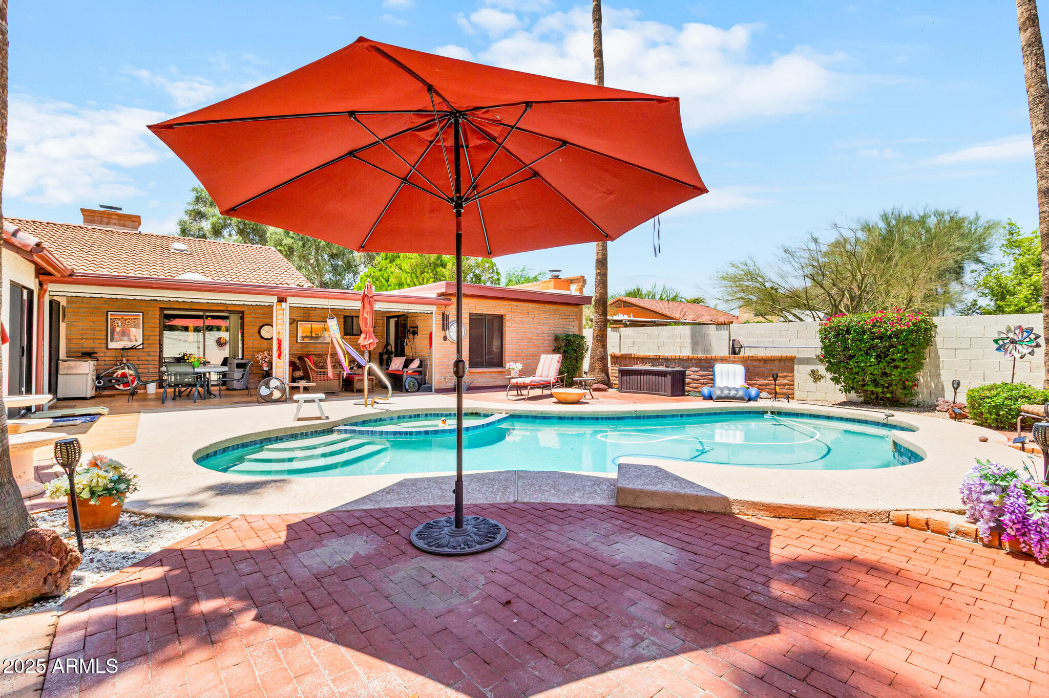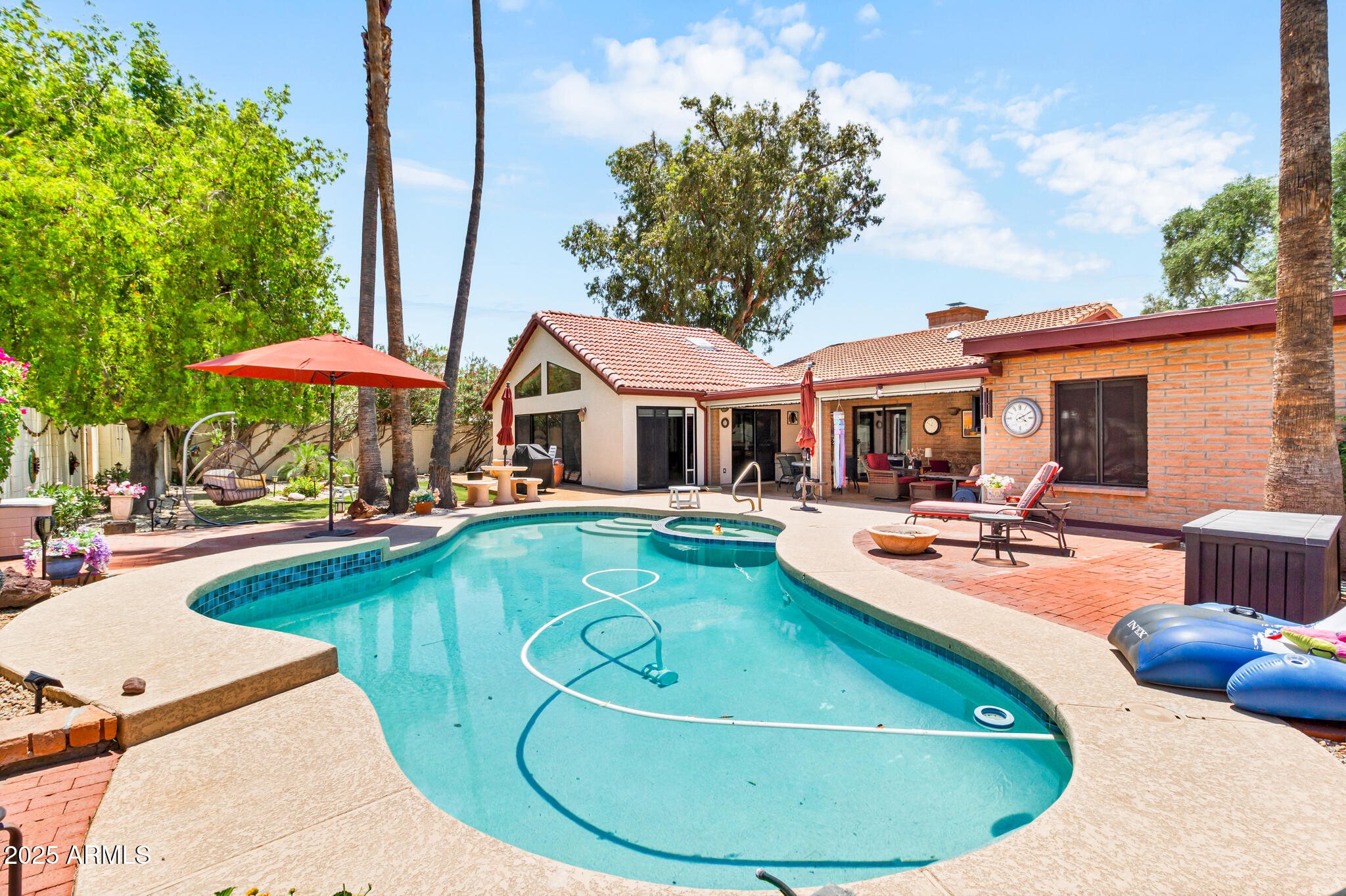 Out back, enjoy a tranquil private retreat with a sparkling pool and spa, surrounded by low-maintenance synthetic turf and mature landscaping. Whether sipping your morning coffee or unwinding at sunset, the backyard is a true extension of the home's charm.