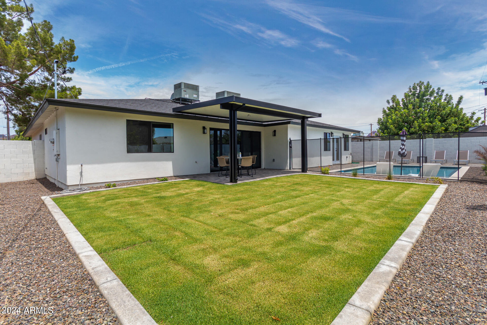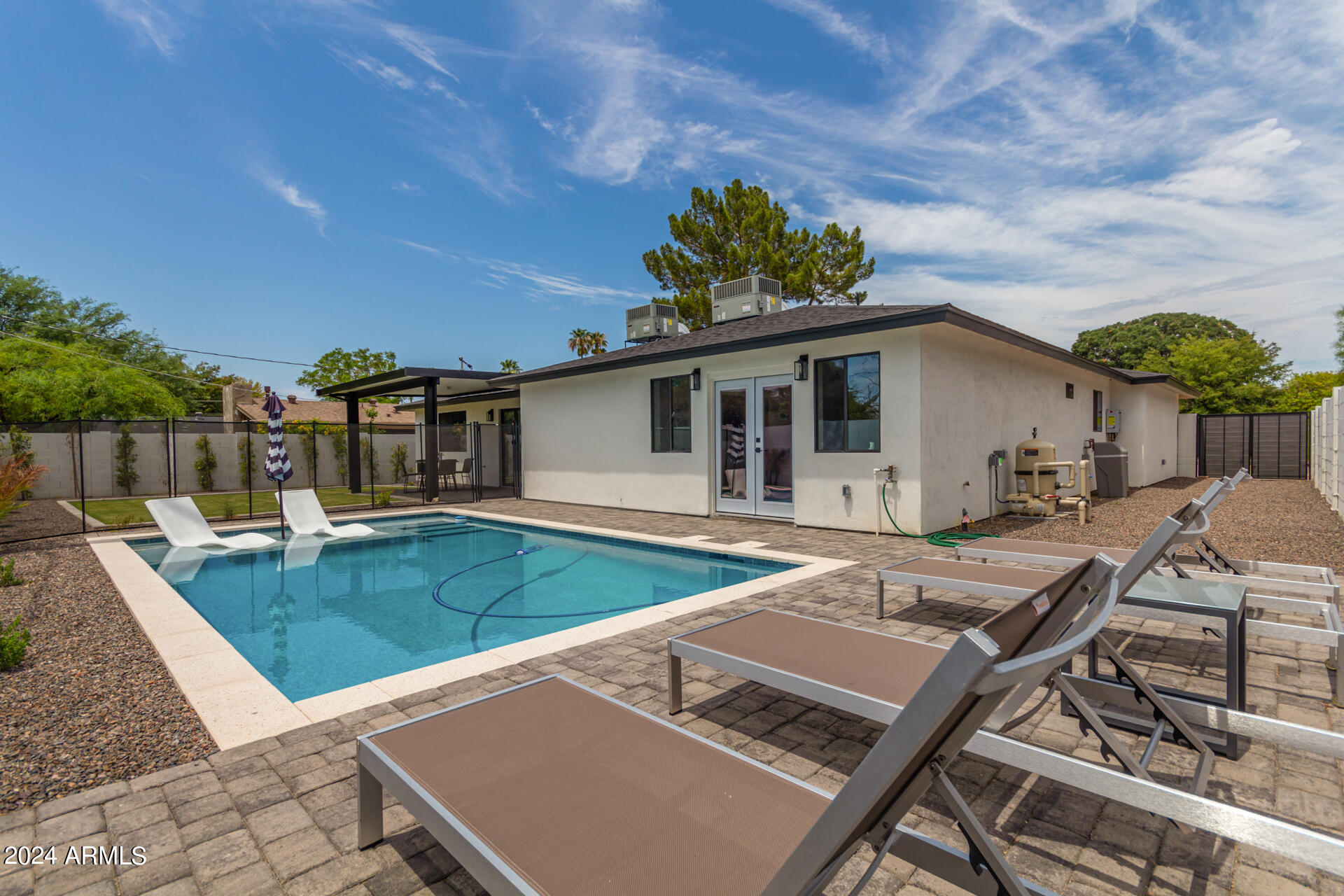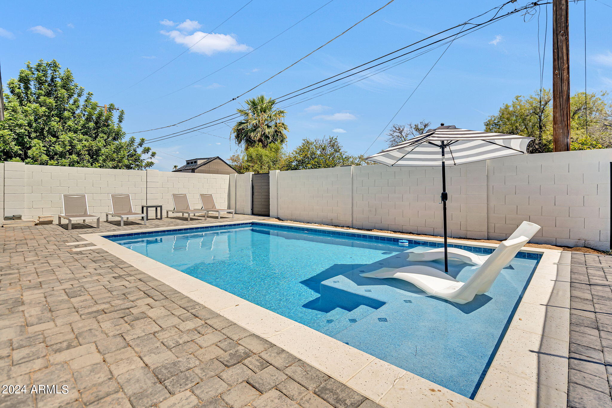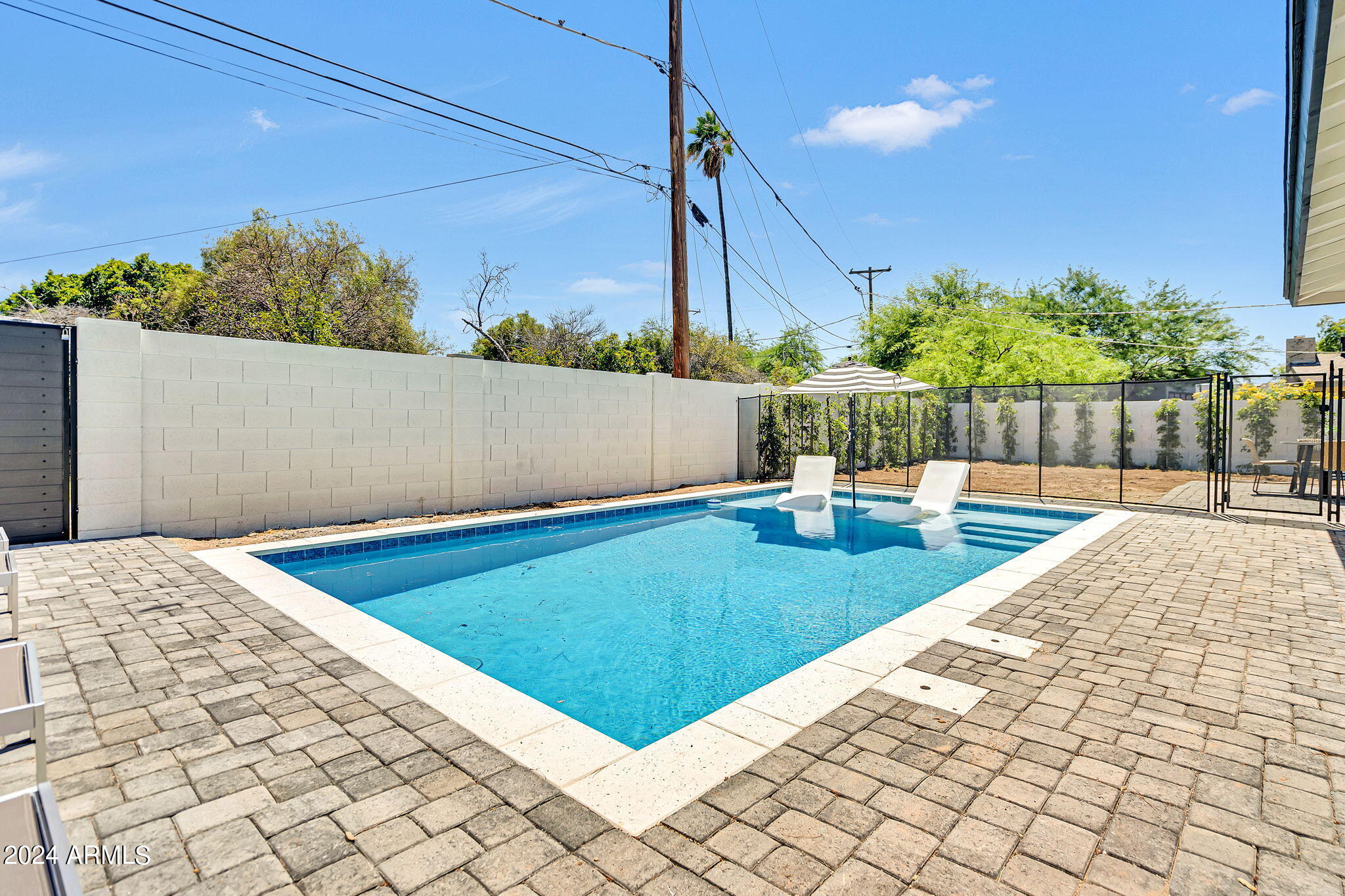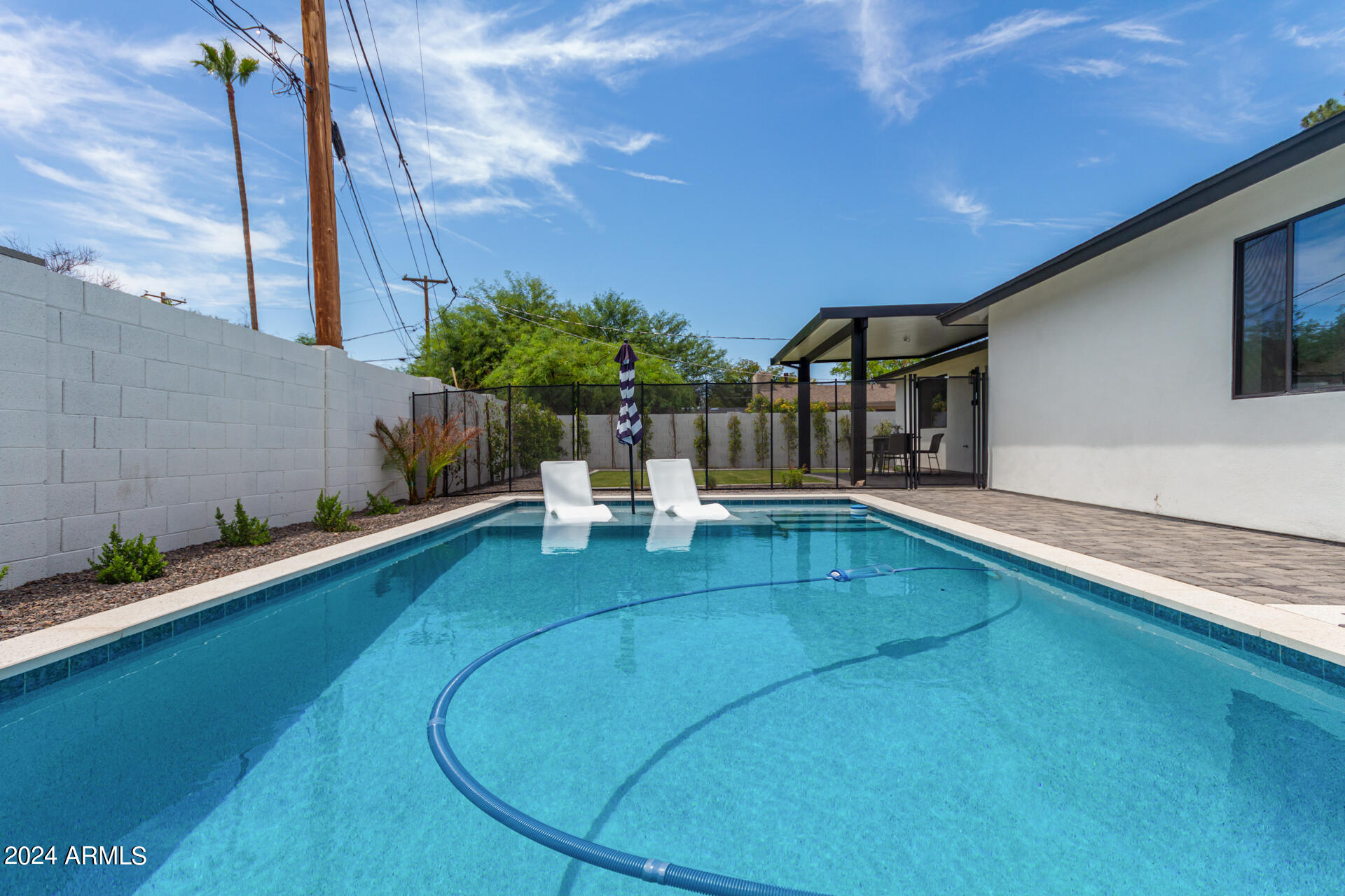 JUST COMPLETED JULY 2024! Days on market reflect listing while under construction. FULLY REMODELED down to the studs & fully reimagined! Beautiful home w/ 4 bed/4 bath, PLUS DEN, 1 car garage + tons of extra parking & BRAND NEW POOL. NO HOA! Kitchen features a MASSIVE island & high end appliances including 6 burner stove, side-by-side fridge/freezer, tons of cabinets & walk-in pantry. Large primary w/ walk-in closet + separate WC in en suite. Outdoor living includes covered patio + enclosed porch w pavers. Grass + trees create lush privacy. LOCATION! Stunning neighborhood minutes from Arcadia: tons of shopping, restaurants, & robust business district. Central to Old Town Scottsdale, DT Phoenix & Airport, Paradise Valley, & great hiking. Lovingly completed w/ high end designer finishes