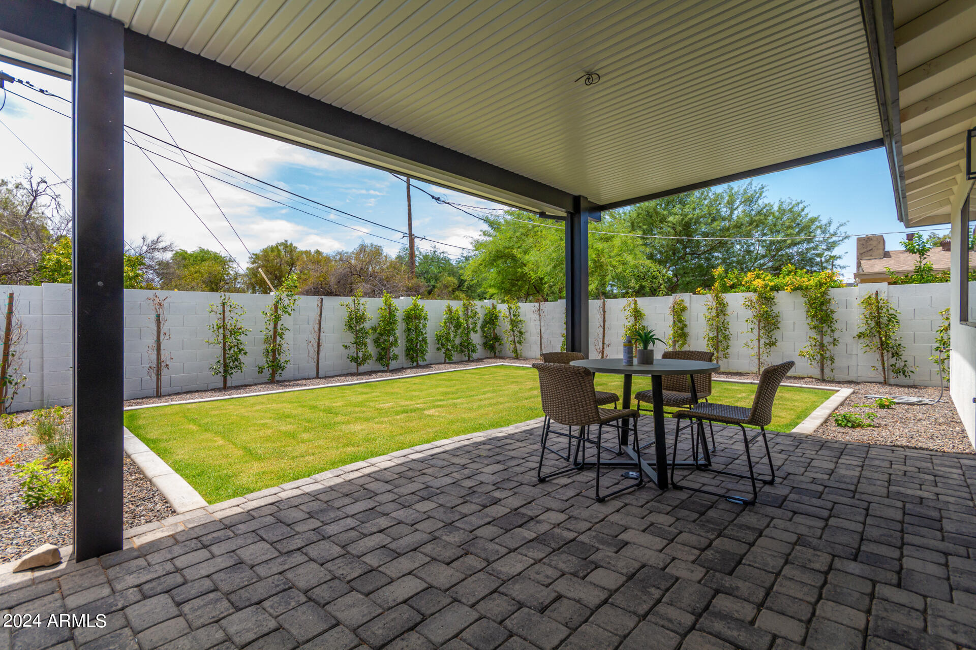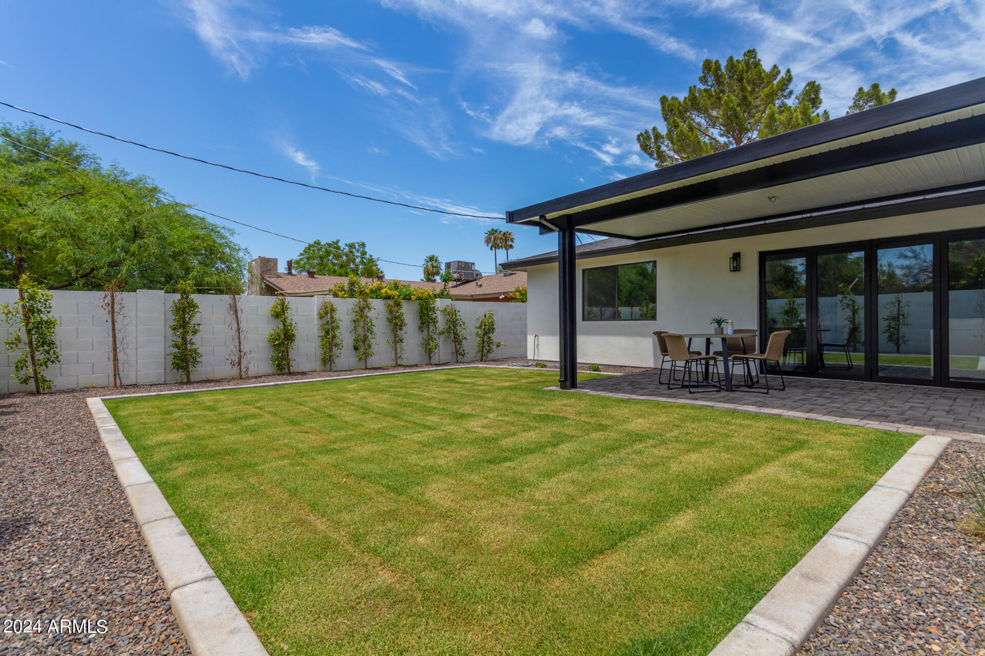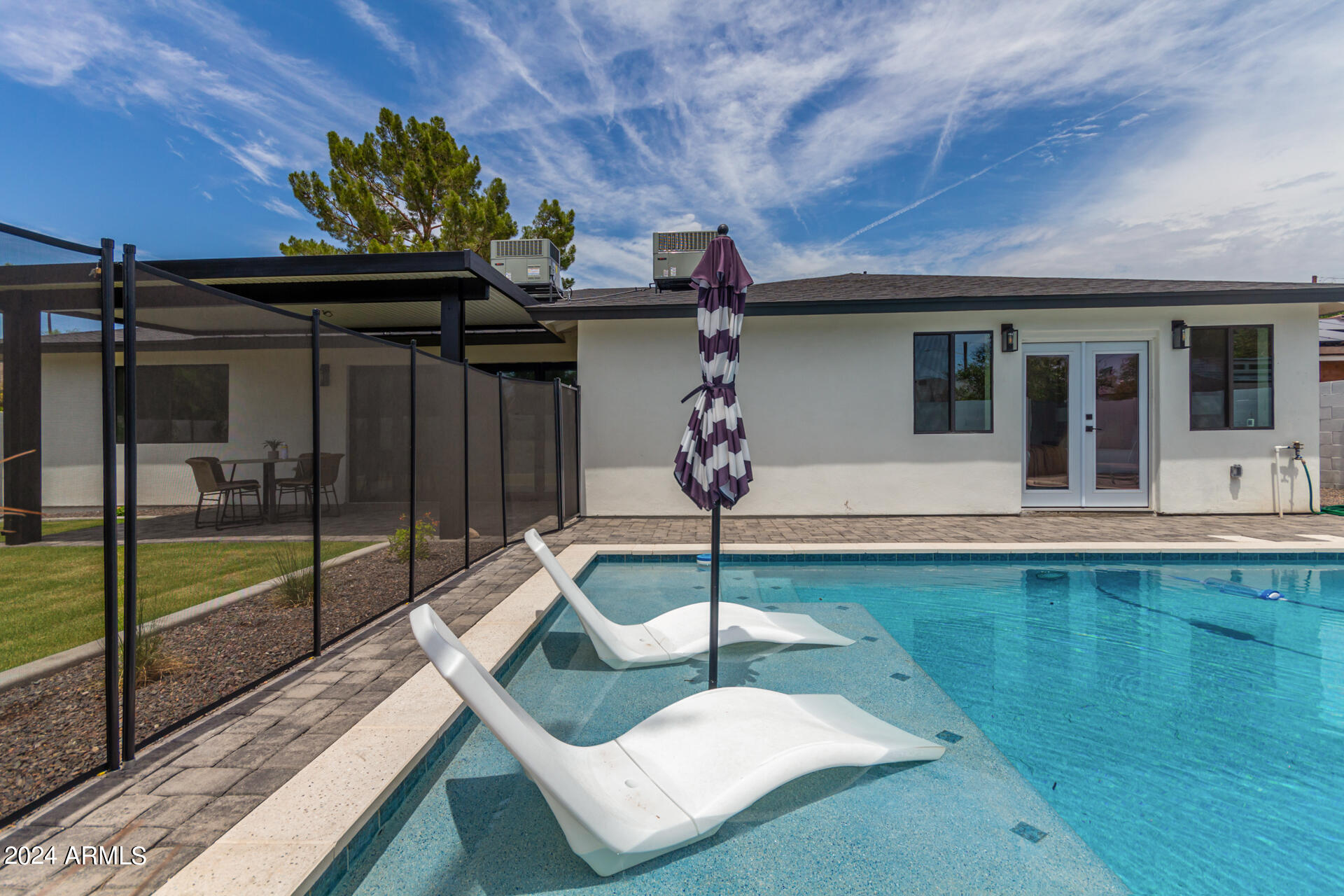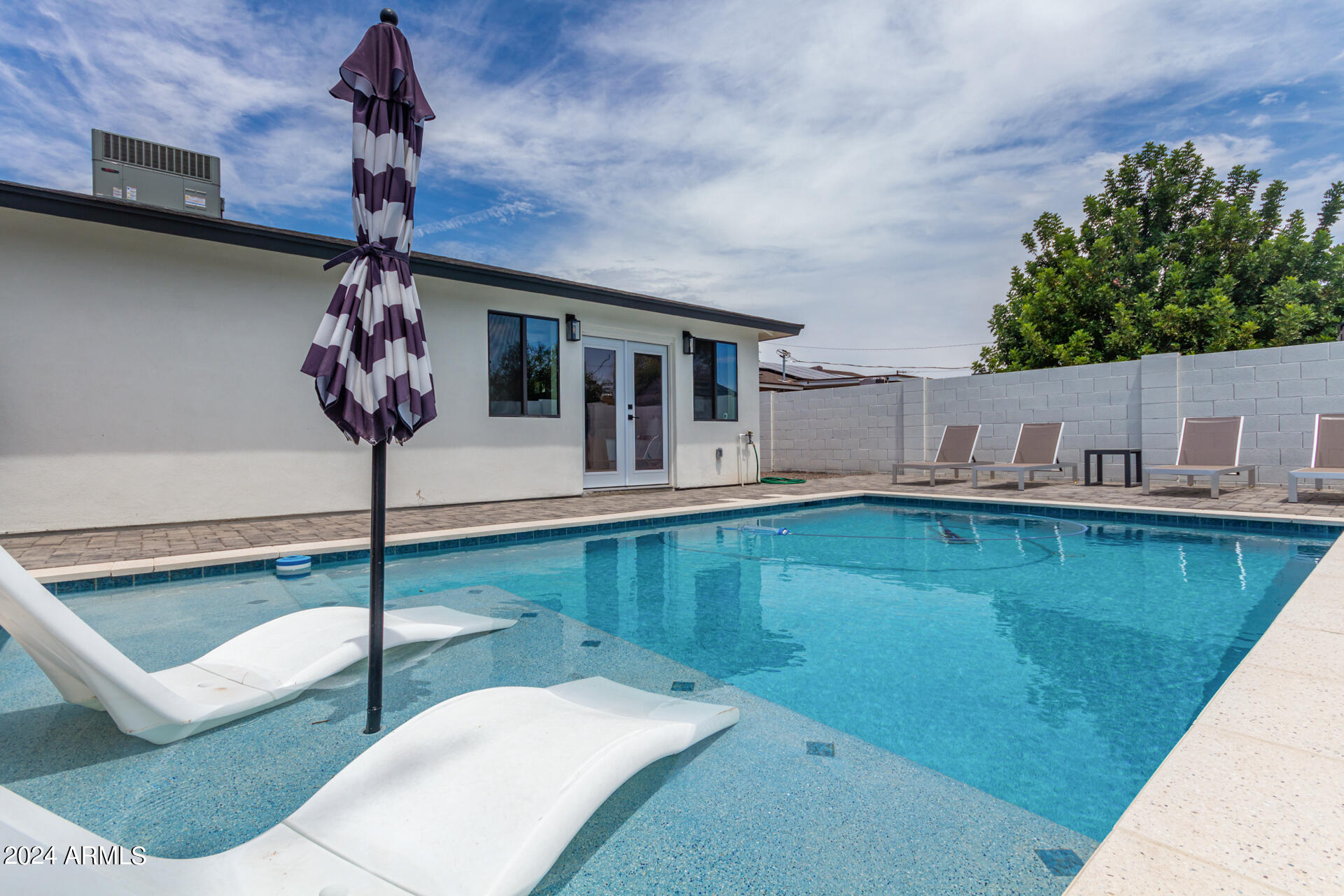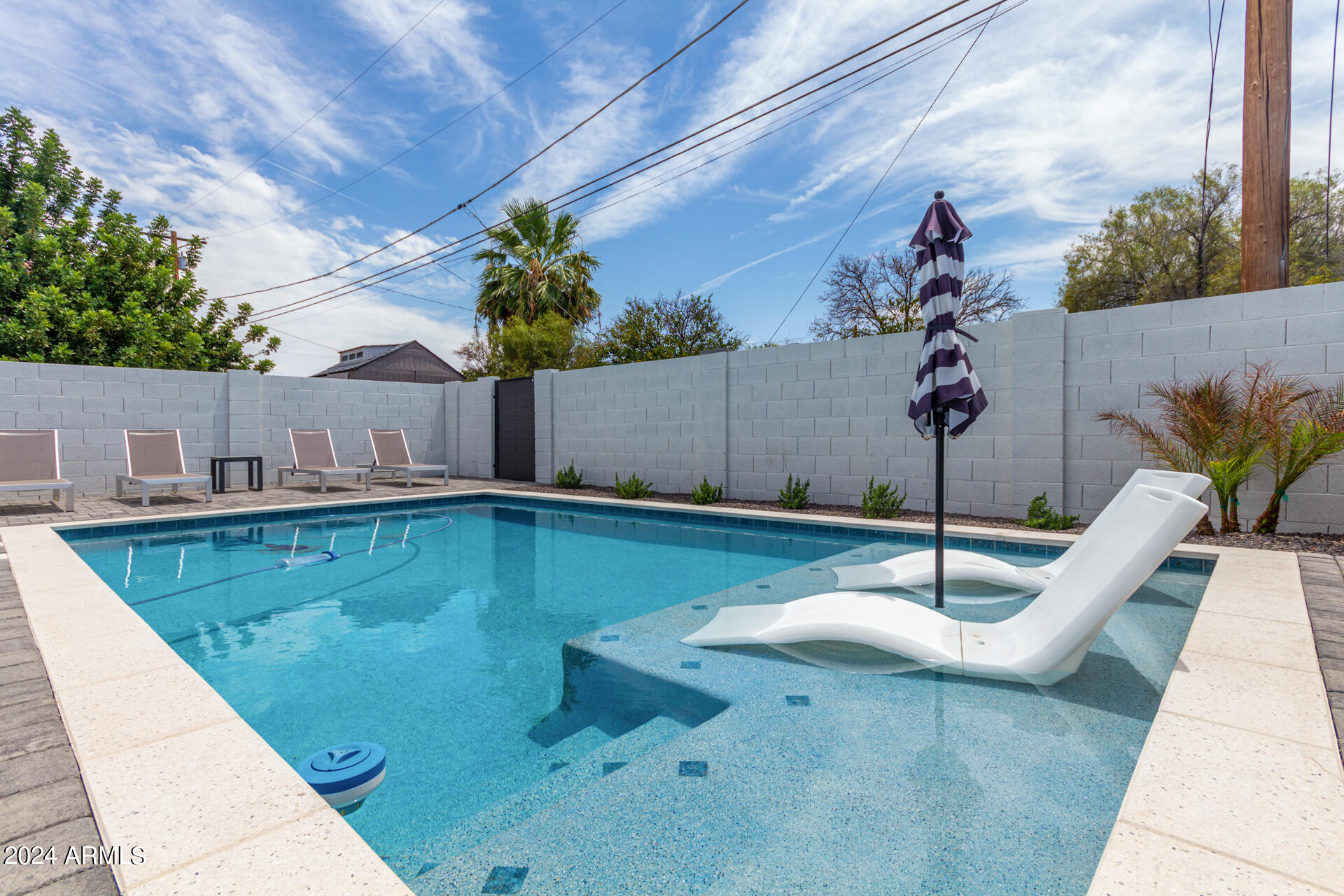 JUST COMPLETED JULY 2024! Days on market reflect listing while under construction. FULLY REMODELED down to the studs & fully reimagined! Beautiful home w/ 4 bed/4 bath, PLUS DEN, 1 car garage + tons of extra parking & BRAND NEW POOL. NO HOA! Kitchen features a MASSIVE island & high end appliances including 6 burner stove, side-by-side fridge/freezer, tons of cabinets & walk-in pantry. Large primary w/ walk-in closet + separate WC in en suite. Outdoor living includes covered patio + enclosed porch w pavers. Grass + trees create lush privacy. LOCATION! Stunning neighborhood minutes from Arcadia: tons of shopping, restaurants, & robust business district. Central to Old Town Scottsdale, DT Phoenix & Airport, Paradise Valley, & great hiking. Lovingly completed w/ high end designer finishes