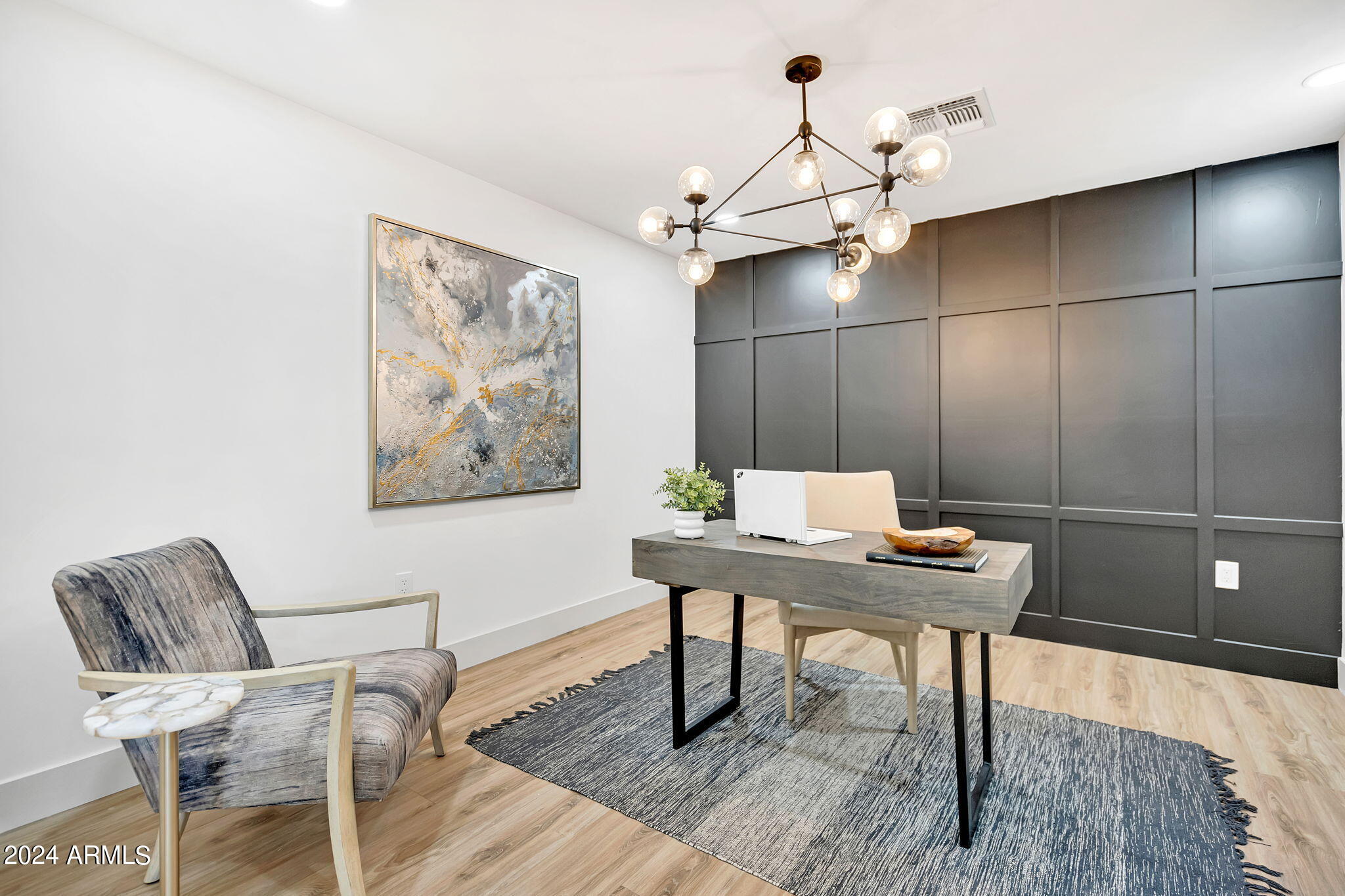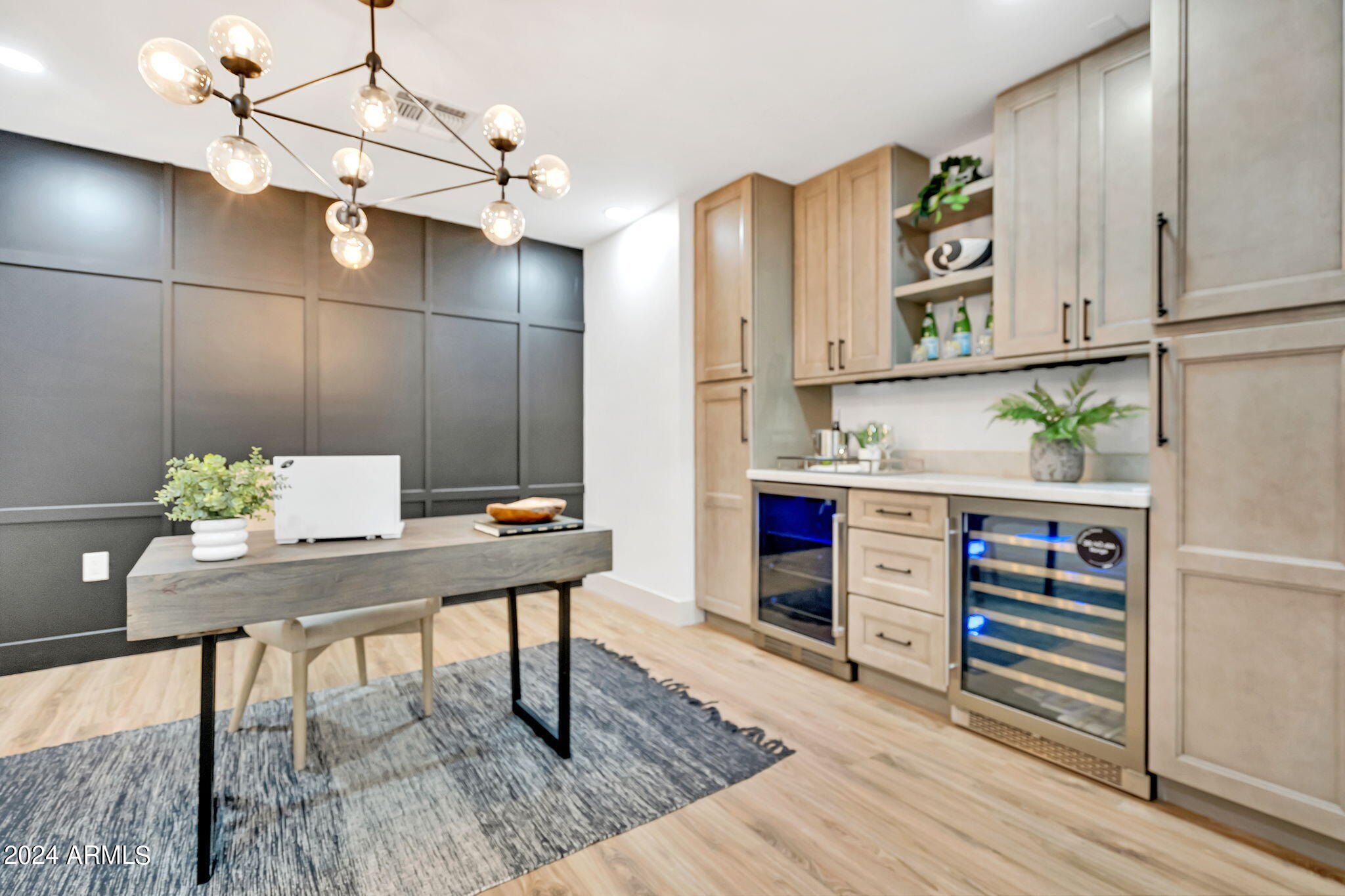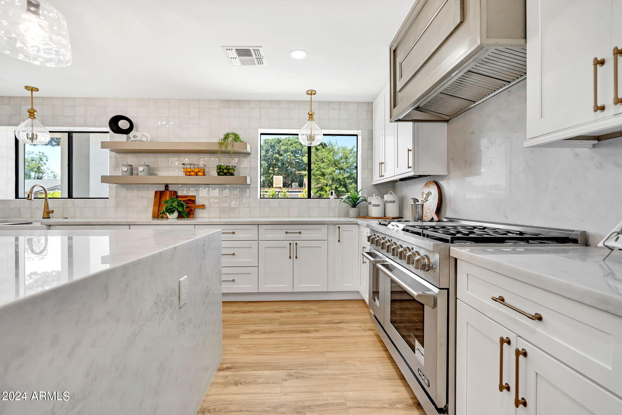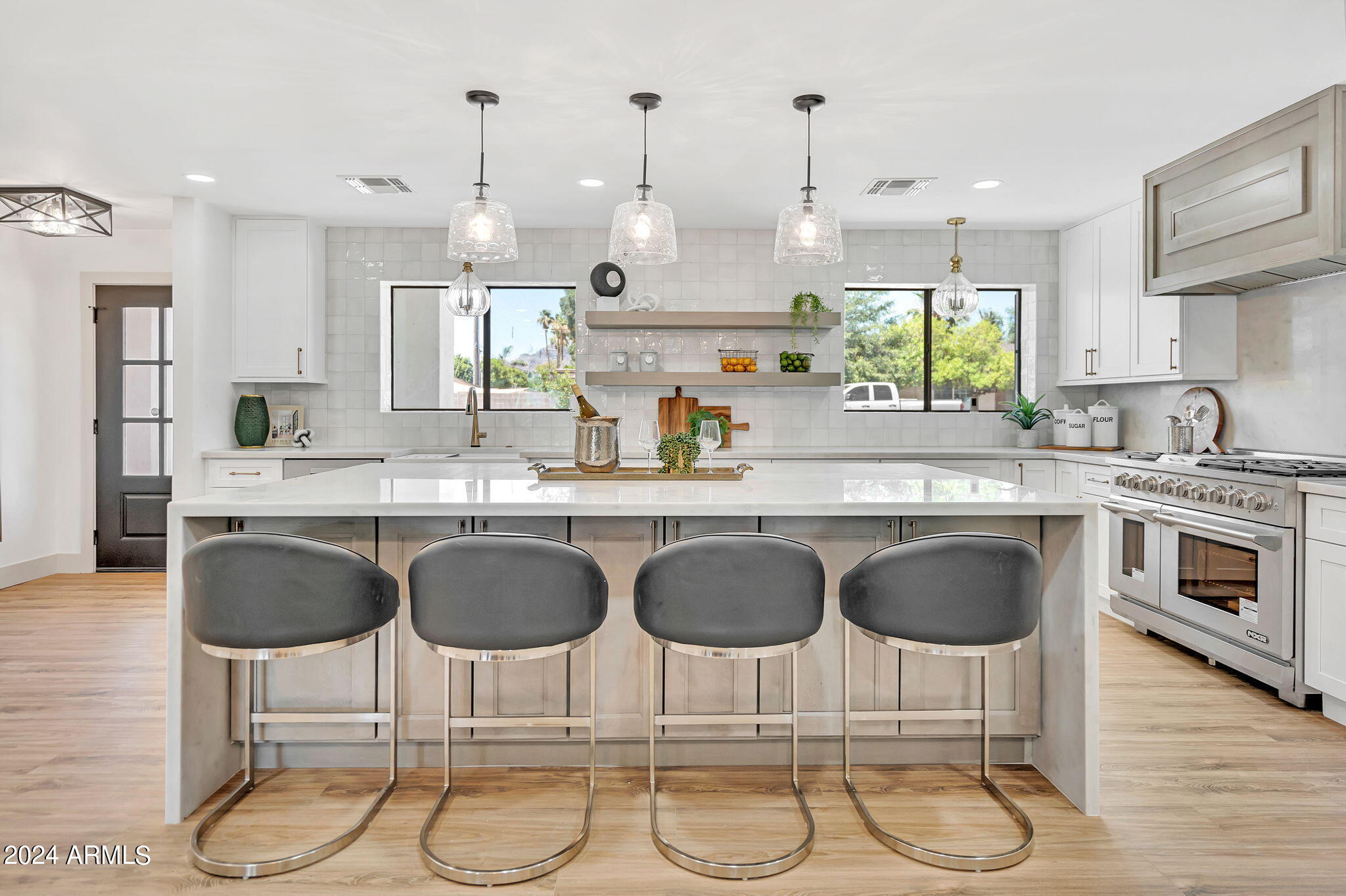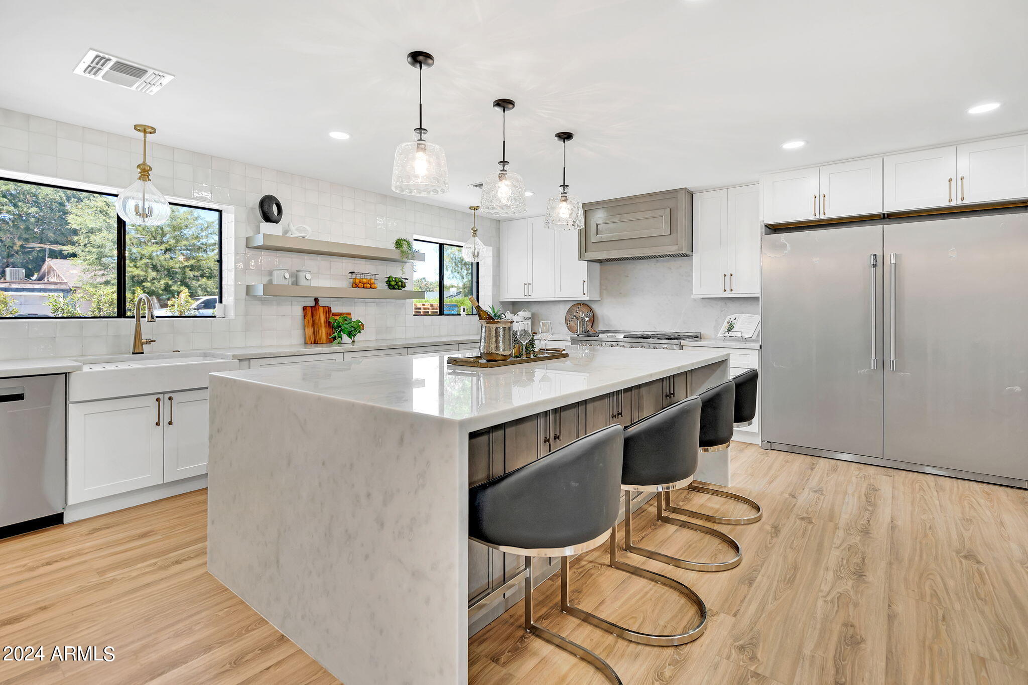 JUST COMPLETED JULY 2024! Days on market reflect listing while under construction. FULLY REMODELED down to the studs & fully reimagined! Beautiful home w/ 4 bed/4 bath, PLUS DEN, 1 car garage + tons of extra parking & BRAND NEW POOL. NO HOA! Kitchen features a MASSIVE island & high end appliances including 6 burner stove, side-by-side fridge/freezer, tons of cabinets & walk-in pantry. Large primary w/ walk-in closet + separate WC in en suite. Outdoor living includes covered patio + enclosed porch w pavers. Grass + trees create lush privacy. LOCATION! Stunning neighborhood minutes from Arcadia: tons of shopping, restaurants, & robust business district. Central to Old Town Scottsdale, DT Phoenix & Airport, Paradise Valley, & great hiking. Lovingly completed w/ high end designer finishes