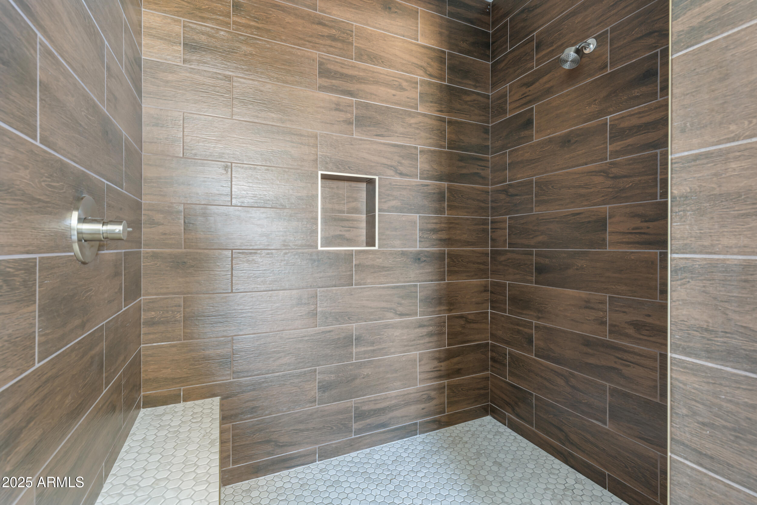 The main bedroom is a peaceful retreat with a big walk-in closet and a bathroom that has double sinks, a fully tiled walk in