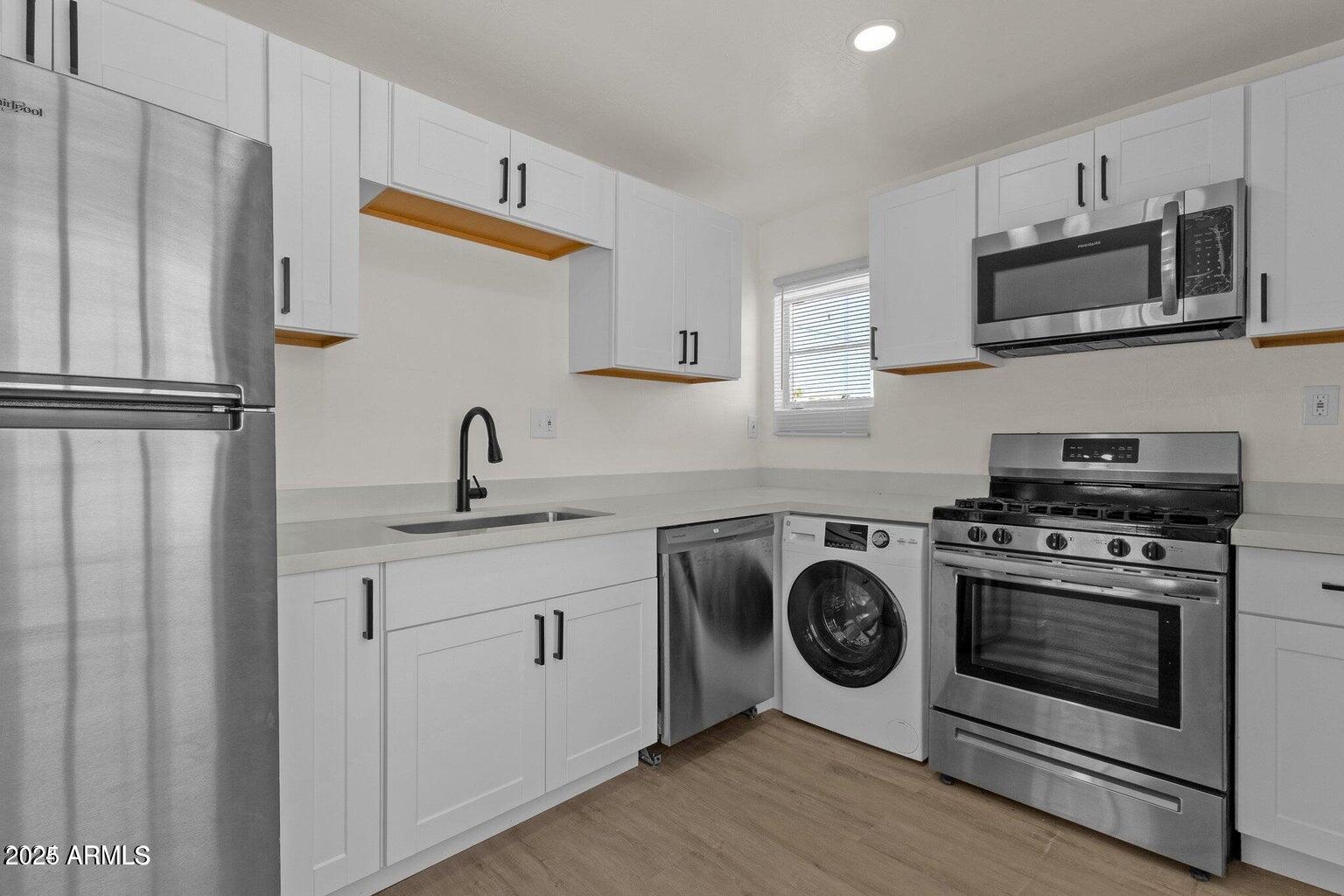 Fully updated and move-in ready! This charming 1-bedroom and 1-bathroom unit is part of a single-level 4-plex, located in one of the most desirable historic districts in town. Thoughtfully remodeled just last year, the home features stylish LVP flooring throughout, a sleek white kitchen with quartz countertops, stainless steel appliances, and a beautifully tiled subway-style shower. Enjoy modern touches like updated light fixtures, fresh stucco, and brand-new interior and exterior paint. You'll love the convenience of having your own washer and dryer, a private yard for relaxing or entertaining, and plenty of parking space. Just minutes from local hotspots, restaurants, coffee shops, parks, and quick freeway access - this one has it all!