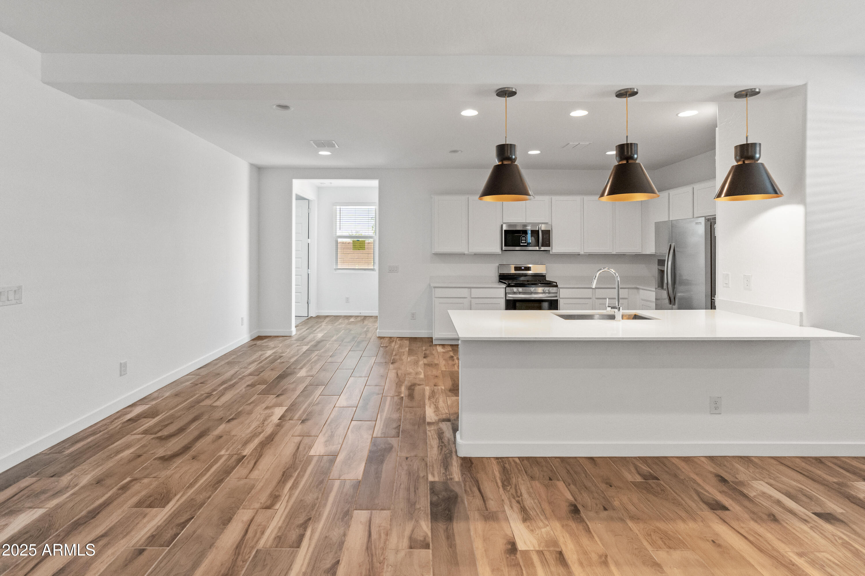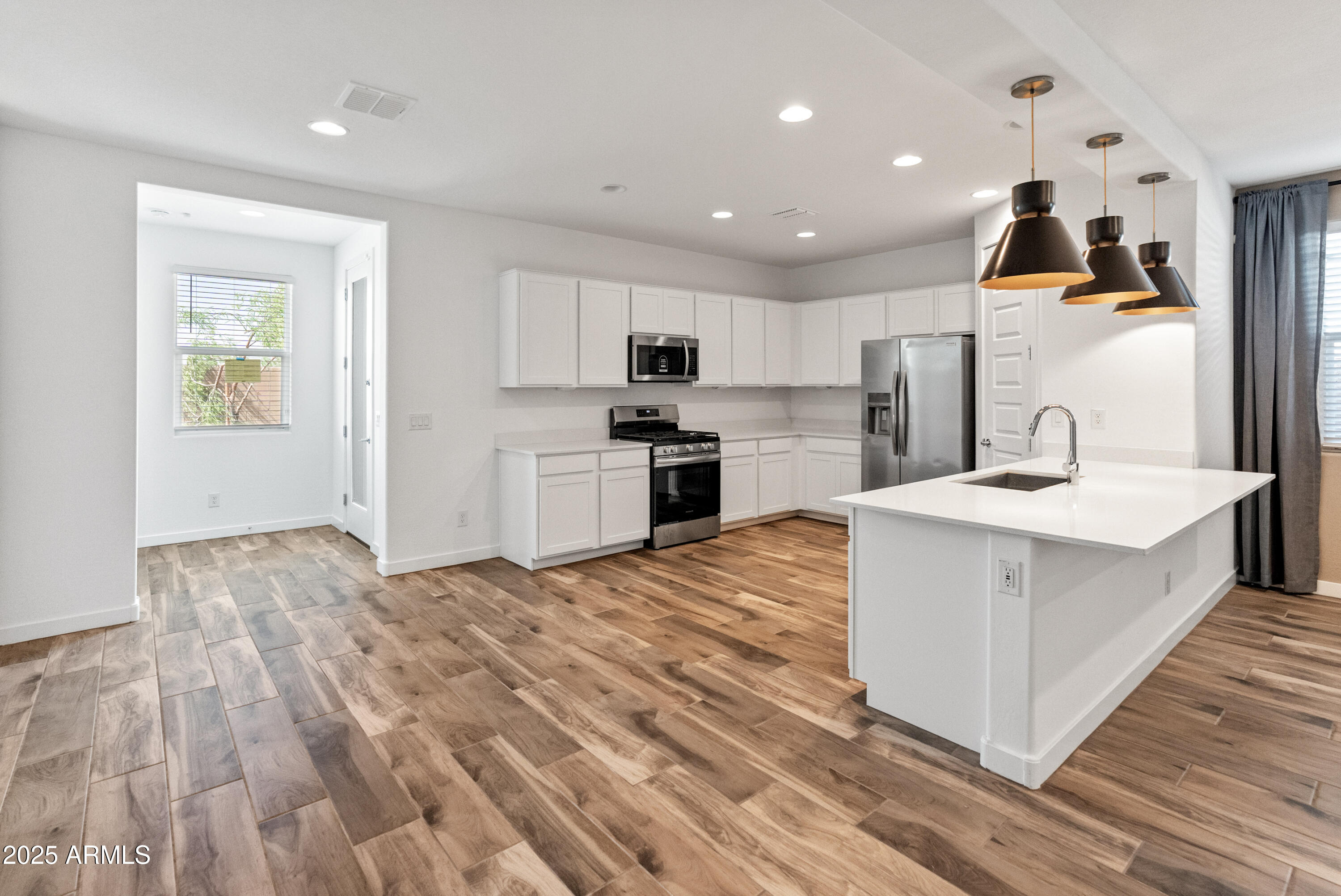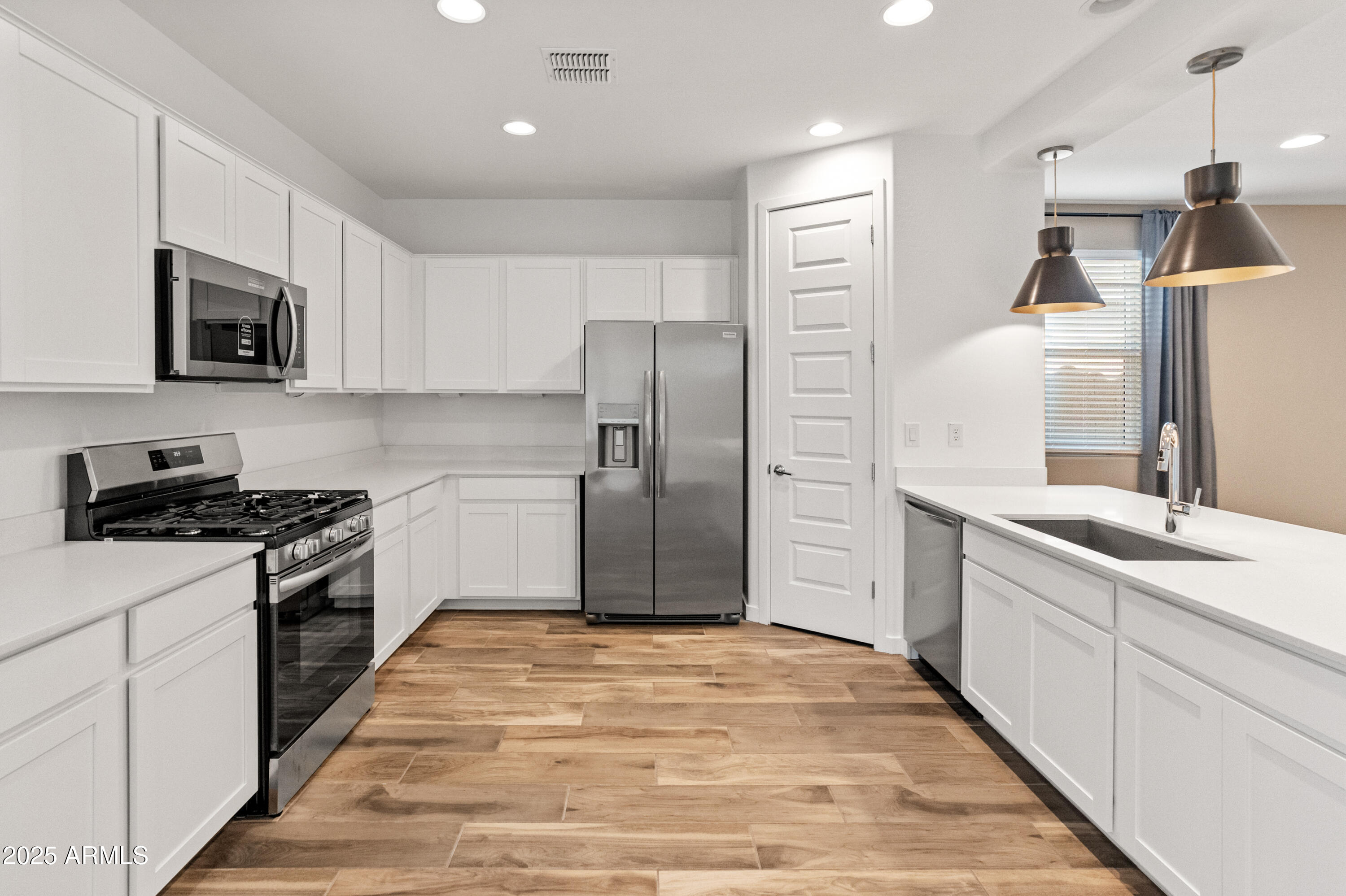 Welcome to this beautifully designed single-level Previous Model home located in the new and upcoming community of Middle Vista, conveniently close to shopping, schools, and freeway access. Inside, you'll find a spacious open-concept layout that seamlessly connects the Great Room, kitchen, and dining area, creating the perfect space for both everyday living and entertaining. Sliding doors lead to the covered patio, ideal for relaxing or hosting guests outdoors. The owner's suite is privately tucked away at the back of the home and features a generous en-suite bathroom and walk-in closet, offering a peaceful retreat. Three additional bedrooms provide comfortable, private spaces for family members or overnight guests. With thoughtful design and a prime location in a growing neighborhood, this home is perfect blend of comfort, style, and convenience