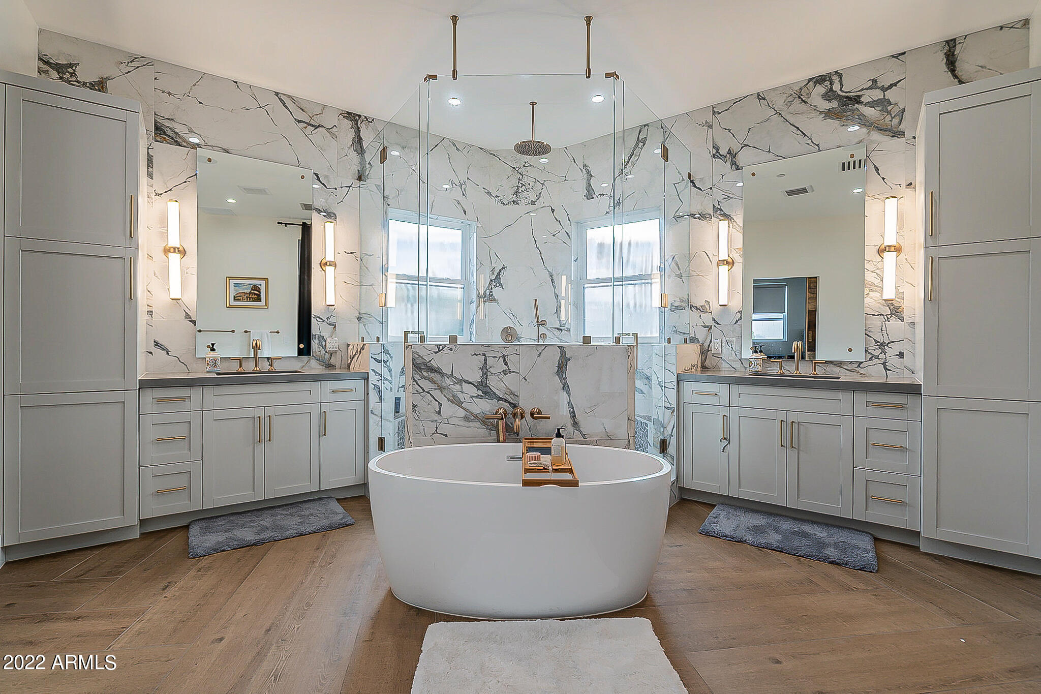 Come see this beautiful custom home in lower Arcadia. 4 masters + Office, 1 main master with his and hers, 3 junior master all with walk-in closets, 4.5 bathrooms, 4 car garage with Custom Metallic flooring and electric car hook up, Full house filtration system, Dacor smart Appliances and Wolf BBQ, Custom US Cabinetry throughout the house with Calcatta Leon and pebble grey countertops, Custom US closets and garage cabinets with pebble grey countertops, Brizo fixtures and faucets and accessories, Smart home, 6 cameras, speakers throughout the house with 7.1 surround, Premium Savant system with three iPad touch pads. Brand new smart heated pool and spa.