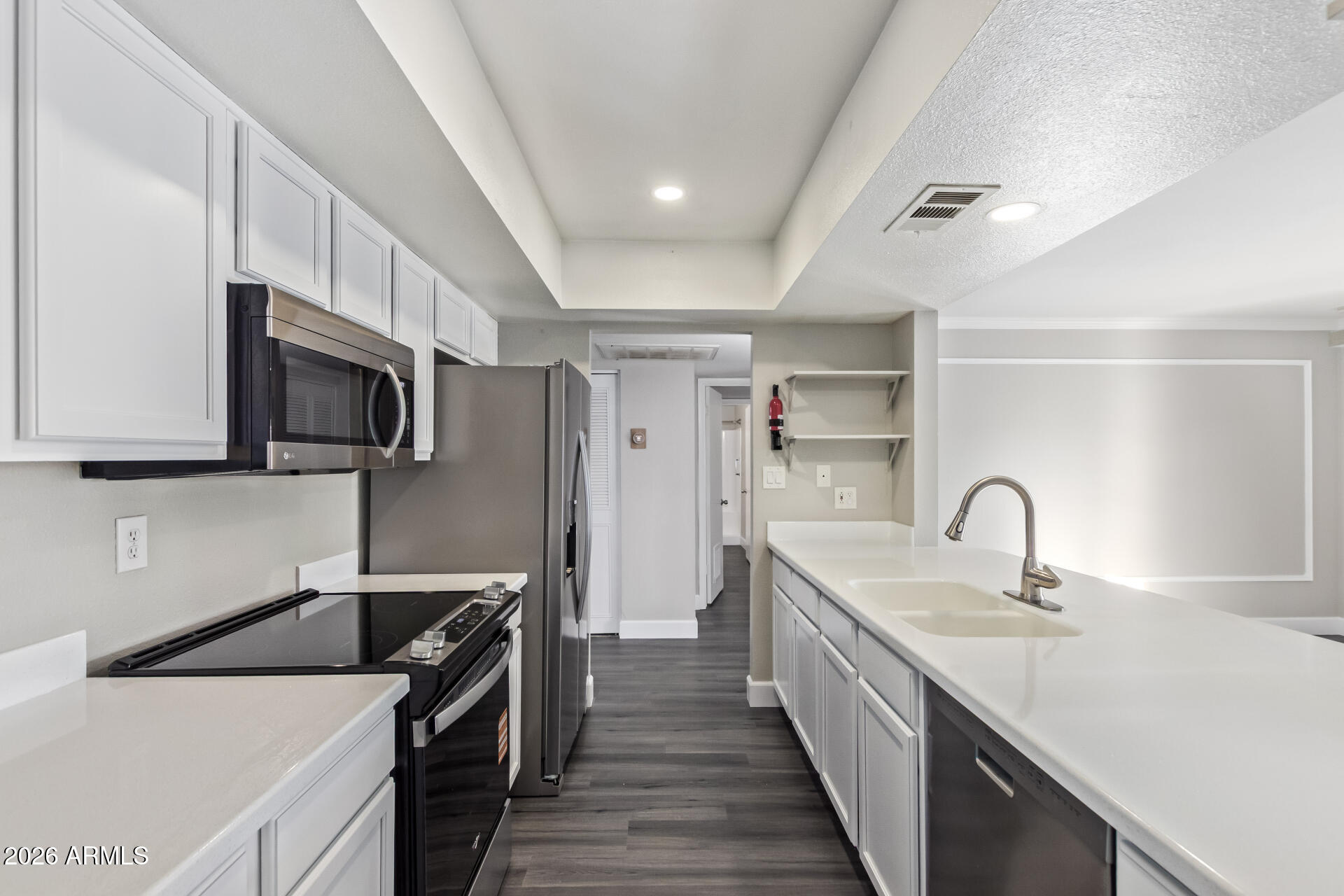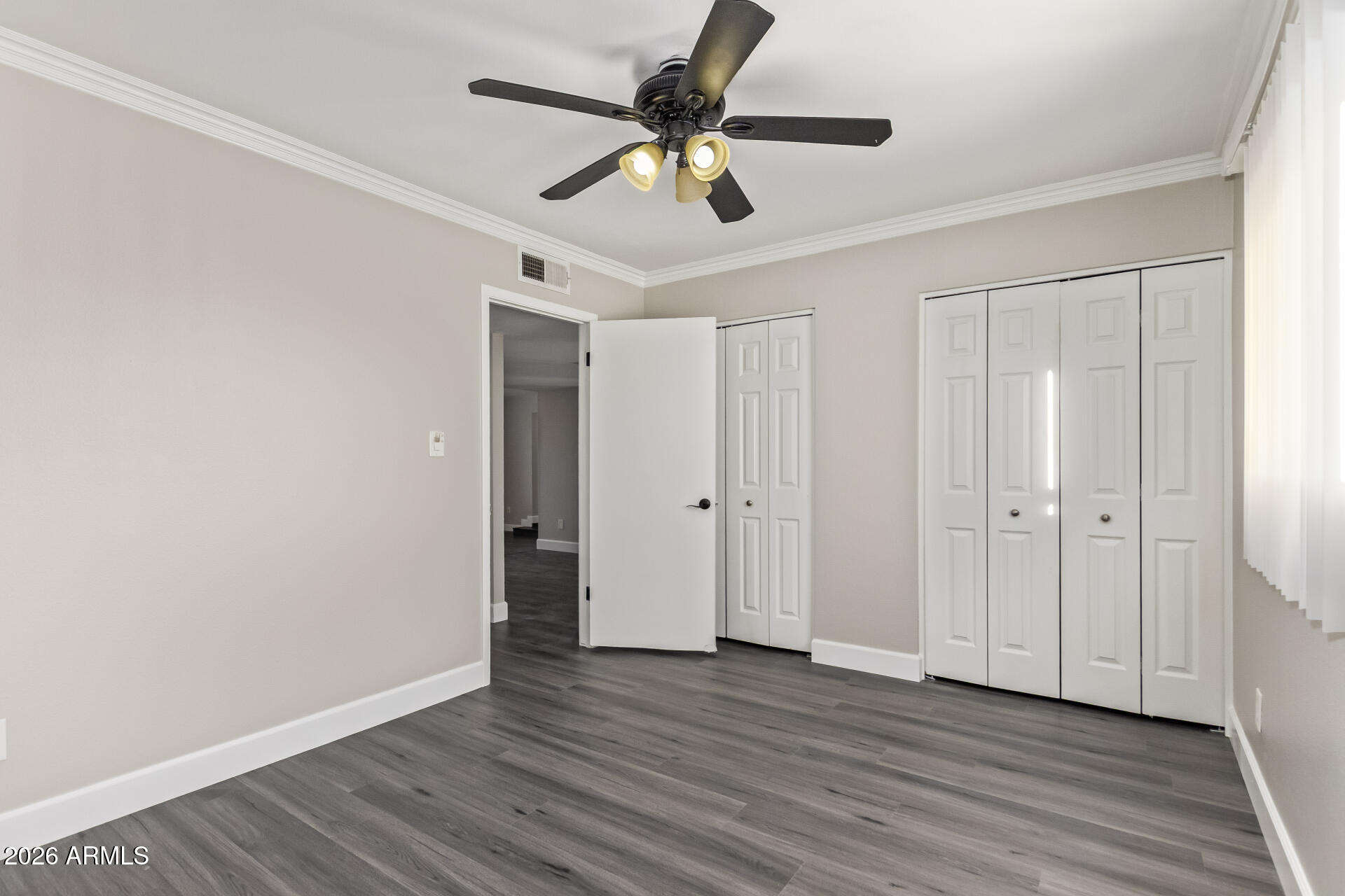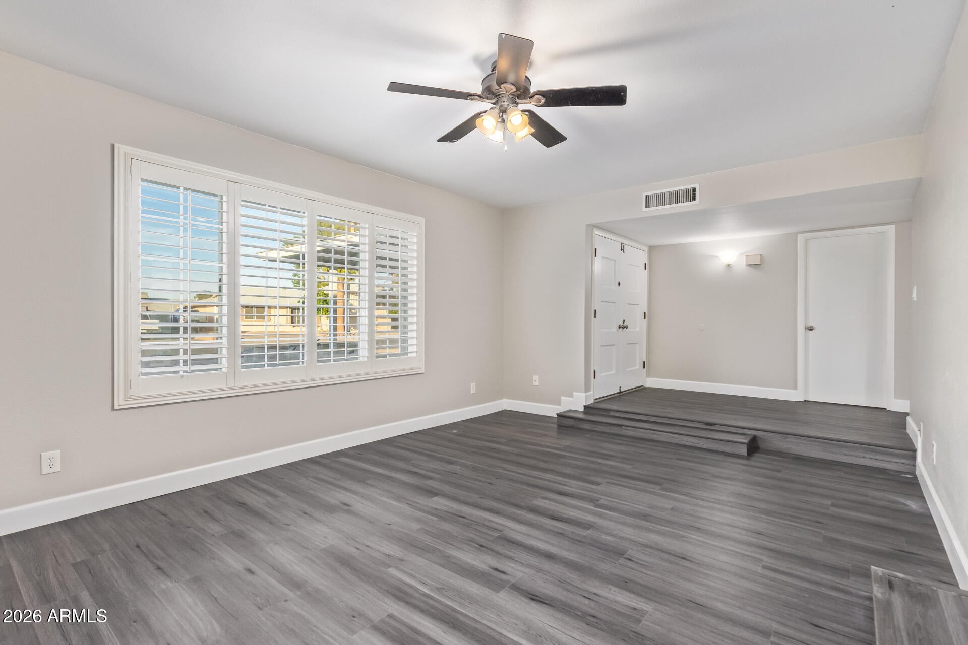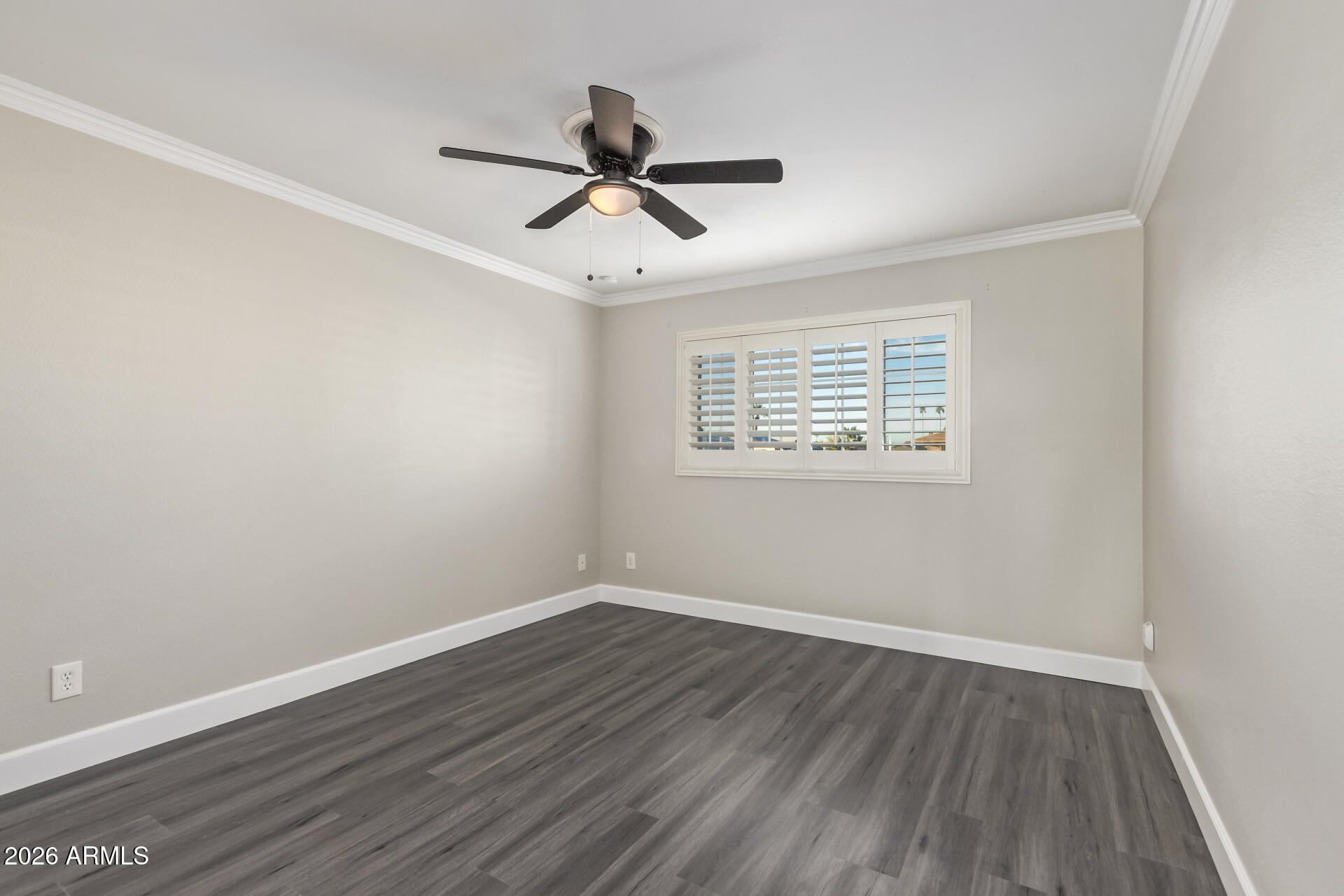 Discover the charm of this freshly renovated 3-bedroom home! The interior boasts bright and inviting living spaces with wood-look flooring, plantation shutters, baseboard & crown molding, and a soothing palette that makes you want to stay. The pristine kitchen awaits your culinary adventures, displaying a tray ceiling with recessed lighting, plentiful storage cabinetry, solid-surface counters, and stainless steel essentials. Relax after a long day in the main retreat, offering a closet with mirrored doors and a private bathroom for convenience. Enjoy outdoor living in the backyard, complete with a covered patio perfect for weekend grills and peaceful evenings, and ample space with an easy-care landscape. What's not to love? Make it yours!