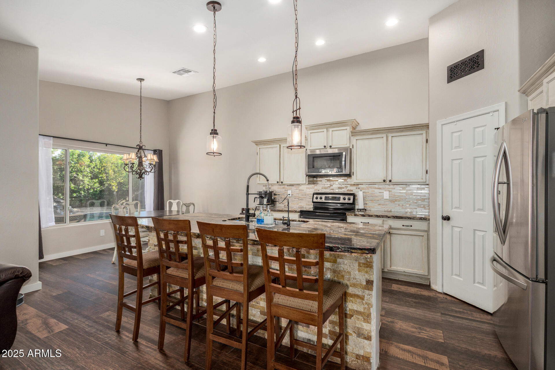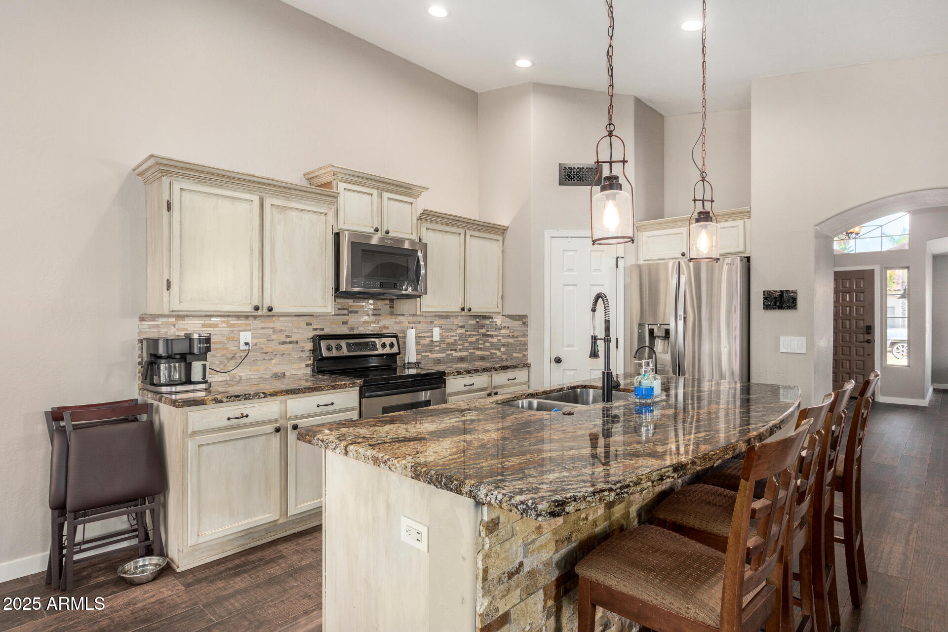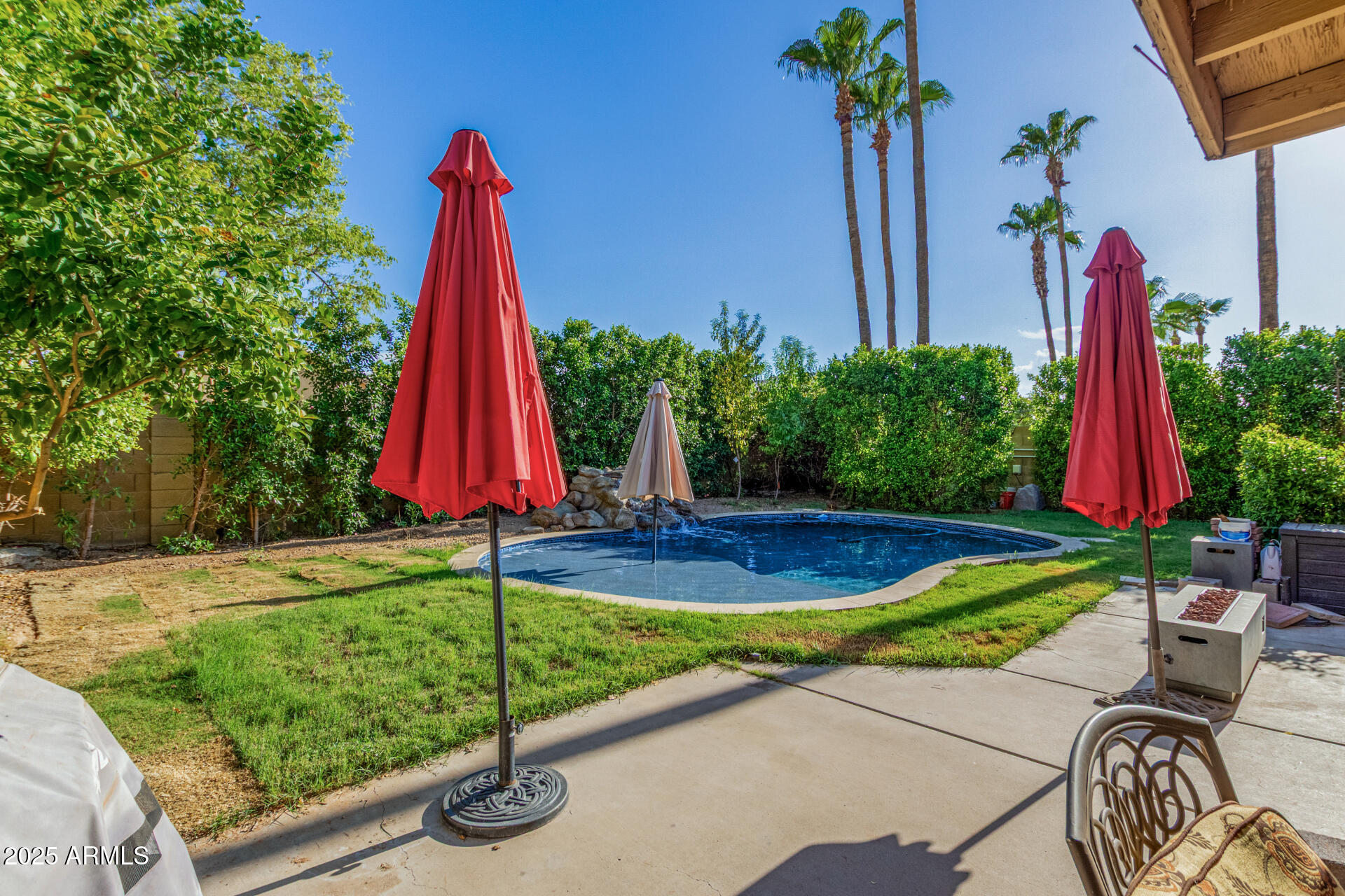 Experience the best of Arizona living in this tastefully updated single-level residence, ideally situated in the highly sought-after Utopia community. Step into a private backyard oasis featuring a sparkling pool, tranquil waterfall, lush desert landscaping, and an expansive covered patio--perfect for relaxing or entertaining year-round.