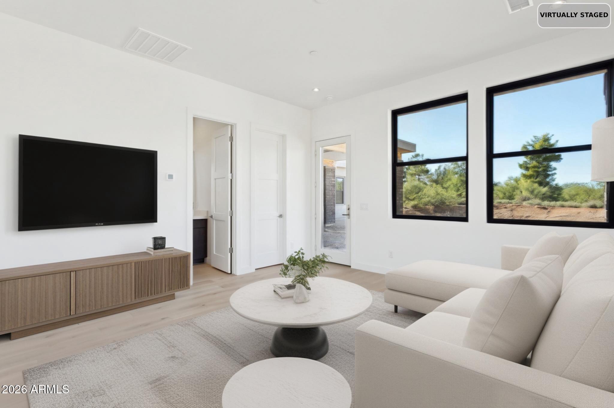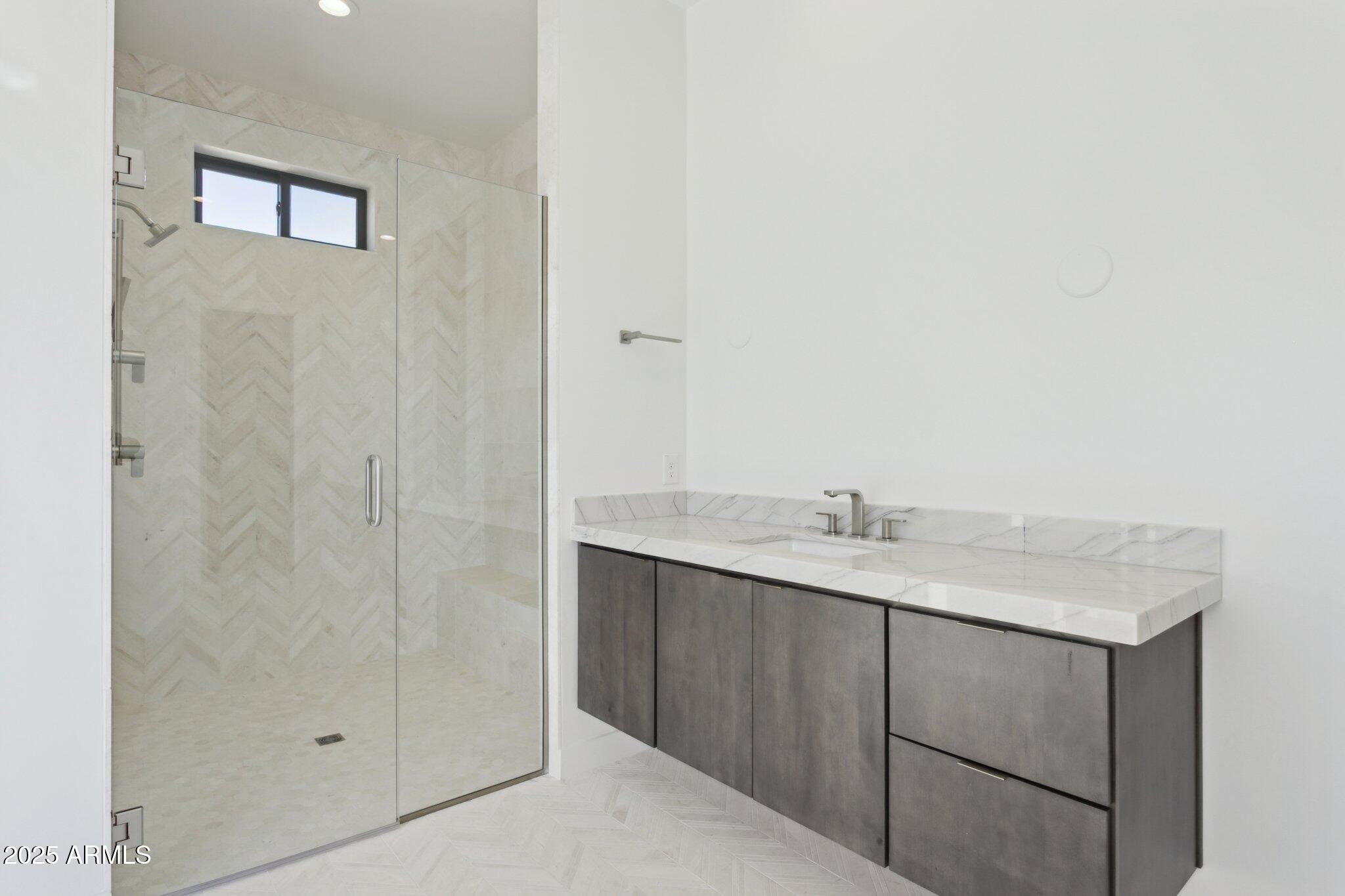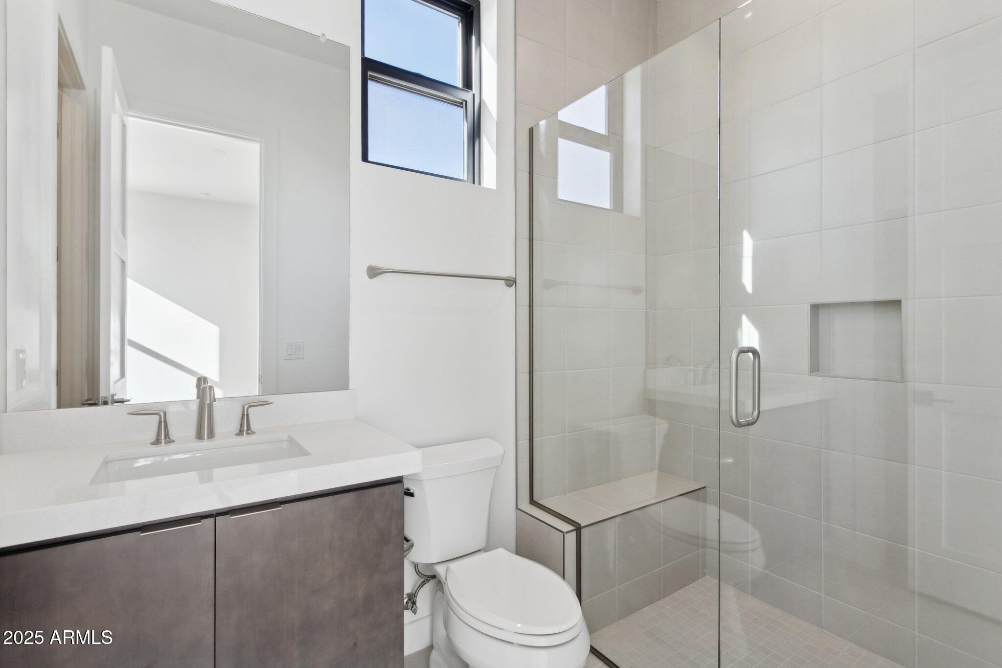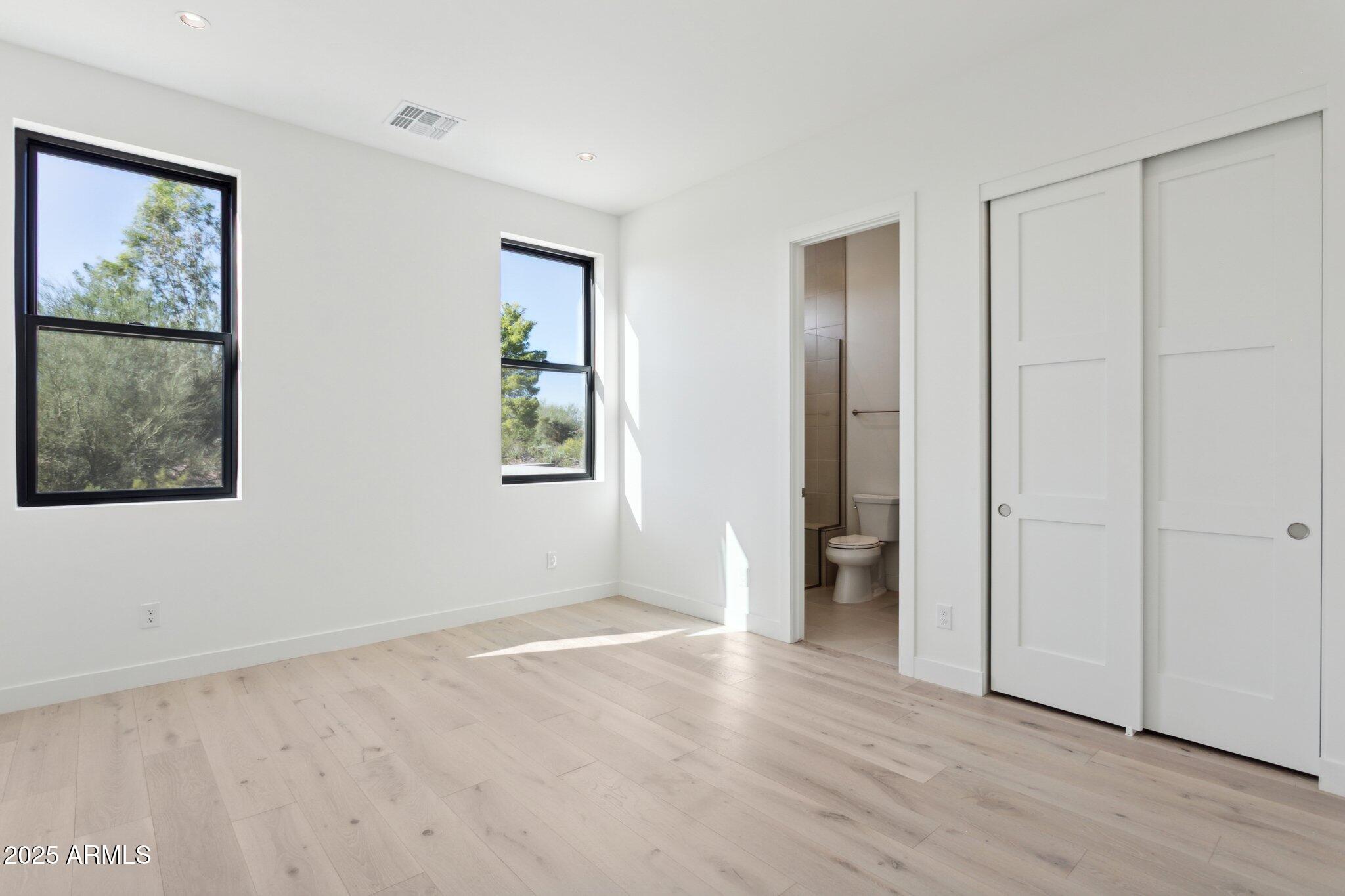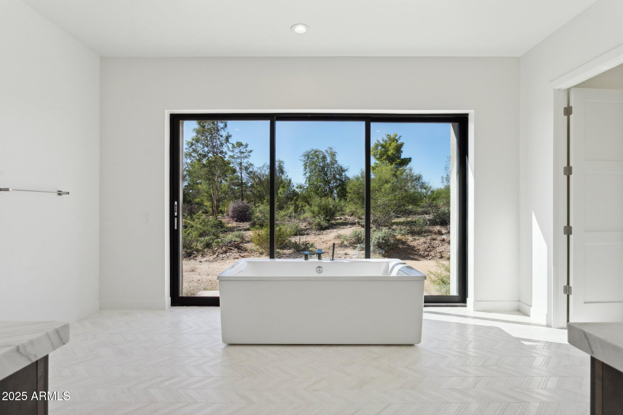 Your primary retreat offers a serene escape, complete with a generous bedroom, a spa-inspired bath featuring a standalone soaking tub, glass-enclosed shower, two floating vanities and an expansive walk-in closet.