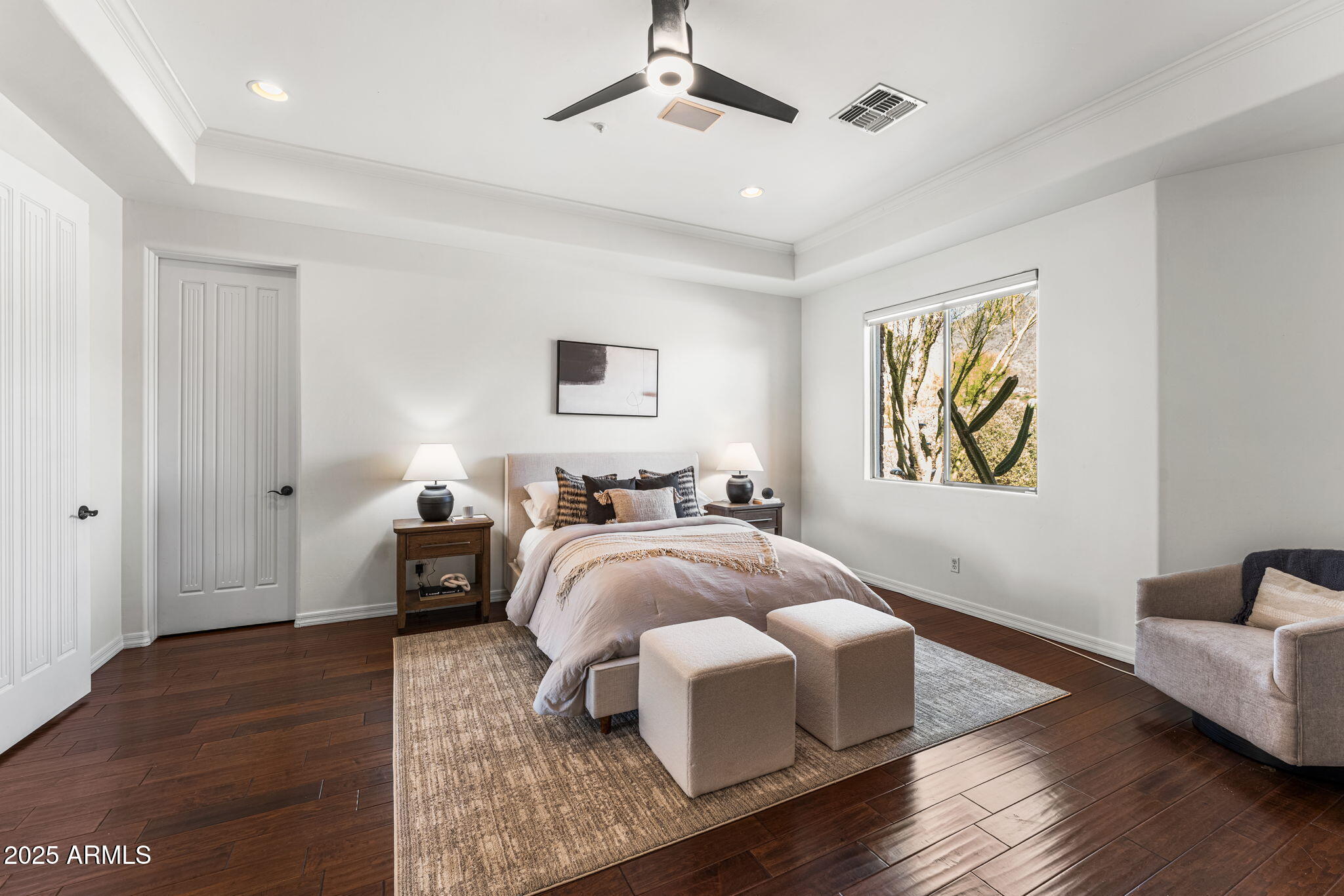 Other major improvements include a new roof (2016), wood floors (2014), and extensive landscaping enhancements (2023). Upstairs, two guest suites are thoughtfully positioned for privacy and mountain views, while an oversized three-car garage with a paver driveway completes this exceptional home.