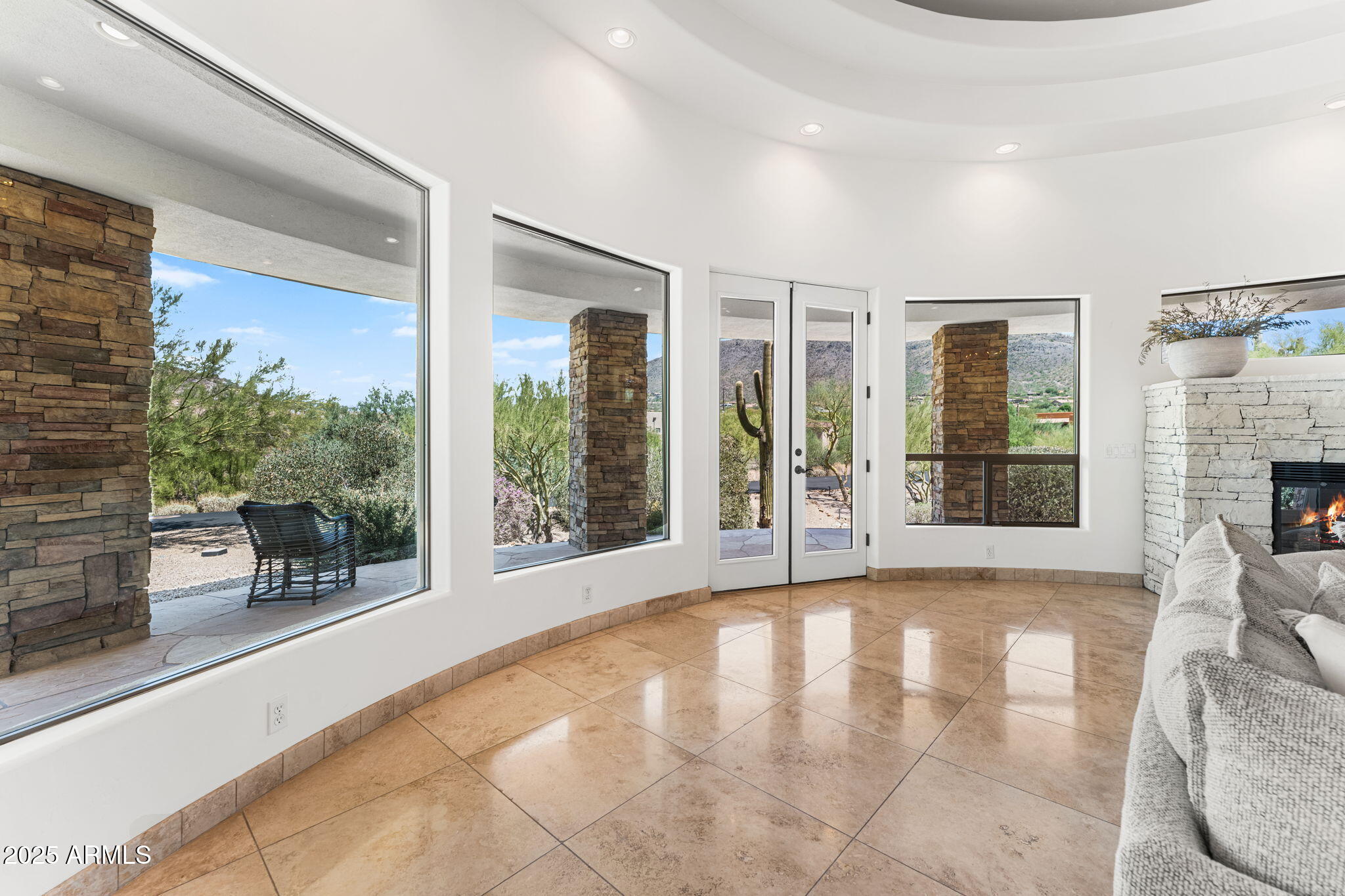 Located within the exclusive gated community of Canyon Crossing, this Carefree residence blends over $440,000 in recent upgrades with privacy, elegance, and sweeping desert beauty. Perched on more than an acre, the home was designed to maximize both space and scenery, with walls of glass that frame iconic Black Mountain and sunset views from nearly every room.