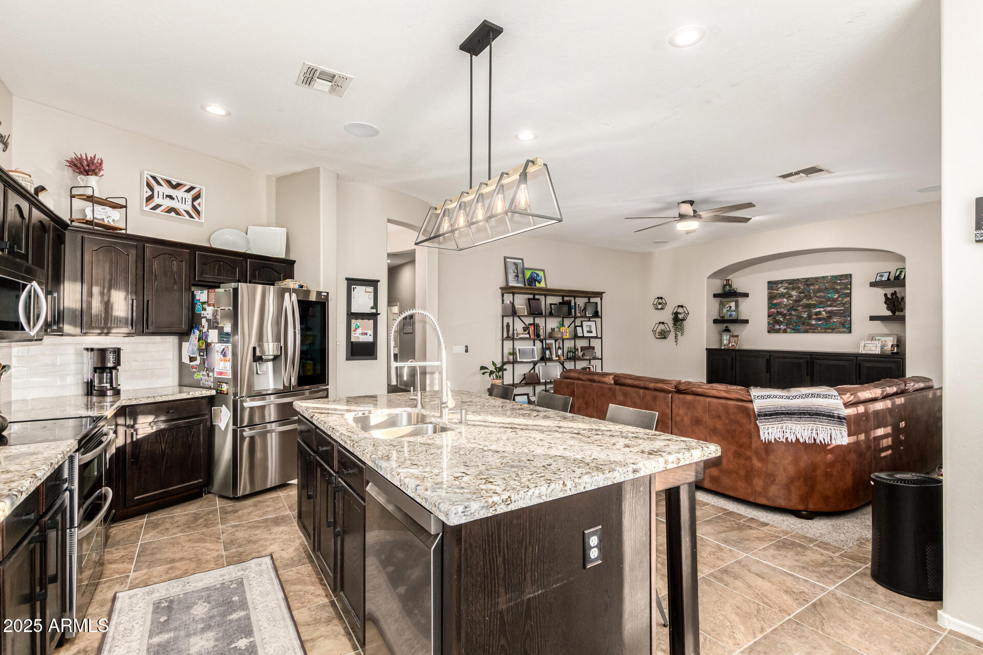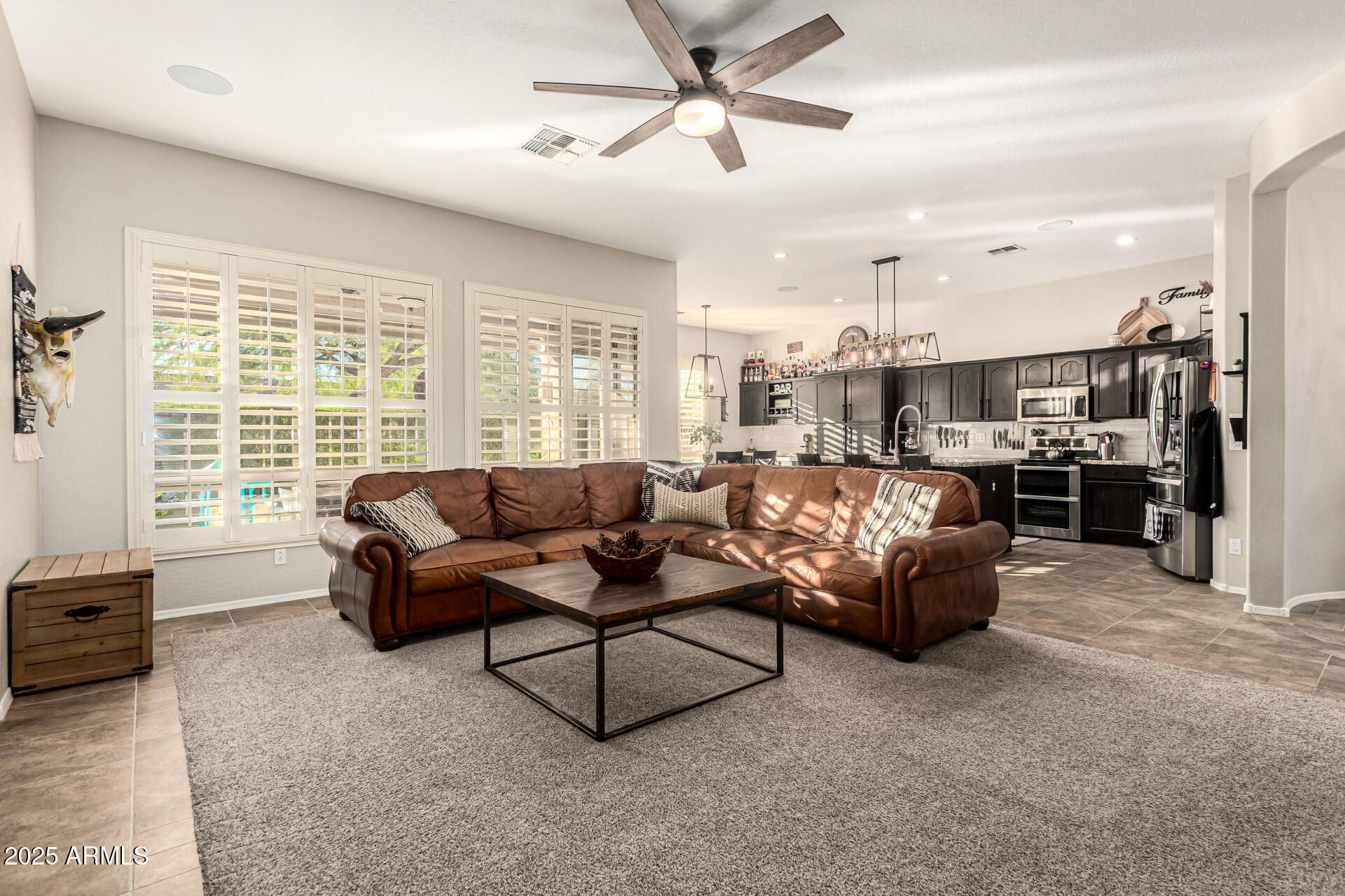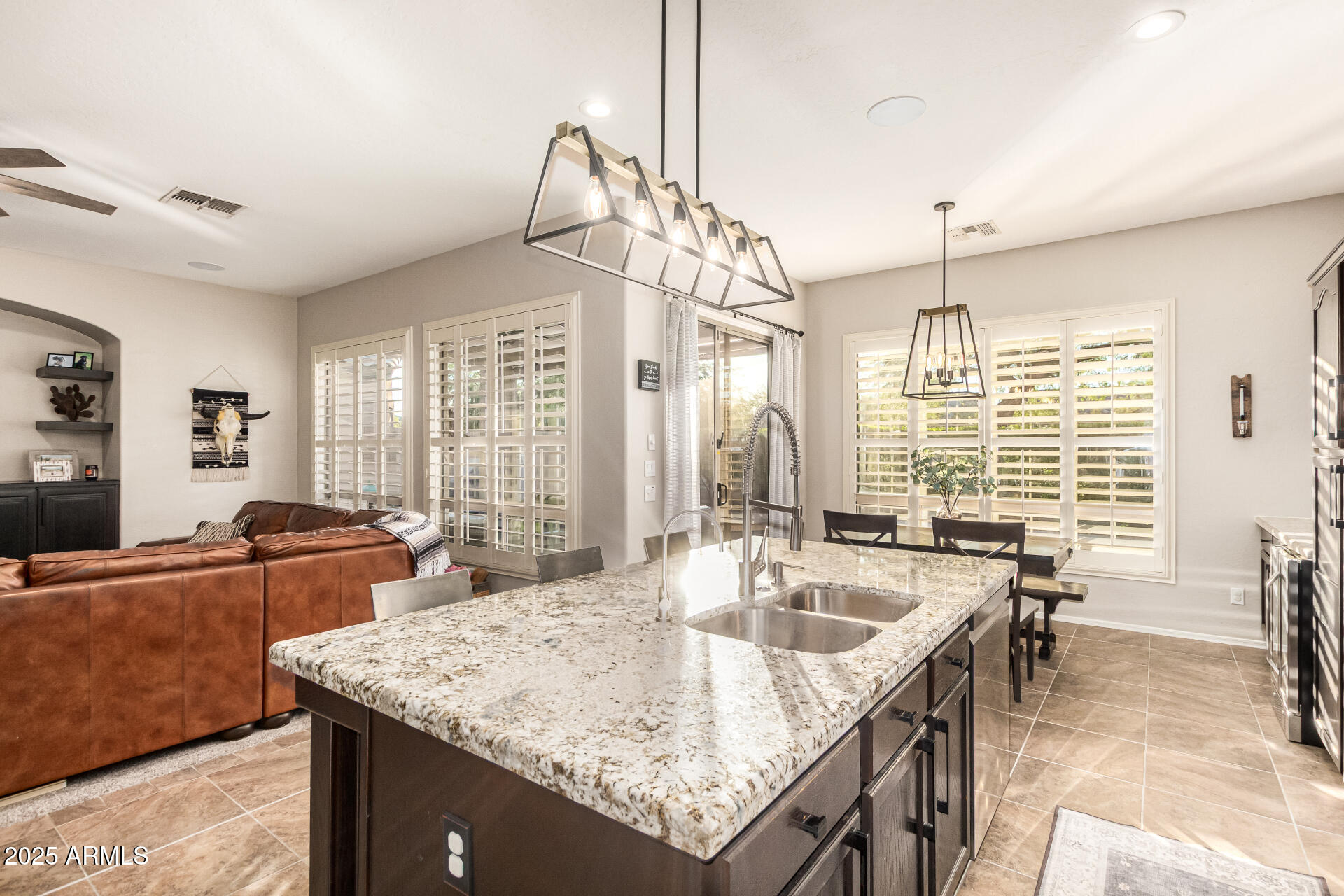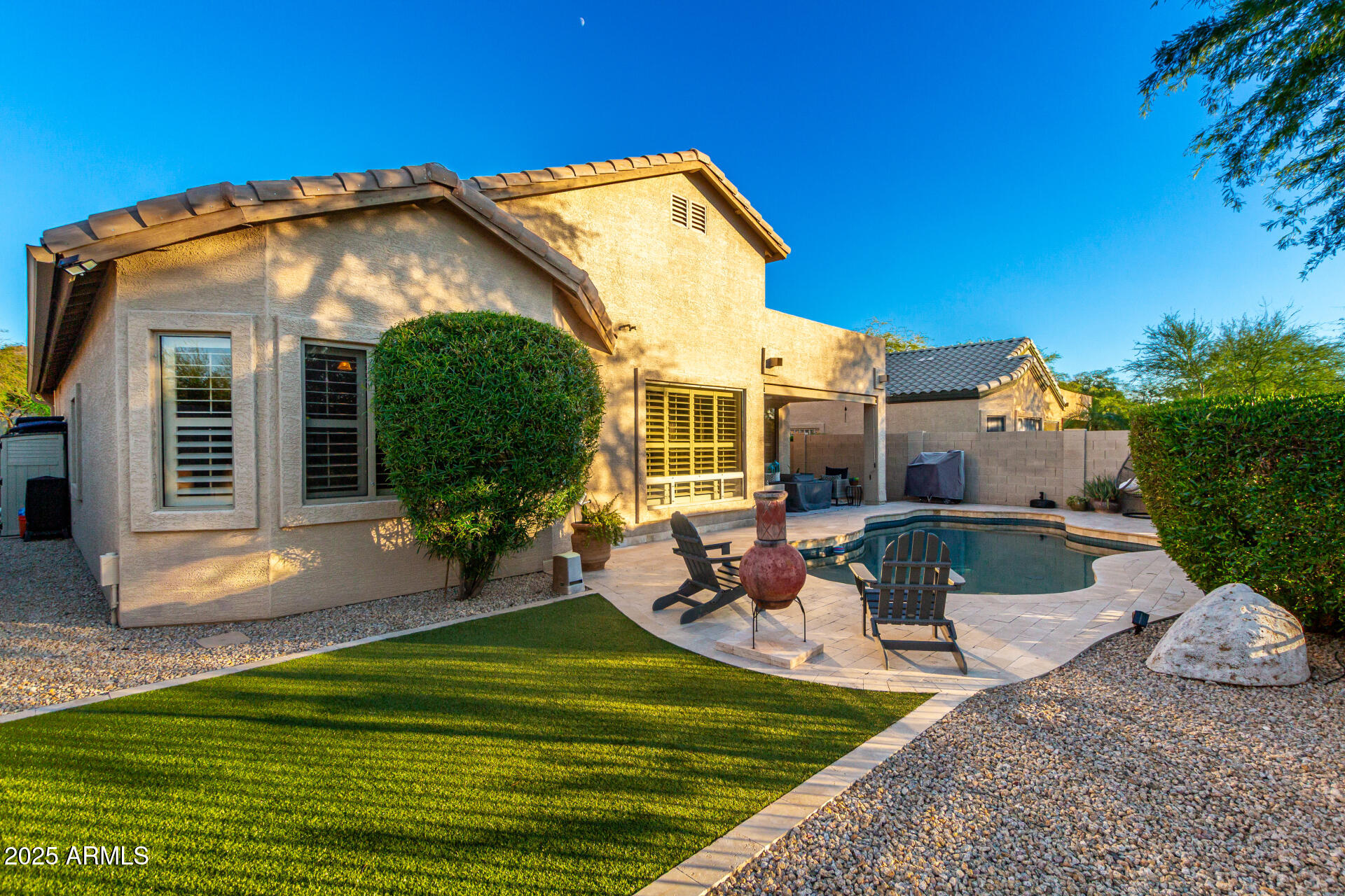 Your dream home with a pool in Tramonto is here. This beautifully upgraded residence sits on a premium lot with no neighbors behind and offers a long list of high-value improvements that provide true peace of mind. Major updates include a brand-new 2024 roof, fully resurfaced pebble tec pool with new tile, a complete backyard renovation with travertine, turf, cactus garden, an upgraded Rainbird system, and enclosed pool equipment. Inside, the home features a custom entertainment center with a TV lift, plantation shutters, custom barn doors, updated light fixtures and ceiling fans, and a whole-home speaker system with in-wall volume control and Control4 integration.