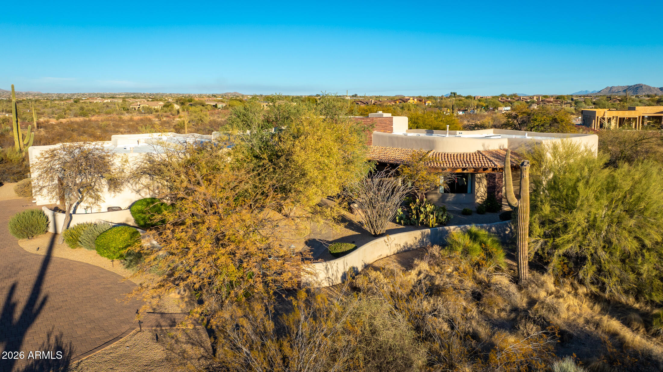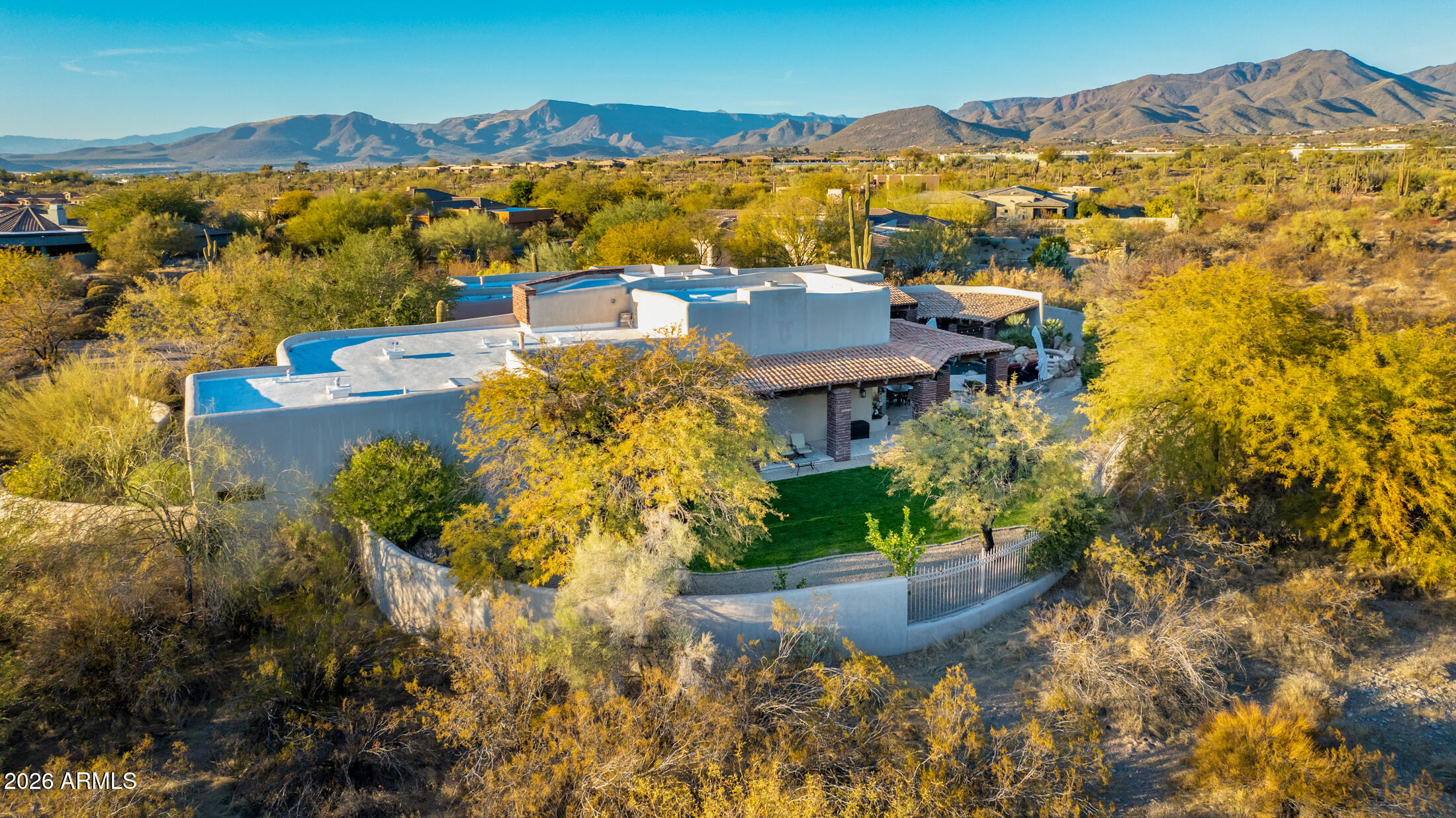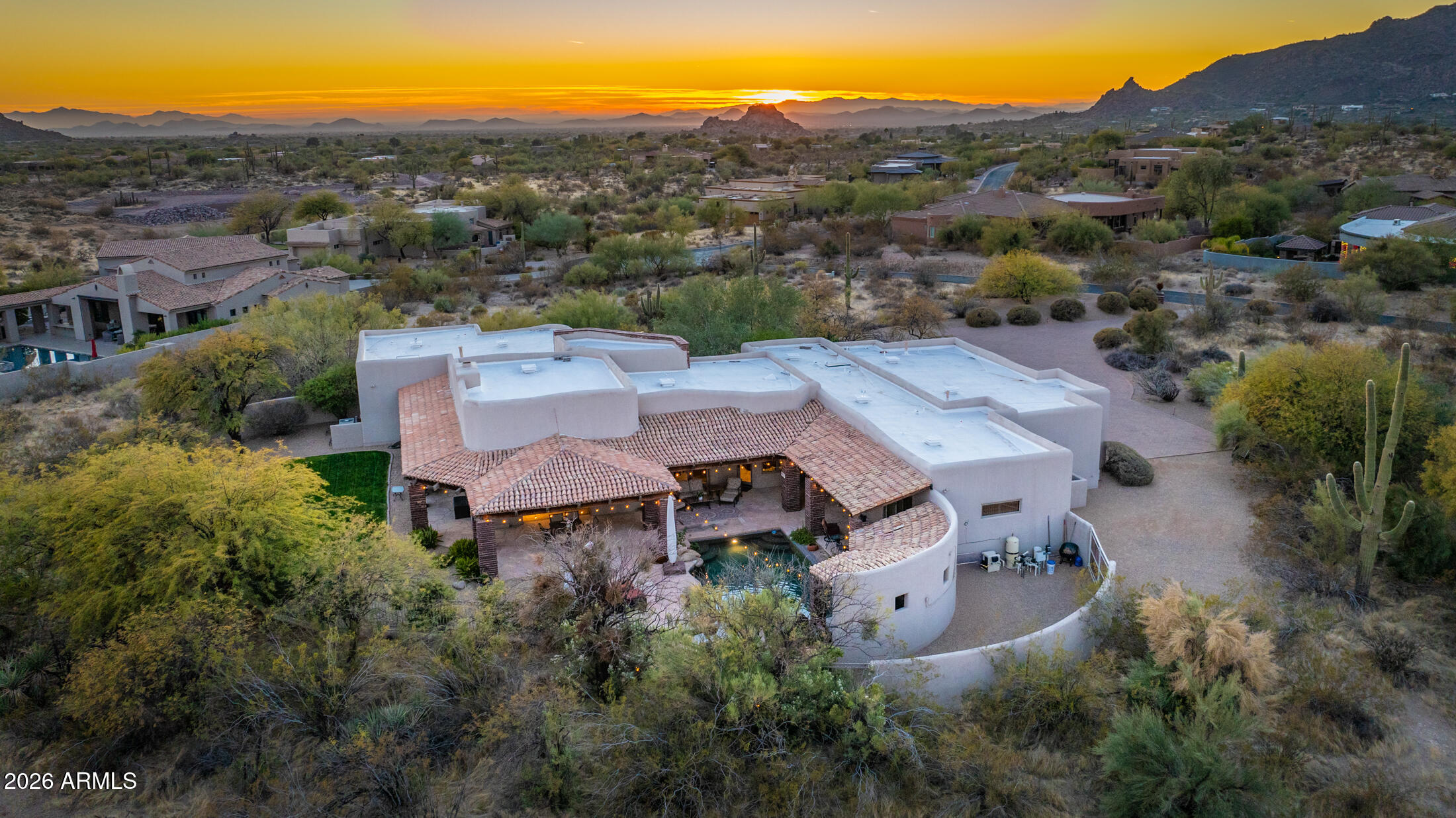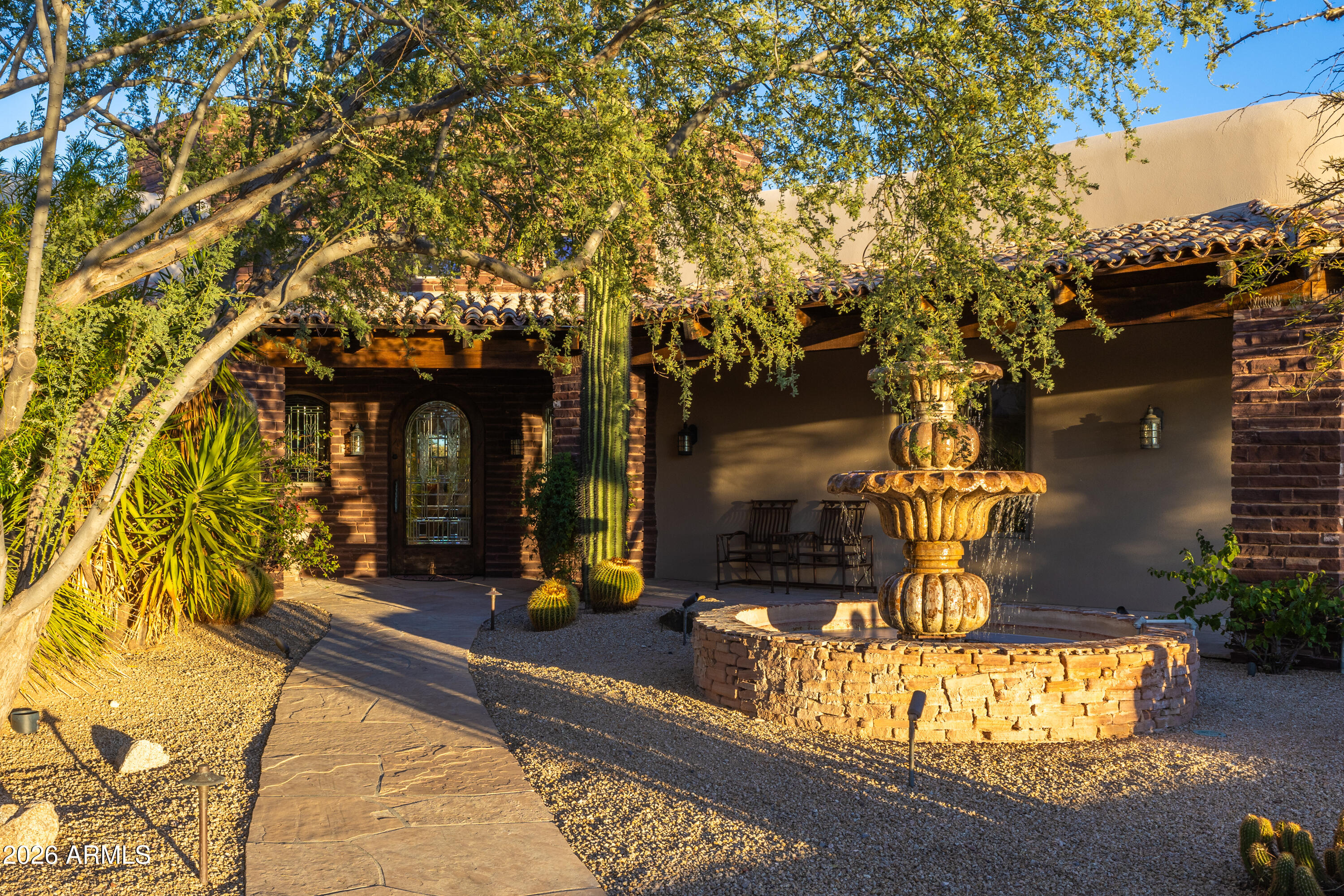 This isn't just another North Scottsdale property; it's pure Sonoran soul where architectural integrity meets effortless luxury. Step through handcrafted brick archways into a world of soaring wood-beamed ceilings and natural flagstone floors that guide you from the expansive great room through the gourmet kitchen and straight out to covered patios where the real Arizona magic happens.