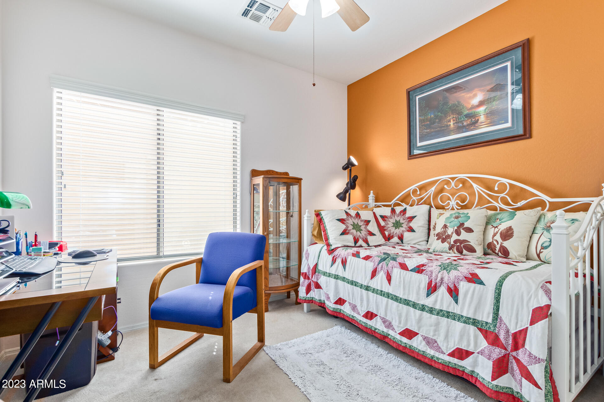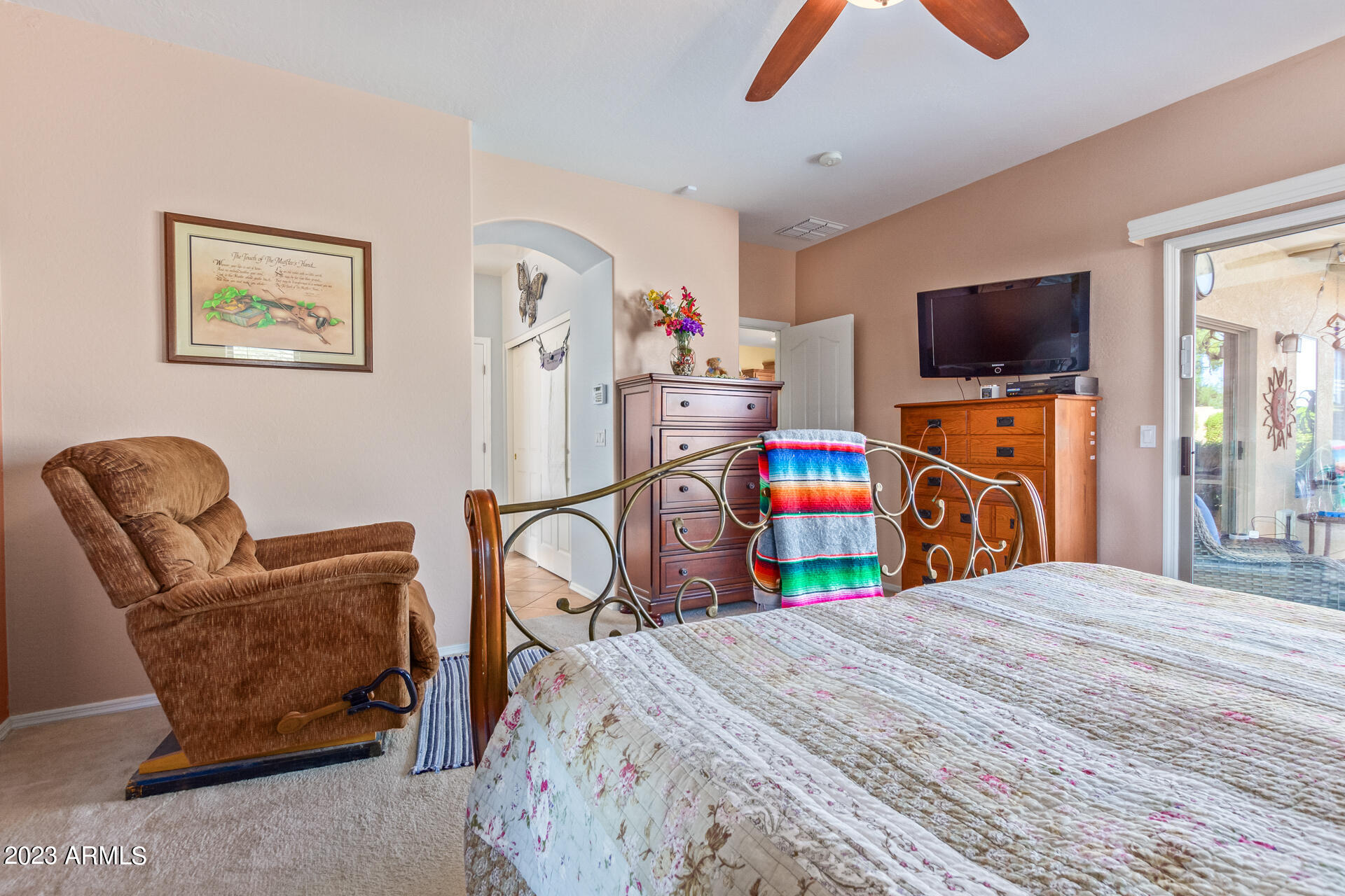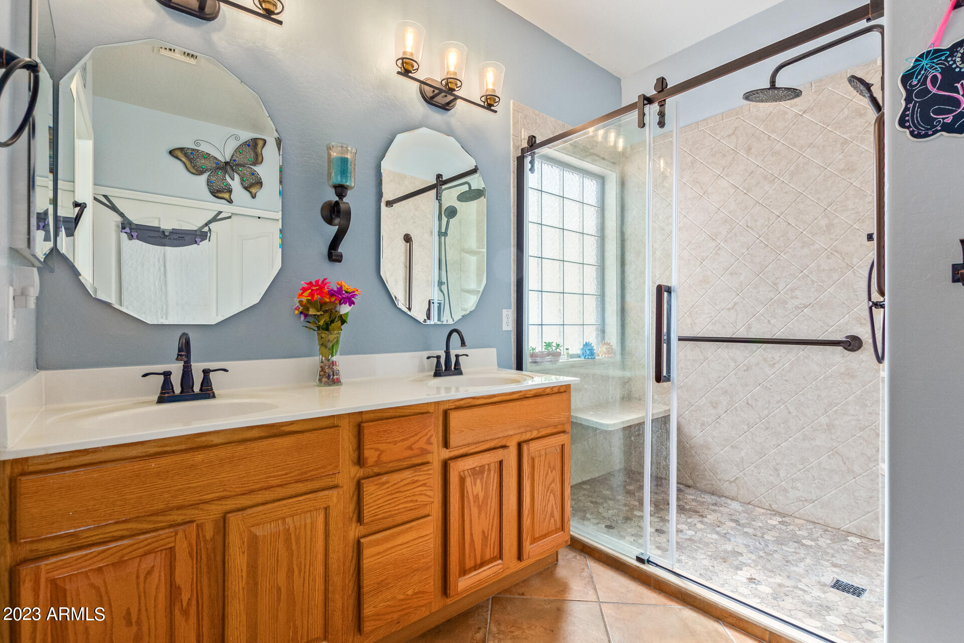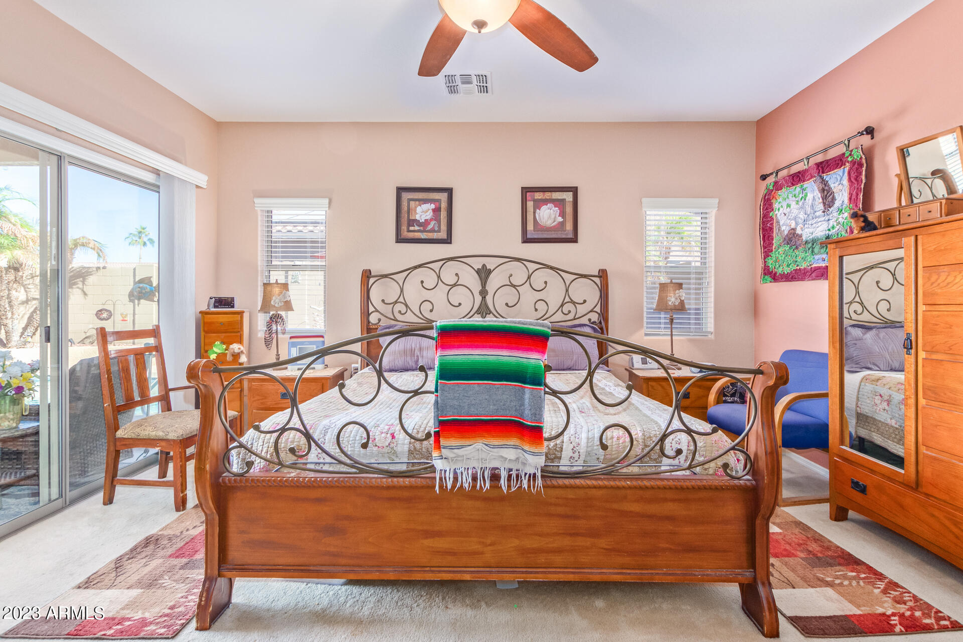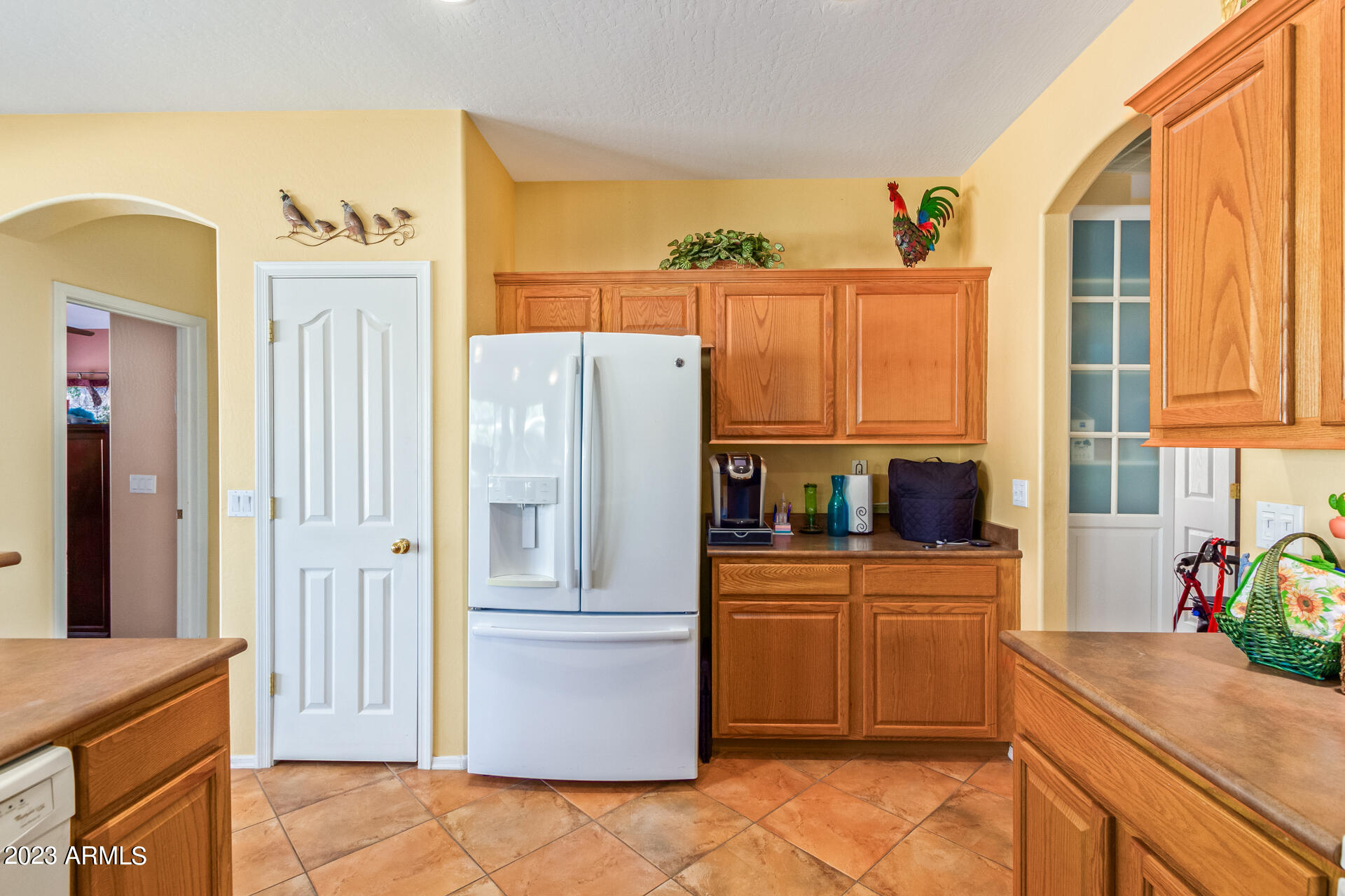 Located on a serene corner lot, this stunning home overlooks a park-like common space. Inside, the residence showcases extensive diagonal-set ceramic tile floors, a spacious open-concept kitchen with a breakfast bar highlighted by recessed and accent lighting, and a formal dining space. The primary bedroom offers direct access to the pool area. Benefit from a generously-sized laundry room equipped with upgraded storage solutions. The backyard is a haven of relaxation, with shaded patio and a pristine pool crowned with a sparkling rock waterfall. Additionally, the home provides ample parking and storage in a spacious 3-car garage.