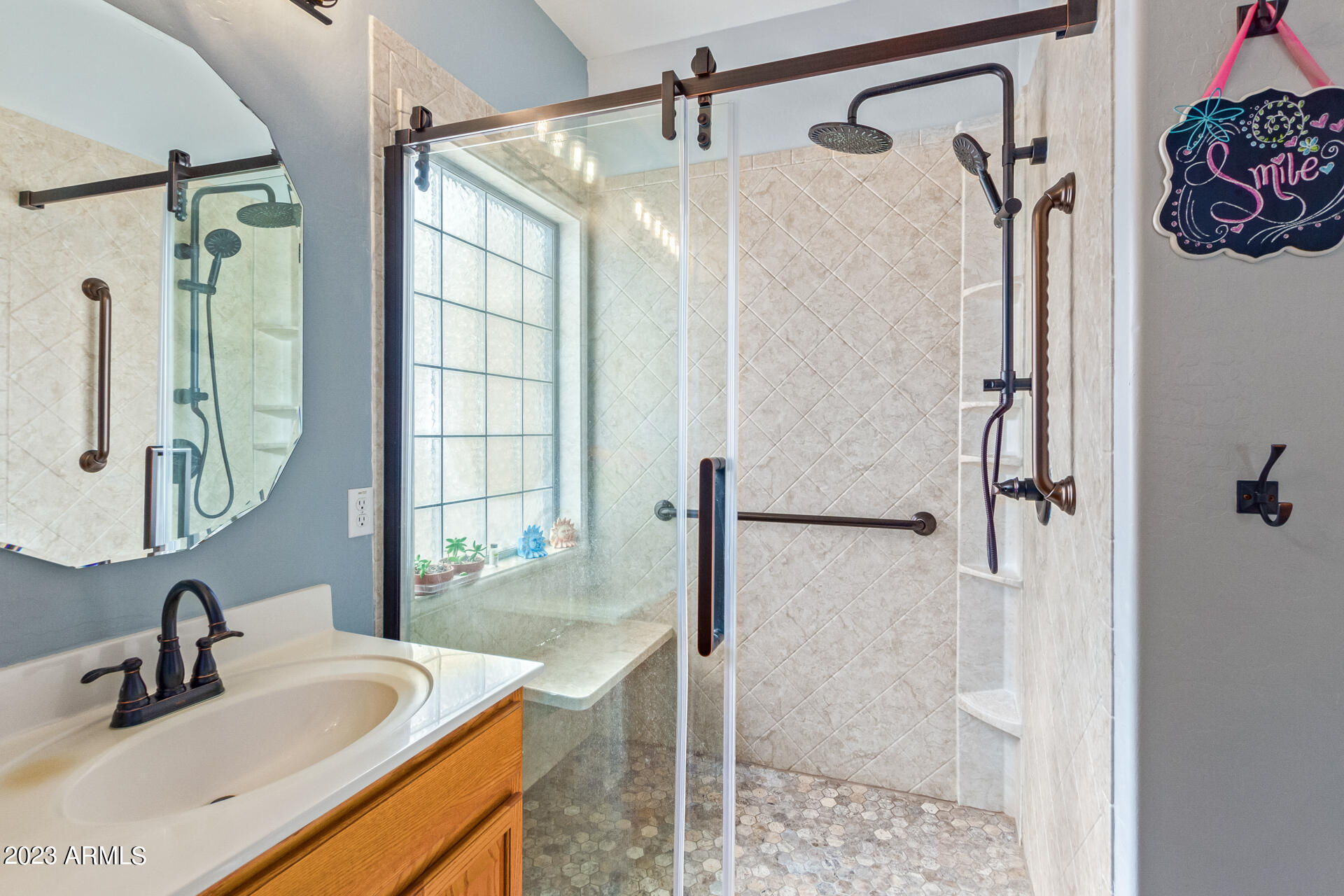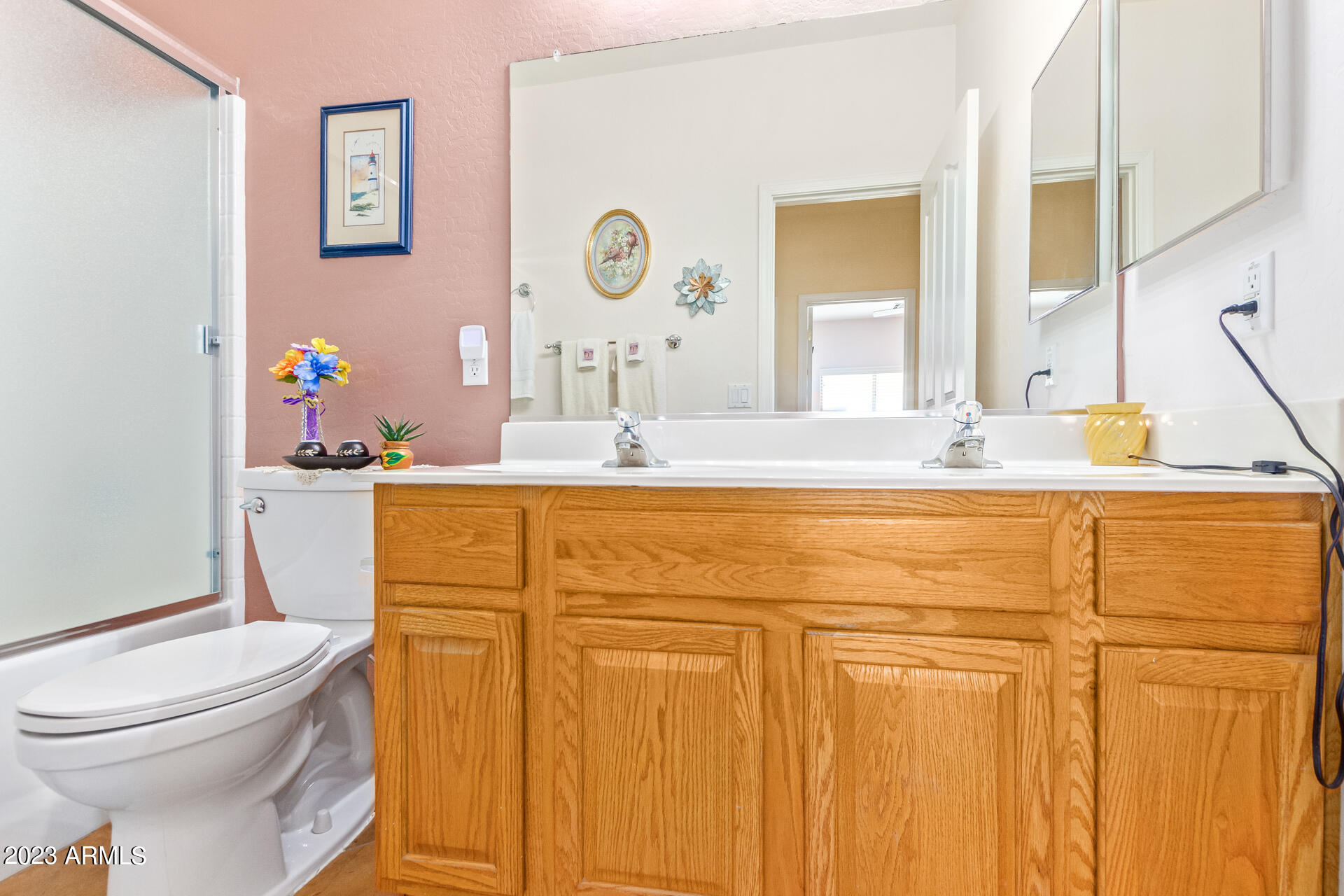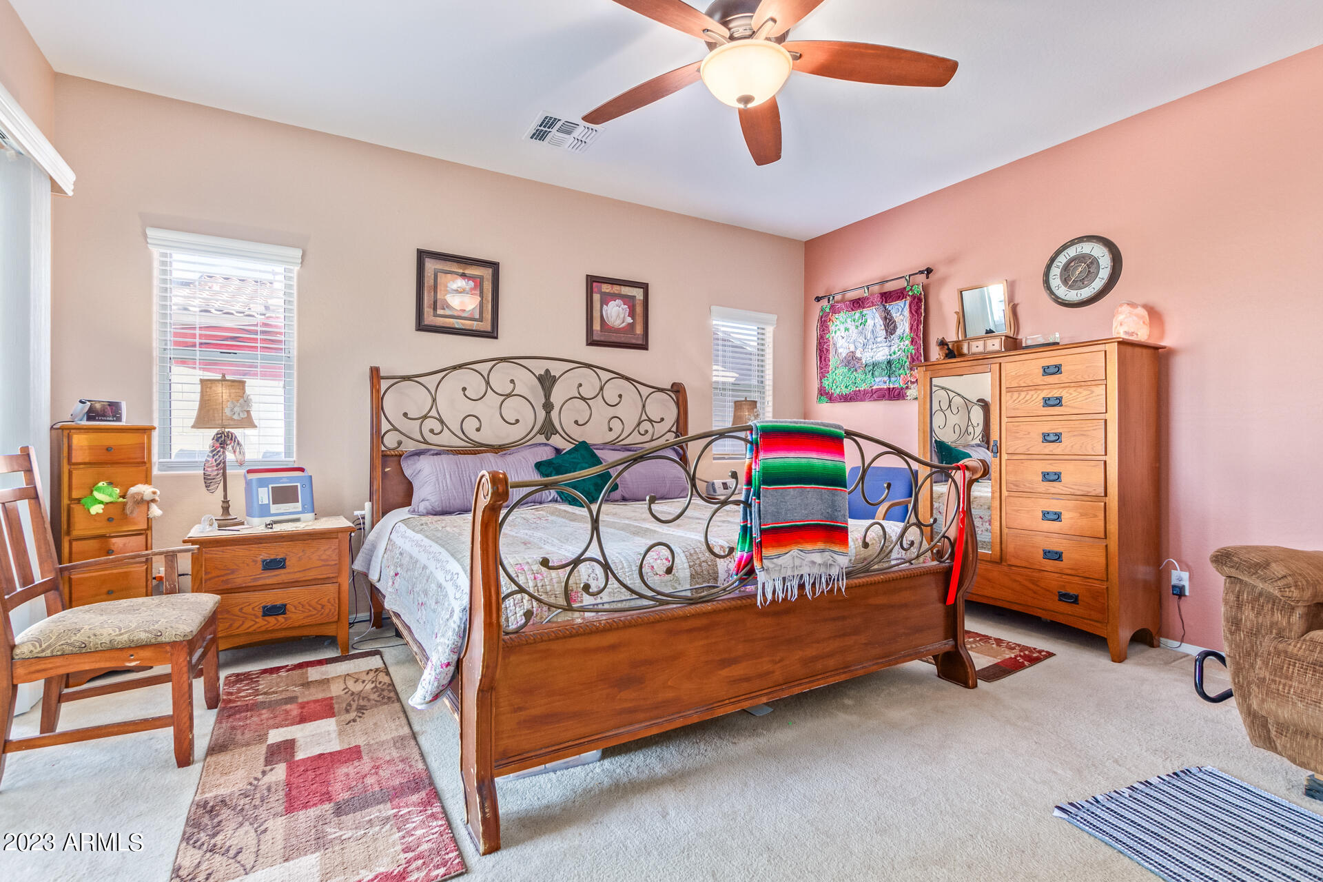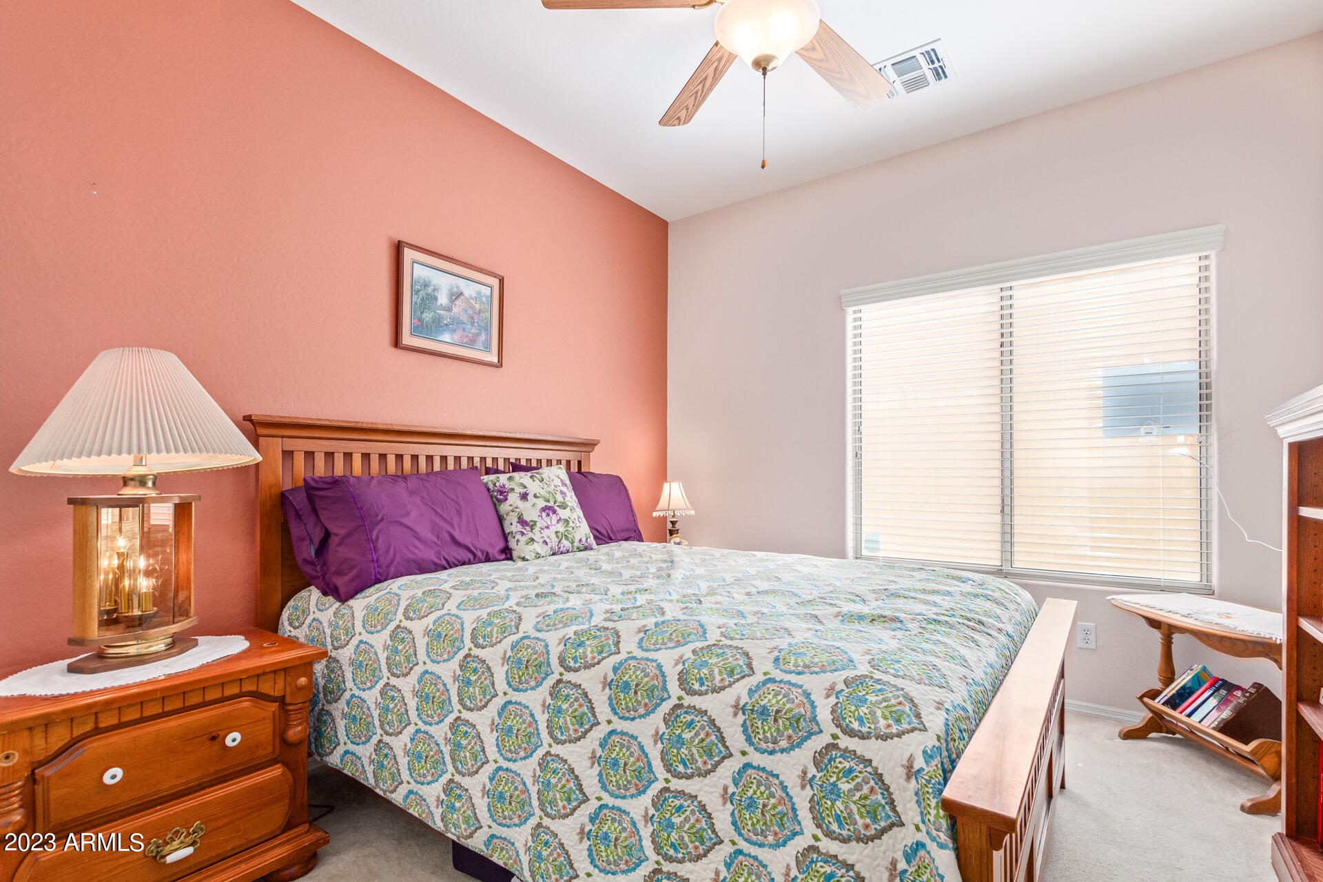 Located on a serene corner lot, this stunning home overlooks a park-like common space. Inside, the residence showcases extensive diagonal-set ceramic tile floors, a spacious open-concept kitchen with a breakfast bar highlighted by recessed and accent lighting, and a formal dining space. The primary bedroom offers direct access to the pool area. Benefit from a generously-sized laundry room equipped with upgraded storage solutions. The backyard is a haven of relaxation, with shaded patio and a pristine pool crowned with a sparkling rock waterfall. Additionally, the home provides ample parking and storage in a spacious 3-car garage.