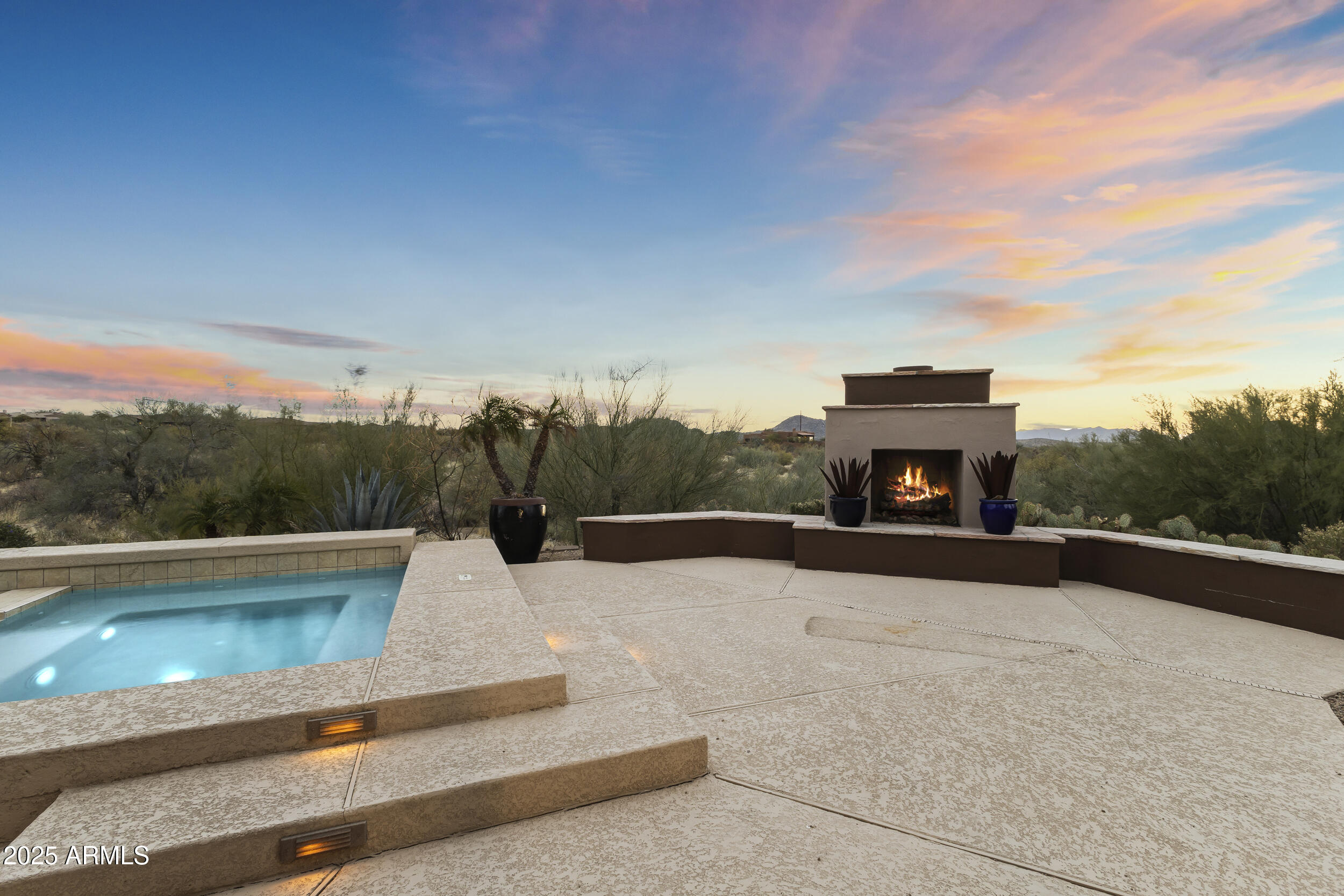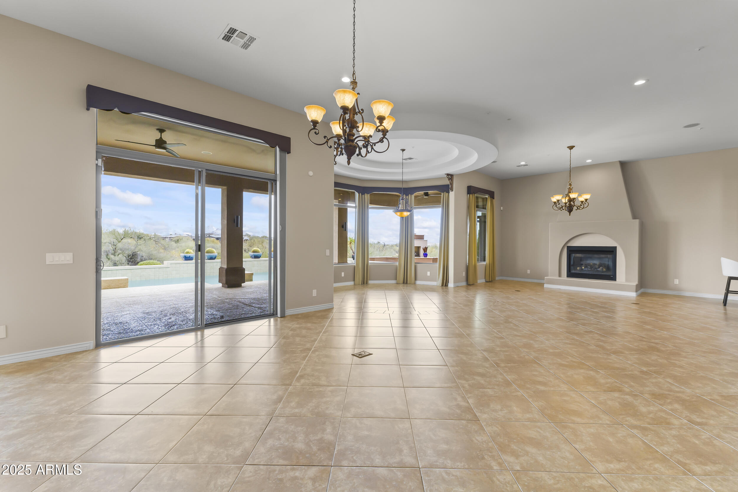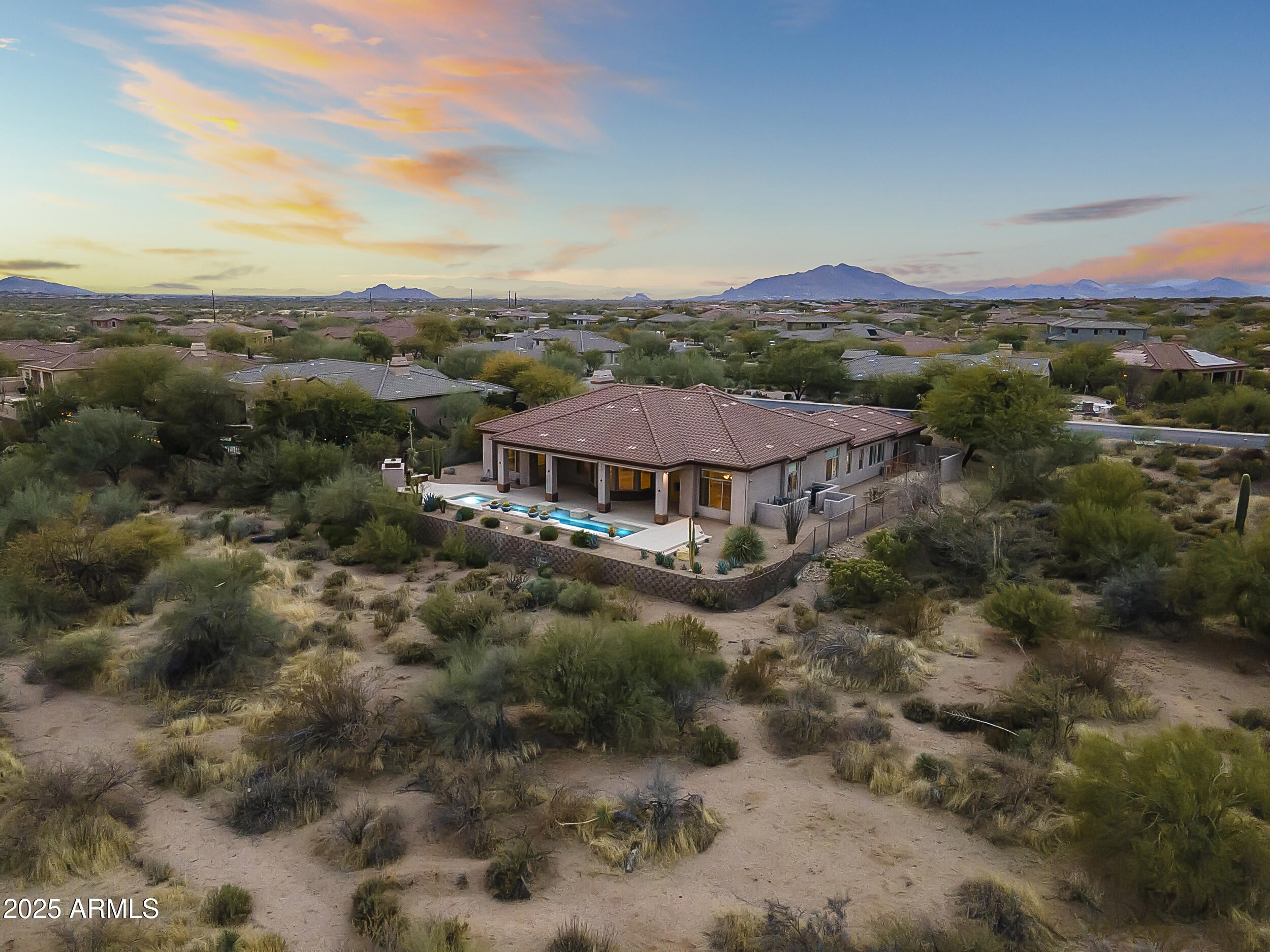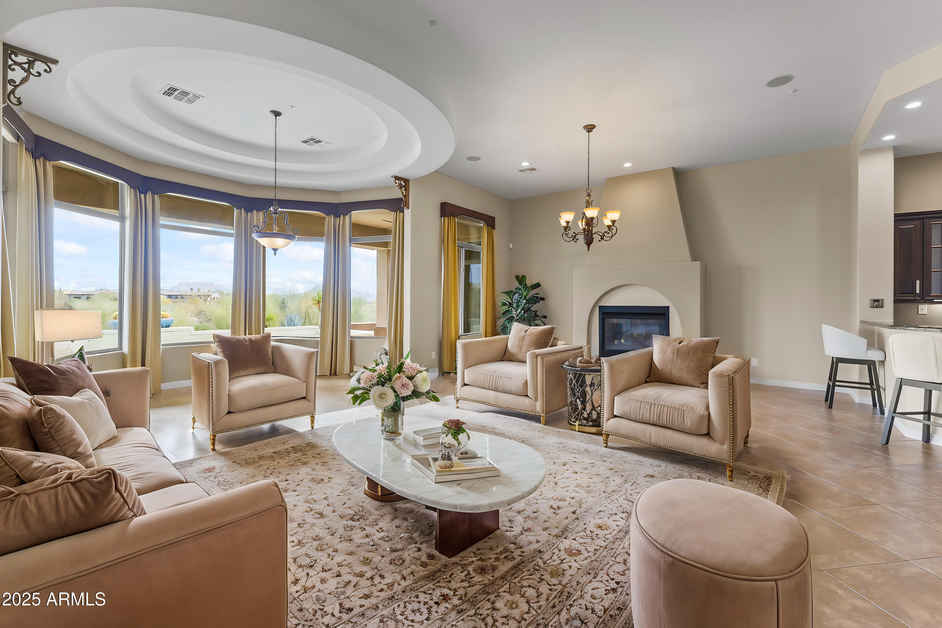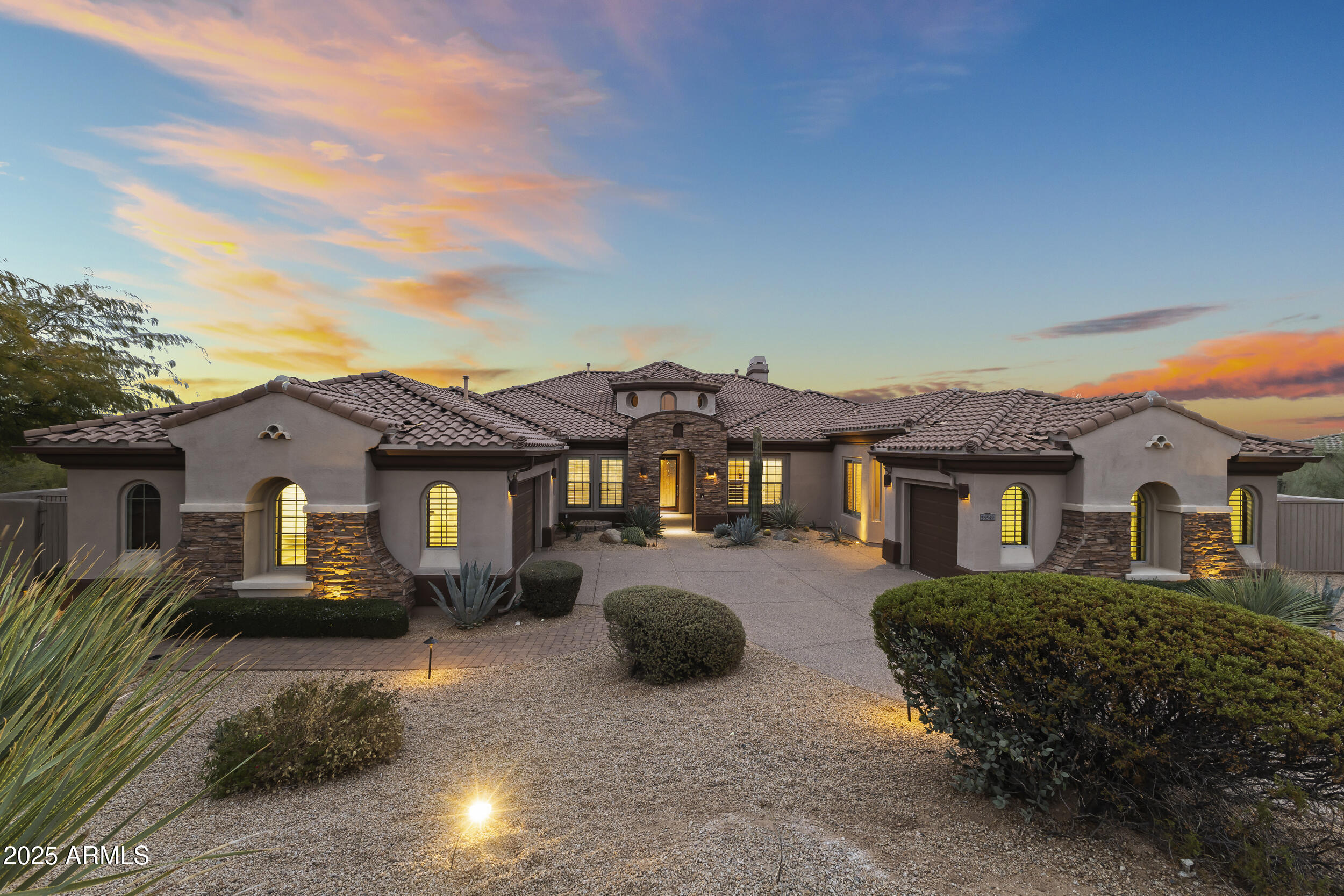 Discover luxury living with priceless views in this exquisite single-level home set on a sprawling 1.8-acre lot in Treviso East, a Toll Brothers community. Thoughtfully designed with attention to detail and showcasing numerous upgrades, this residence is filled with natural light, featuring expansive windows that perfectly frame breathtaking views. The gourmet kitchen is the showpiece, featuring a Dual Wolf range, Sub-Zero refrigerator, pull-out cabinetry, a large island, walk-in pantry, formal dining room, and a cozy breakfast nook. Kitchen opens up to the spacious living area that faces the views and features towering ceilings, entrance to the patio, fireplace as well as wet bar! The split floor plan offers an oversized primary suite with a sitting area, fireplace, and two luxurious custom closets with thousands spent on creating a truly organized masterpiece. A sizable office with extensive cabinetry and French doors that could be turned into a fourth bedroom enhances functionality, while each additional bedroom includes an en-suite bath. Additional upgrades include custom chandeliers, expansive closet built-ins, new pool equipment, new pool upgrades, and fresh interior paint, enhancing the overall appeal of this remarkable property. Perfect for guests, the attached casita features a private entrance, walk-in closet, and full bath. Step outside to an entertainer's dream, complete with a newly renovated heated lap pool, heated spa, expansive covered patio, outdoor fireplace, and unparalleled panoramic views. For car enthusiasts, the garage is equipped with a mini-split system to keep exotic cars cool and protected from the heat. Additional organized closet space can be found in the office/bedroom and garage, ensuring storage is effortless and well-structured. Other features include exterior cameras, a full-house alarm system, and new blinds and drapes. Treviso offers not just a home but an exclusive lifestyle. The community is family-oriented and currently expanding its recreational facilities with the addition of bocce and pickleball courts. Residents also enjoy access to tennis courts, a ramada, and a playground, making it the ideal setting for both relaxation and activity.