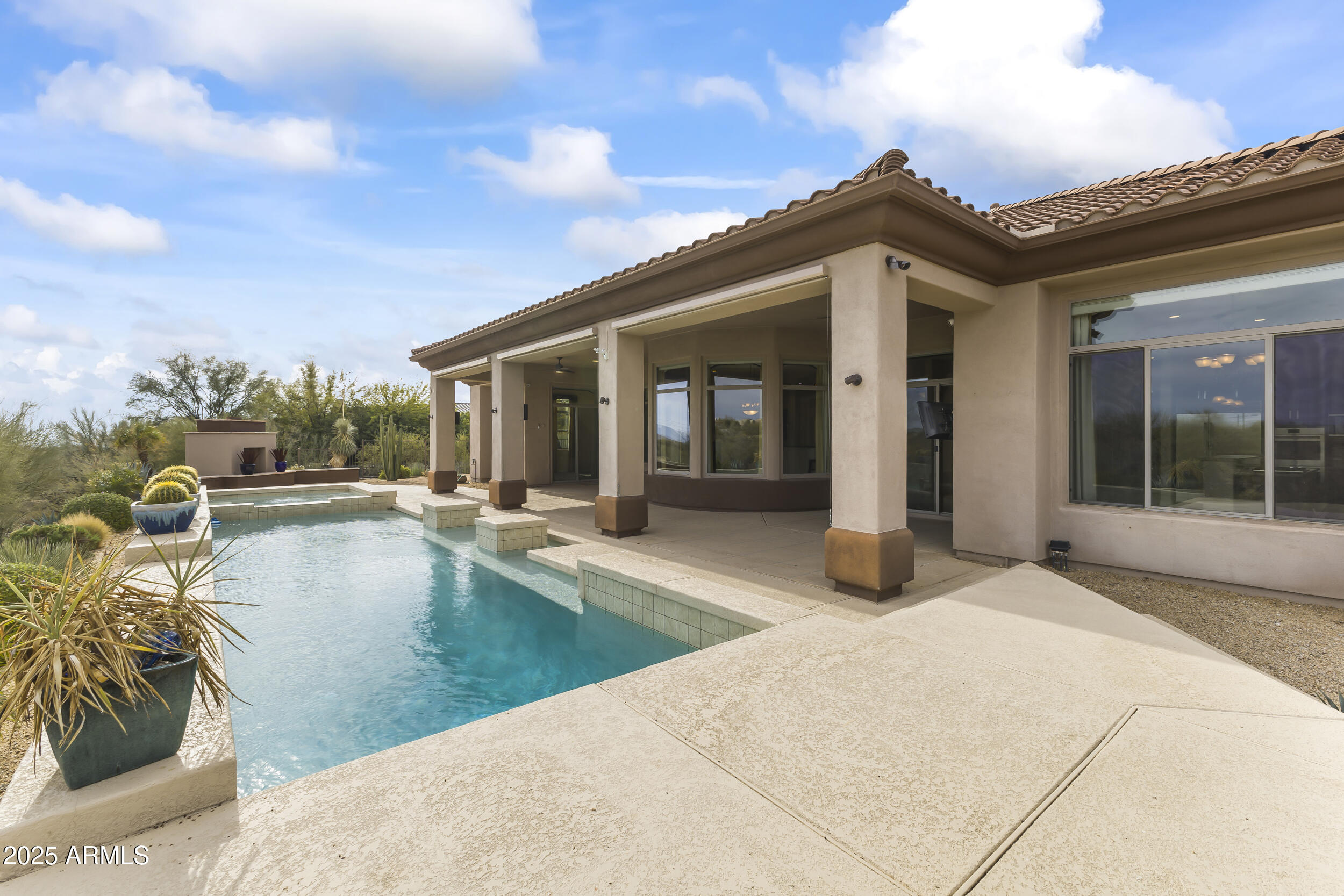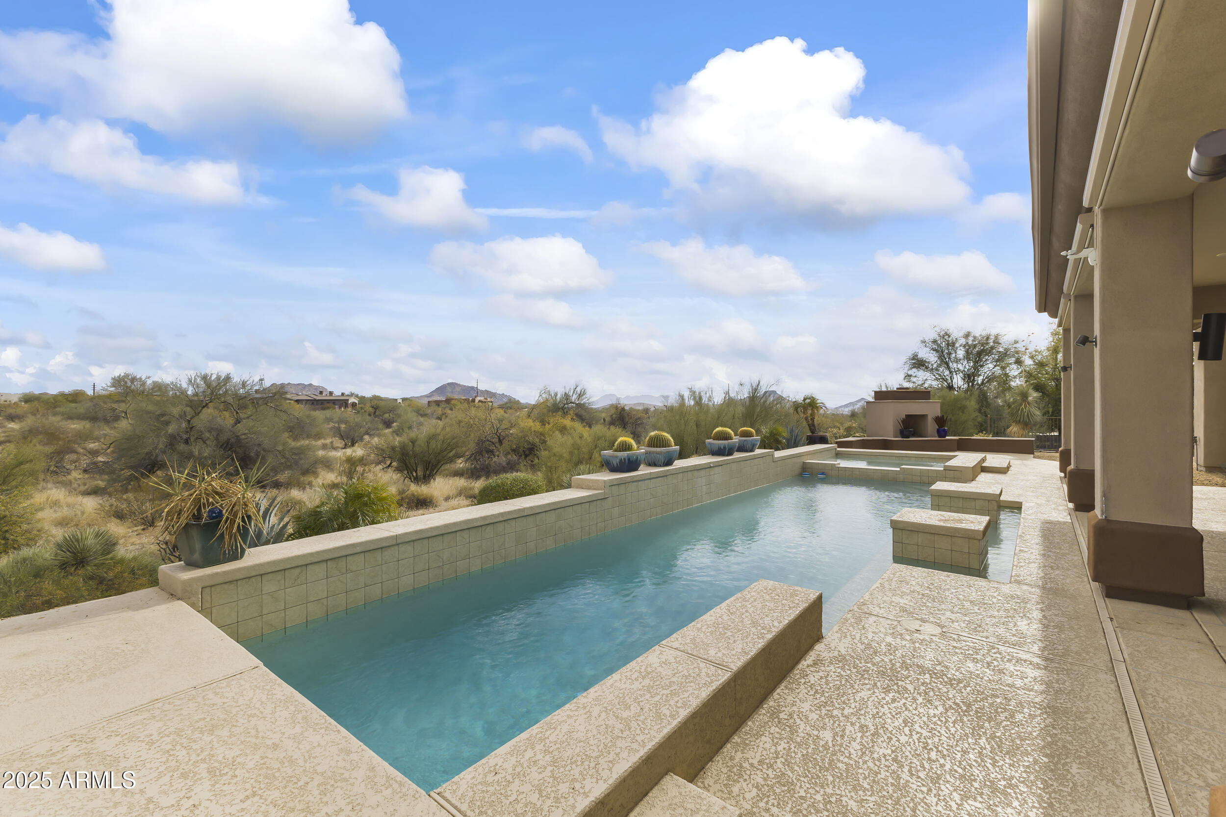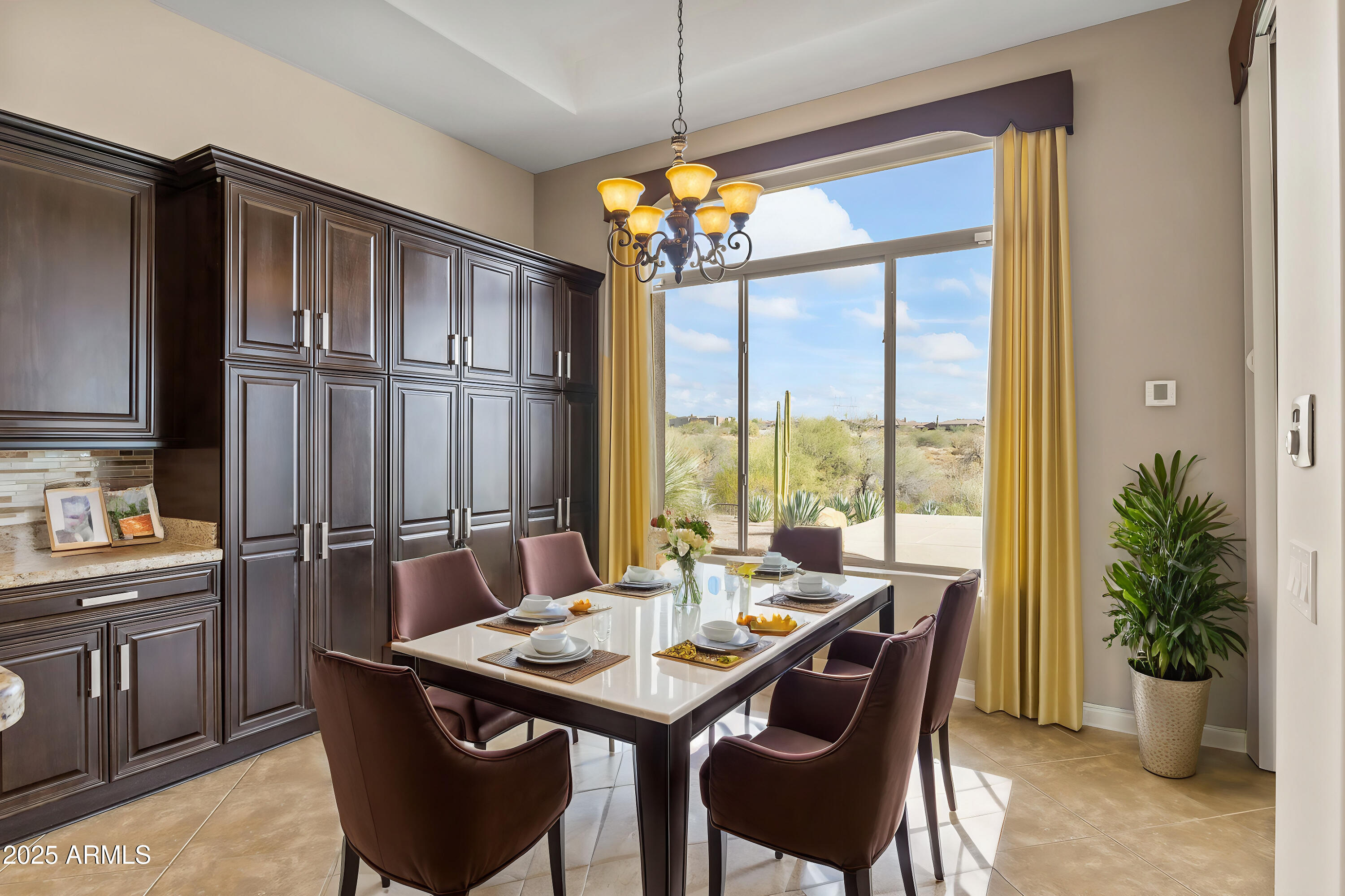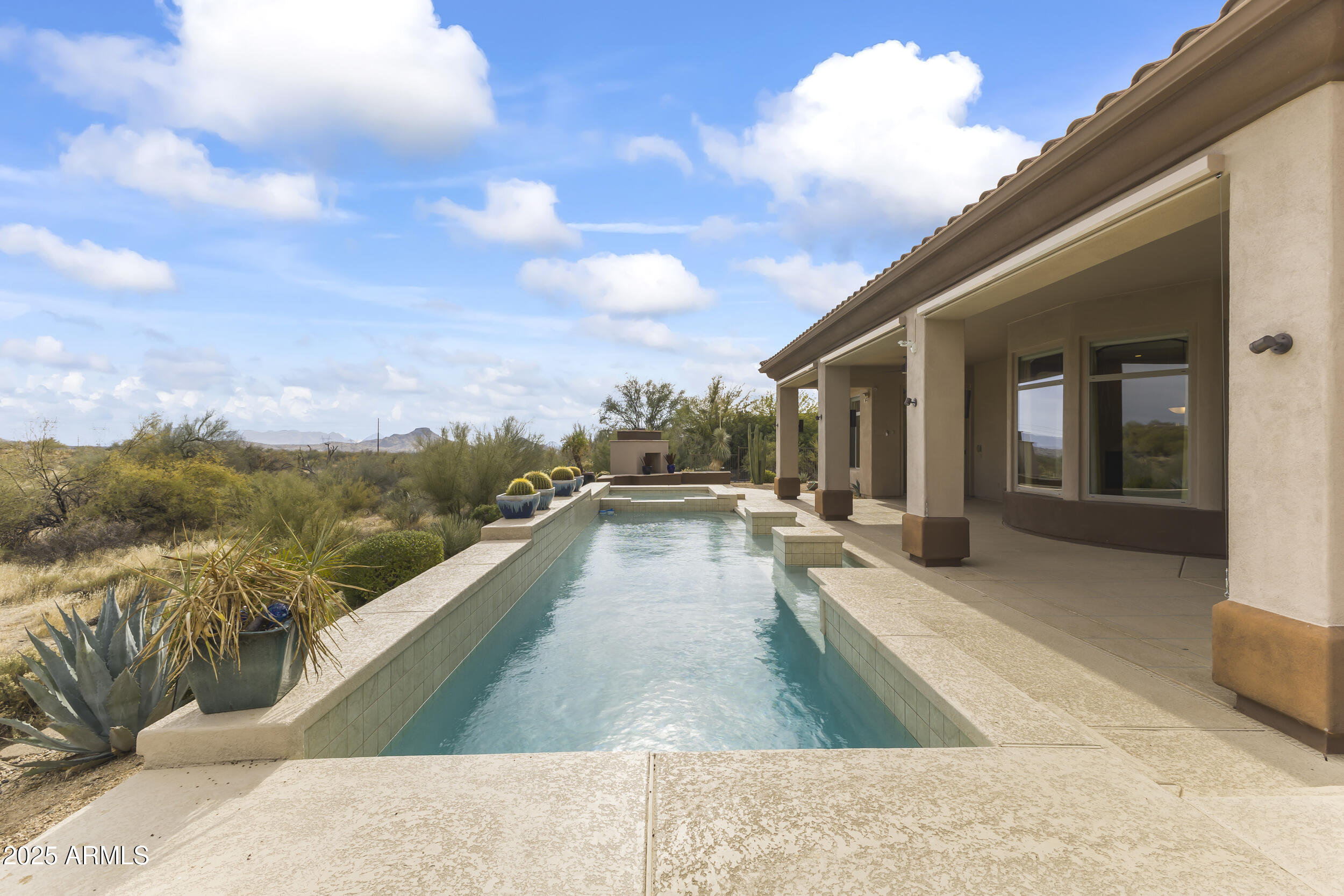 Discover luxury living with priceless views in this exquisite single-level home set on a sprawling 1.8-acre lot in Treviso East, a Toll Brothers community. Thoughtfully designed with attention to detail and showcasing numerous upgrades, this residence is filled with natural light, featuring expansive windows that perfectly frame breathtaking views. The gourmet kitchen is the showpiece, featuring a Dual Wolf range, Sub-Zero refrigerator, pull-out cabinetry, a large island, walk-in pantry, formal dining room, and a cozy breakfast nook. Kitchen opens up to the spacious living area that faces the views and features towering ceilings, entrance to the patio, fireplace as well as wet bar! The split floor plan offers an oversized primary suite with a sitting area, fireplace, and two luxurious custom closets with thousands spent on creating a truly organized masterpiece. A sizable office with extensive cabinetry and French doors that could be turned into a fourth bedroom enhances functionality, while each additional bedroom includes an en-suite bath. Additional upgrades include custom chandeliers, expansive closet built-ins, new pool equipment, new pool upgrades, and fresh interior paint, enhancing the overall appeal of this remarkable property. Perfect for guests, the attached casita features a private entrance, walk-in closet, and full bath. Step outside to an entertainer's dream, complete with a newly renovated heated lap pool, heated spa, expansive covered patio, outdoor fireplace, and unparalleled panoramic views. For car enthusiasts, the garage is equipped with a mini-split system to keep exotic cars cool and protected from the heat. Additional organized closet space can be found in the office/bedroom and garage, ensuring storage is effortless and well-structured. Other features include exterior cameras, a full-house alarm system, and new blinds and drapes. Treviso offers not just a home but an exclusive lifestyle. The community is family-oriented and currently expanding its recreational facilities with the addition of bocce and pickleball courts. Residents also enjoy access to tennis courts, a ramada, and a playground, making it the ideal setting for both relaxation and activity.