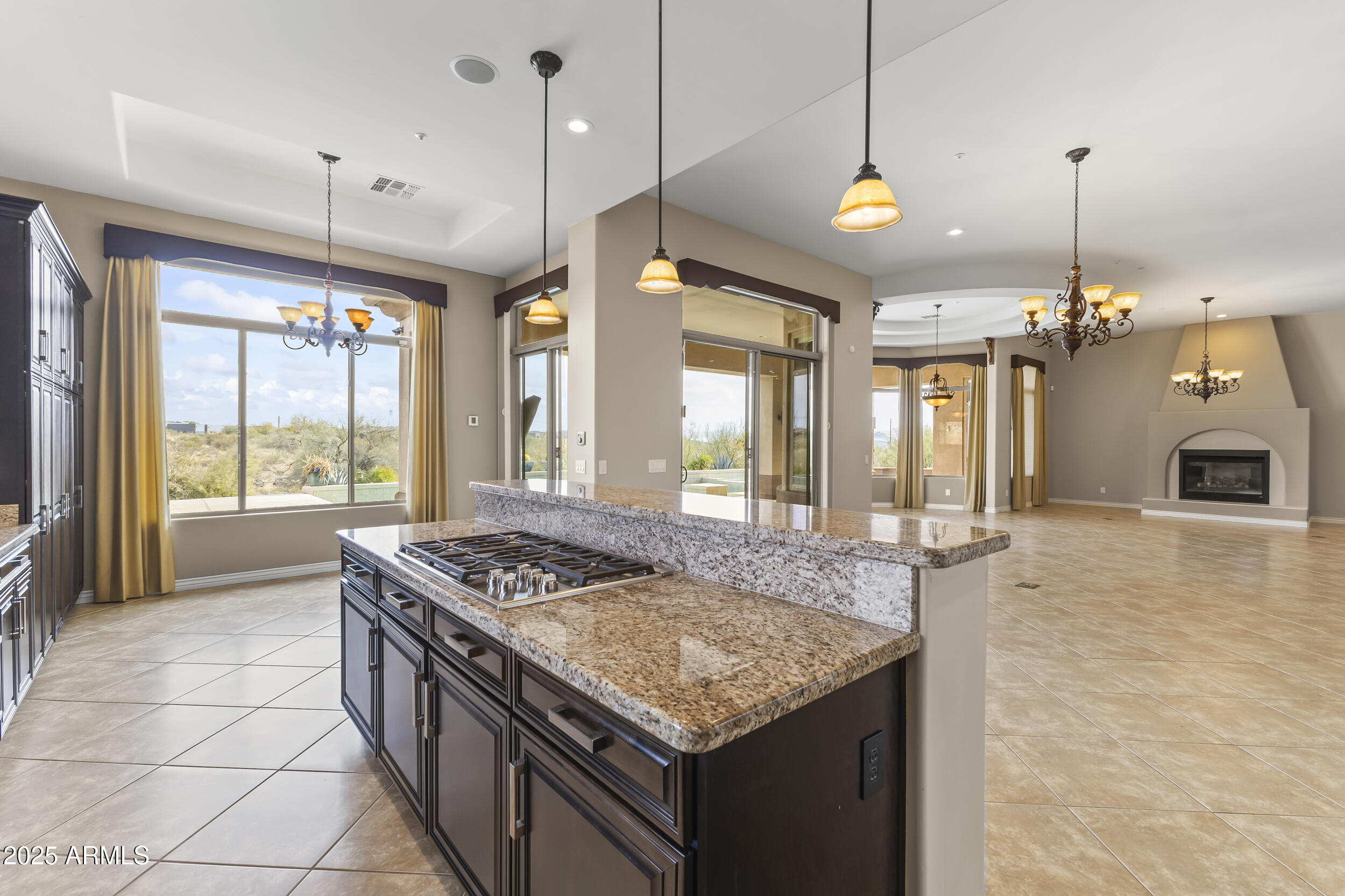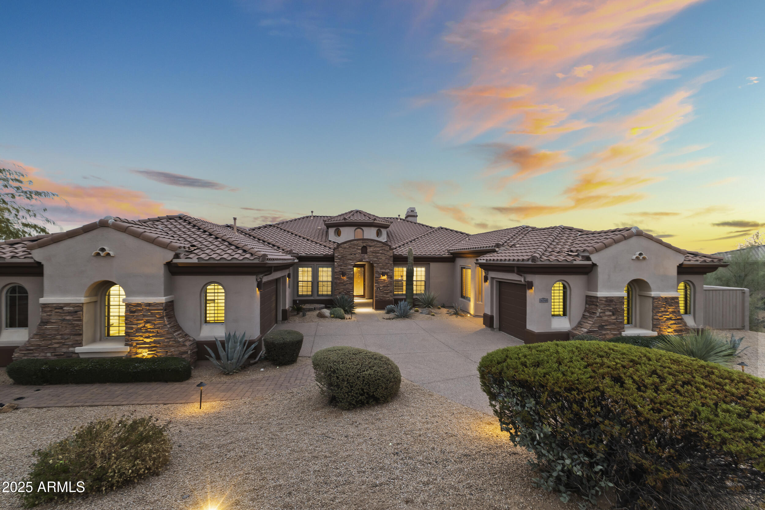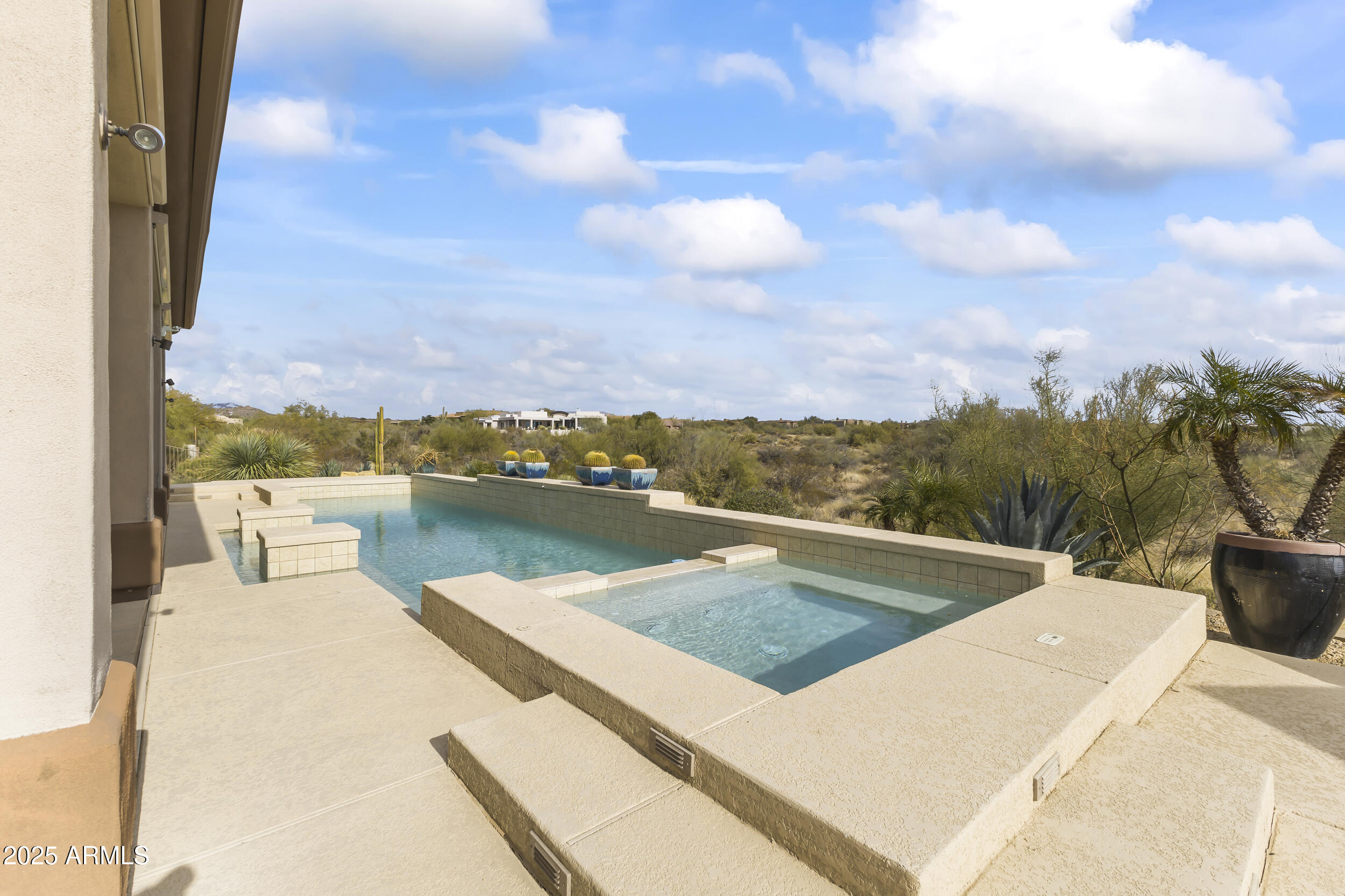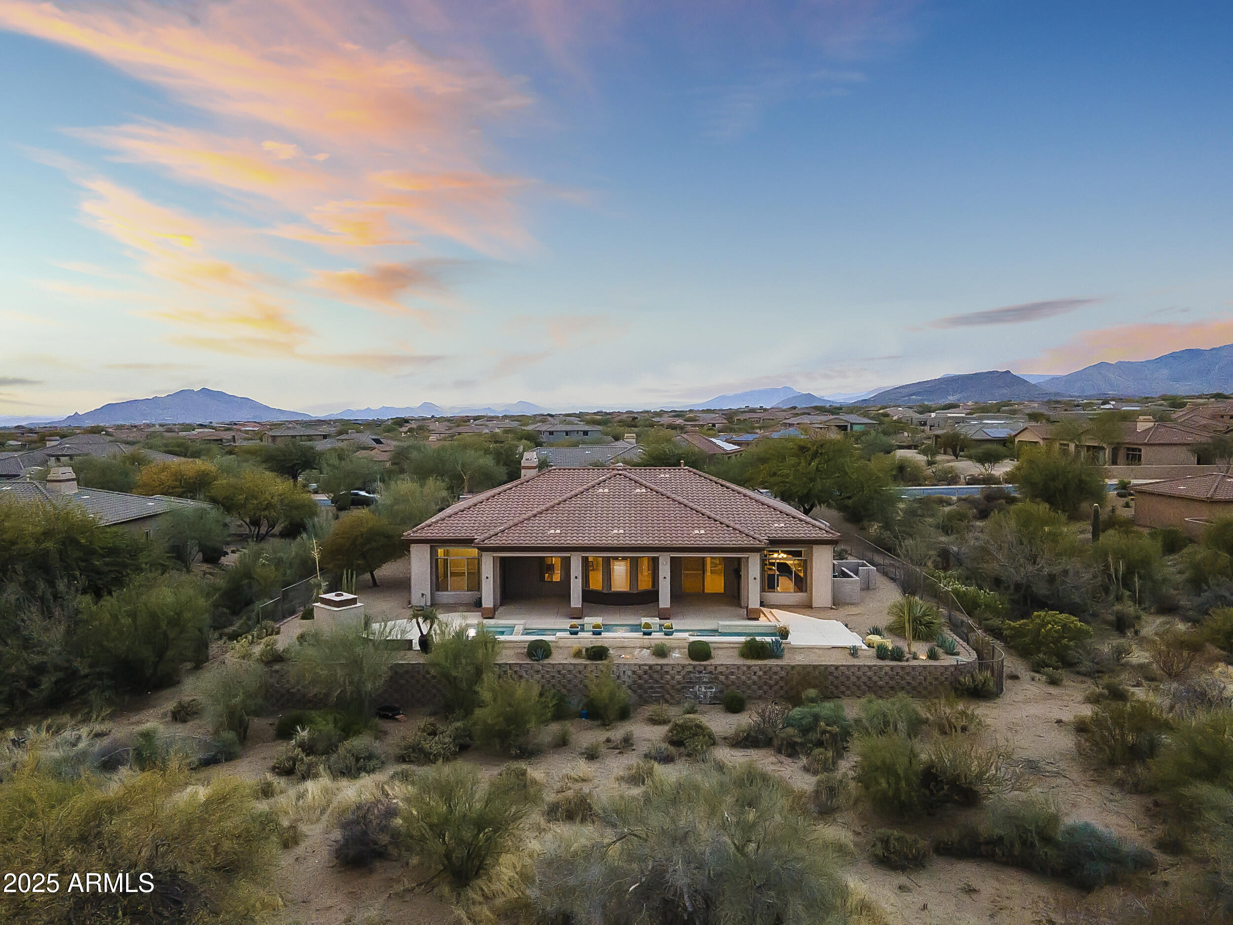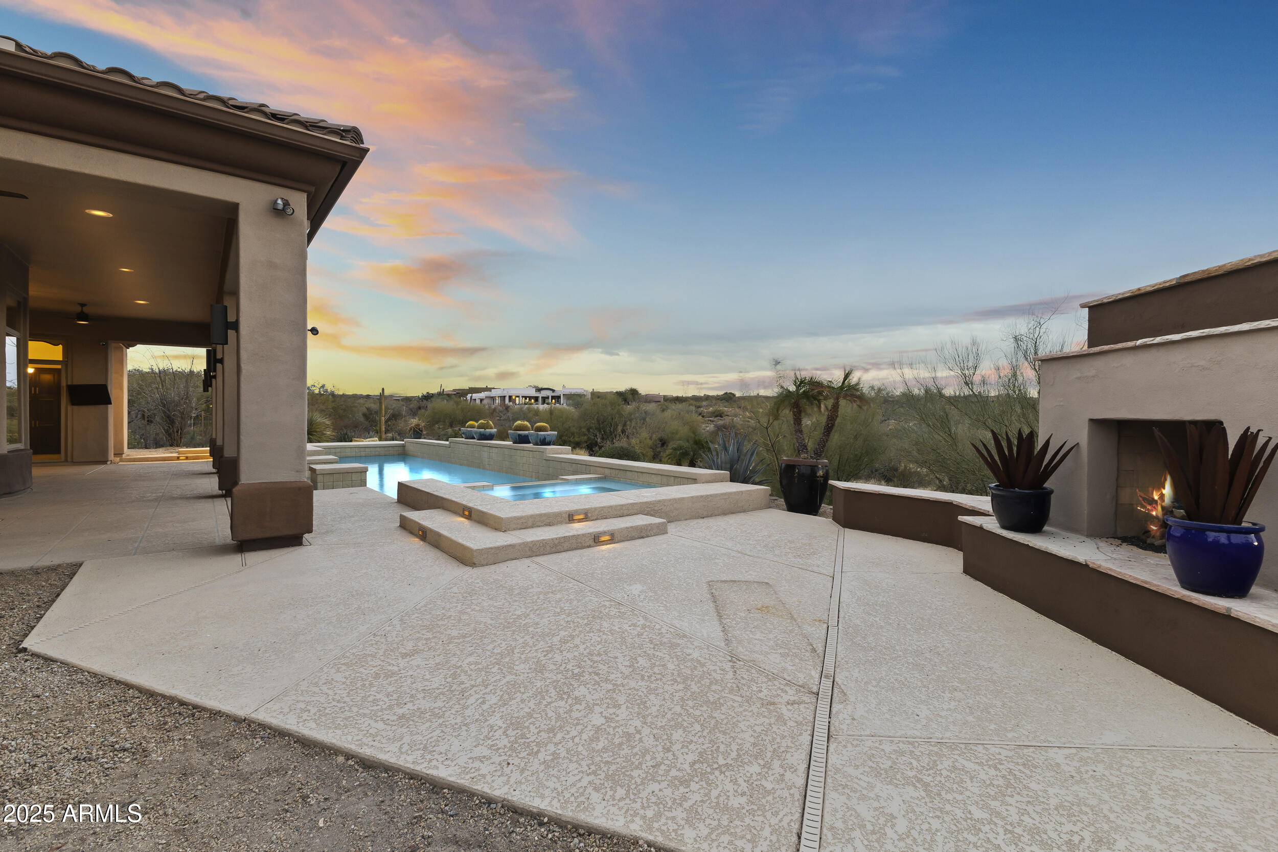 Discover luxury living with priceless views in this exquisite single-level home set on a sprawling 1.8-acre lot in Treviso East, a Toll Brothers community. Thoughtfully designed with attention to detail and showcasing numerous upgrades, this residence is filled with natural light, featuring expansive windows that perfectly frame breathtaking views. The gourmet kitchen is the showpiece, featuring a Dual Wolf range, Sub-Zero refrigerator, pull-out cabinetry, a large island, walk-in pantry, formal dining room, and a cozy breakfast nook. Kitchen opens up to the spacious living area that faces the views and features towering ceilings, entrance to the patio, fireplace as well as wet bar! The split floor plan offers an oversized primary suite with a sitting area, fireplace, and two luxurious custom closets with thousands spent on creating a truly organized masterpiece. A sizable office with extensive cabinetry and French doors that could be turned into a fourth bedroom enhances functionality, while each additional bedroom includes an en-suite bath. Additional upgrades include custom chandeliers, expansive closet built-ins, new pool equipment, new pool upgrades, and fresh interior paint, enhancing the overall appeal of this remarkable property. Perfect for guests, the attached casita features a private entrance, walk-in closet, and full bath. Step outside to an entertainer's dream, complete with a newly renovated heated lap pool, heated spa, expansive covered patio, outdoor fireplace, and unparalleled panoramic views. For car enthusiasts, the garage is equipped with a mini-split system to keep exotic cars cool and protected from the heat. Additional organized closet space can be found in the office/bedroom and garage, ensuring storage is effortless and well-structured. Other features include exterior cameras, a full-house alarm system, and new blinds and drapes. Treviso offers not just a home but an exclusive lifestyle. The community is family-oriented and currently expanding its recreational facilities with the addition of bocce and pickleball courts. Residents also enjoy access to tennis courts, a ramada, and a playground, making it the ideal setting for both relaxation and activity.
