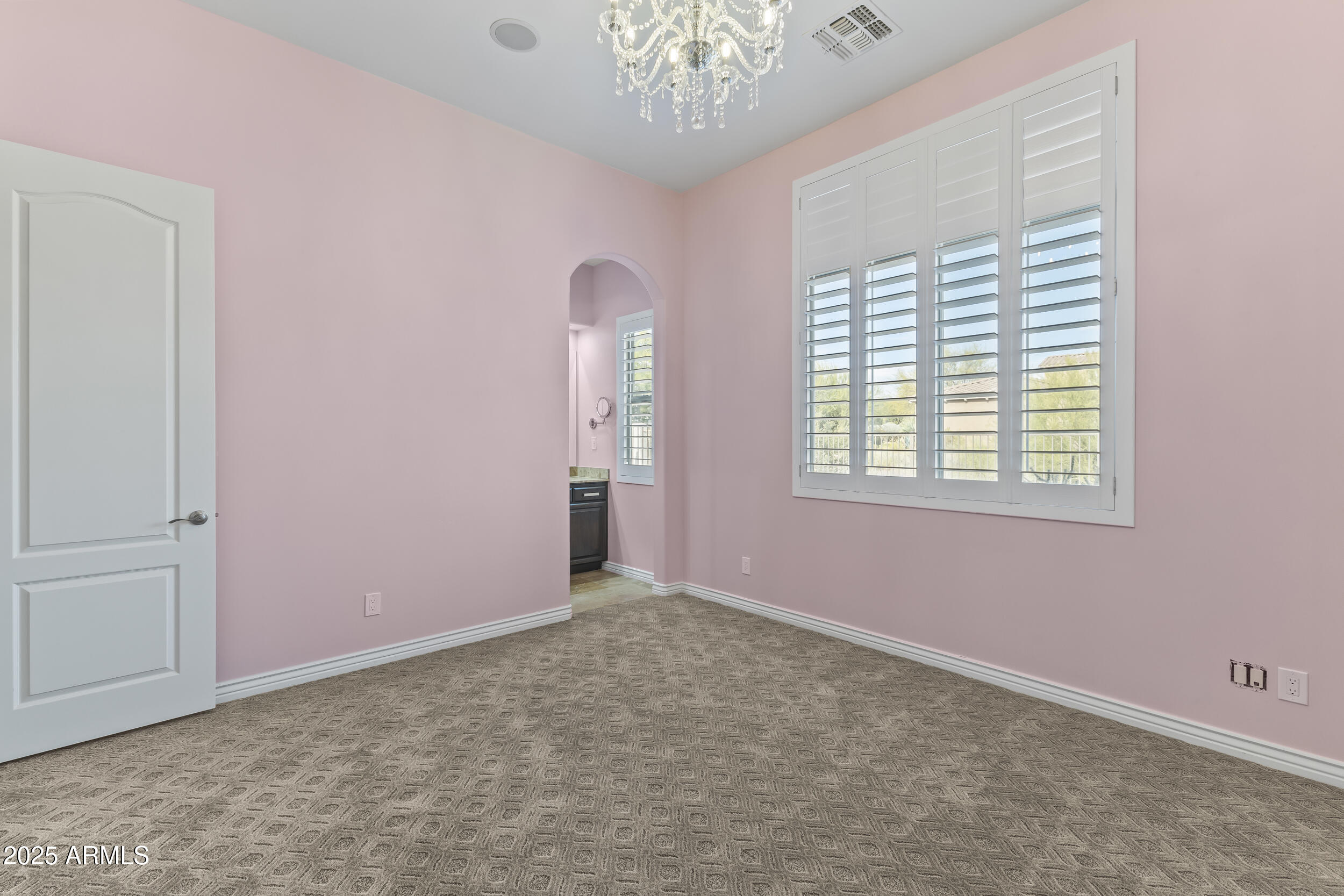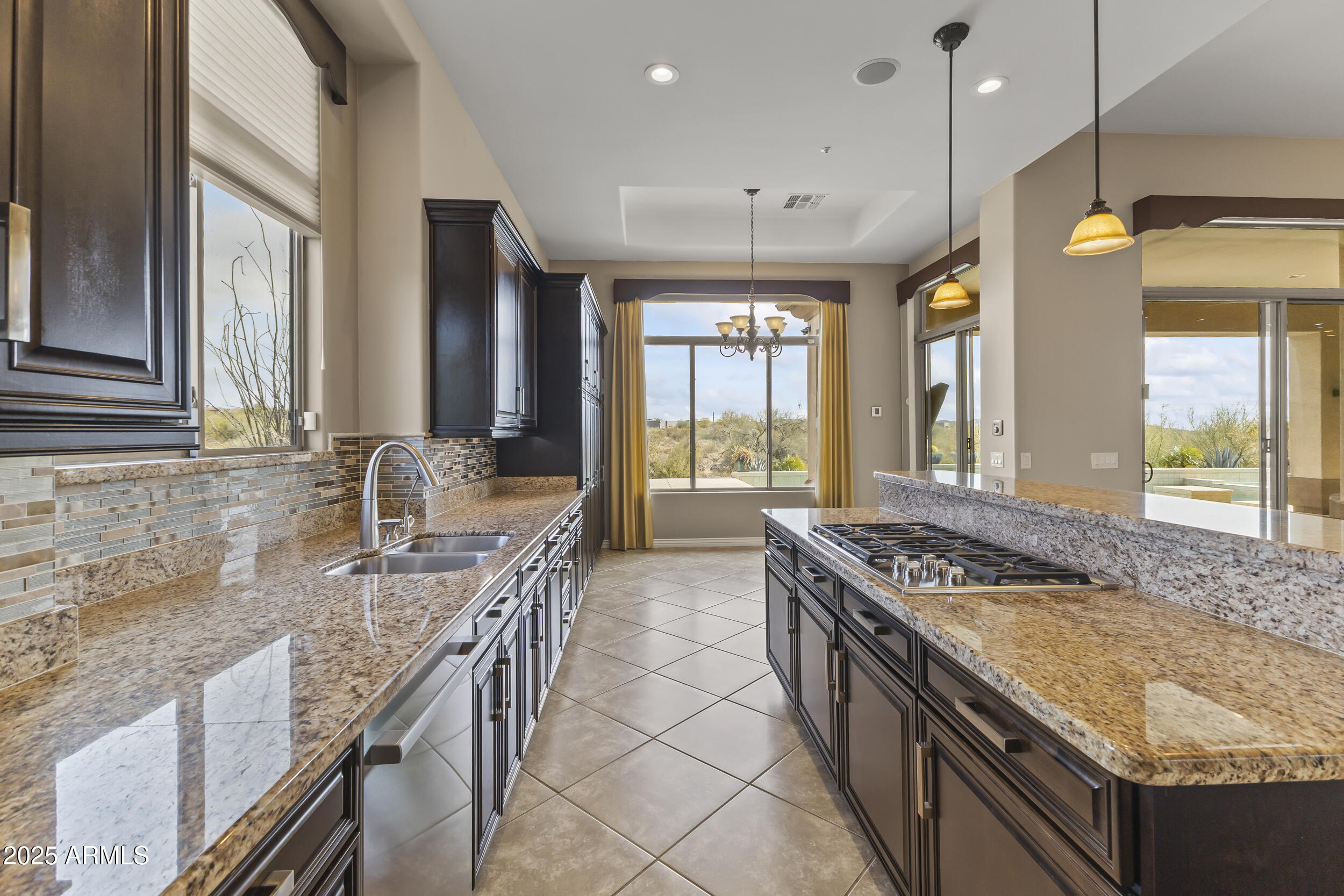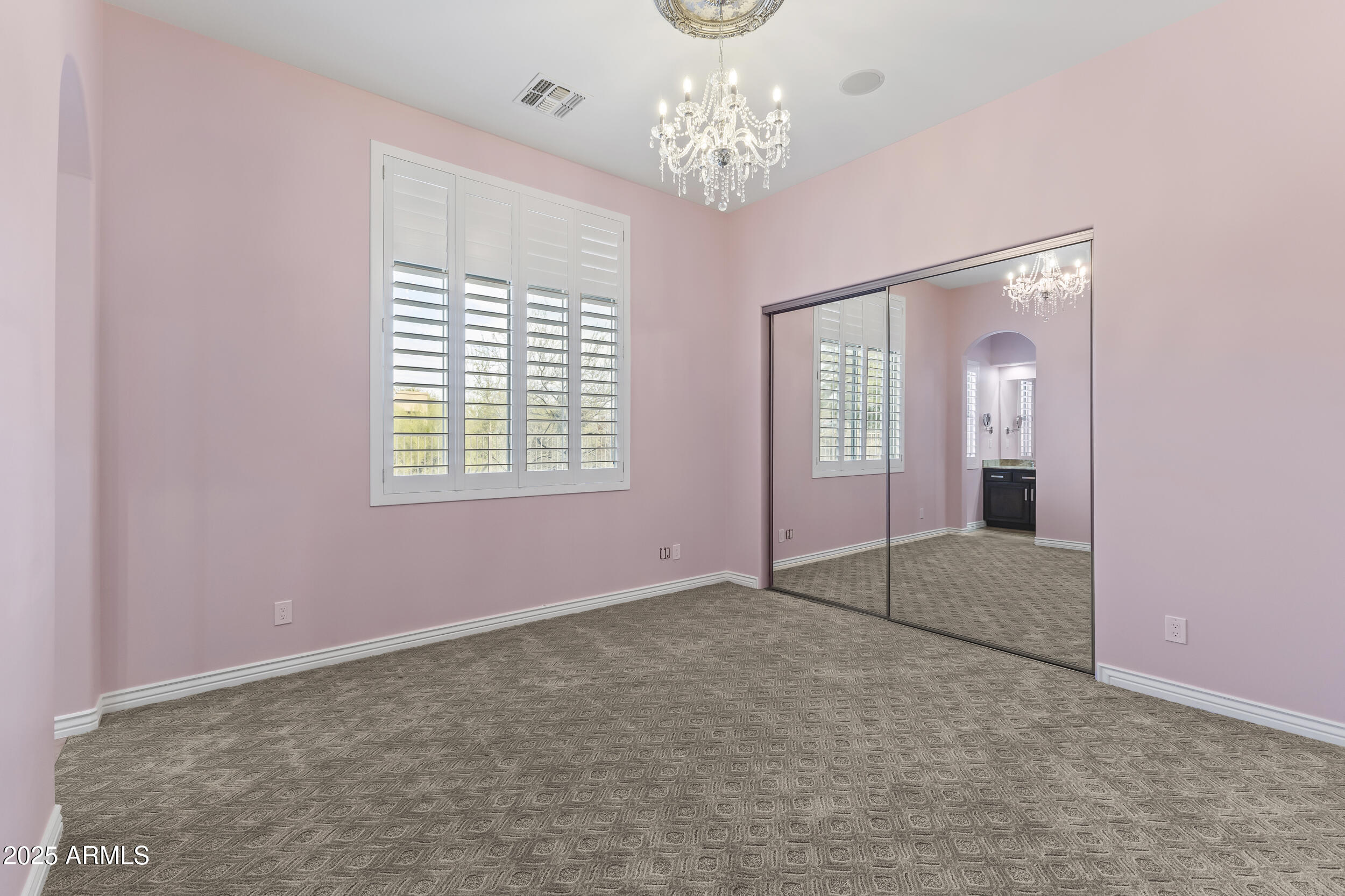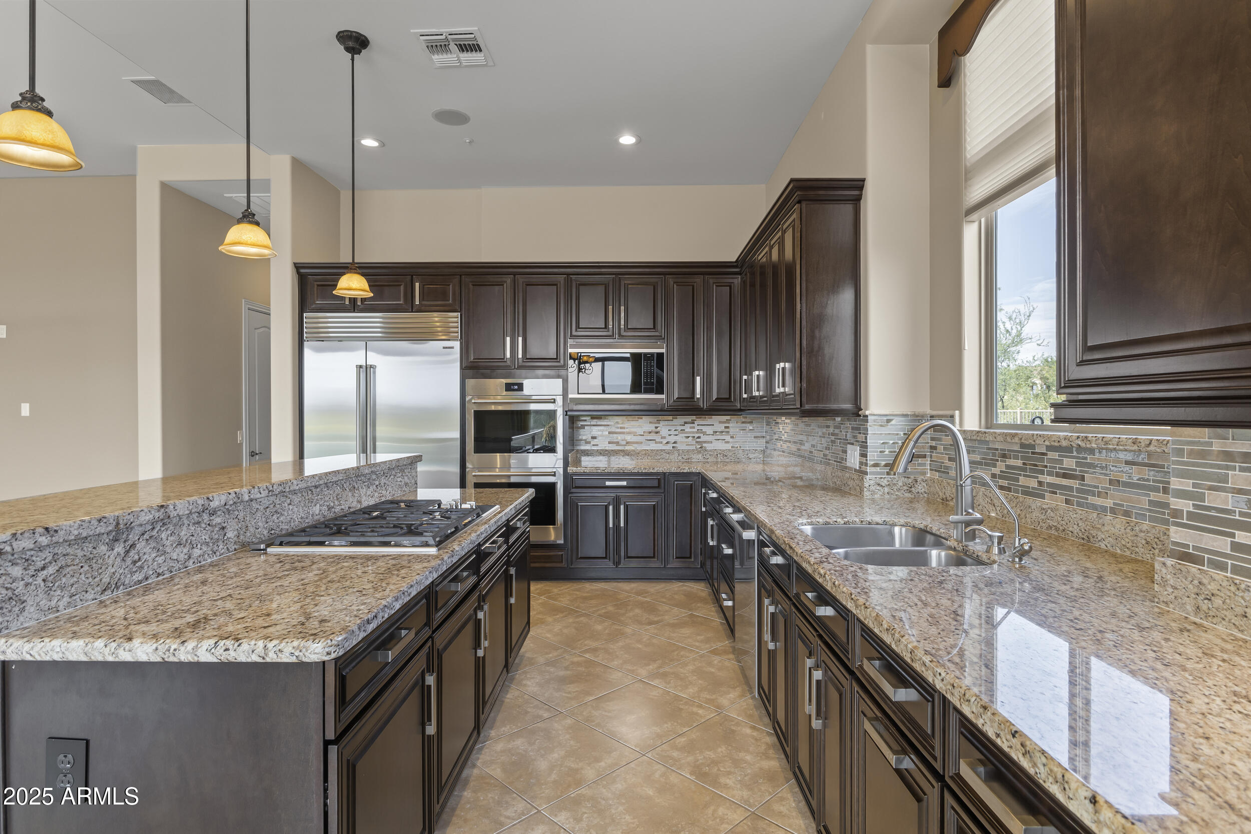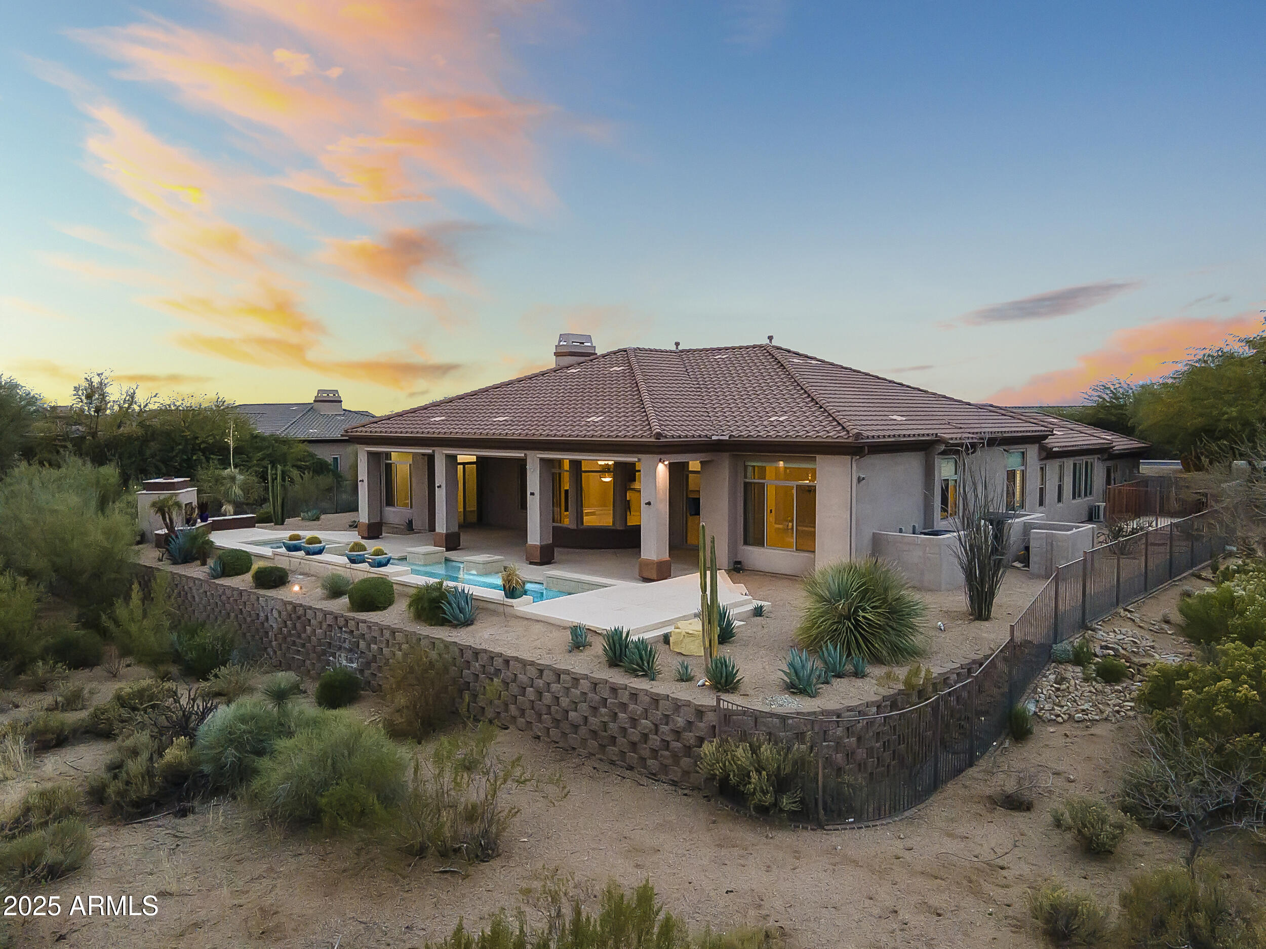 Discover luxury living with priceless views in this exquisite single-level home set on a sprawling 1.8-acre lot in Treviso East, a Toll Brothers community. Thoughtfully designed with attention to detail and showcasing numerous upgrades, this residence is filled with natural light, featuring expansive windows that perfectly frame breathtaking views. The gourmet kitchen is the showpiece, featuring a Dual Wolf range, Sub-Zero refrigerator, pull-out cabinetry, a large island, walk-in pantry, formal dining room, and a cozy breakfast nook. Kitchen opens up to the spacious living area that faces the views and features towering ceilings, entrance to the patio, fireplace as well as wet bar! The split floor plan offers an oversized primary suite with a sitting area, fireplace, and two luxurious custom closets with thousands spent on creating a truly organized masterpiece. A sizable office with extensive cabinetry and French doors that could be turned into a fourth bedroom enhances functionality, while each additional bedroom includes an en-suite bath. Additional upgrades include custom chandeliers, expansive closet built-ins, new pool equipment, new pool upgrades, and fresh interior paint, enhancing the overall appeal of this remarkable property. Perfect for guests, the attached casita features a private entrance, walk-in closet, and full bath. Step outside to an entertainer's dream, complete with a newly renovated heated lap pool, heated spa, expansive covered patio, outdoor fireplace, and unparalleled panoramic views. For car enthusiasts, the garage is equipped with a mini-split system to keep exotic cars cool and protected from the heat. Additional organized closet space can be found in the office/bedroom and garage, ensuring storage is effortless and well-structured. Other features include exterior cameras, a full-house alarm system, and new blinds and drapes. Treviso offers not just a home but an exclusive lifestyle. The community is family-oriented and currently expanding its recreational facilities with the addition of bocce and pickleball courts. Residents also enjoy access to tennis courts, a ramada, and a playground, making it the ideal setting for both relaxation and activity.