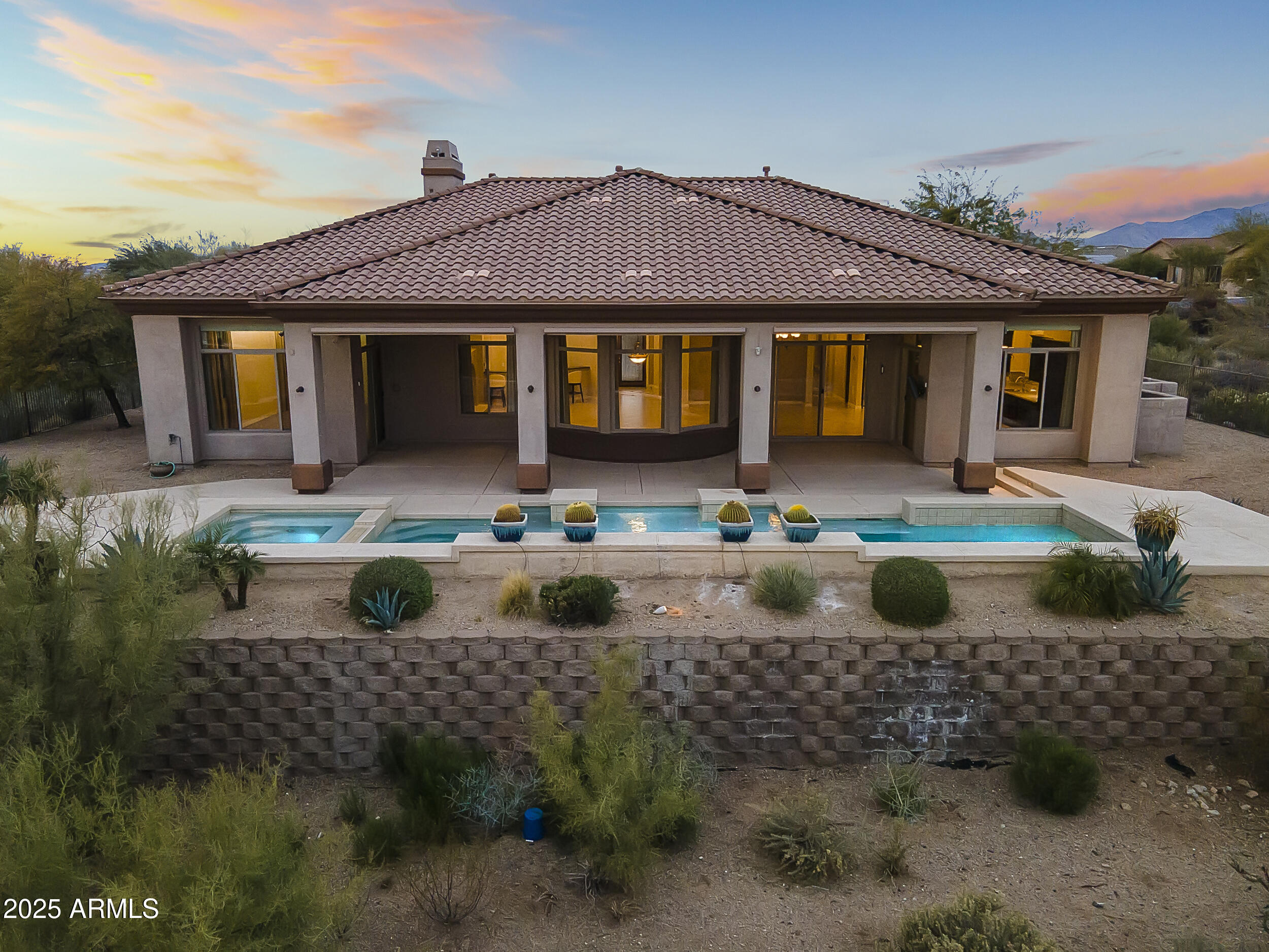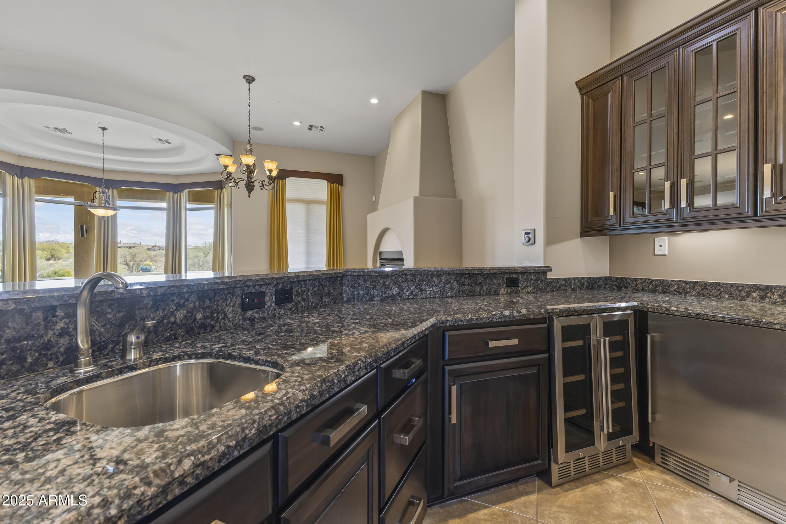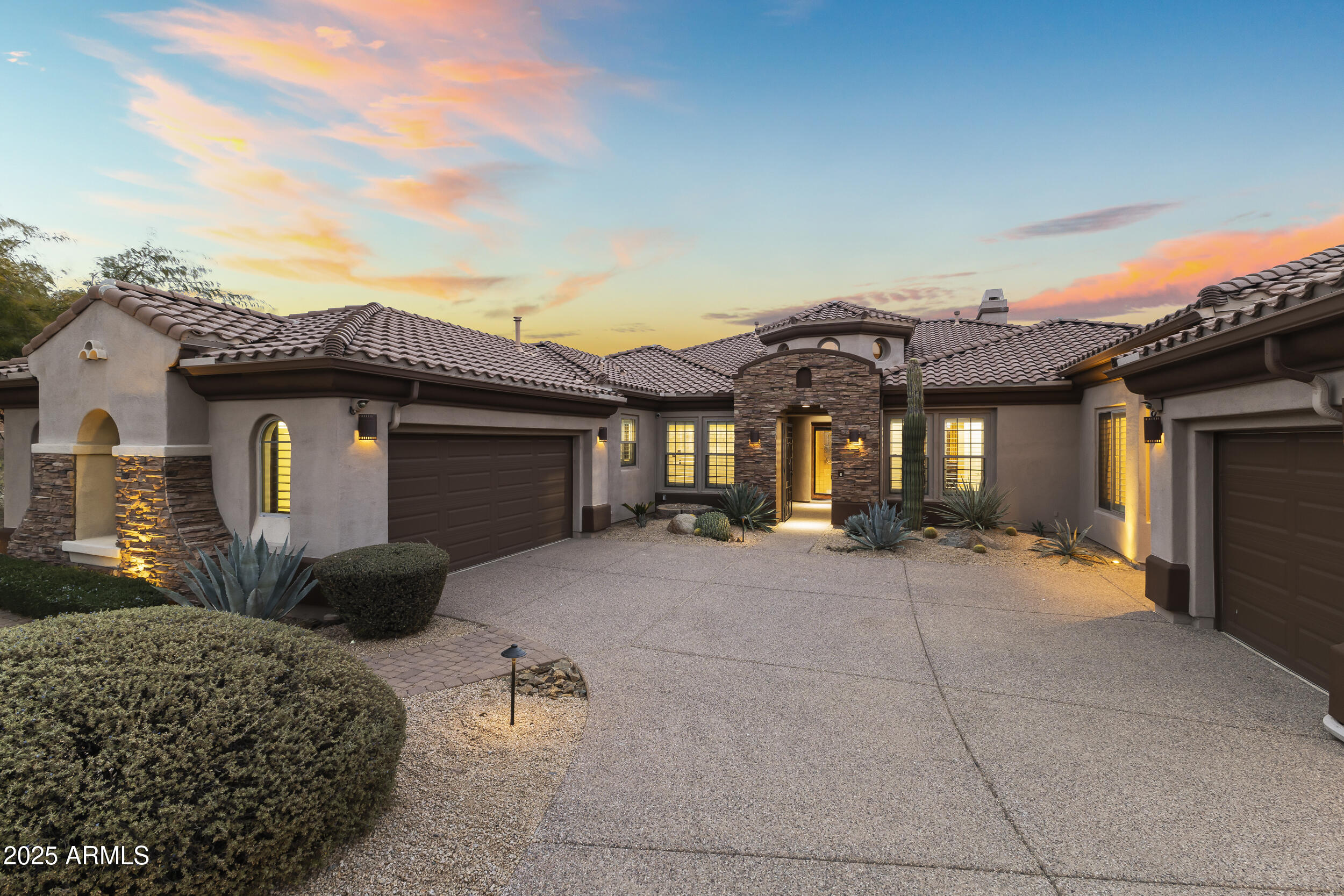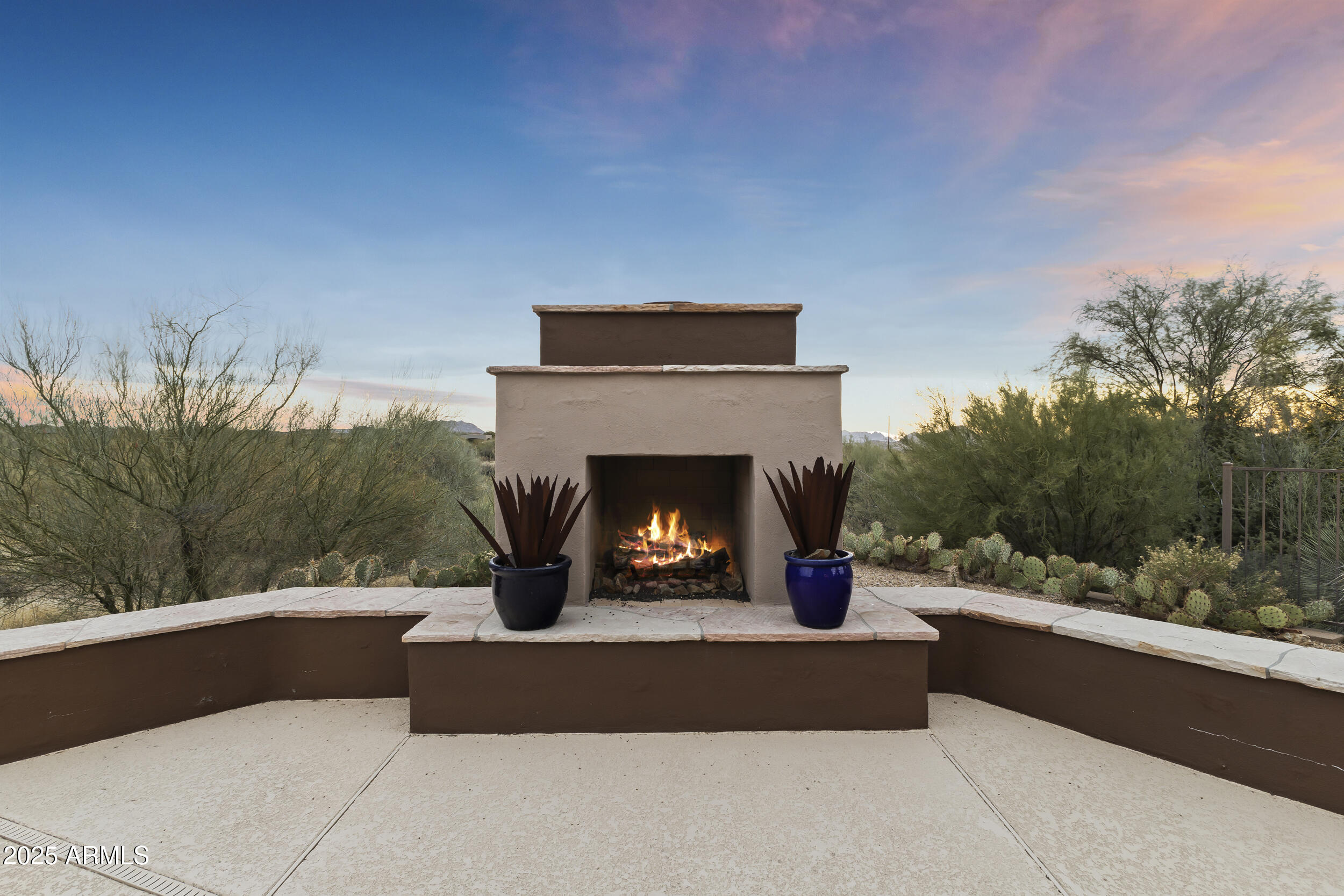 Discover luxury living with priceless views in this exquisite single-level home set on a sprawling 1.8-acre lot in Treviso East, a Toll Brothers community. Thoughtfully designed with attention to detail and showcasing numerous upgrades, this residence is filled with natural light, featuring expansive windows that perfectly frame breathtaking views. The gourmet kitchen is the showpiece, featuring a Dual Wolf range, Sub-Zero refrigerator, pull-out cabinetry, a large island, walk-in pantry, formal dining room, and a cozy breakfast nook. Kitchen opens up to the spacious living area that faces the views and features towering ceilings, entrance to the patio, fireplace as well as wet bar! The split floor plan offers an oversized primary suite with a sitting area, fireplace, and two luxurious custom closets with thousands spent on creating a truly organized masterpiece. A sizable office with extensive cabinetry and French doors that could be turned into a fourth bedroom enhances functionality, while each additional bedroom includes an en-suite bath. Additional upgrades include custom chandeliers, expansive closet built-ins, new pool equipment, new pool upgrades, and fresh interior paint, enhancing the overall appeal of this remarkable property. Perfect for guests, the attached casita features a private entrance, walk-in closet, and full bath. Step outside to an entertainer's dream, complete with a newly renovated heated lap pool, heated spa, expansive covered patio, outdoor fireplace, and unparalleled panoramic views. For car enthusiasts, the garage is equipped with a mini-split system to keep exotic cars cool and protected from the heat. Additional organized closet space can be found in the office/bedroom and garage, ensuring storage is effortless and well-structured. Other features include exterior cameras, a full-house alarm system, and new blinds and drapes. Treviso offers not just a home but an exclusive lifestyle. The community is family-oriented and currently expanding its recreational facilities with the addition of bocce and pickleball courts. Residents also enjoy access to tennis courts, a ramada, and a playground, making it the ideal setting for both relaxation and activity.